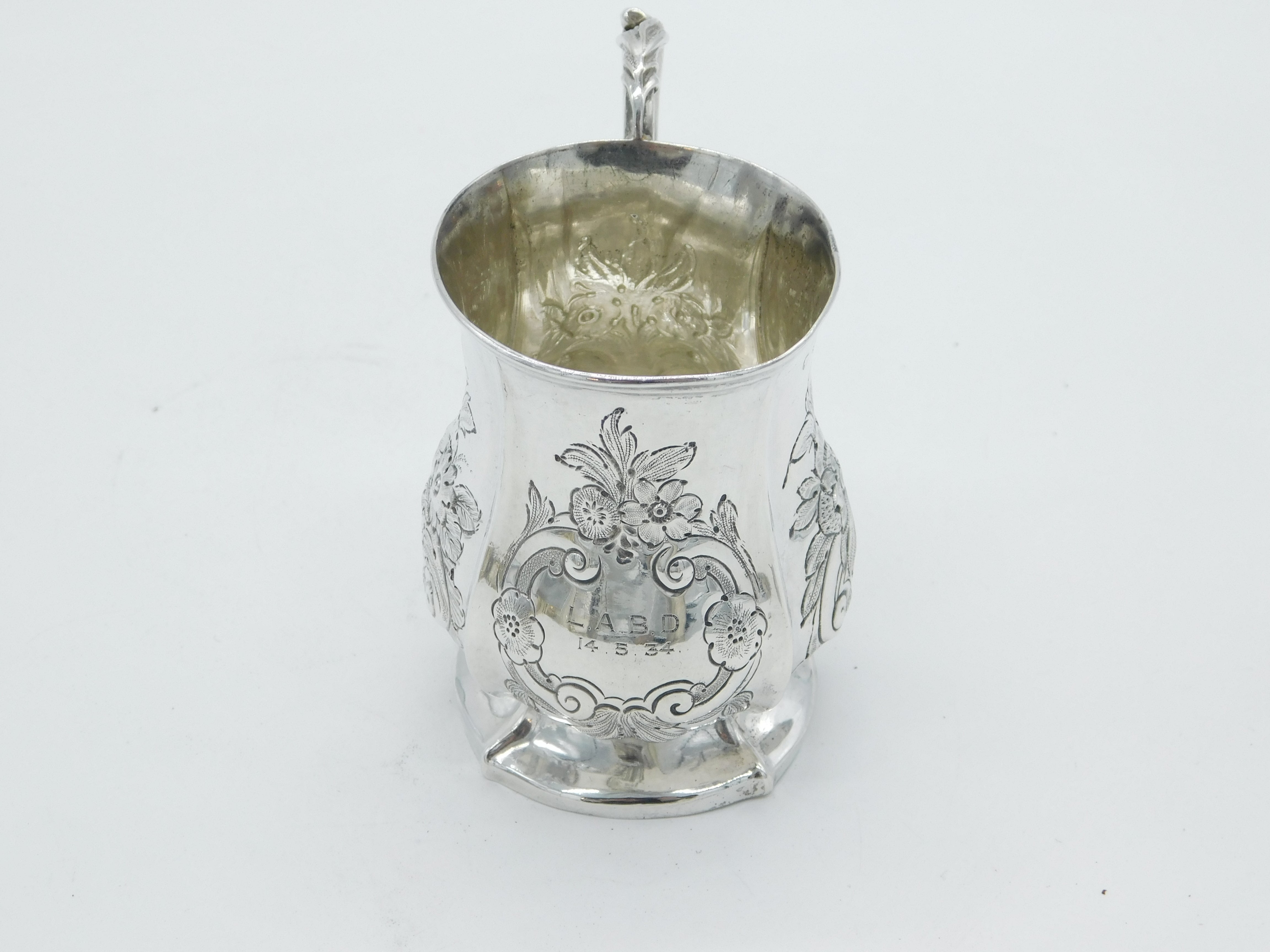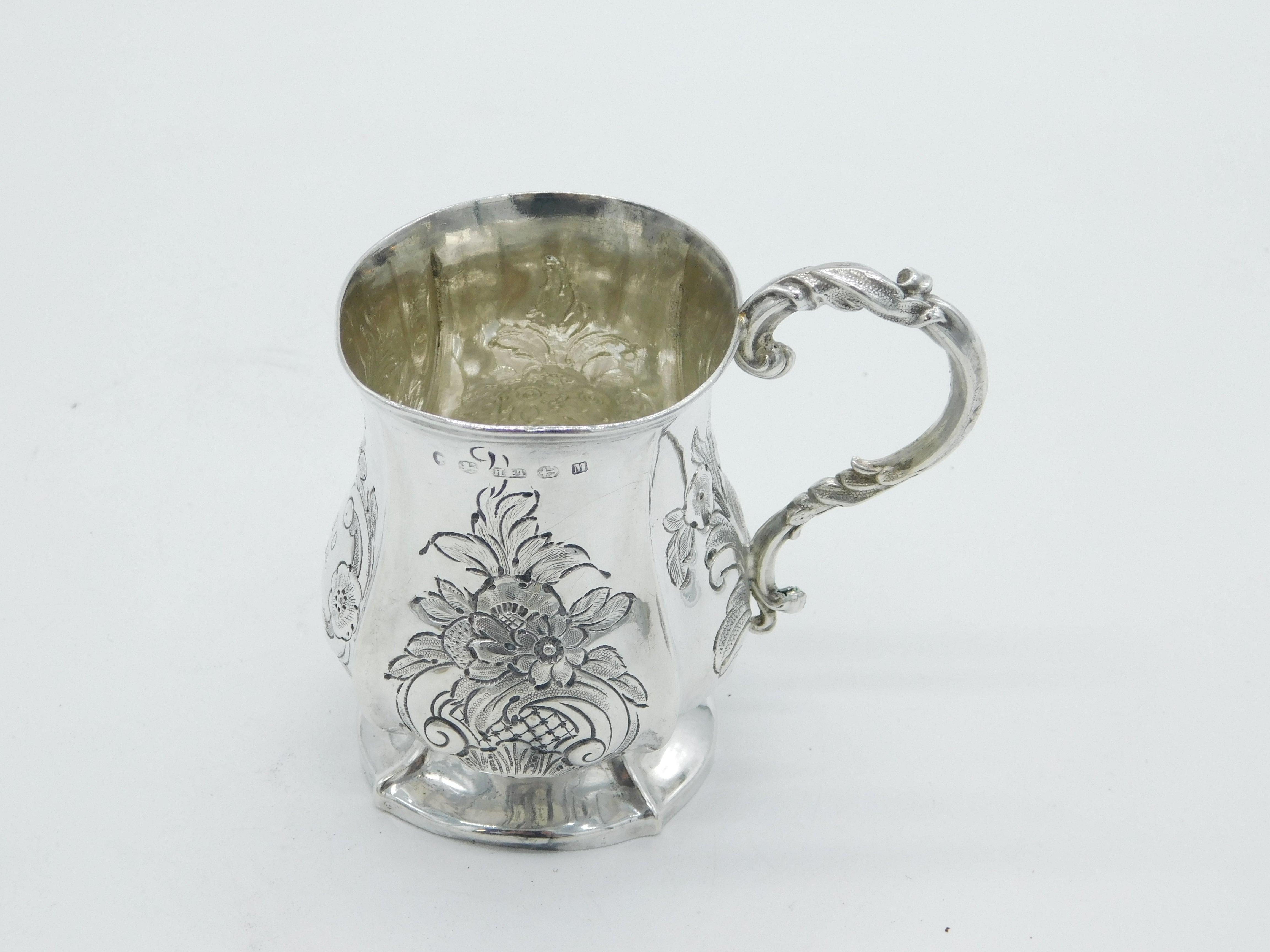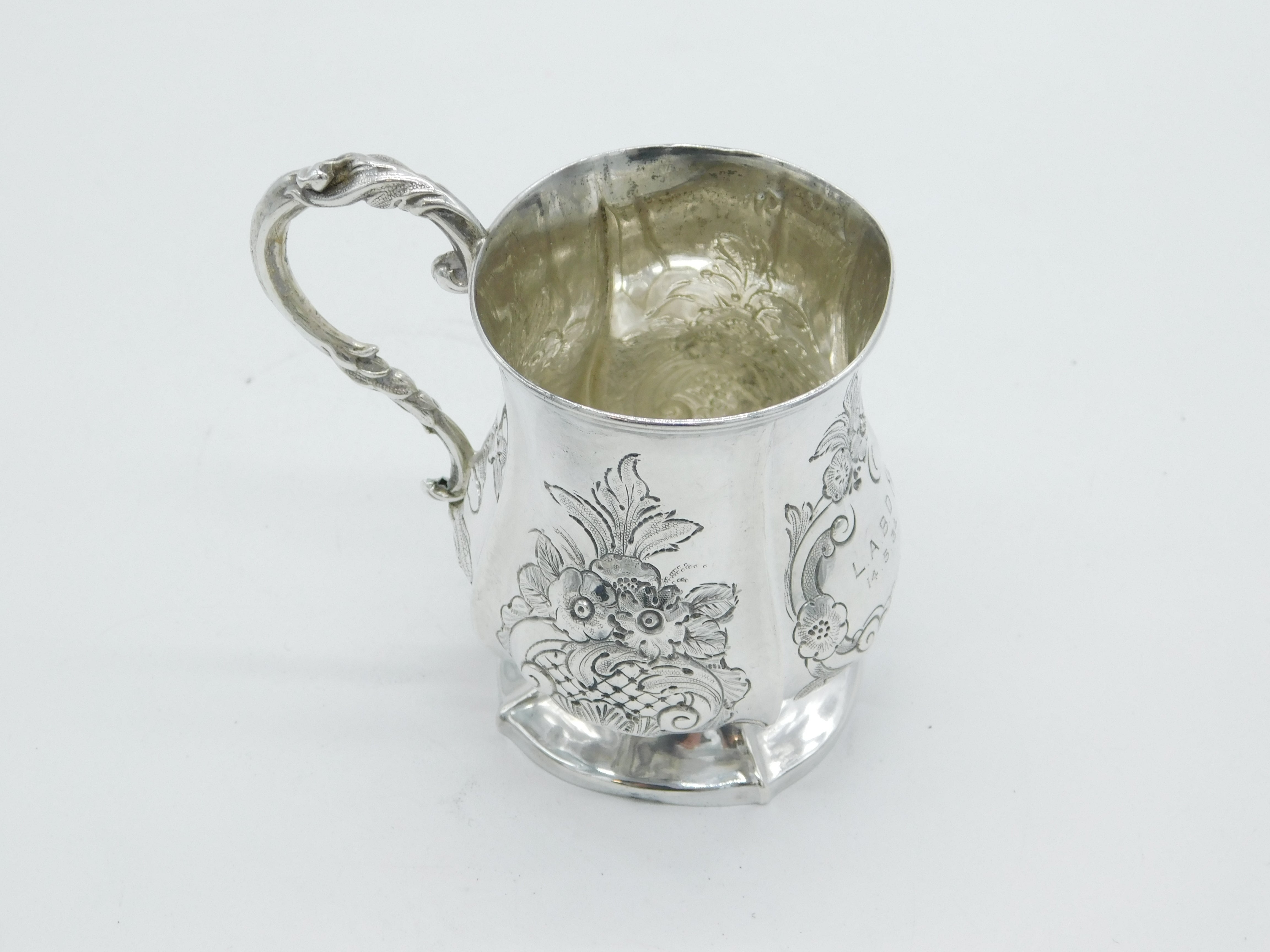 Victorian Sterling Silver Floral Pattern Christening Mug Antique 1861 Birmingham