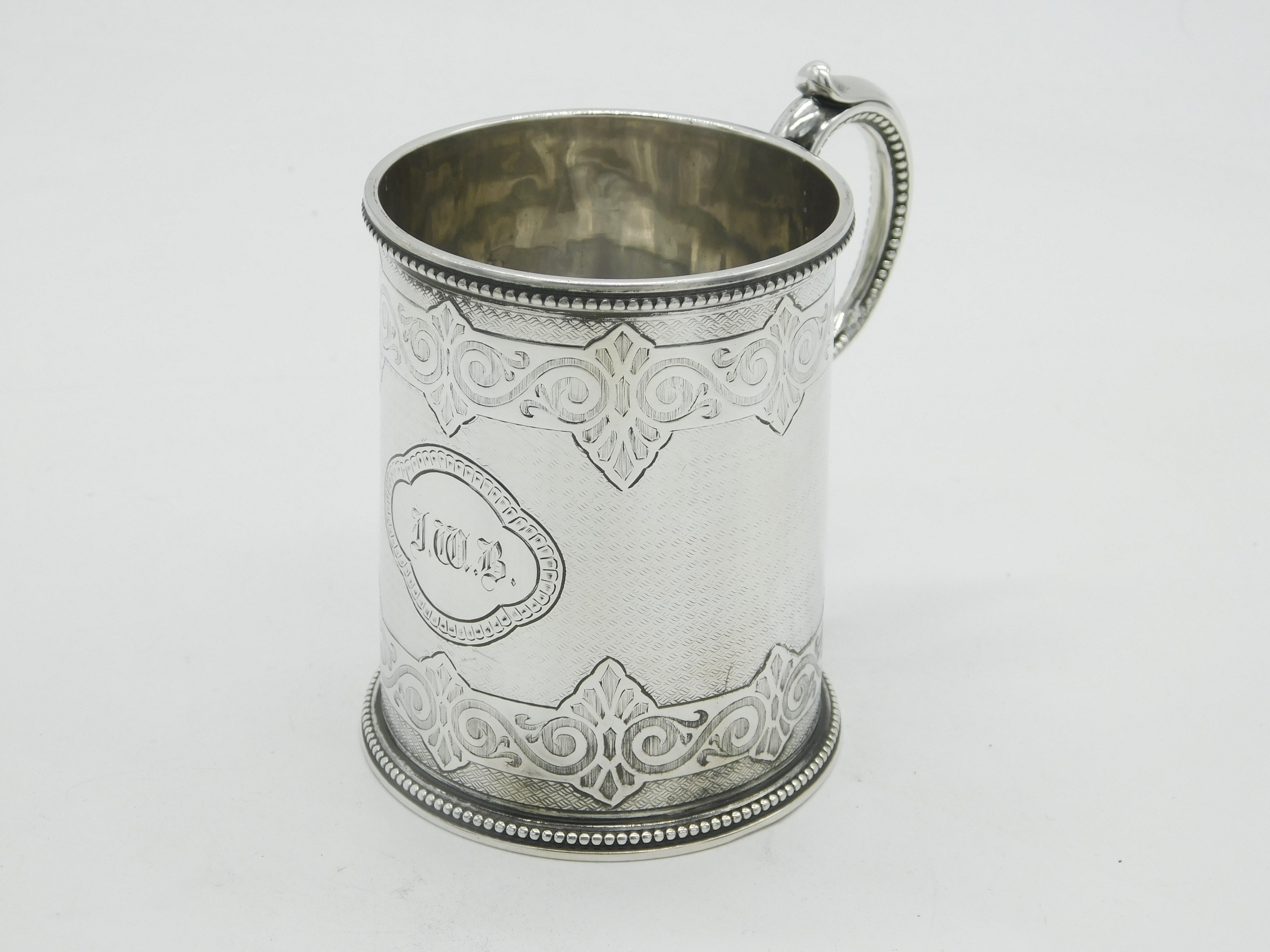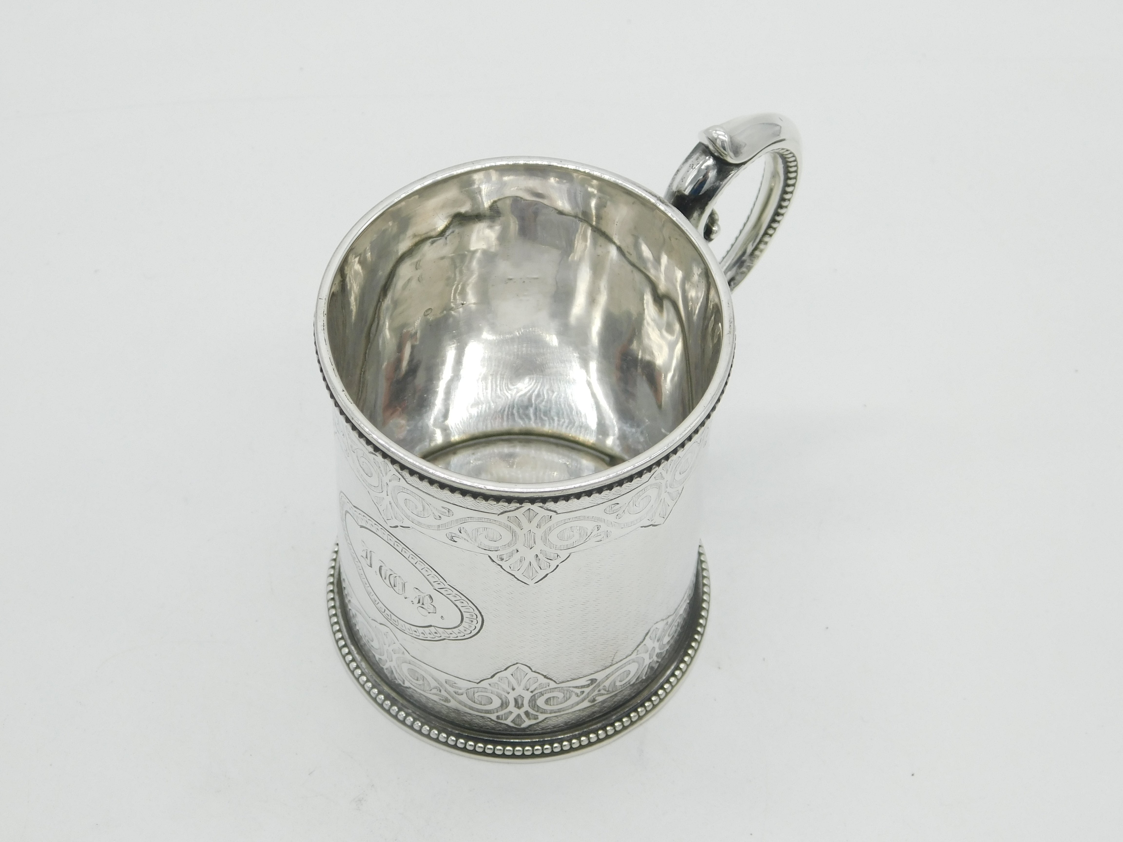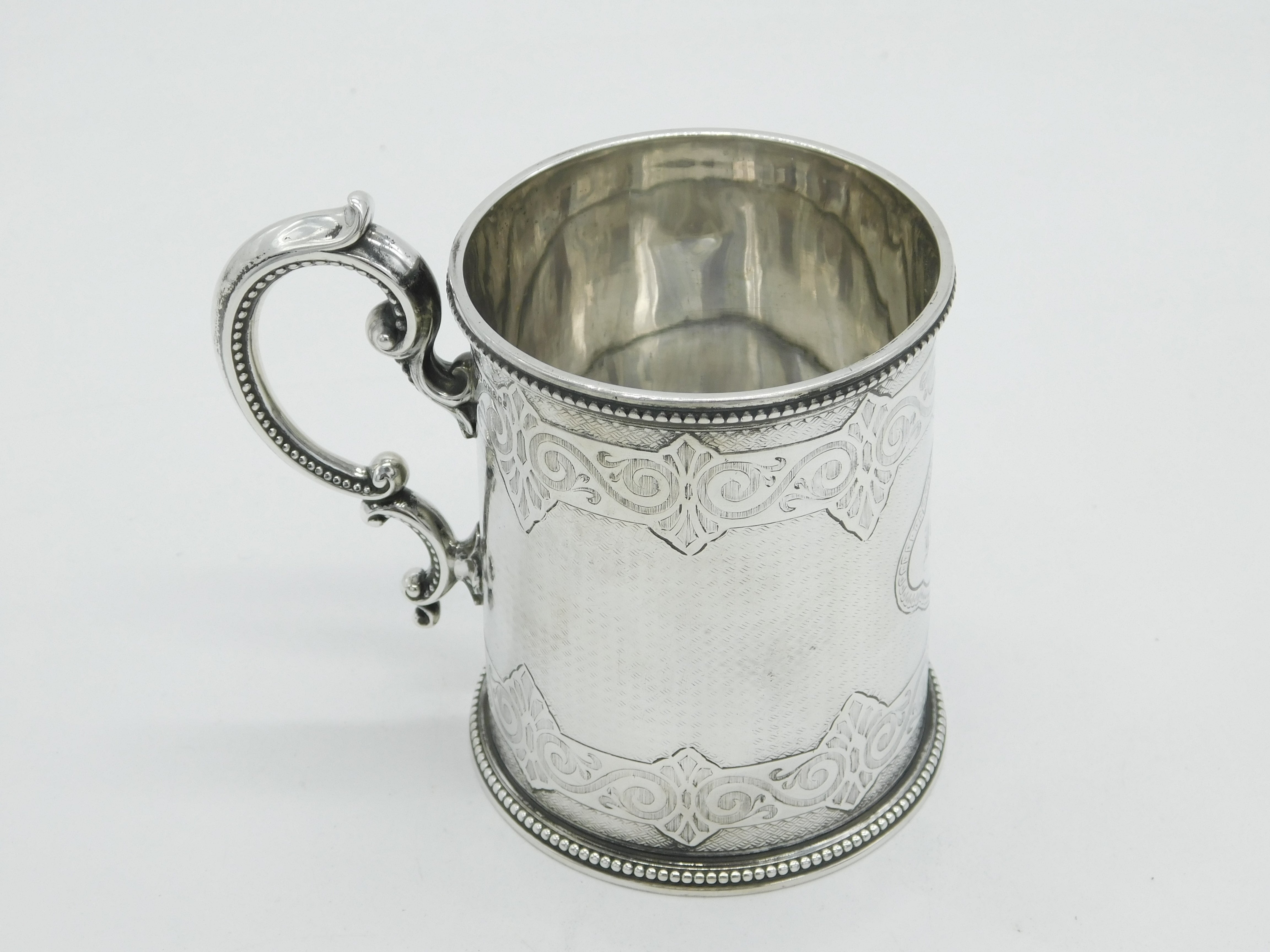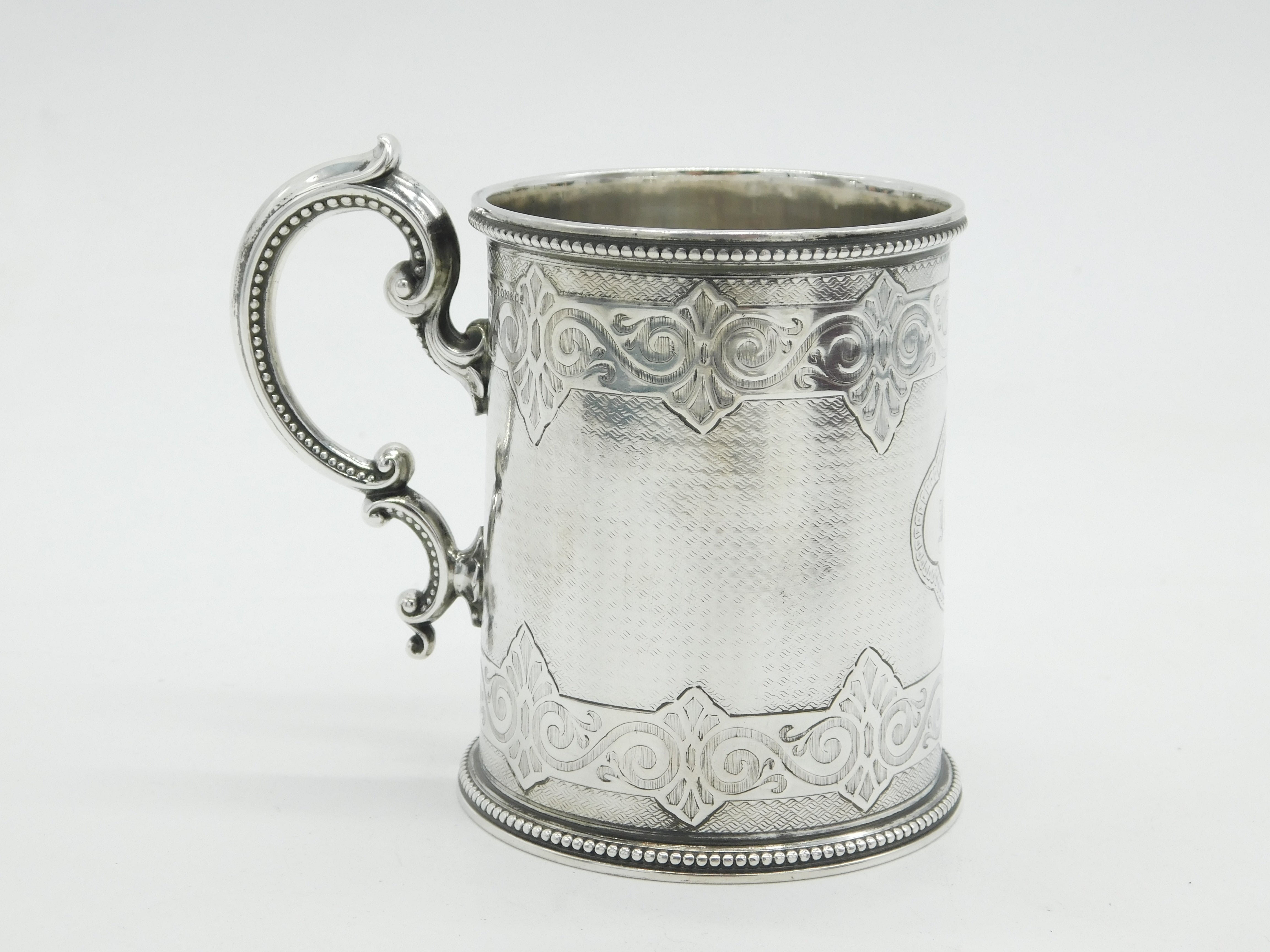 Victorian Sterling Silver Floral Pattern Christening Mug Antique 1866 London