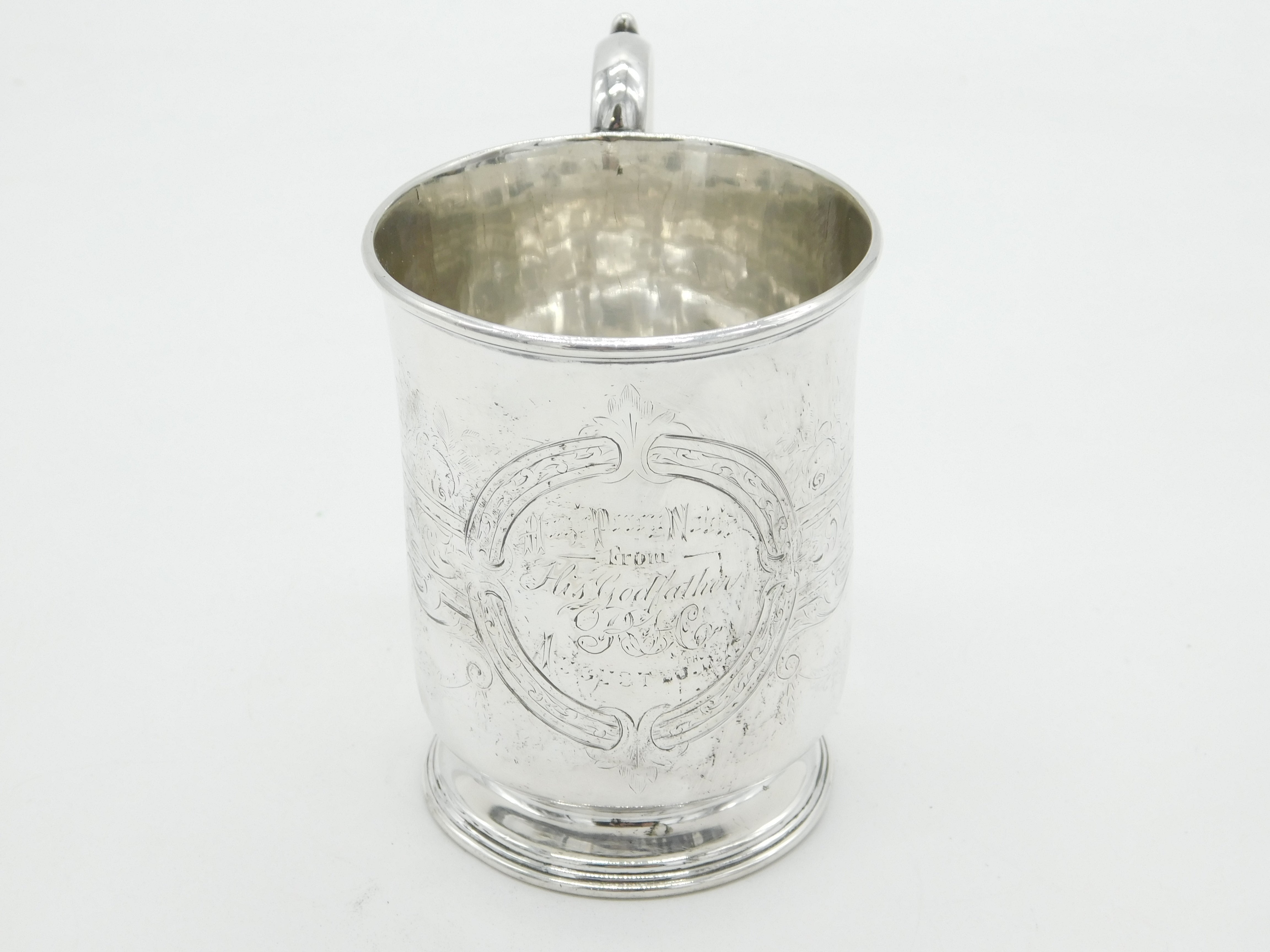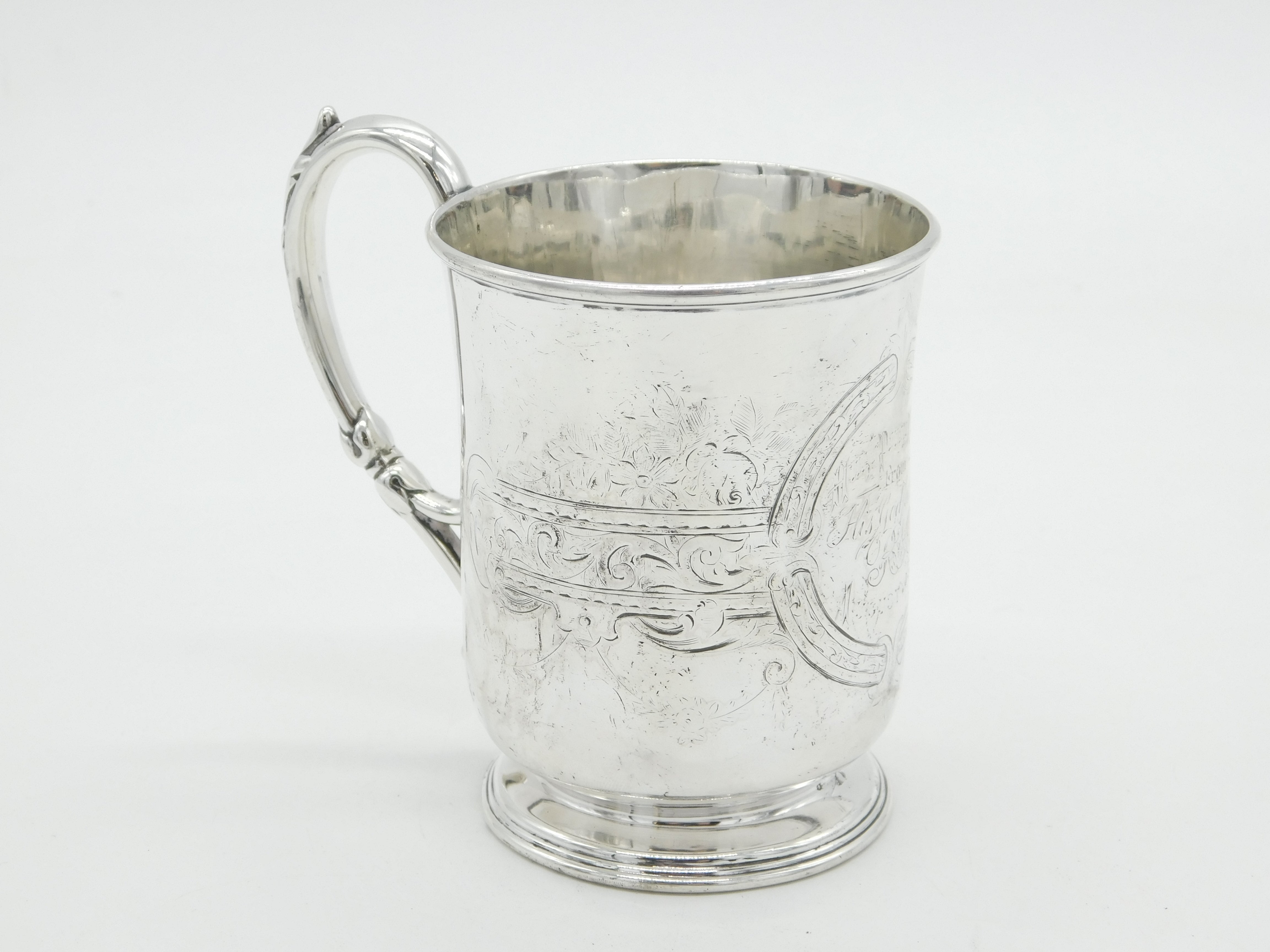 Victorian Sterling Silver Floral Pattern Christening Mug Antique 1870 Sheffield
