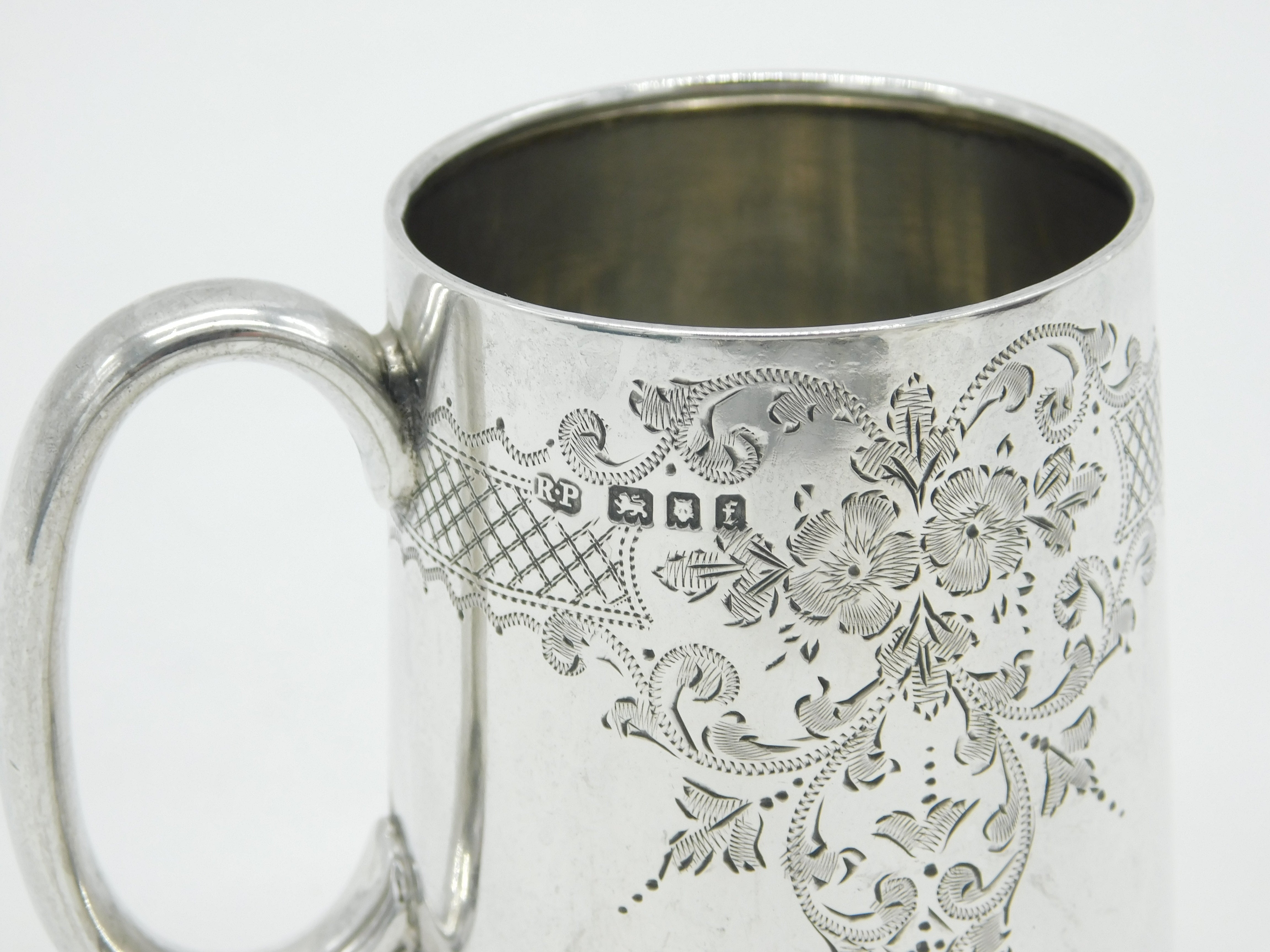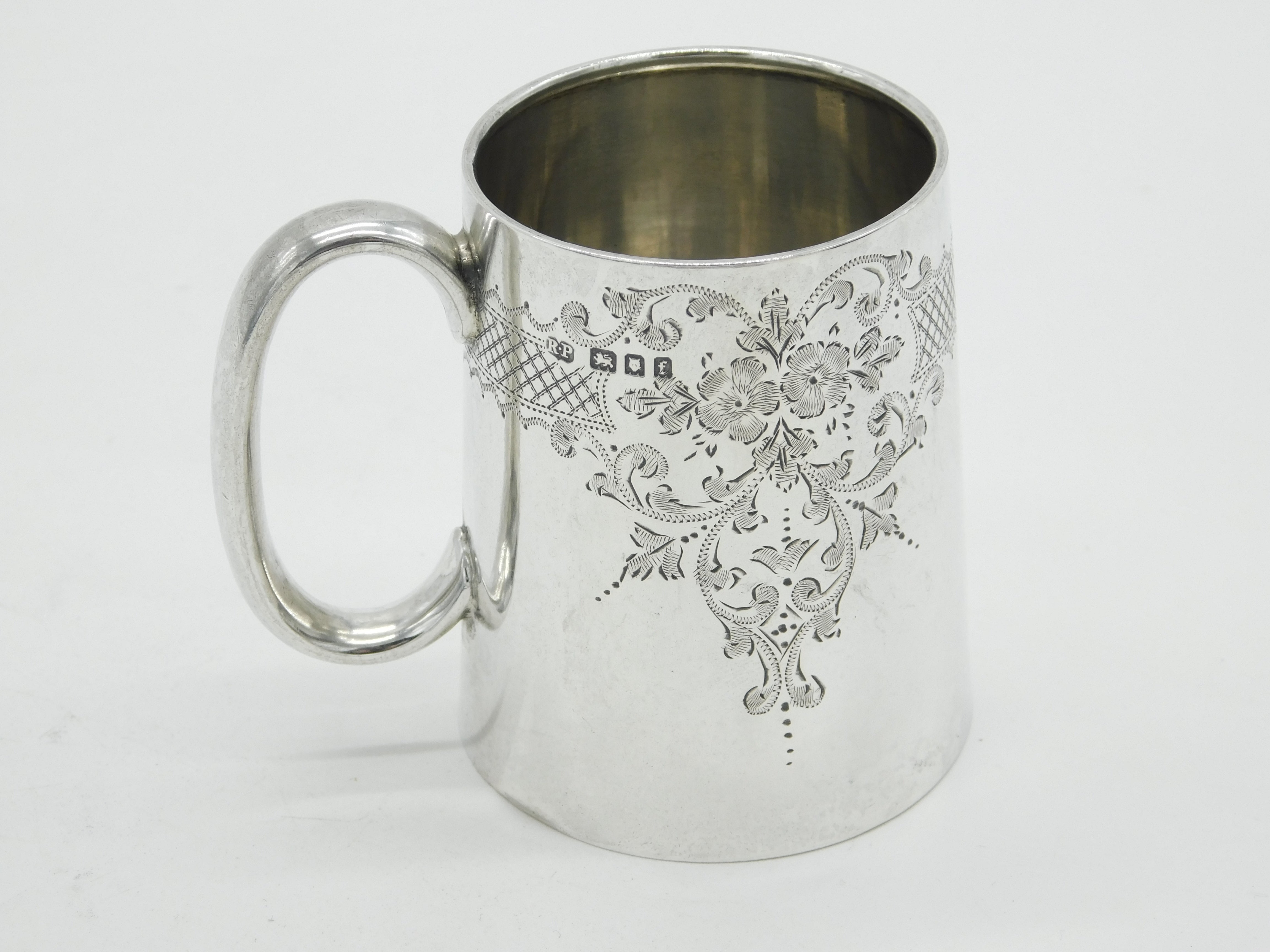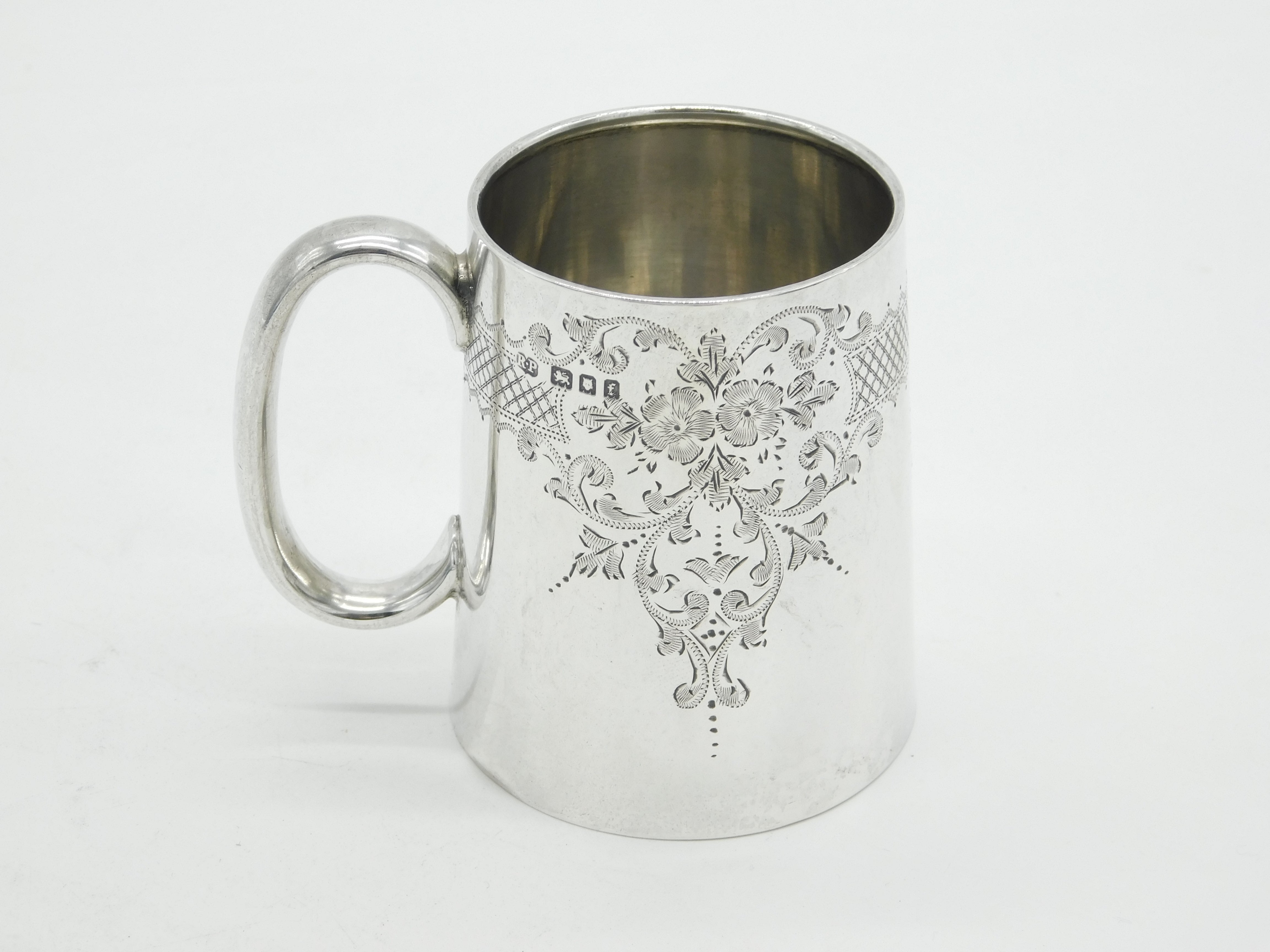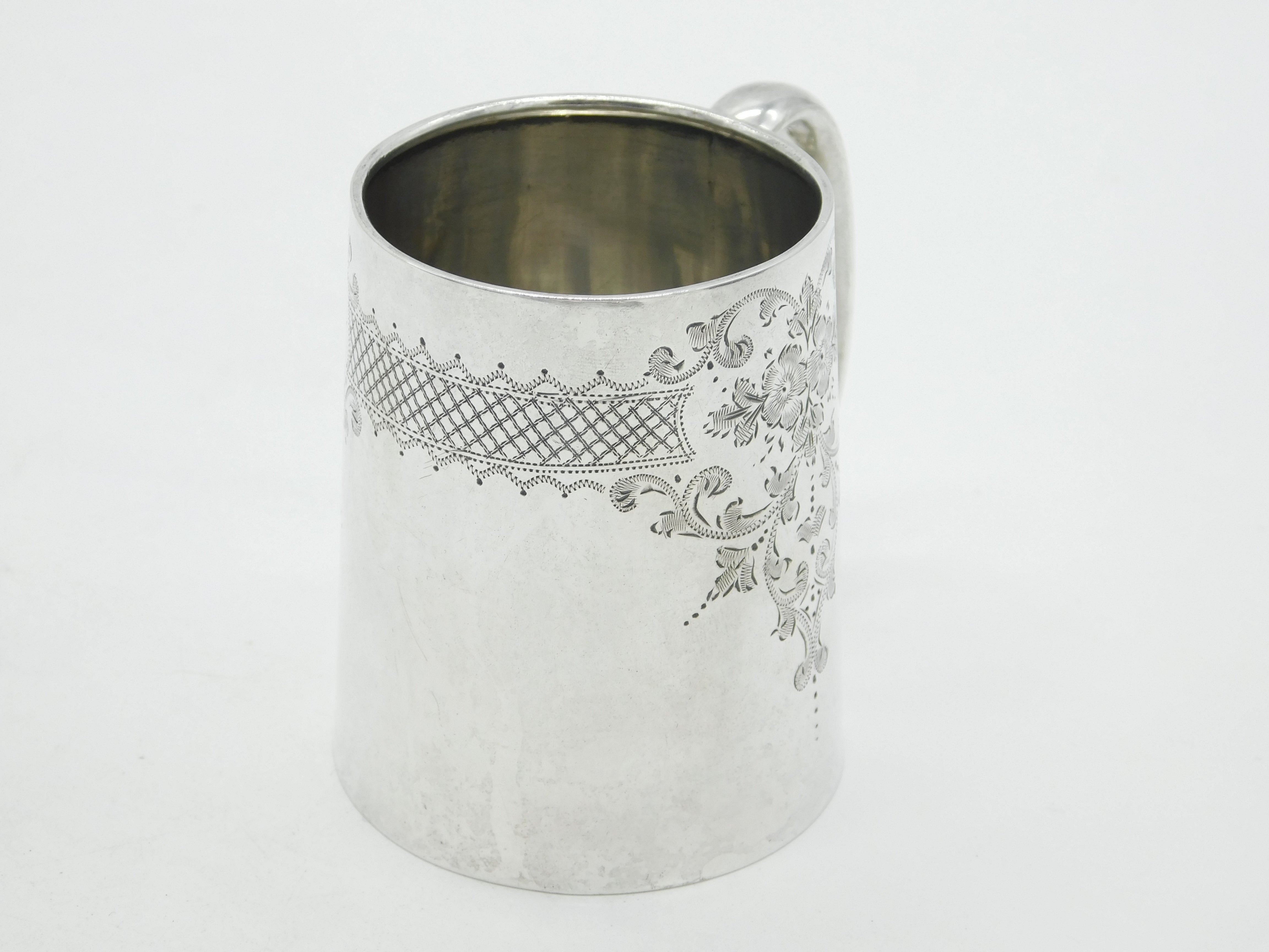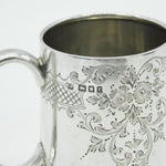 Victorian Sterling Silver Floral Pattern Christening Mug Antique 1901 London