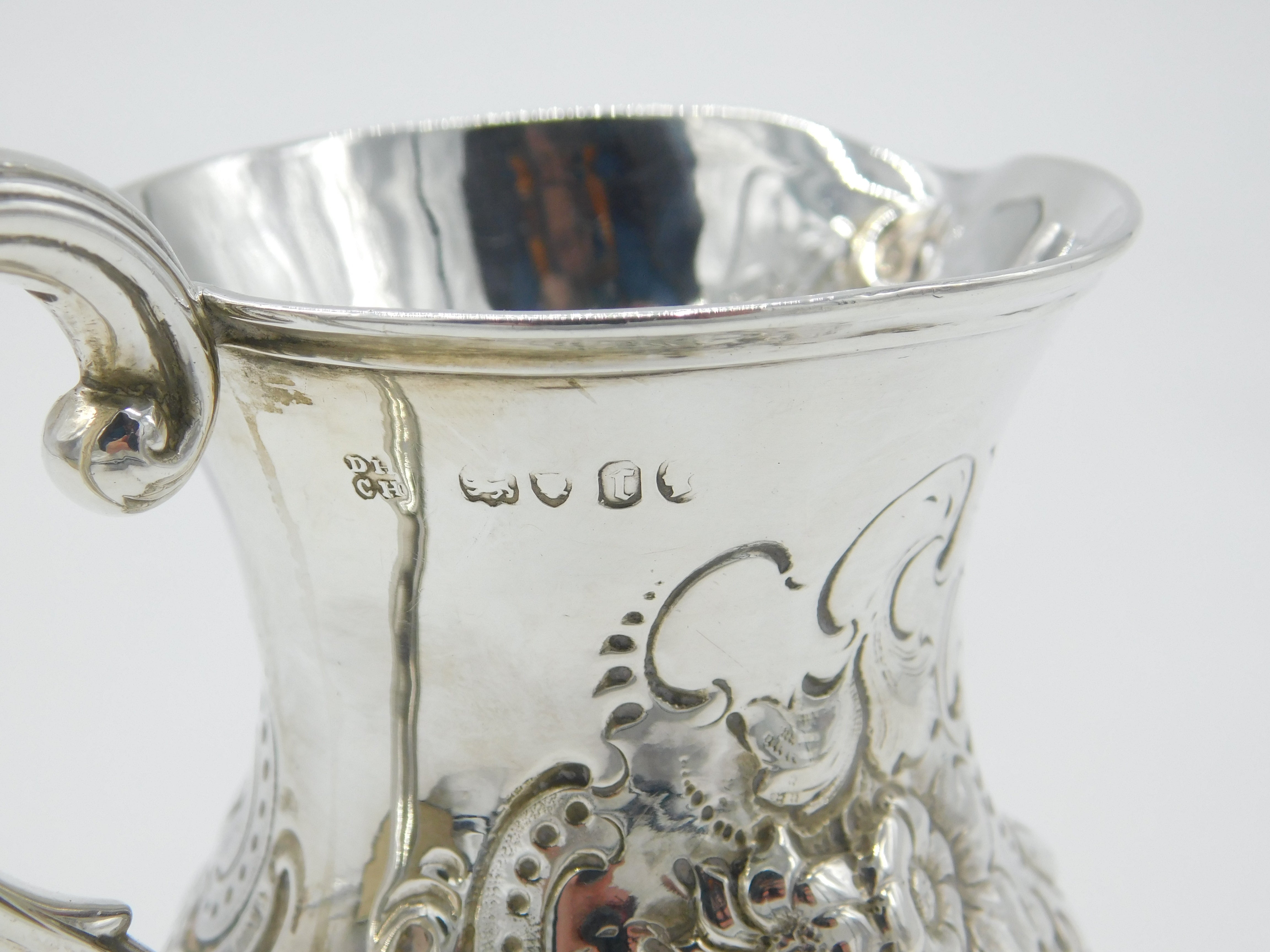 Details: A fantastic and wonderfully designed antique Victorian sterling silver cream or milk jug with charming floral worked repousse patterns throughout hallmarked London 1864 by Daniel & Charles Houle. Engraved to the front and minor dent to the front. This is a wonderful item that would make a perfect gift or addition to any collection. The BOX pictured is for PRESENTATION ONLY and is NOT included in the listings but used to frame the pictures unless specifically stated otherwise.