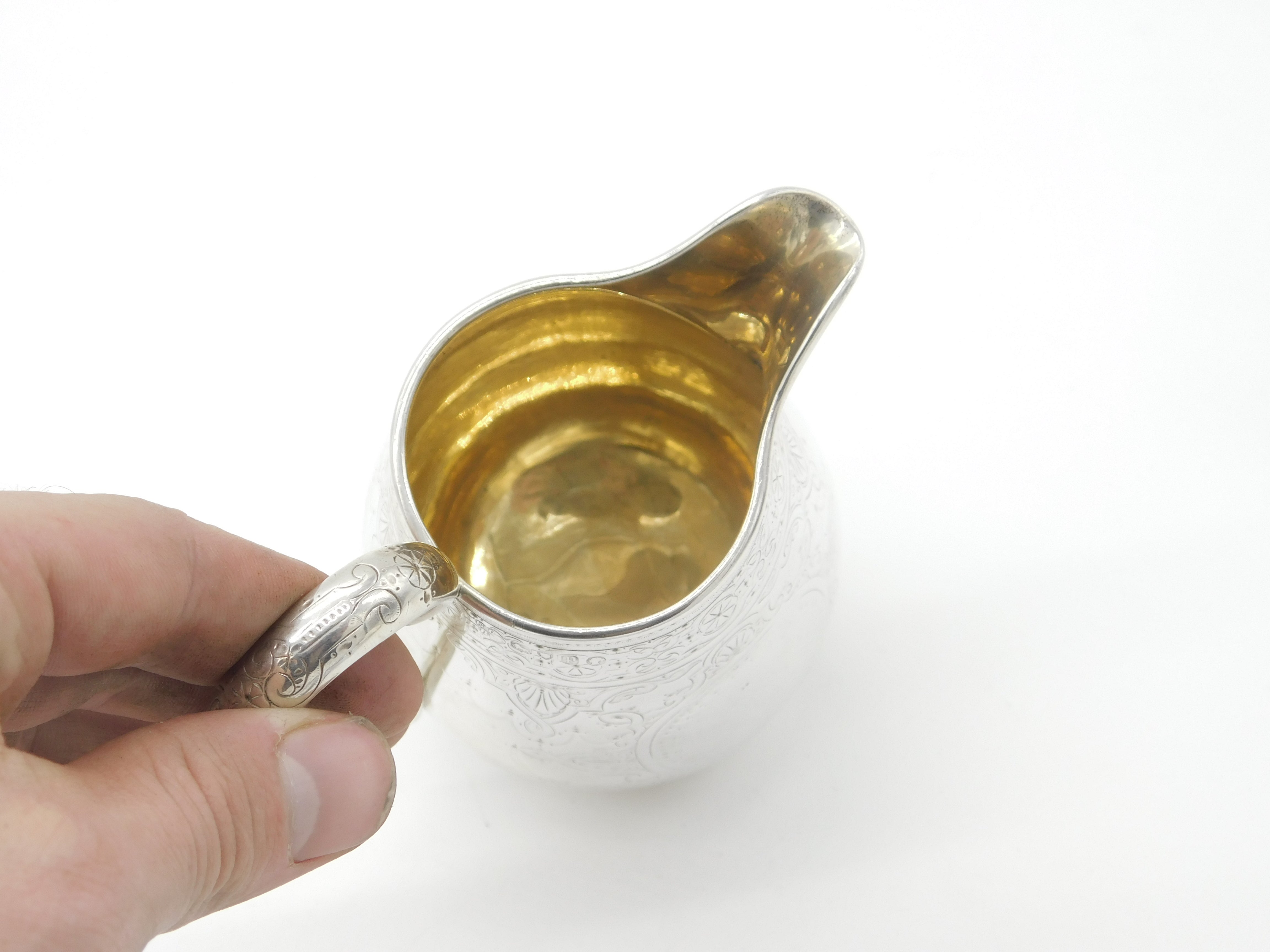 Victorian Sterling Silver Floral Pattern Cream Jug 1870 London Antique