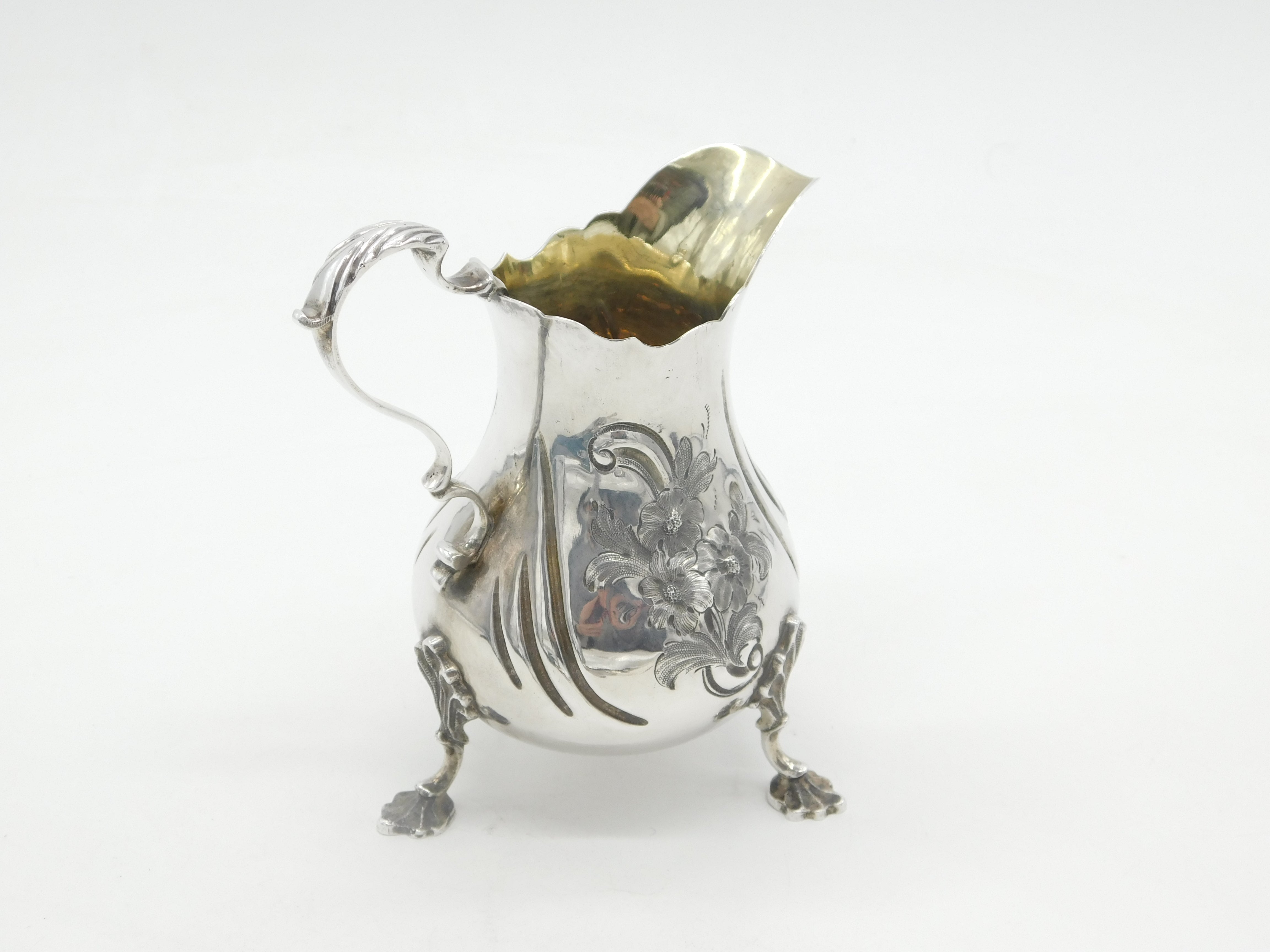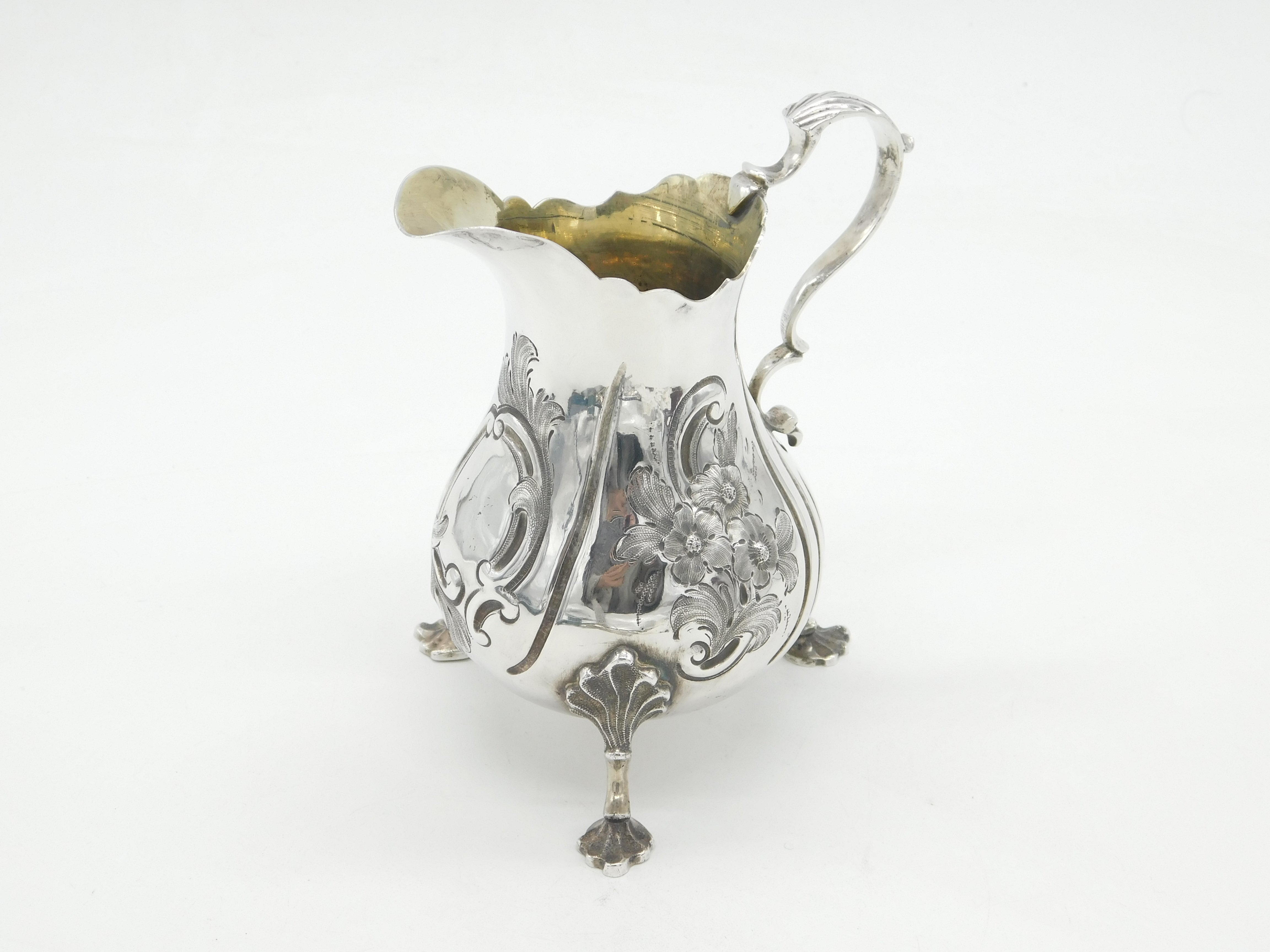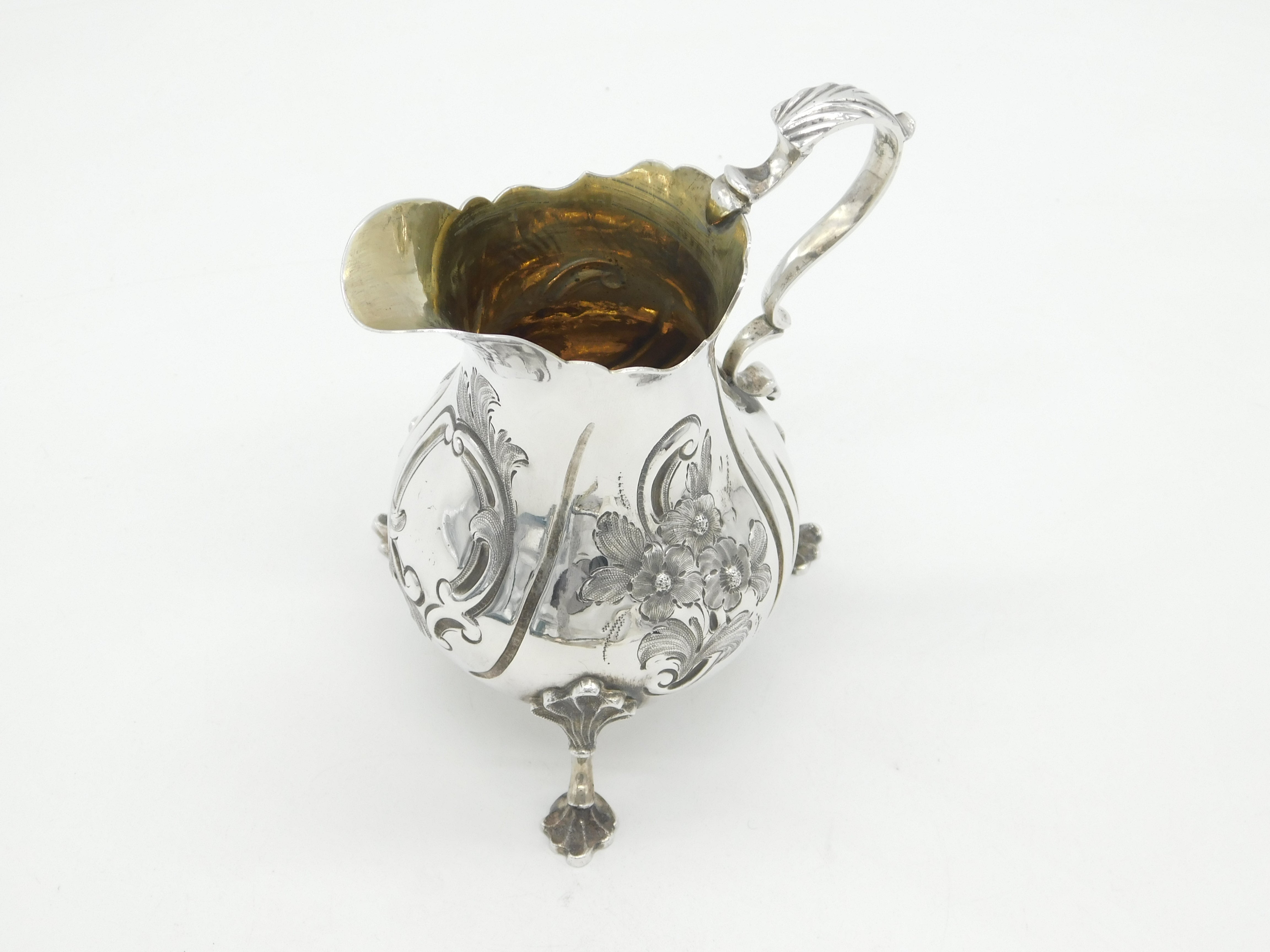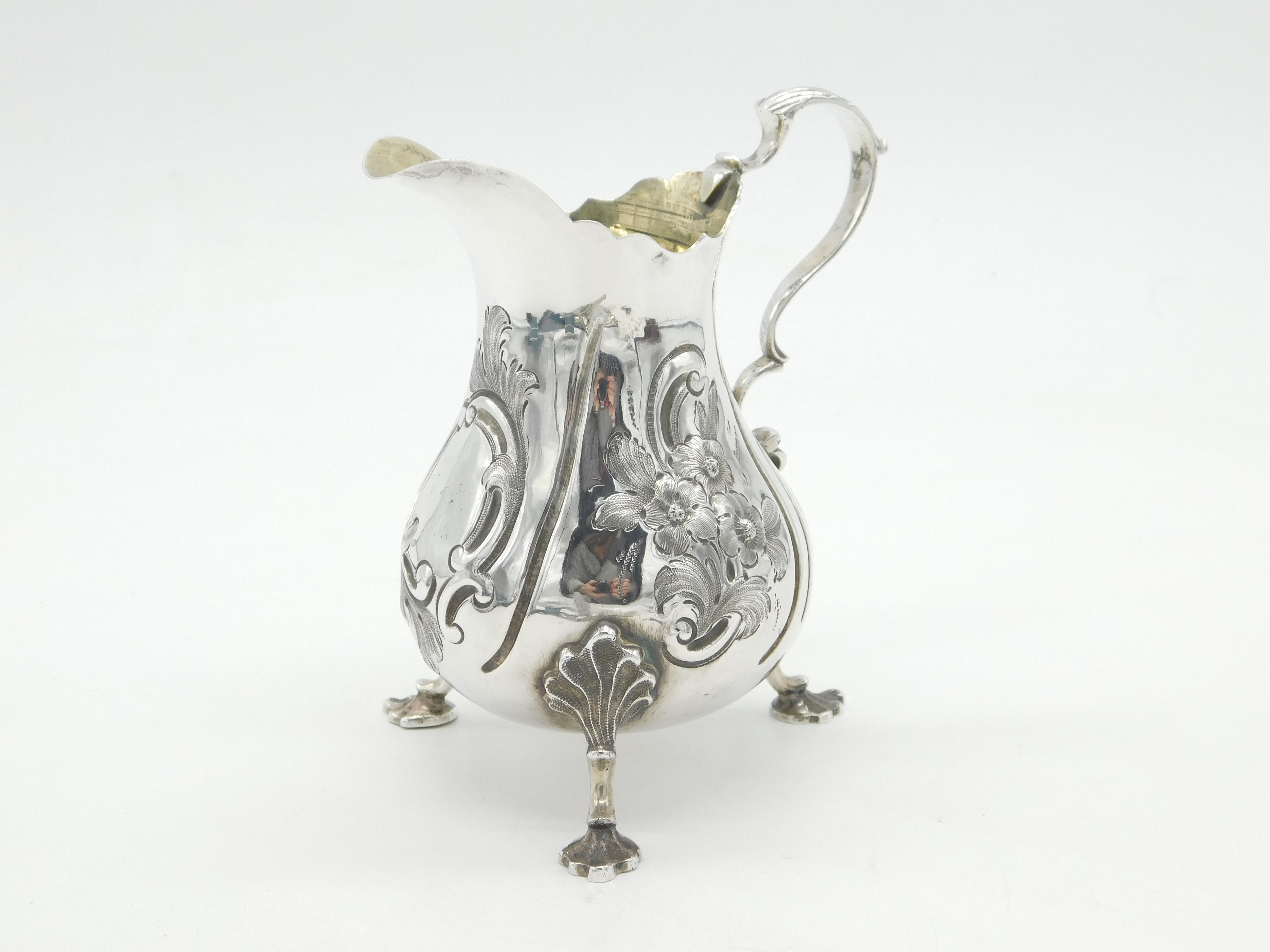 Victorian Sterling Silver Floral Pattern Cream Jug Antique 1854 London
