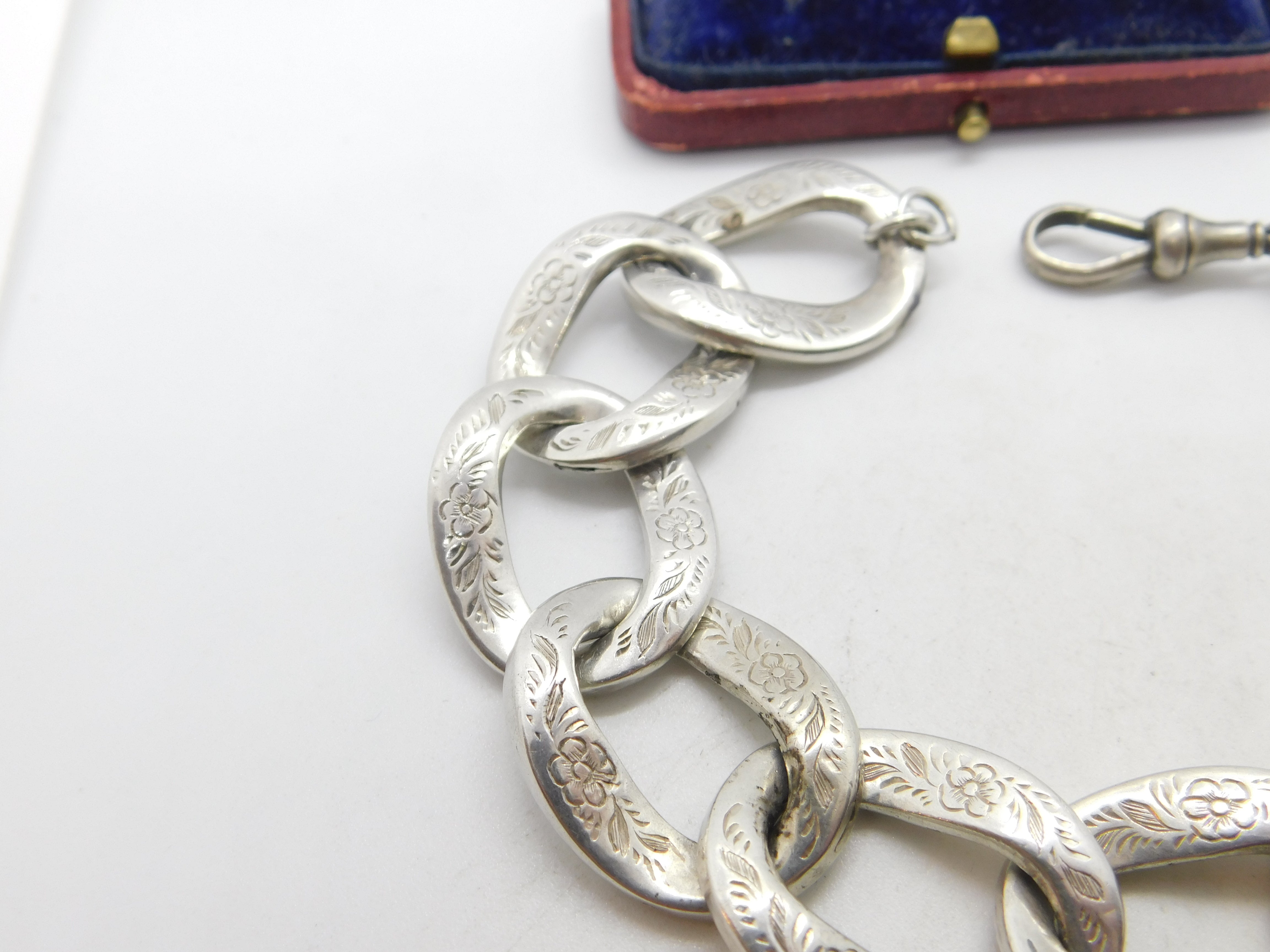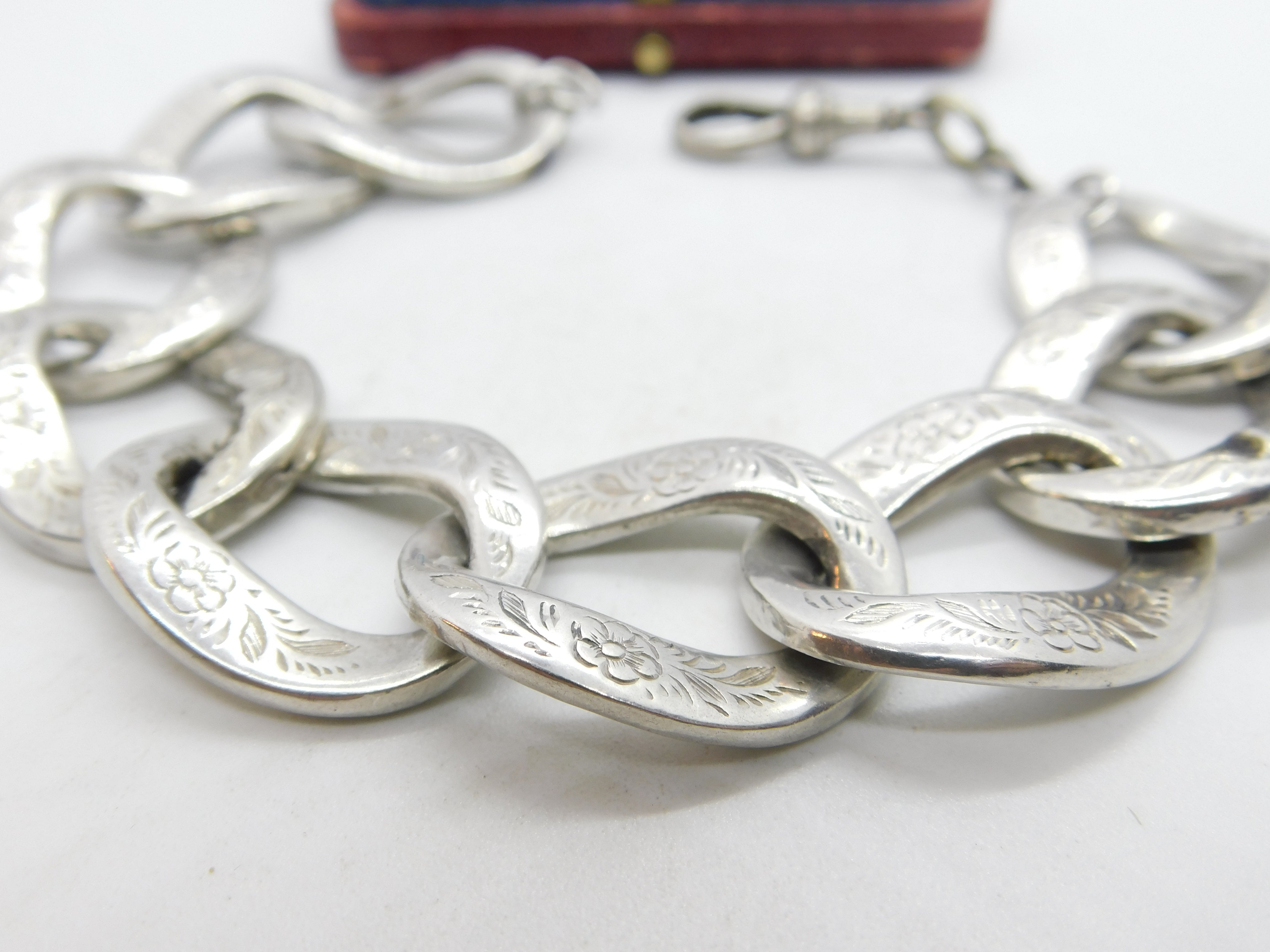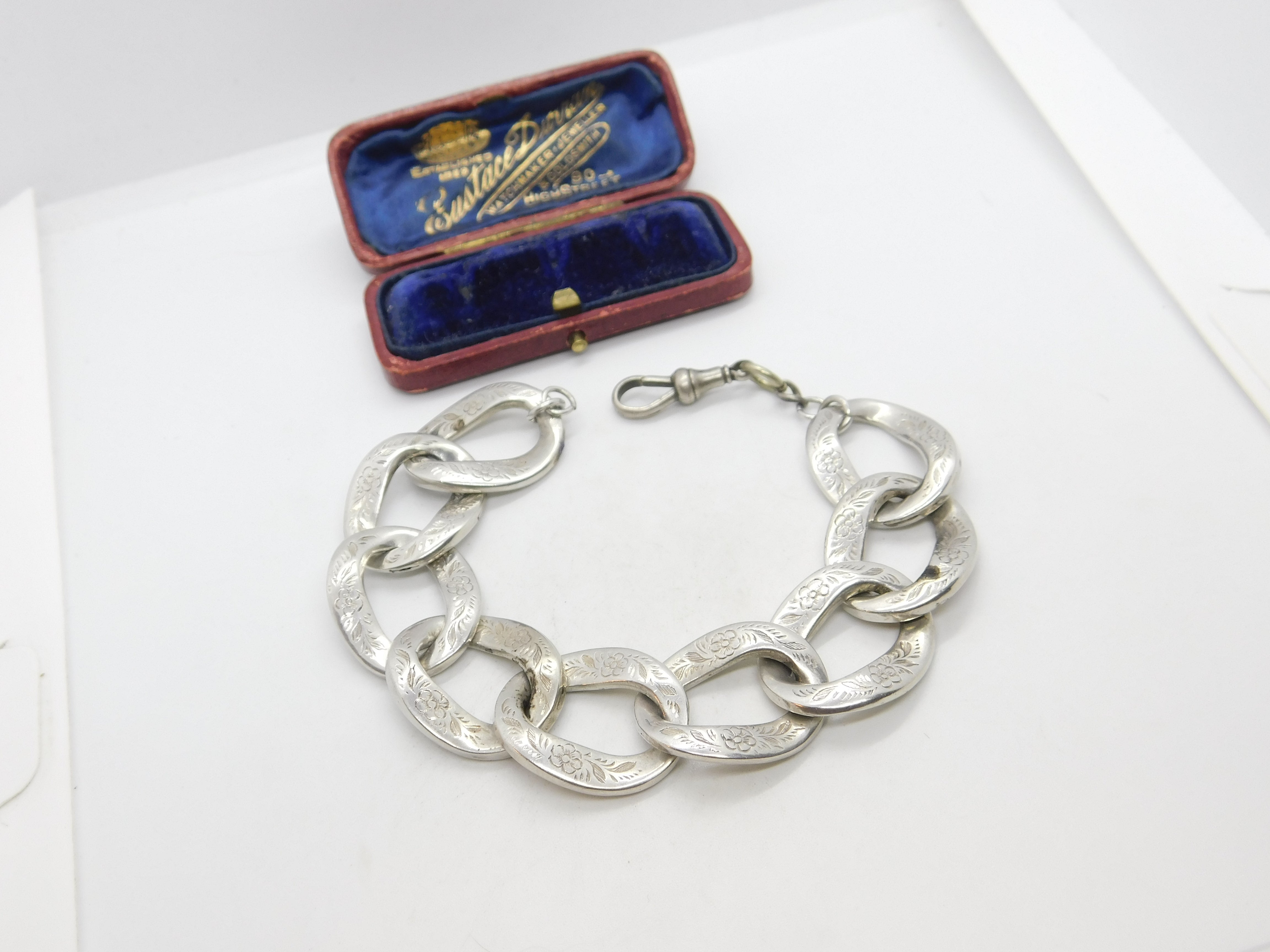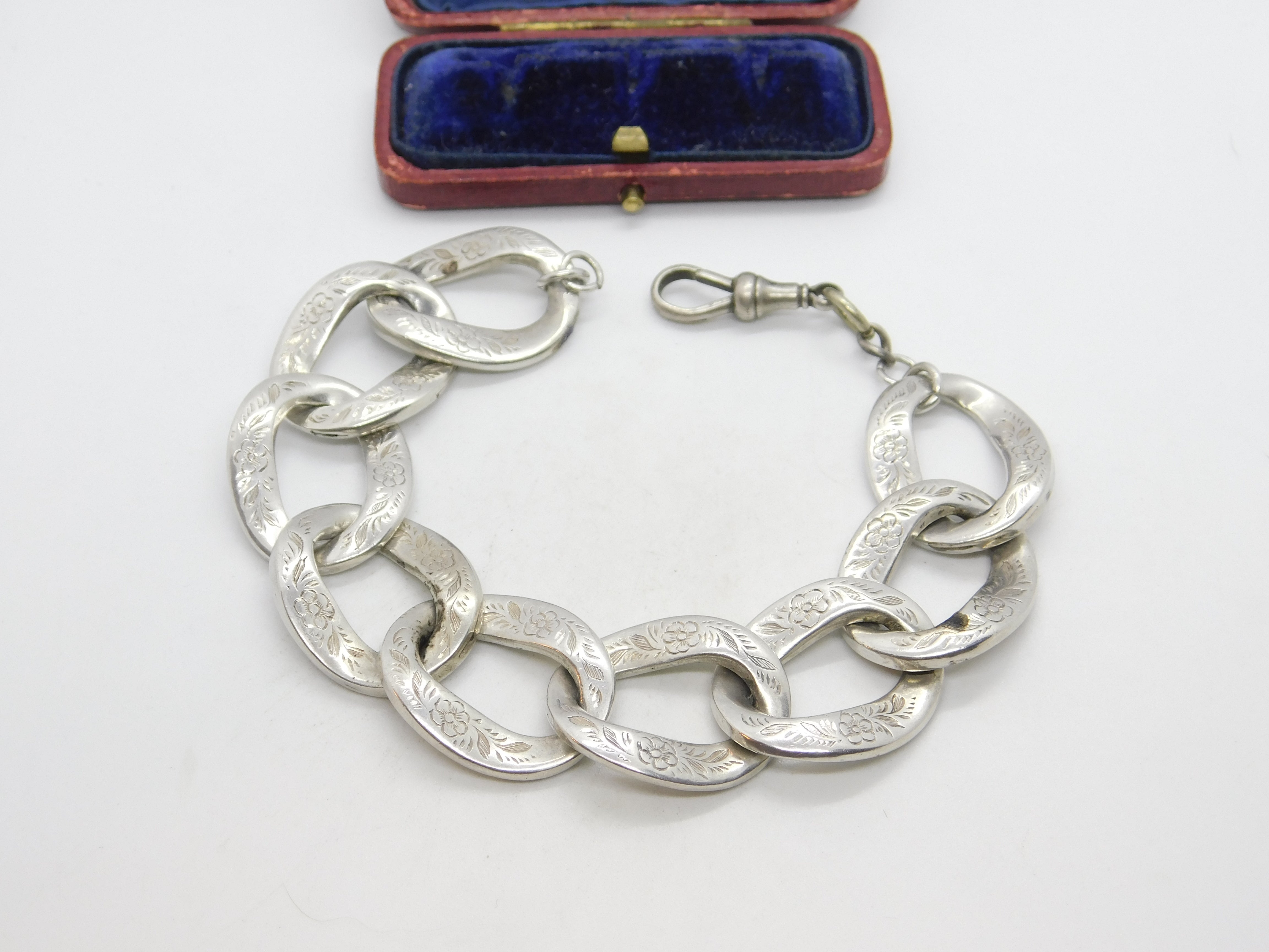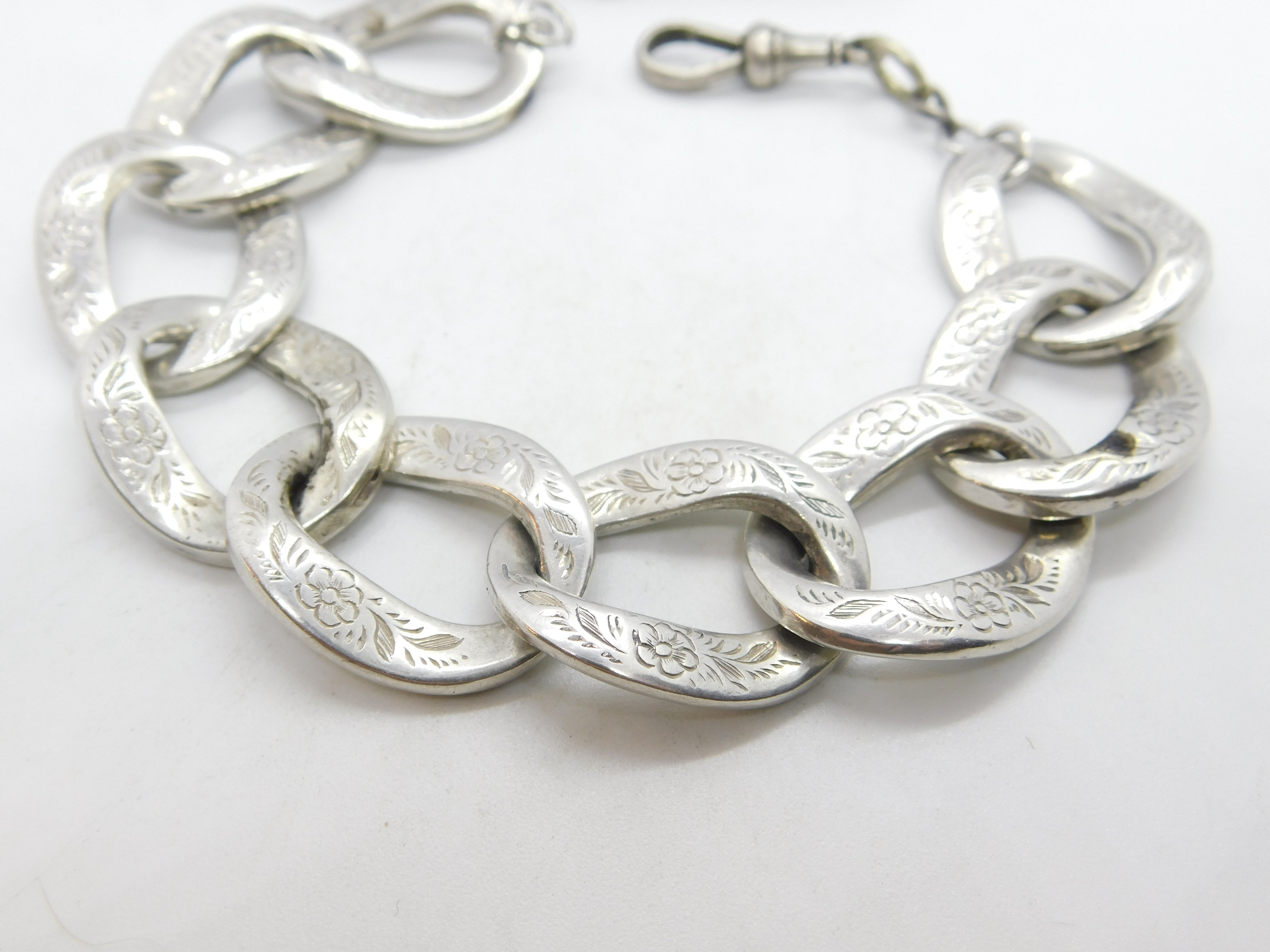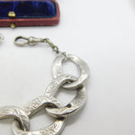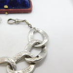 Victorian Sterling Silver Floral Pattern Curb Link Bracelet c1880 Antique