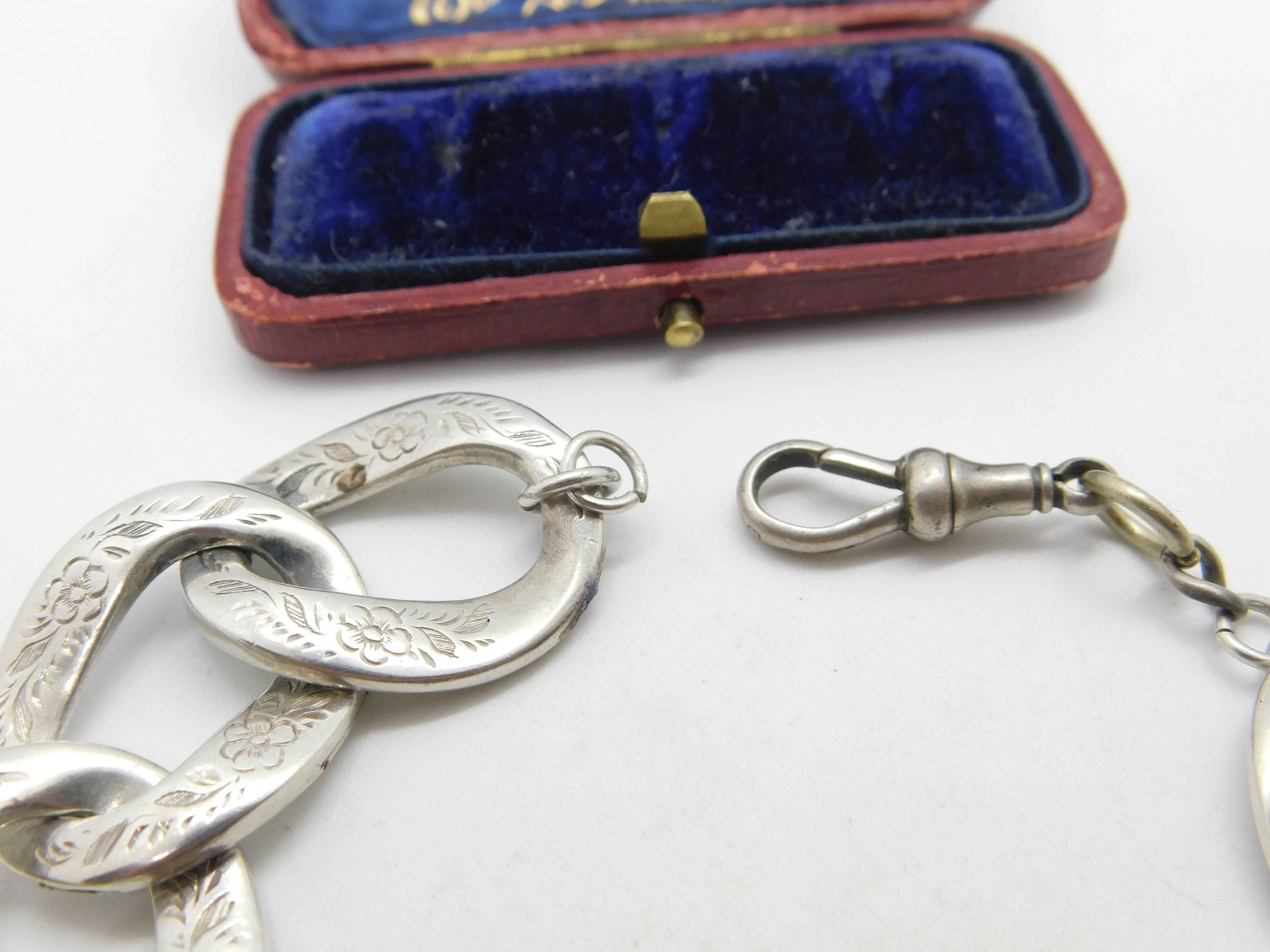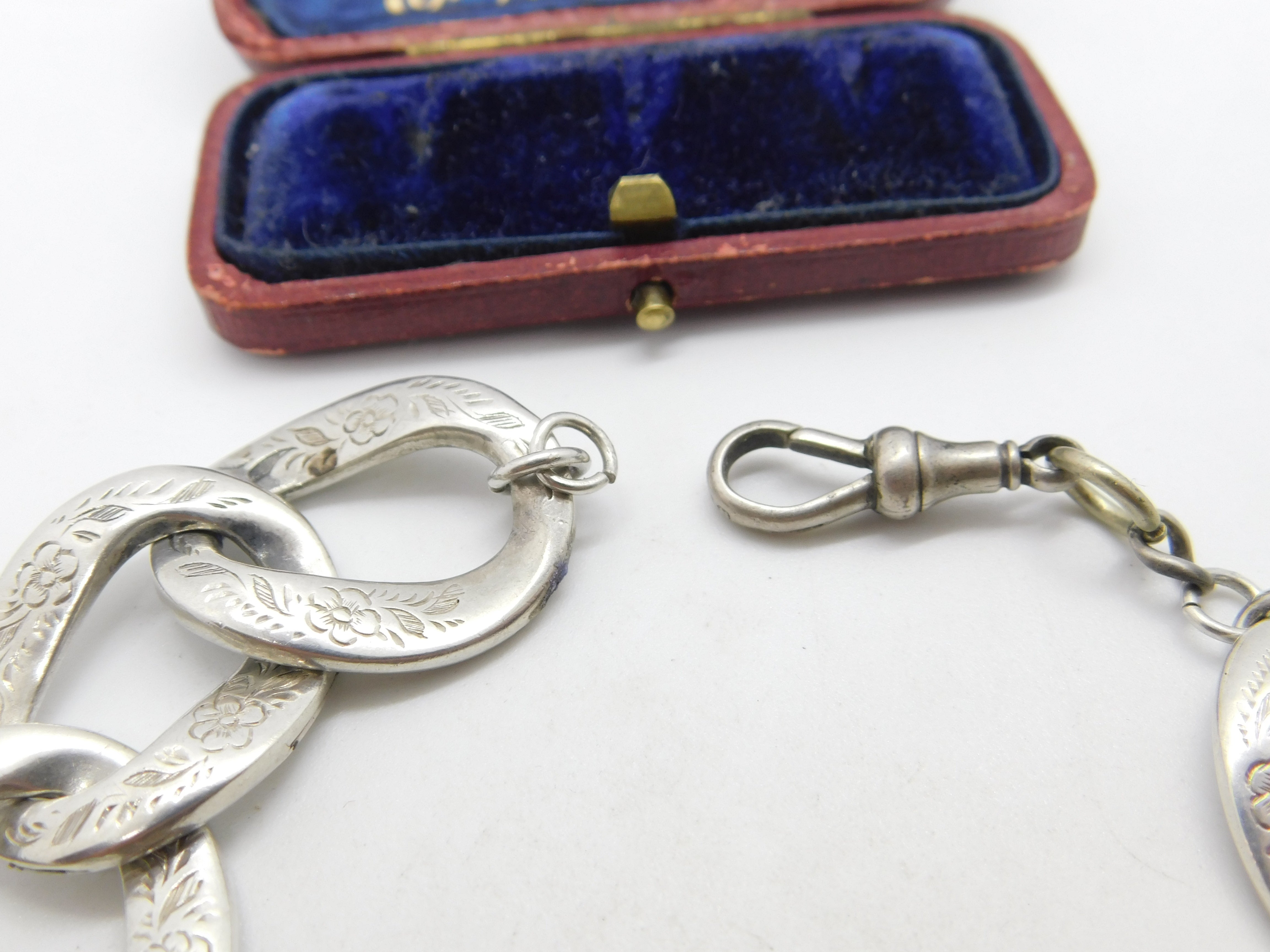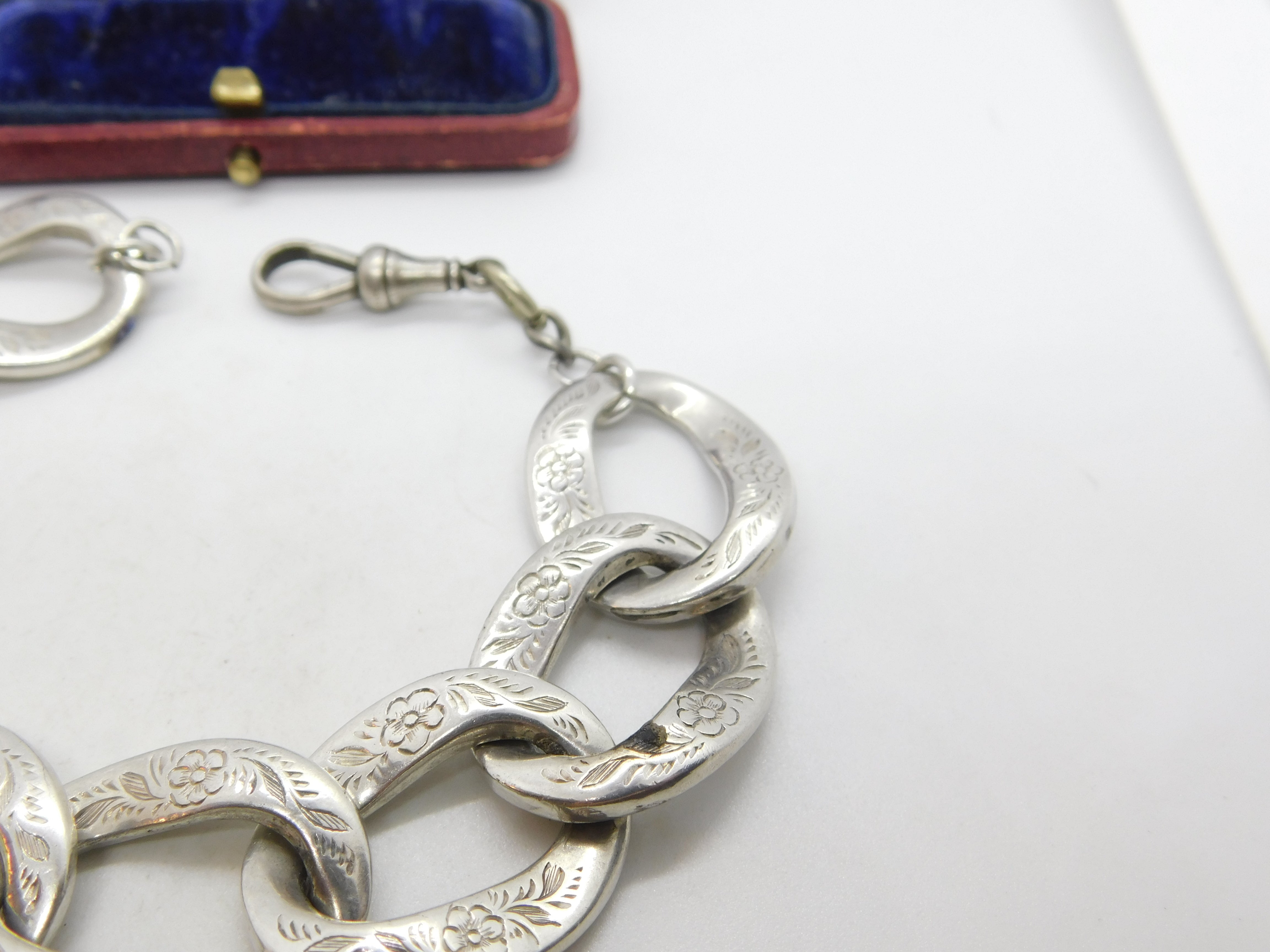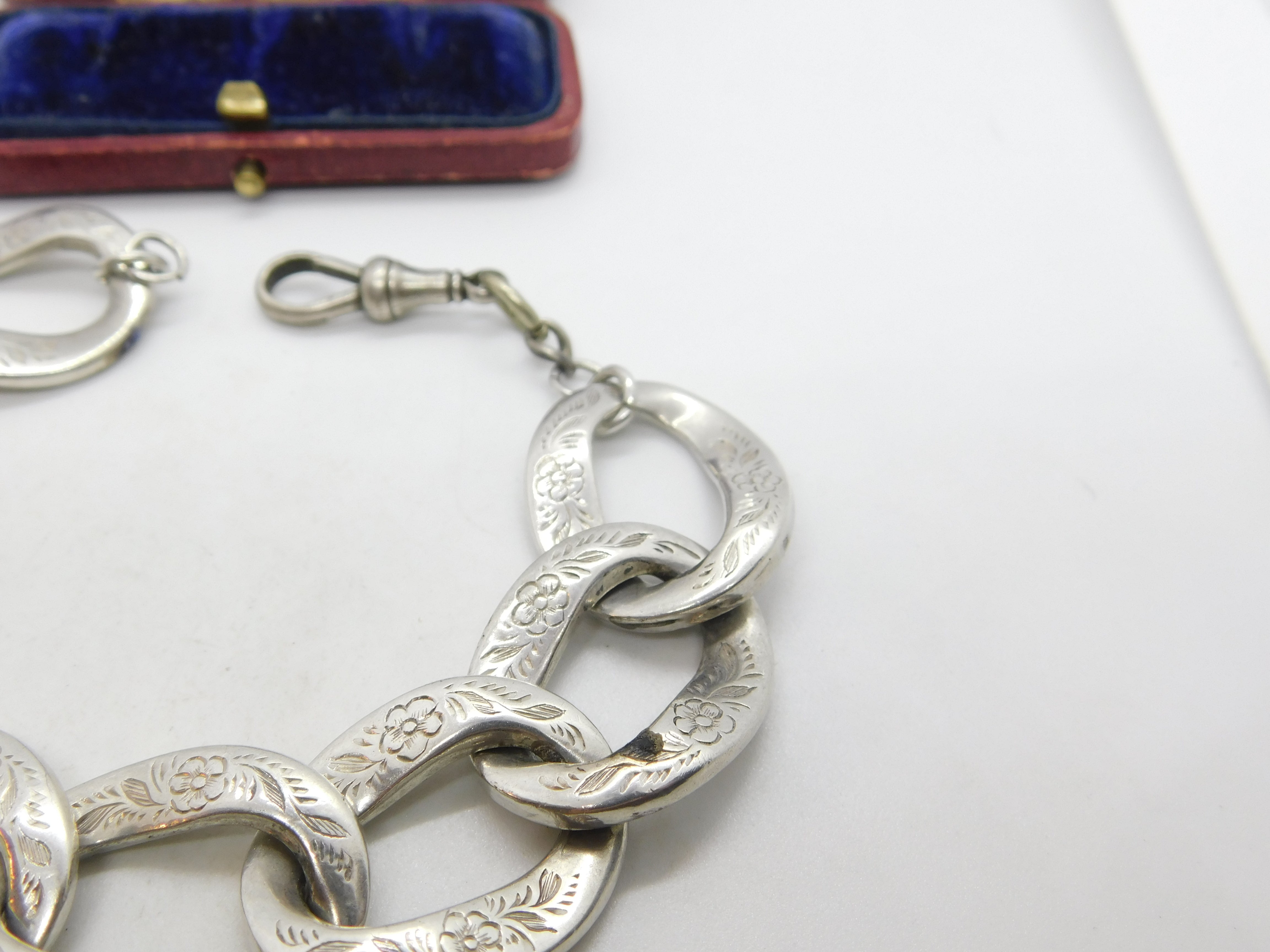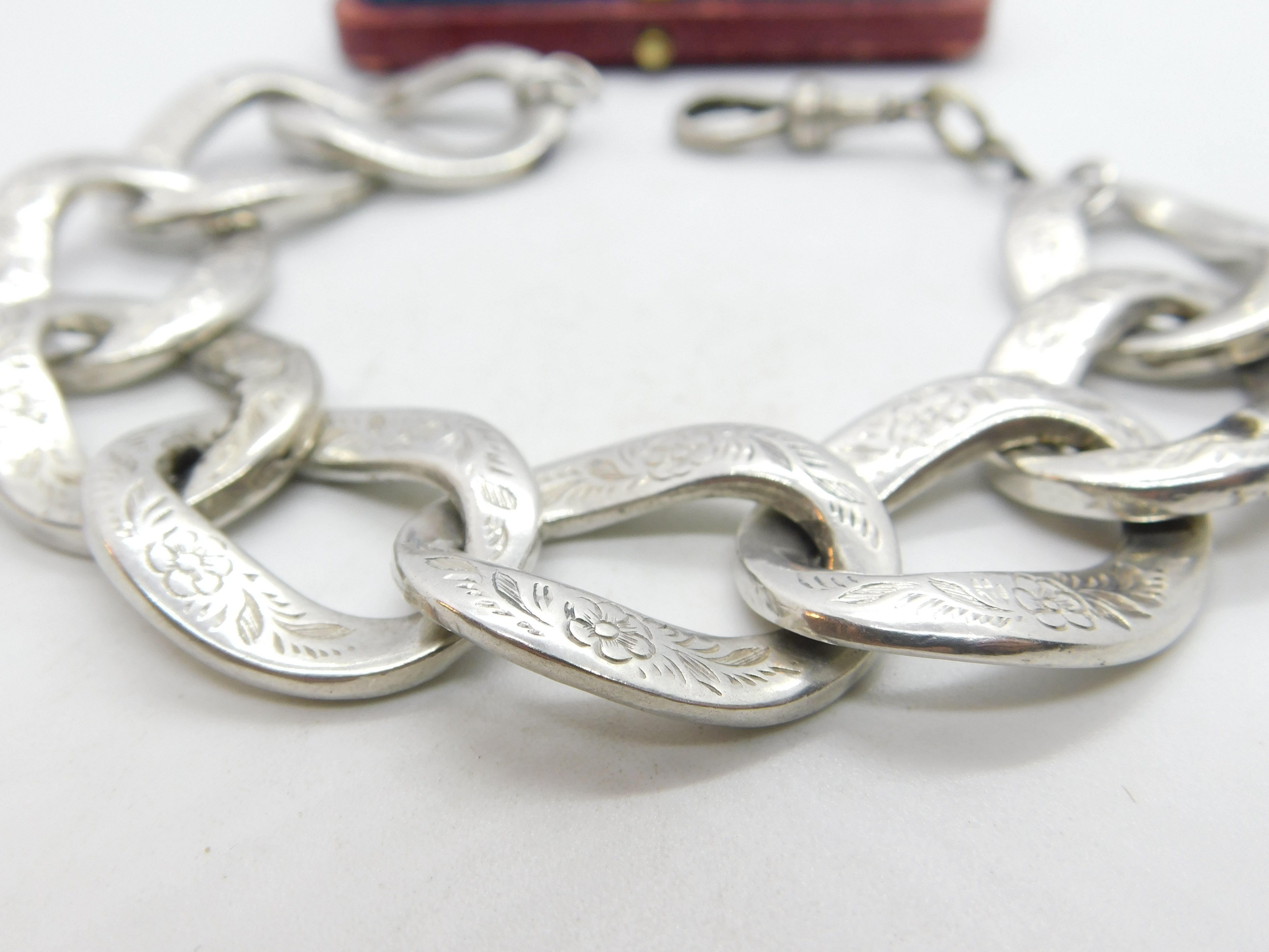 Victorian Sterling Silver Floral Pattern Curb Link Bracelet c1880 Antique