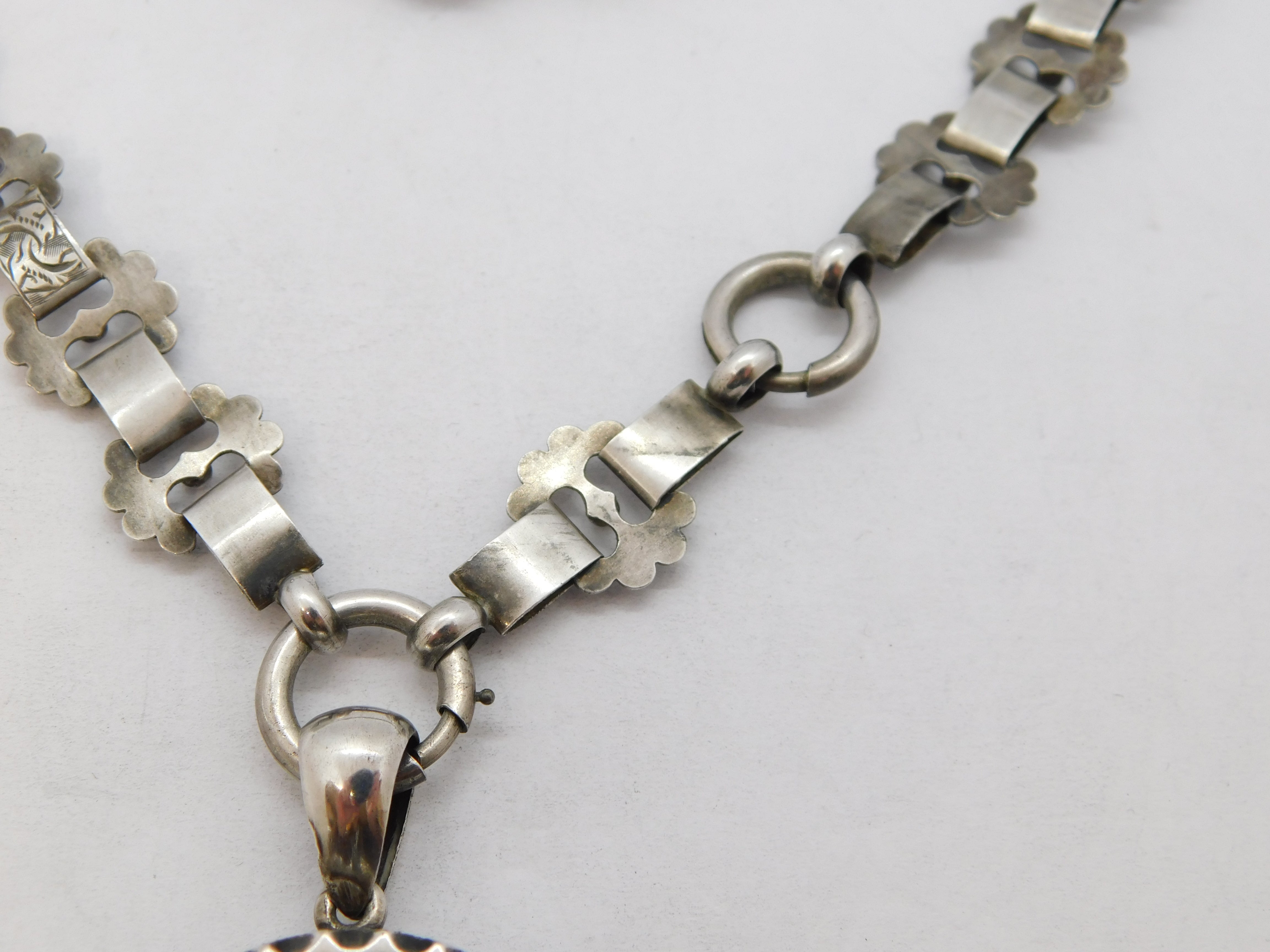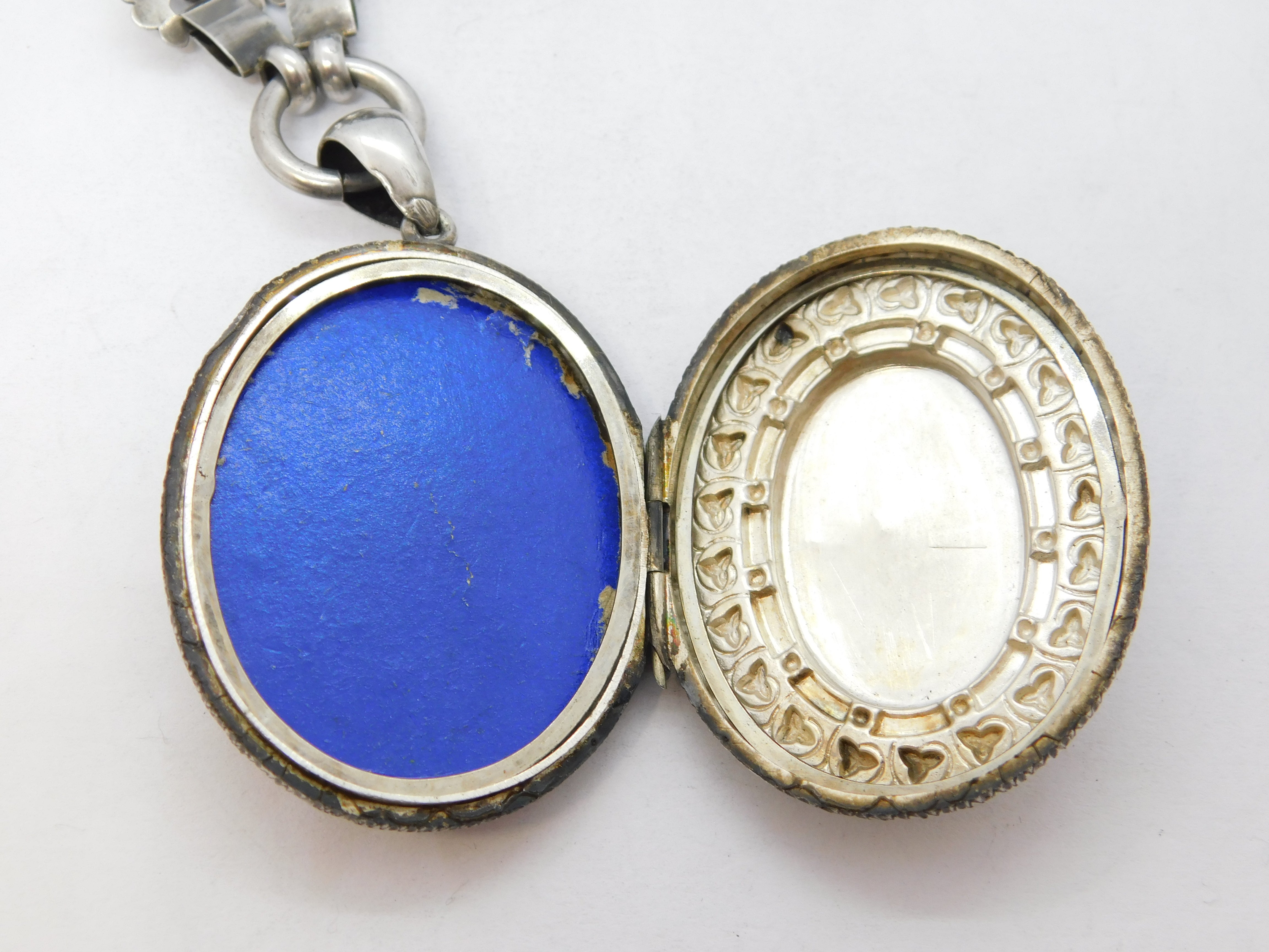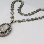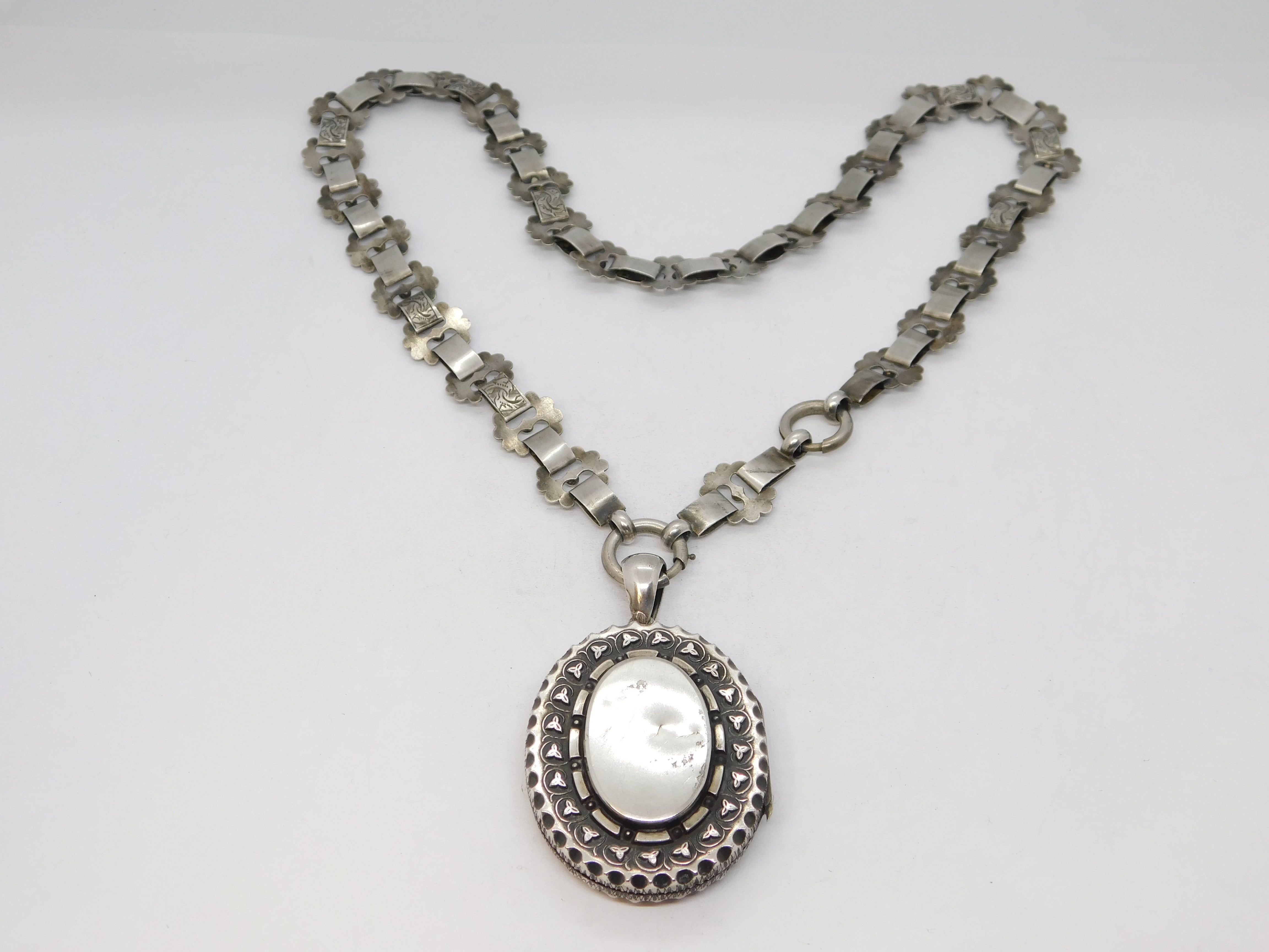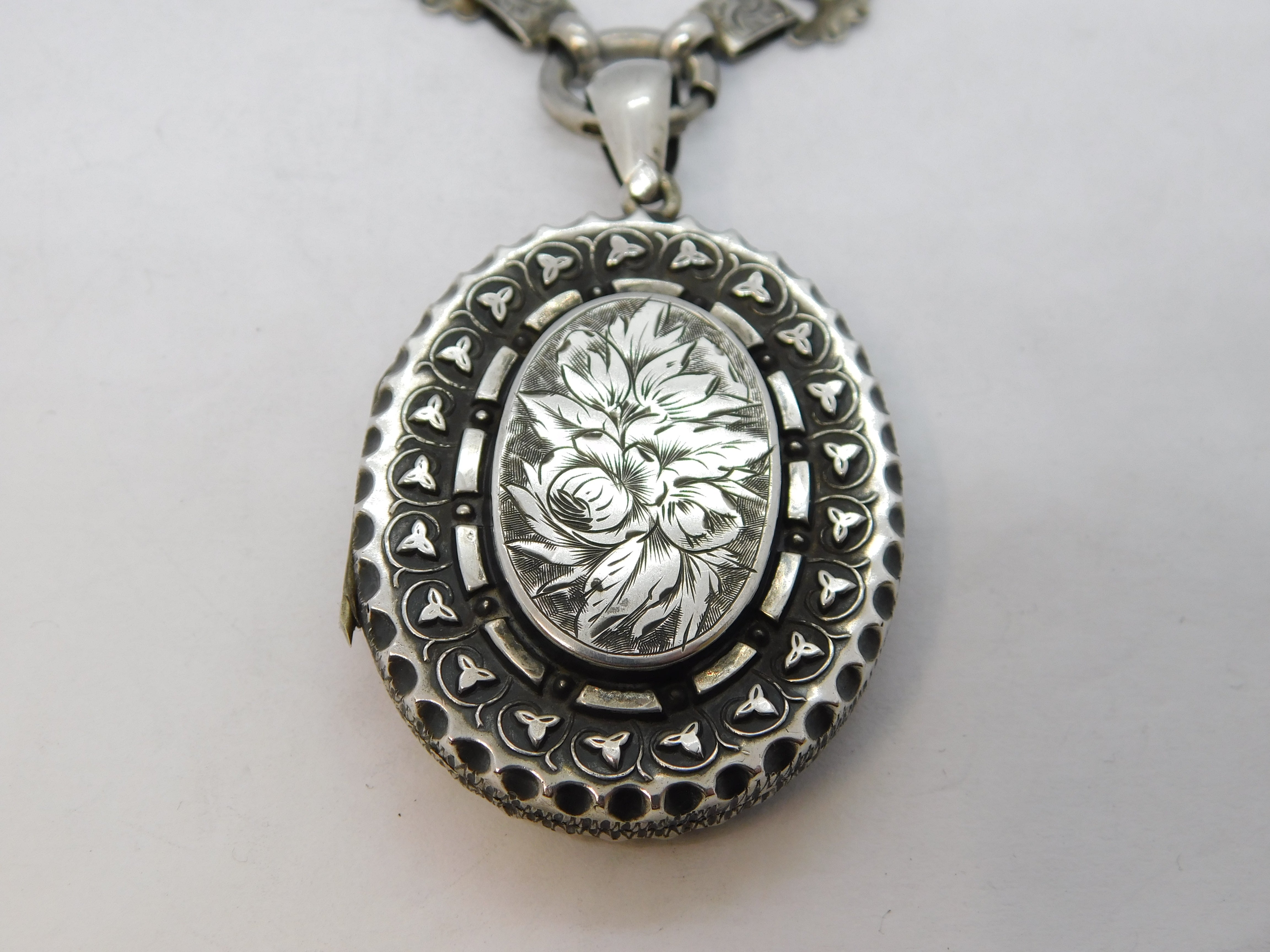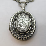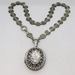 Victorian Sterling Silver Floral Pattern Mourning Locket Collar Antique c1860