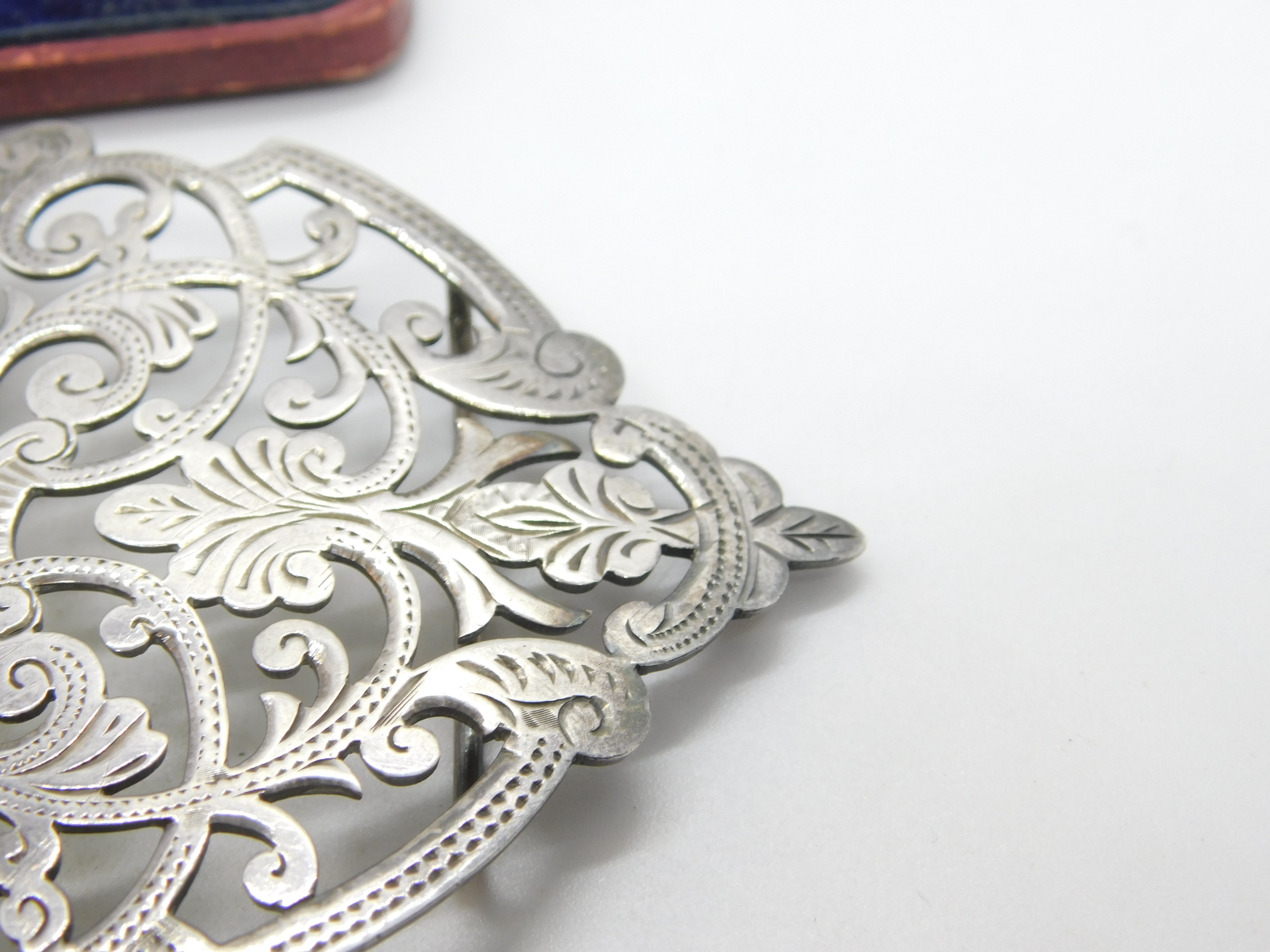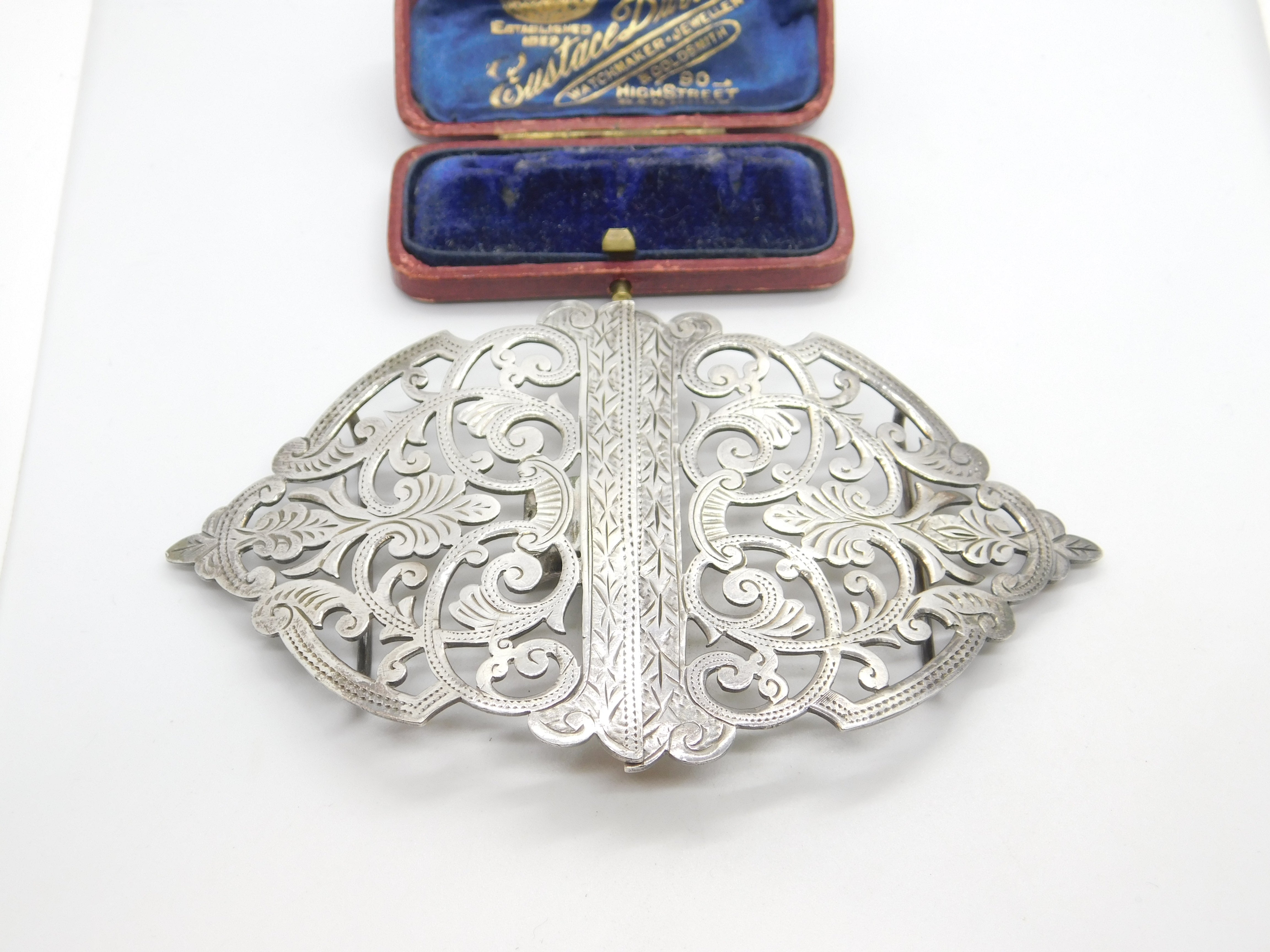 Victorian Sterling Silver Floral Pattern Nurse's Belt Buckle 1888 Birmingham