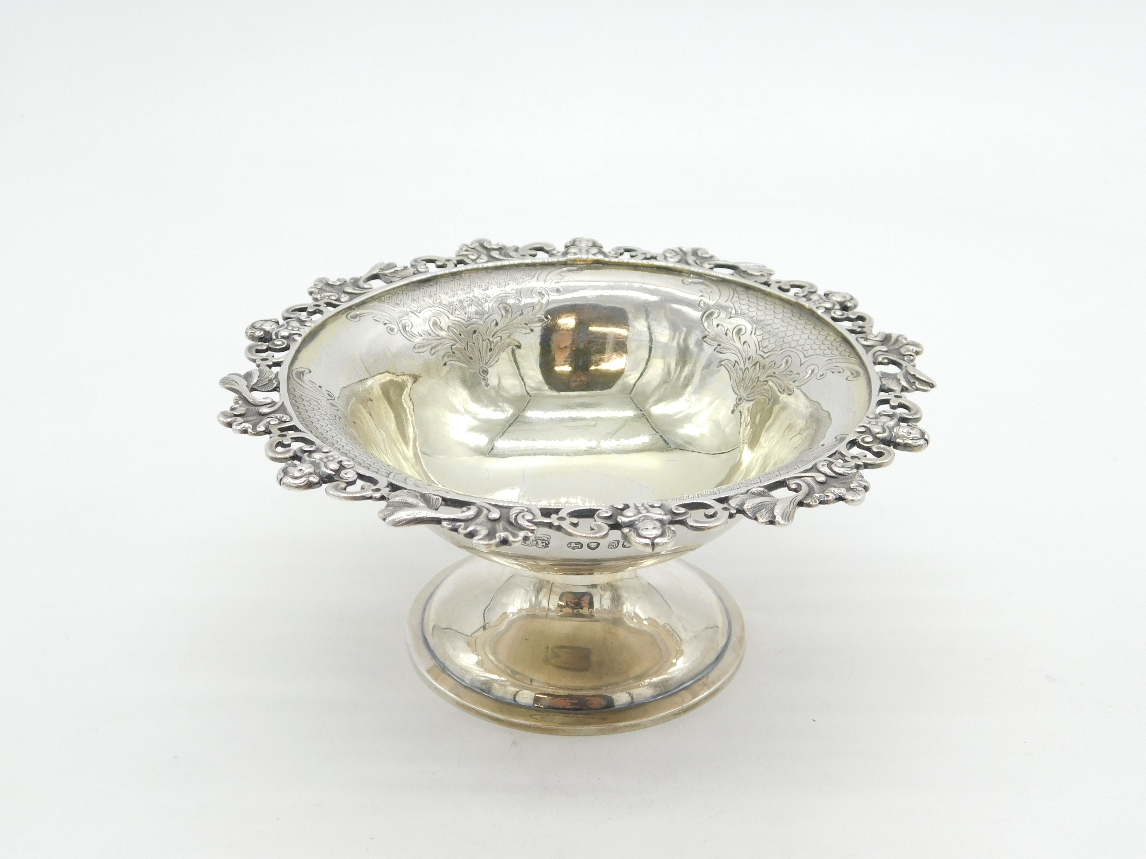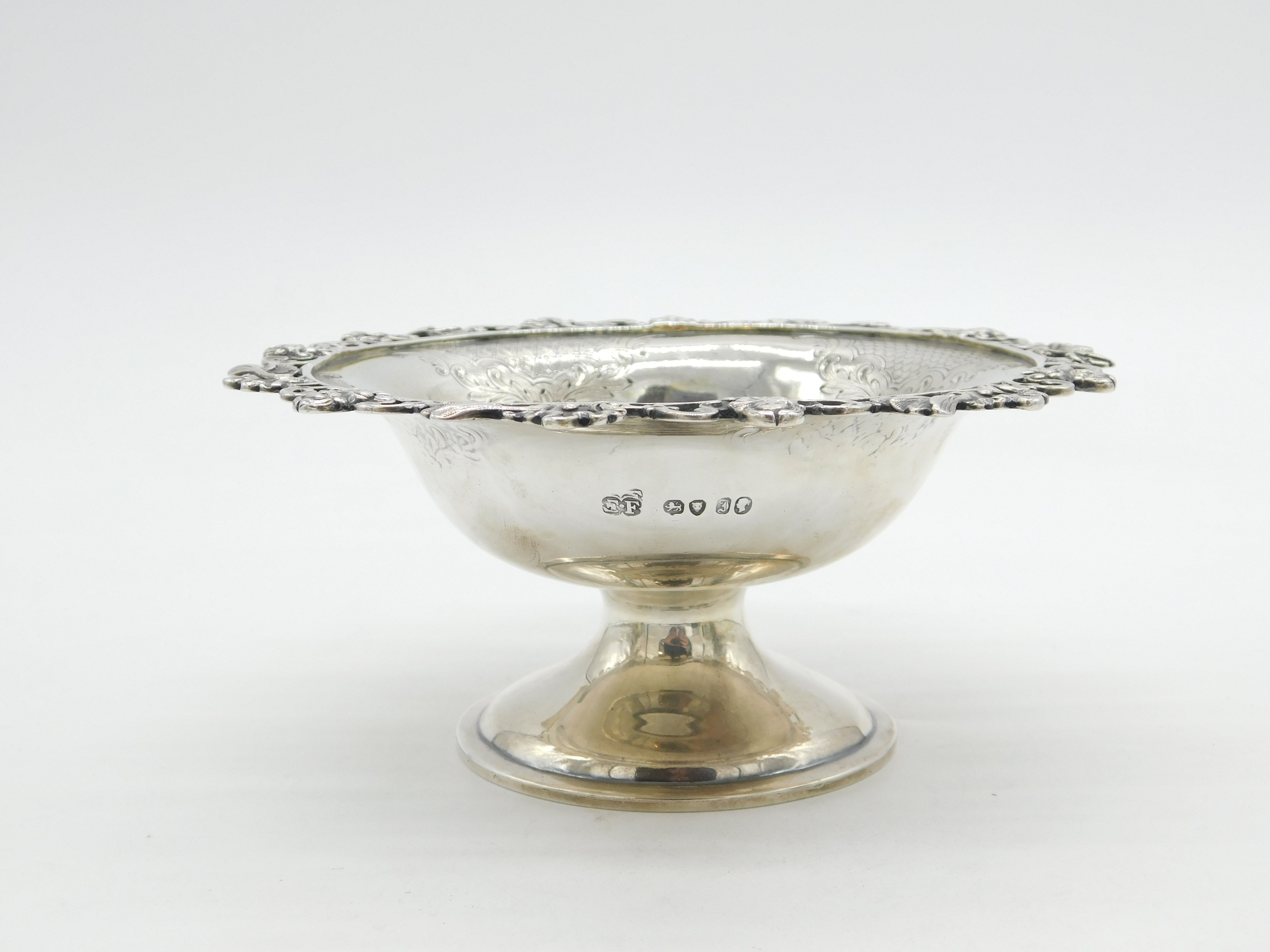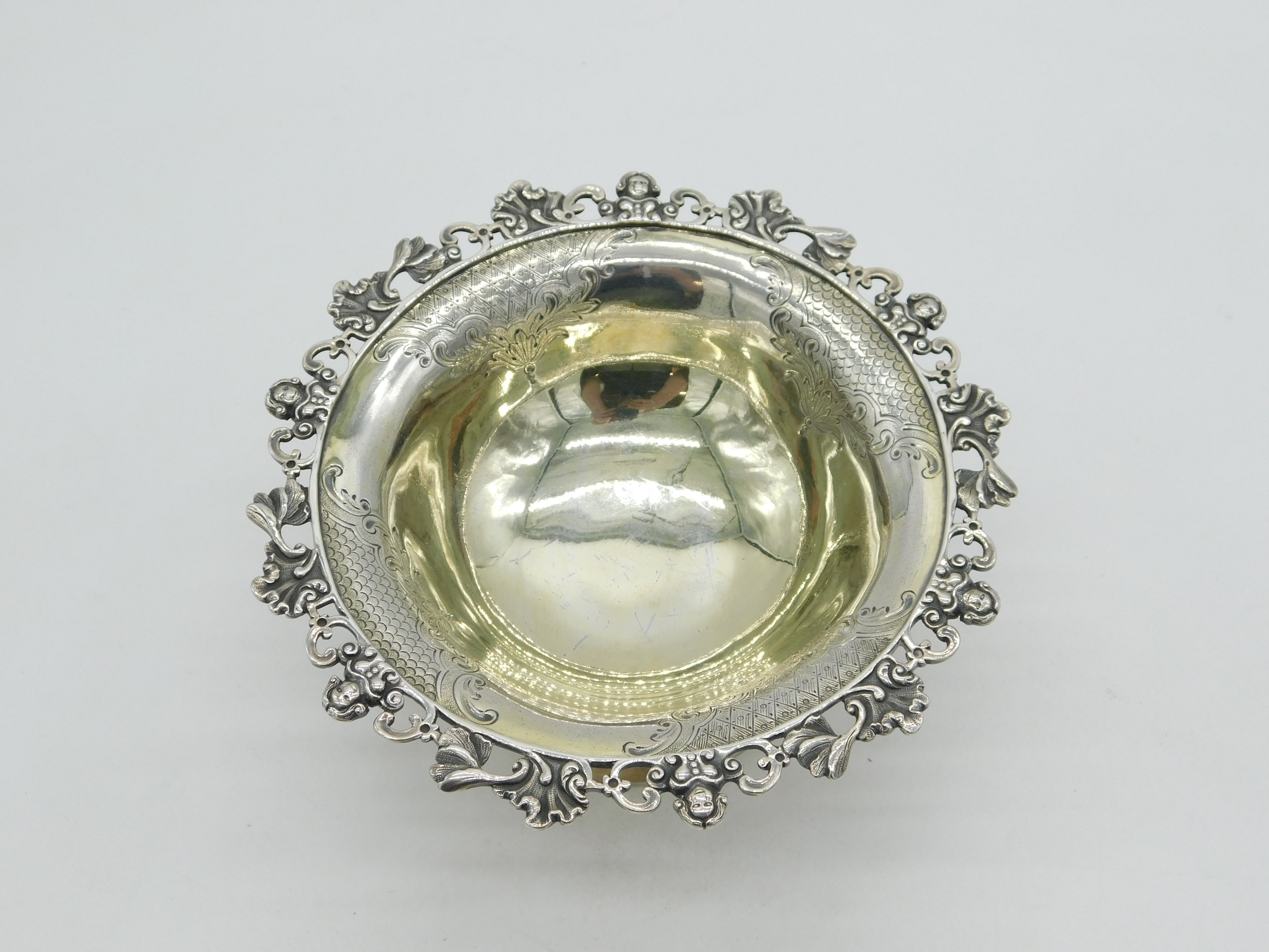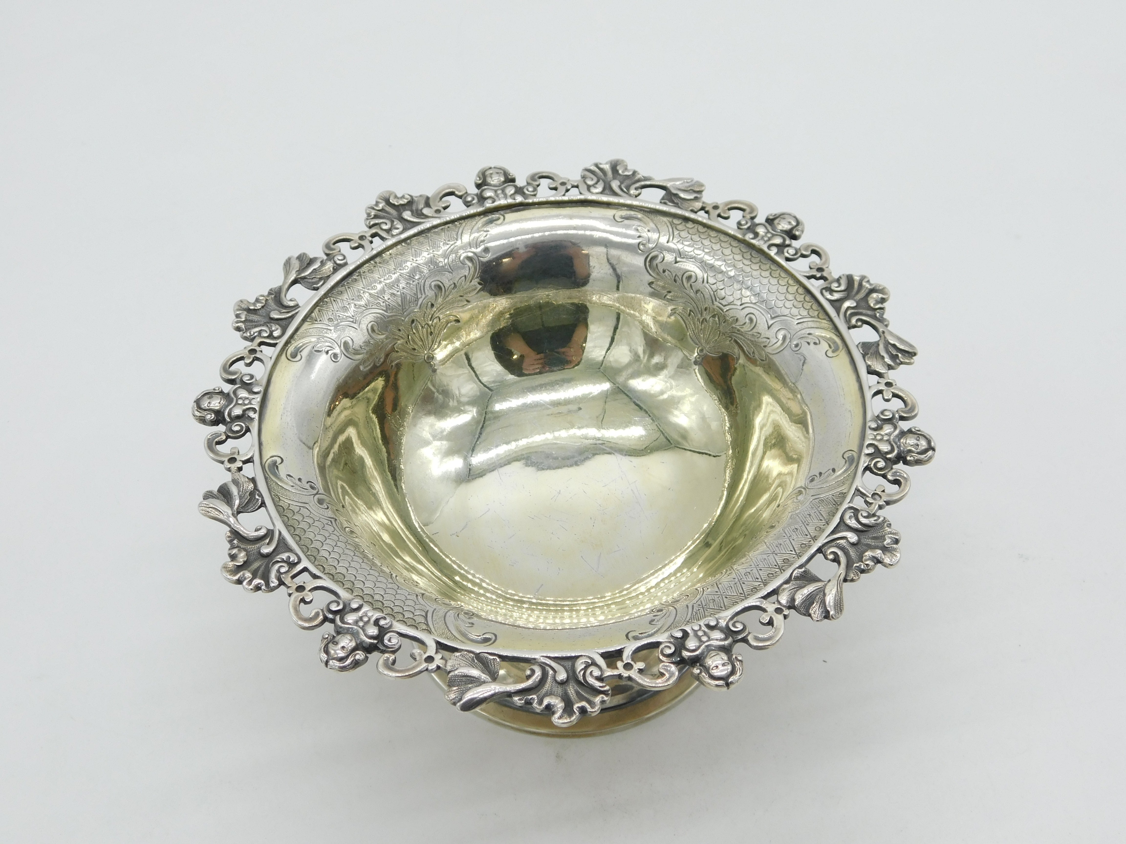 Victorian Sterling Silver Floral Pattern Pedestal Dish Antique 1844 London