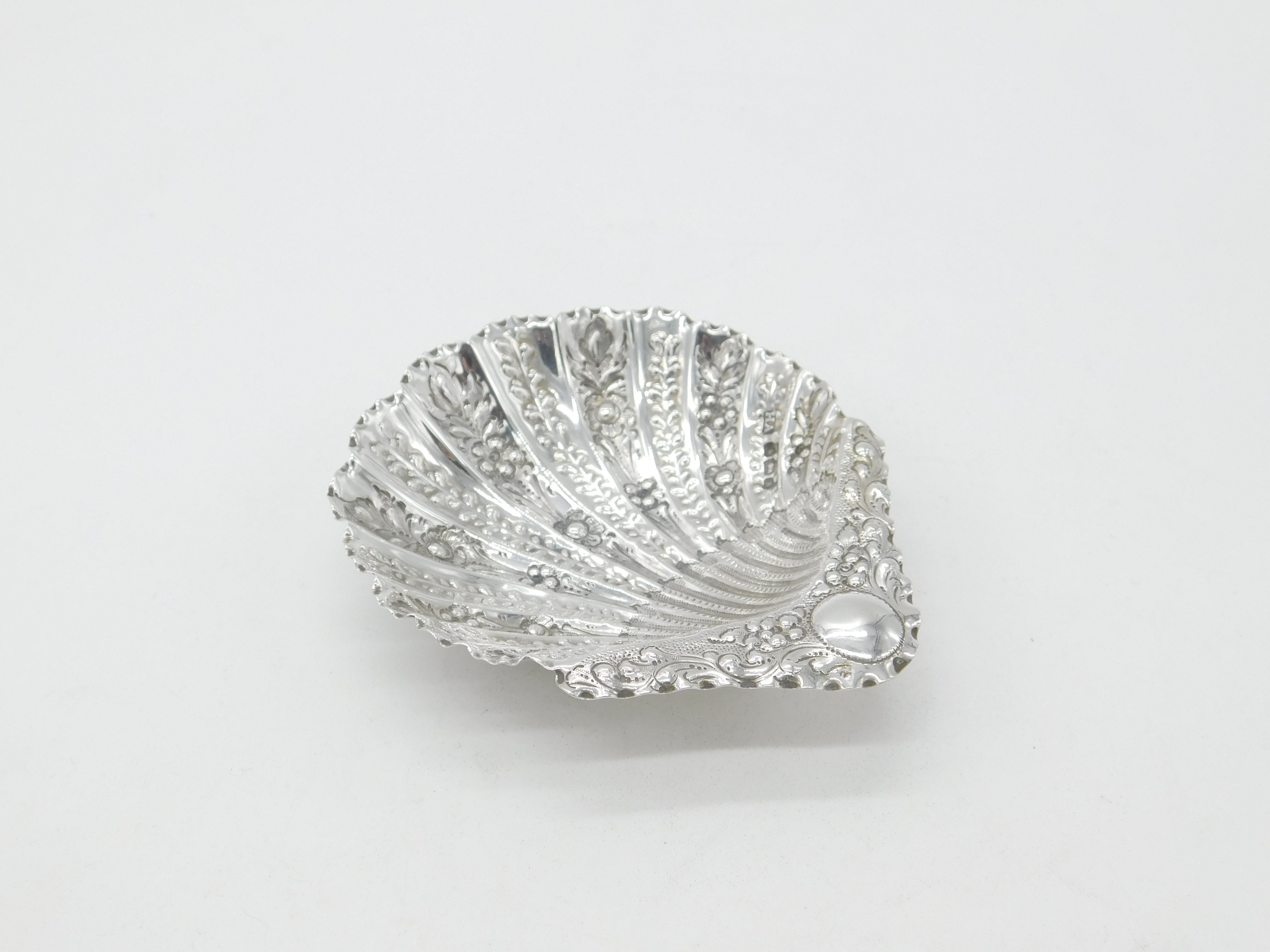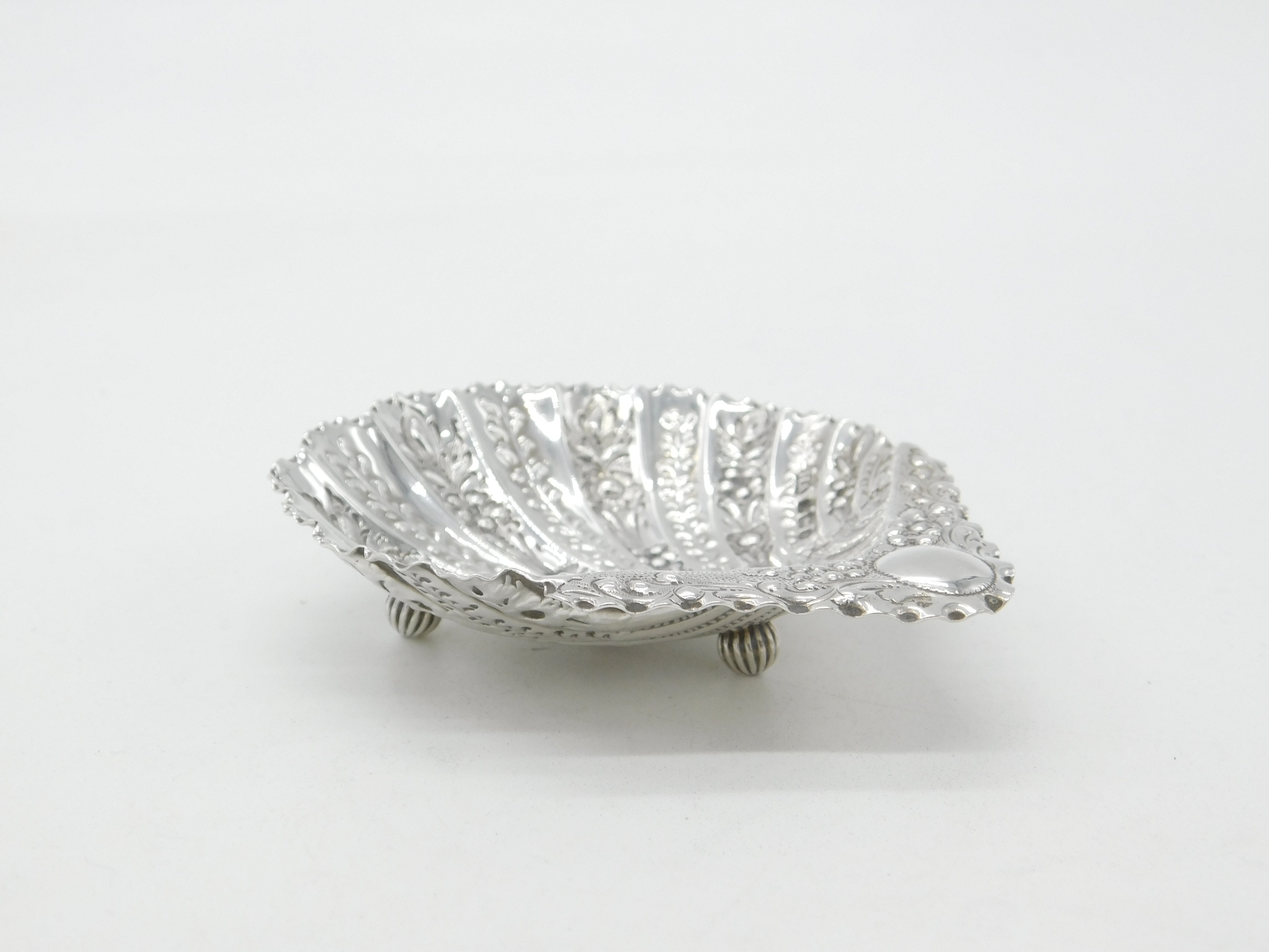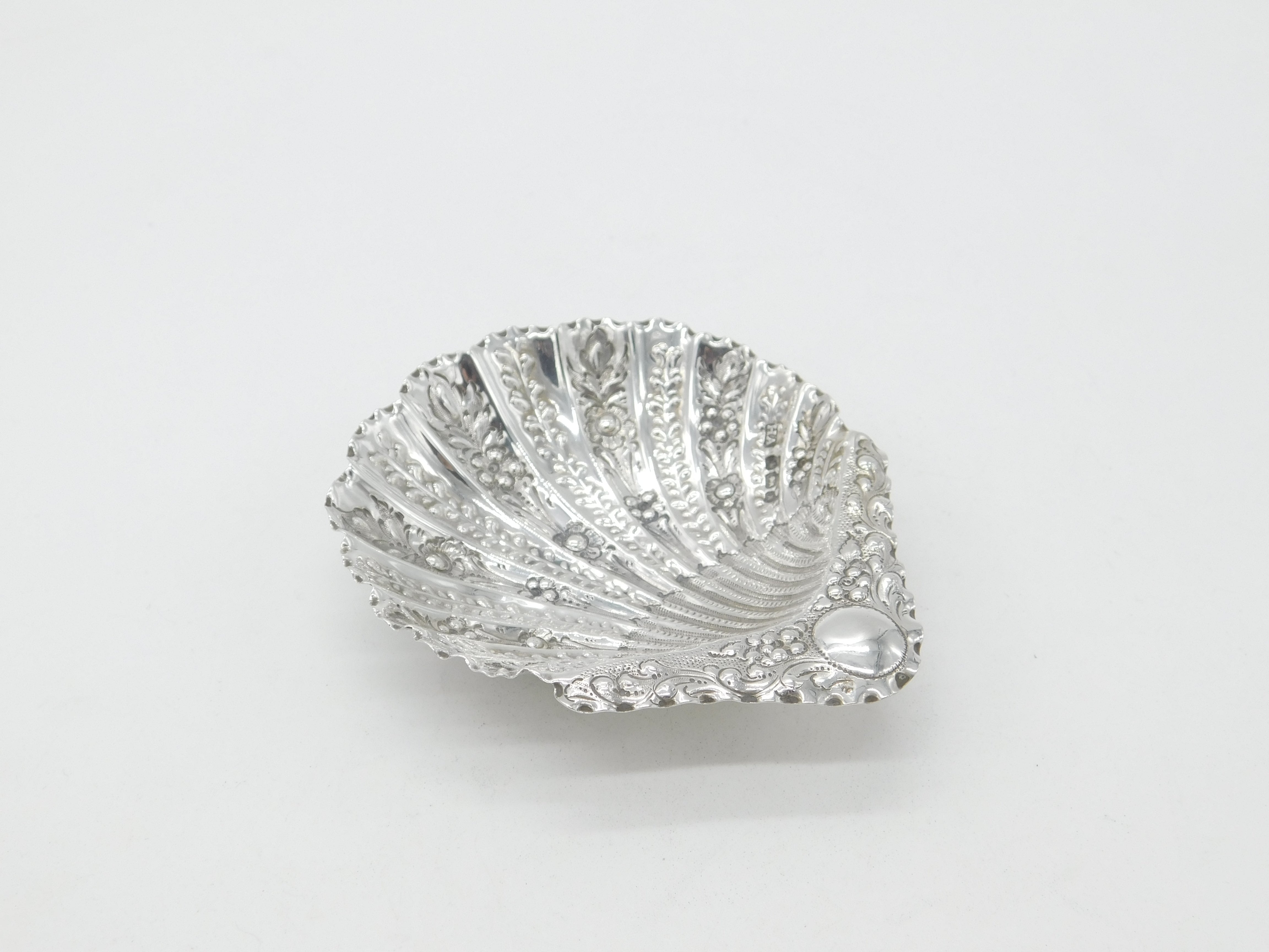 Victorian Sterling Silver Floral Pattern Shell Form Butter Dish 1890 Sheffield