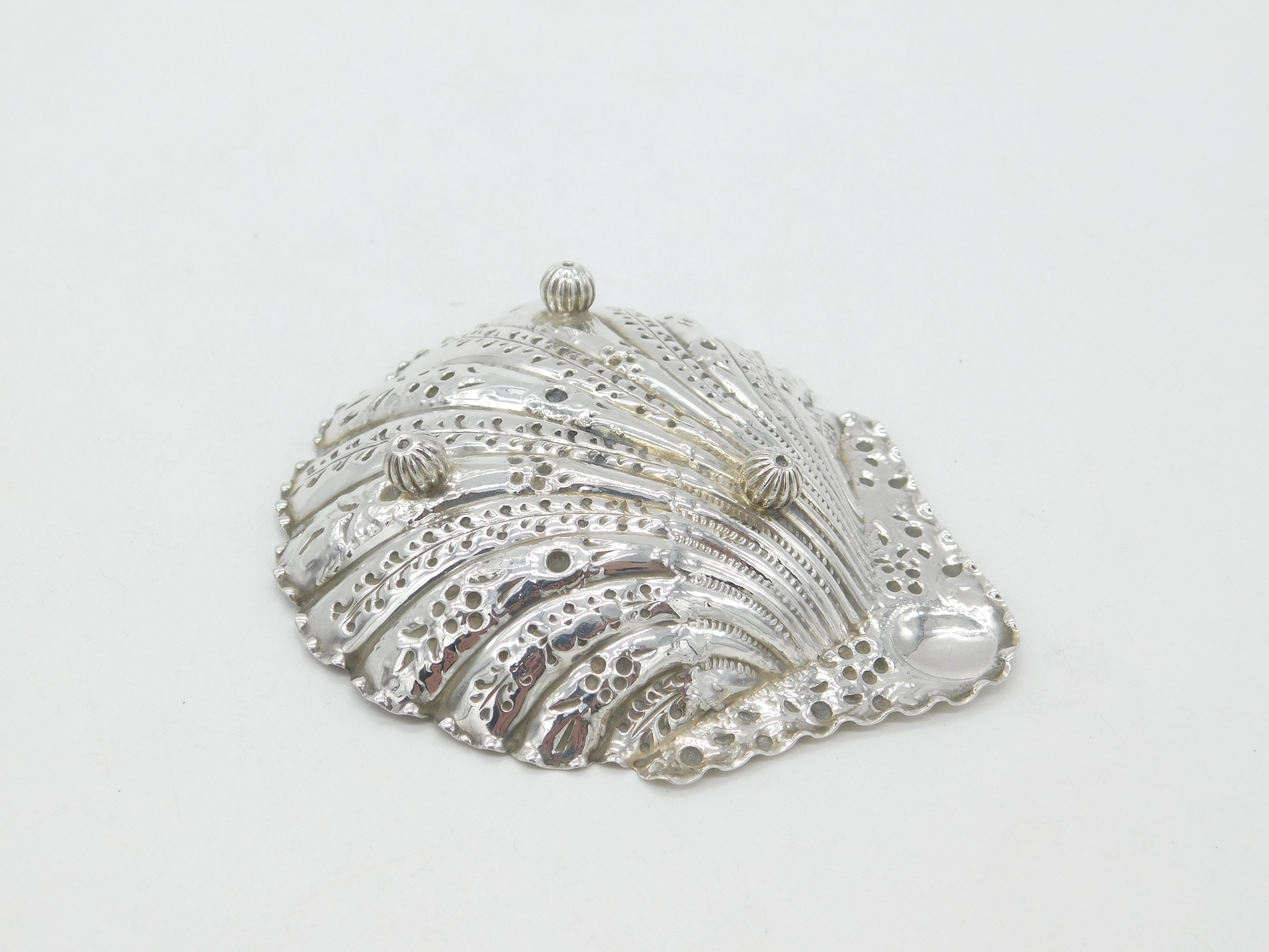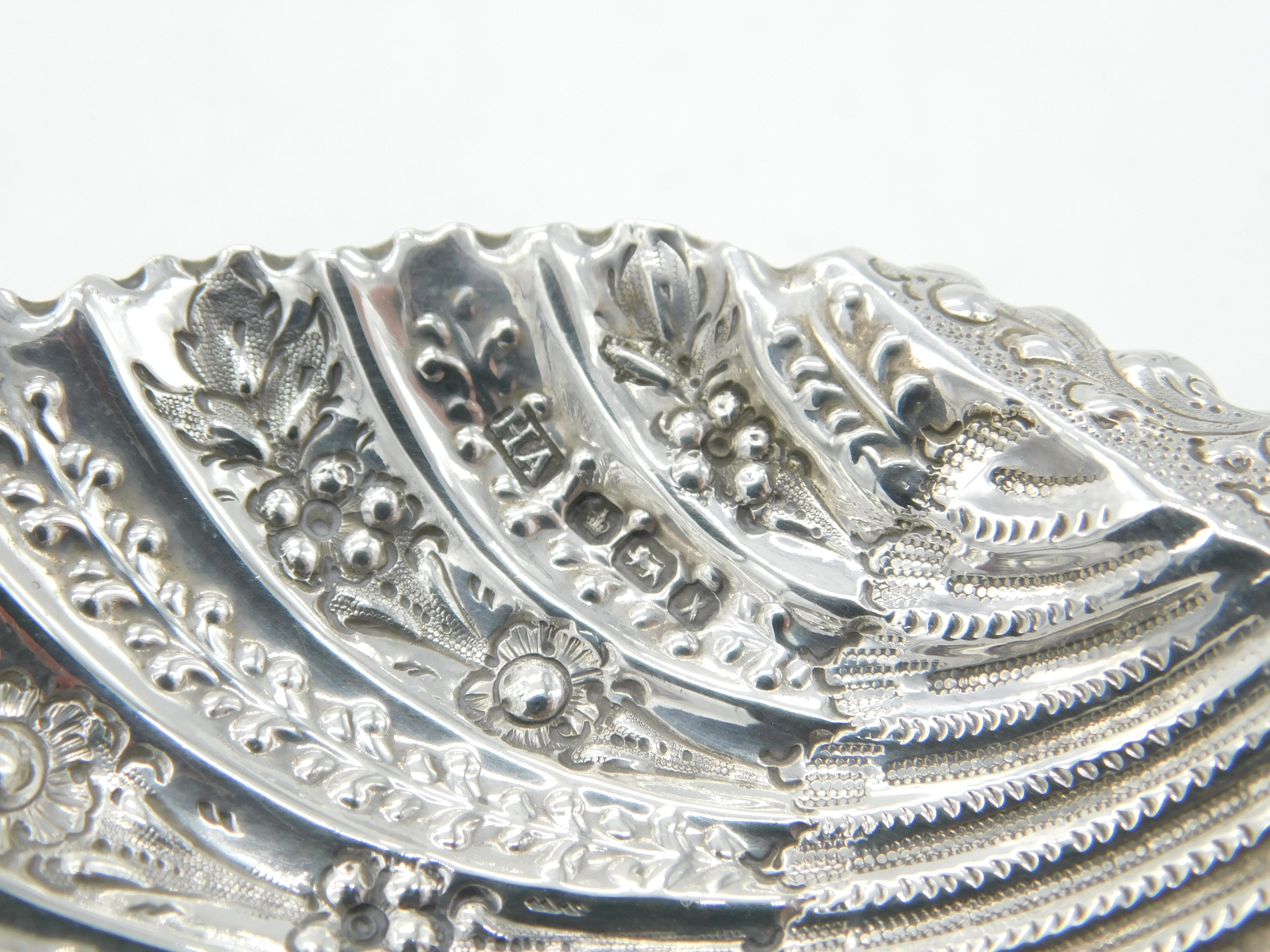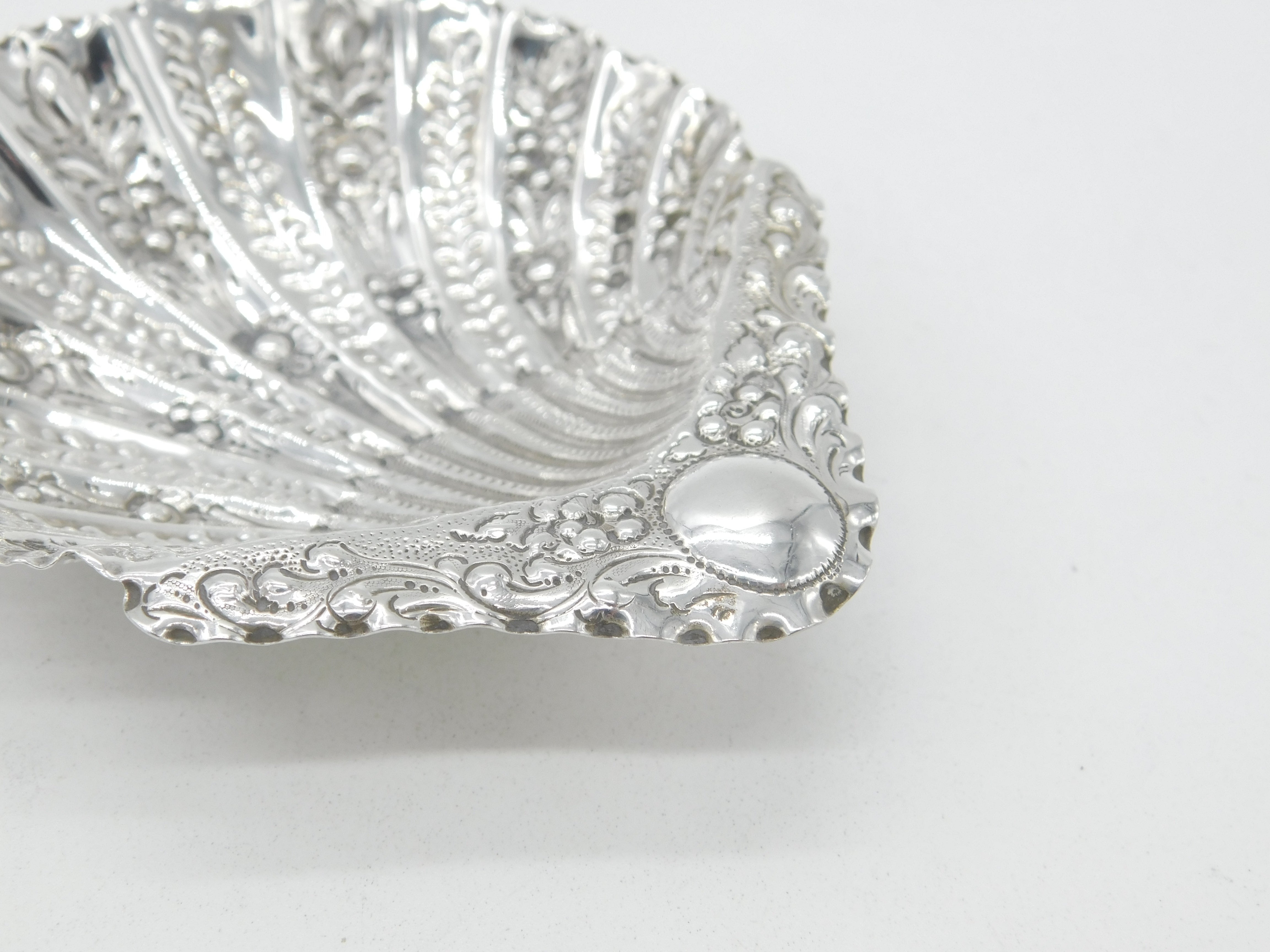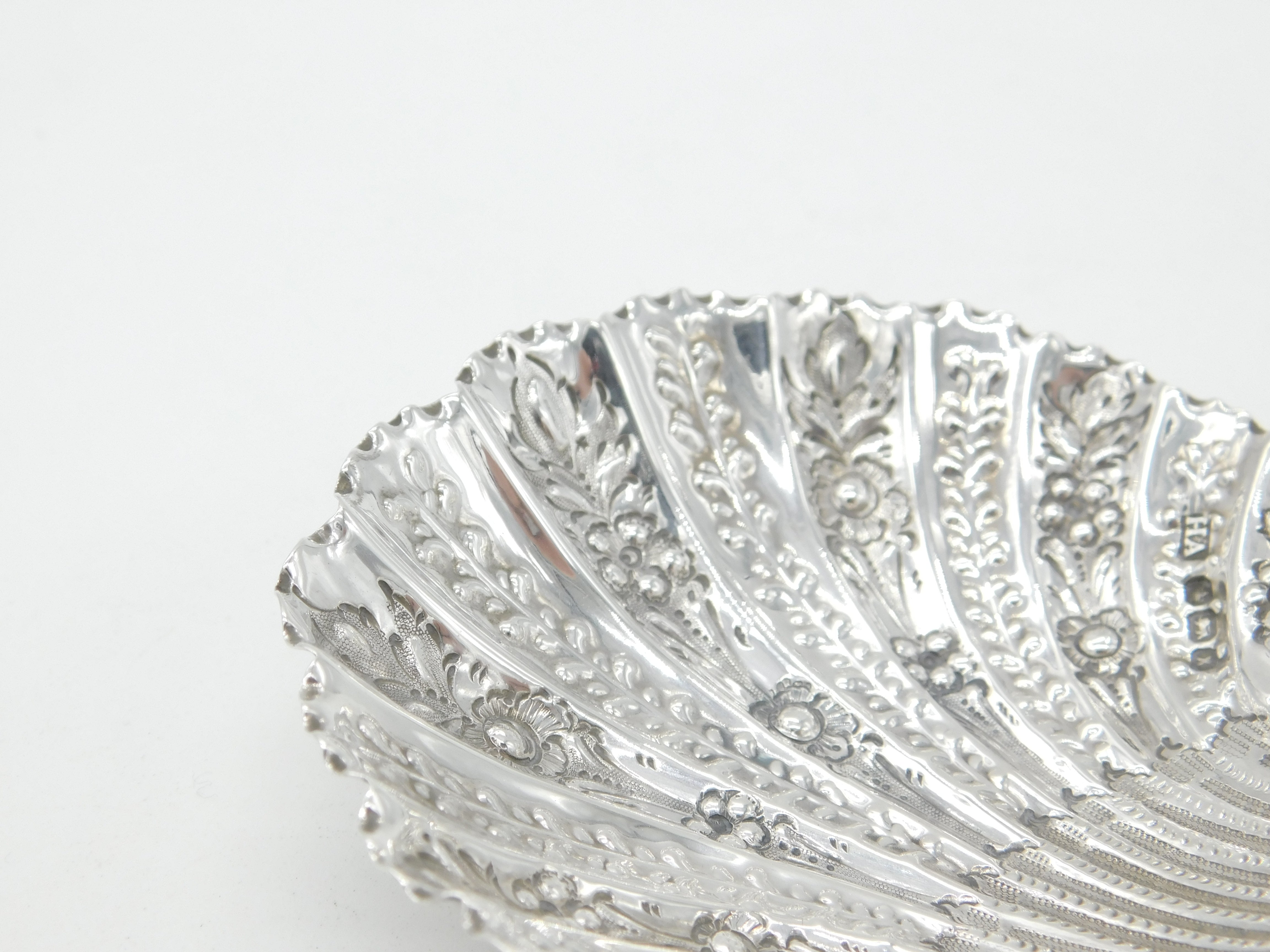 Victorian Sterling Silver Floral Pattern Shell Form Butter Dish 1890 Sheffield