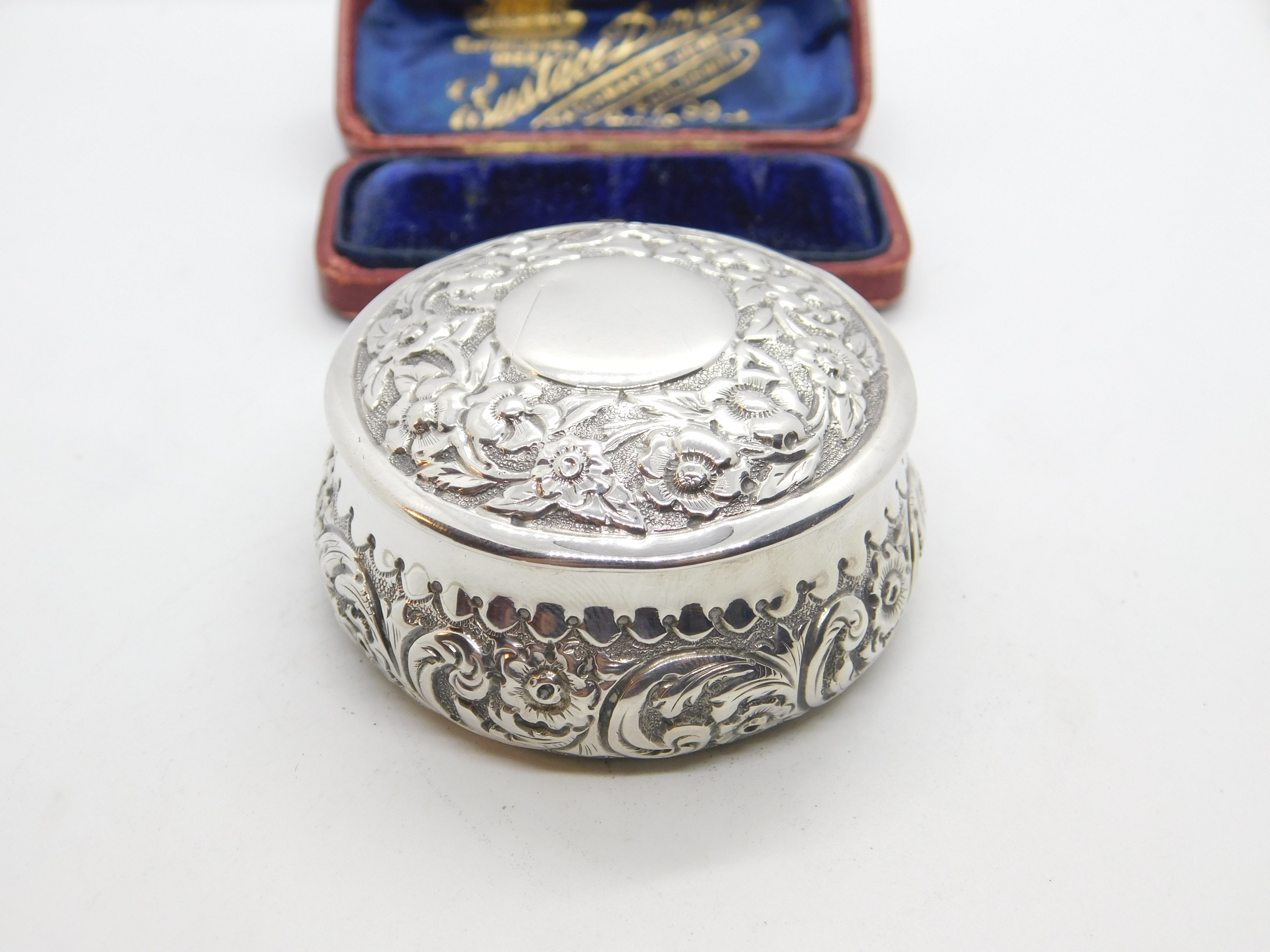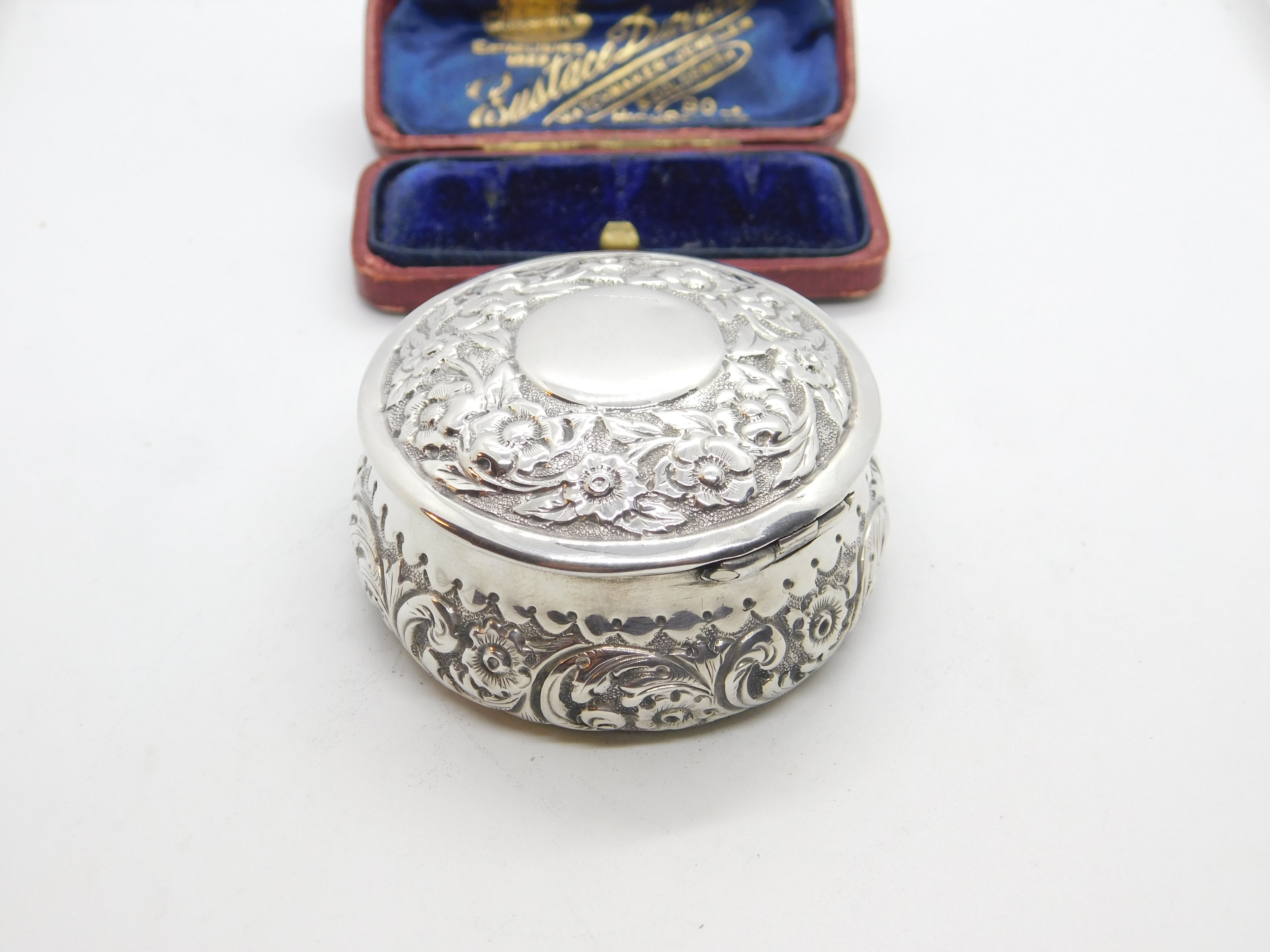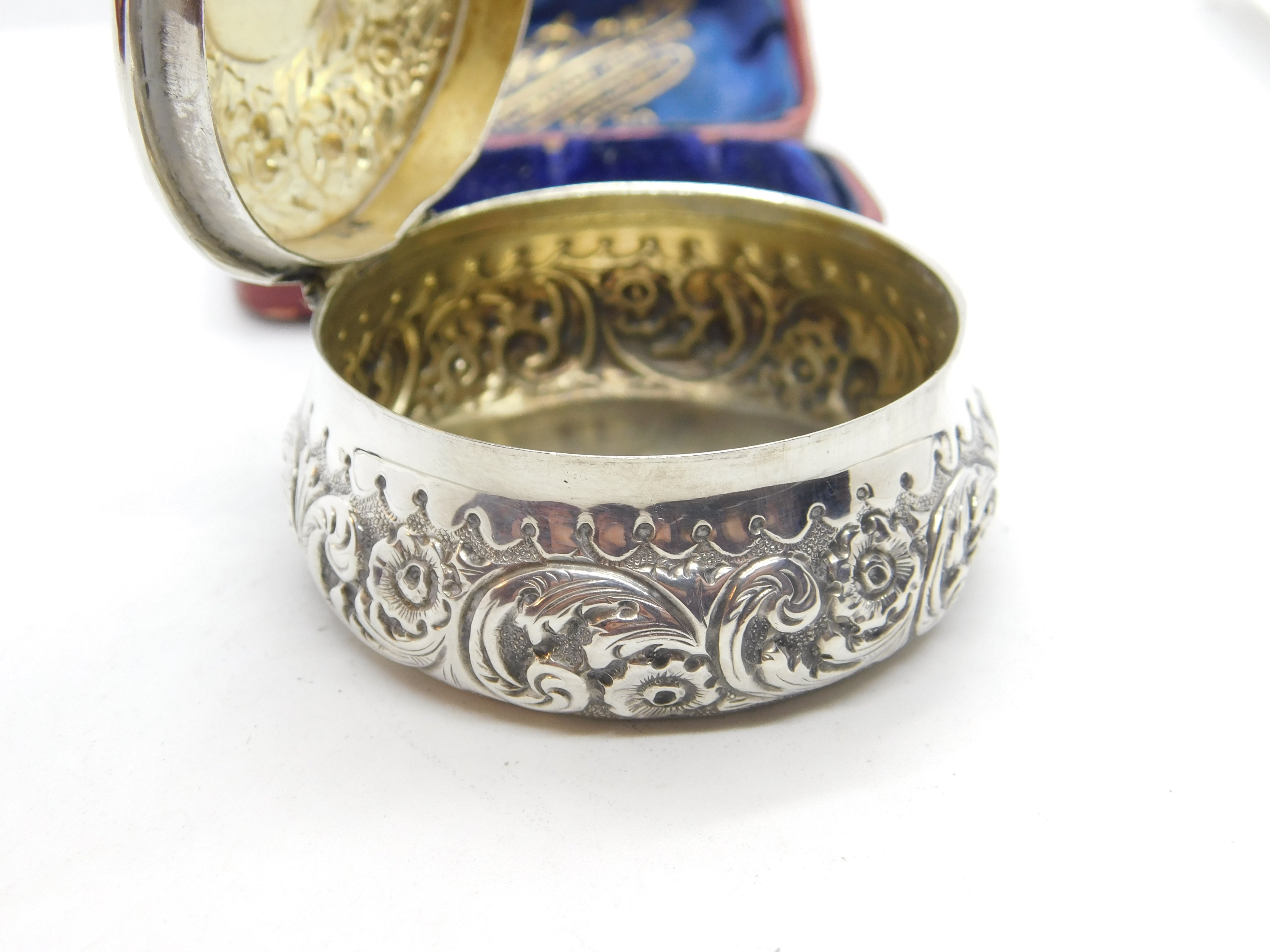 Victorian Sterling Silver Floral Pattern Snuff Box 1876 Birmingham Antique