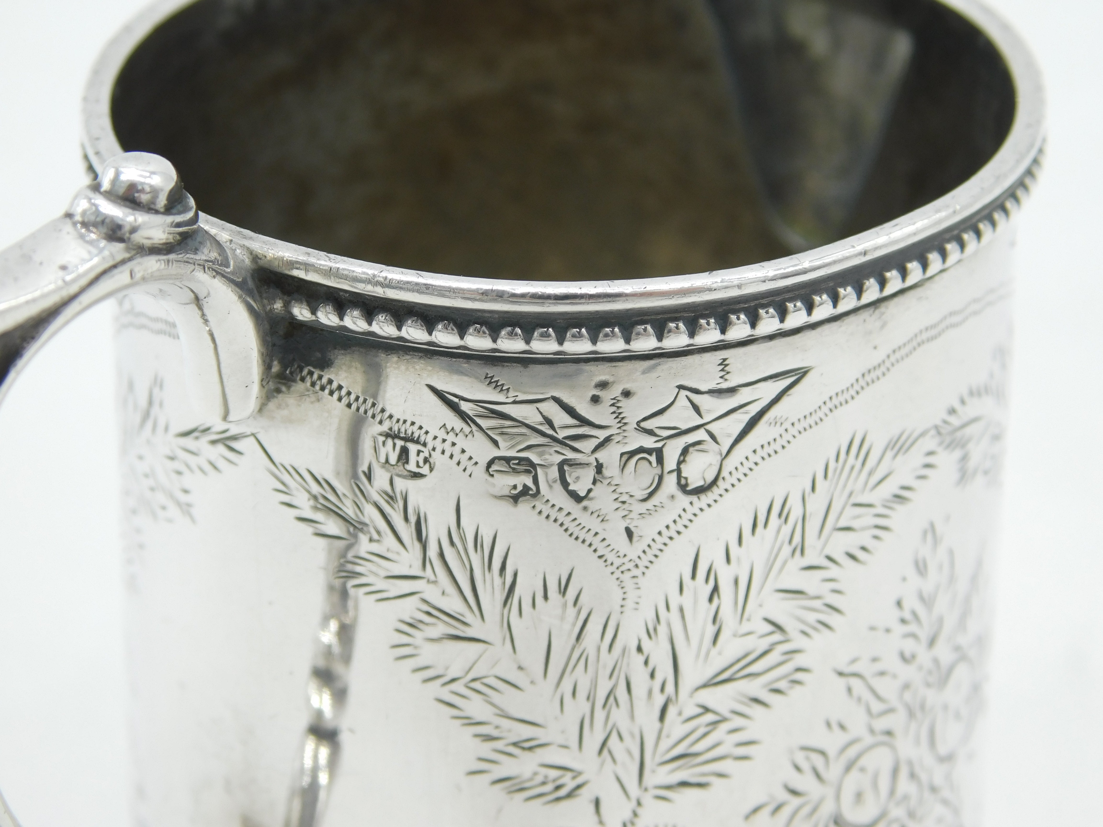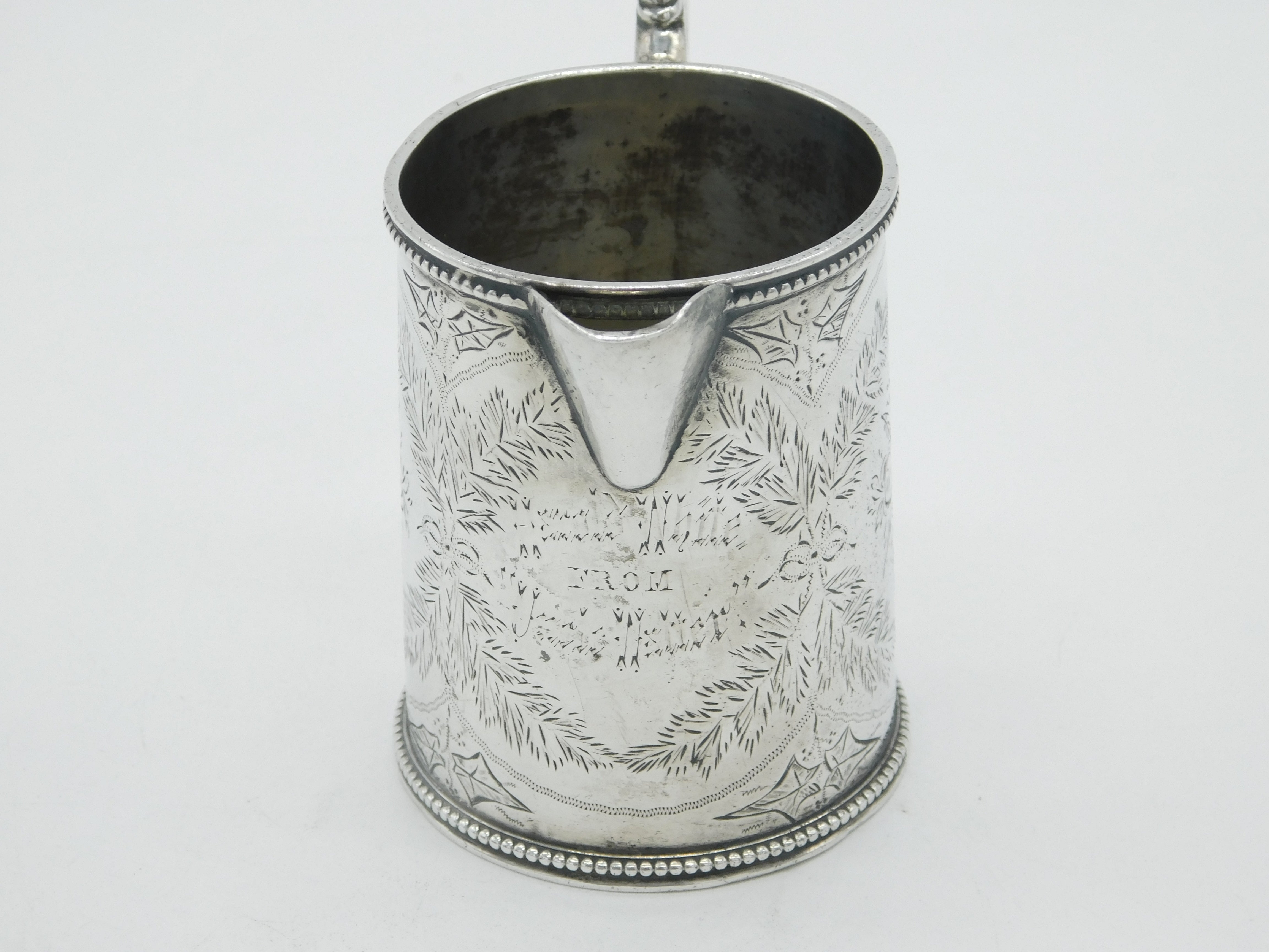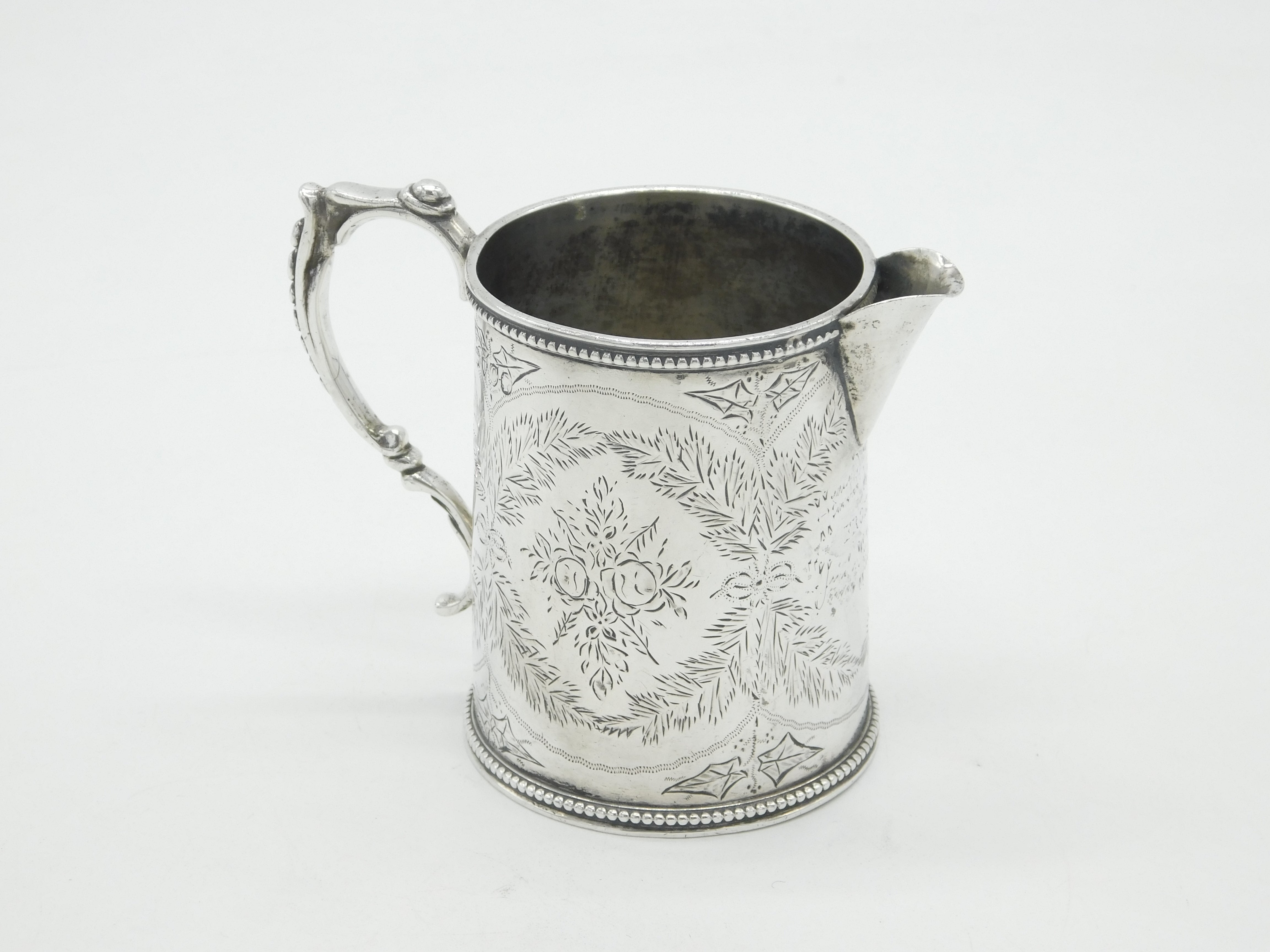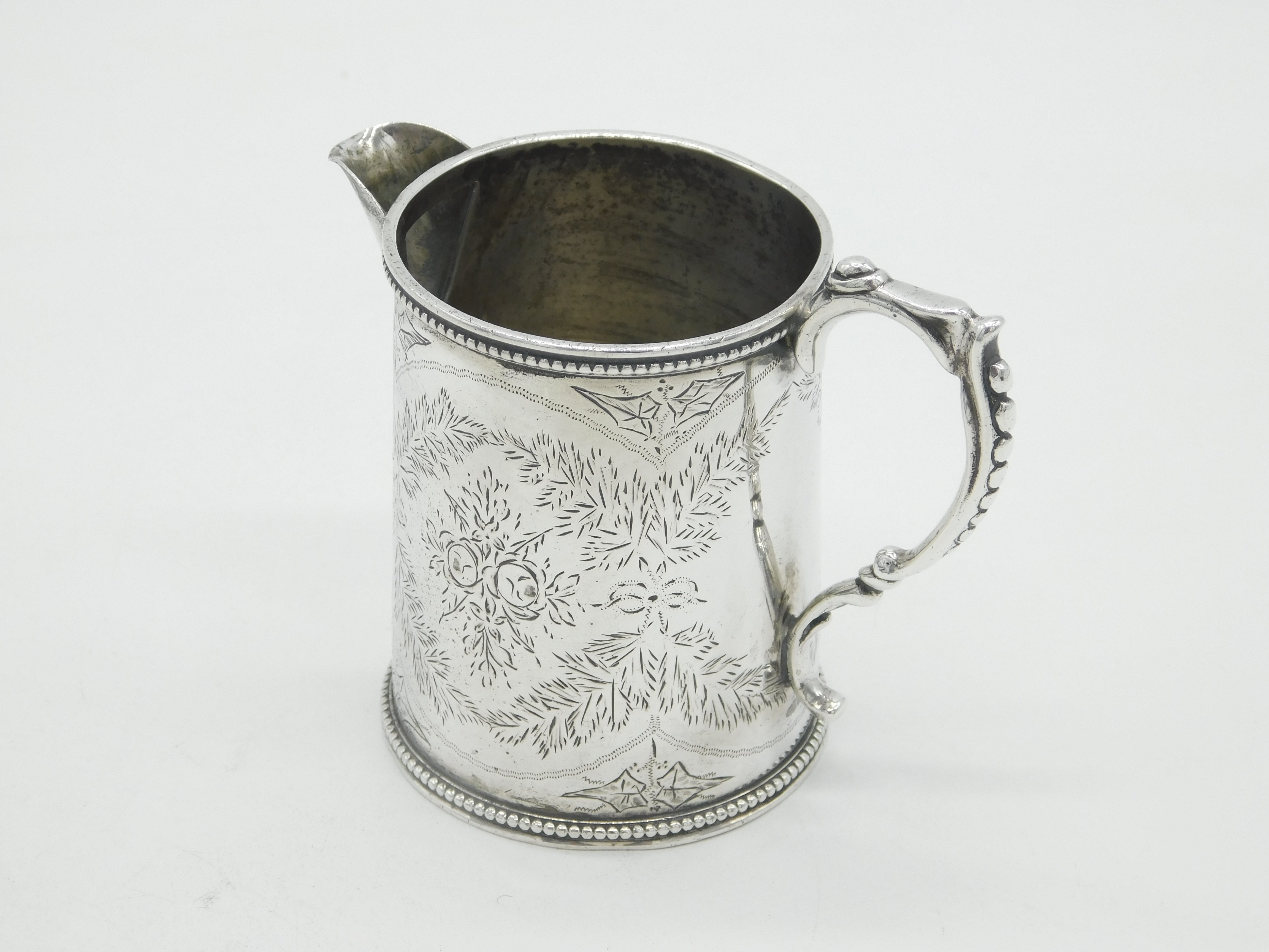 Victorian Sterling Silver Floral Pattern Tankard Cream Jug Antique 1878 London