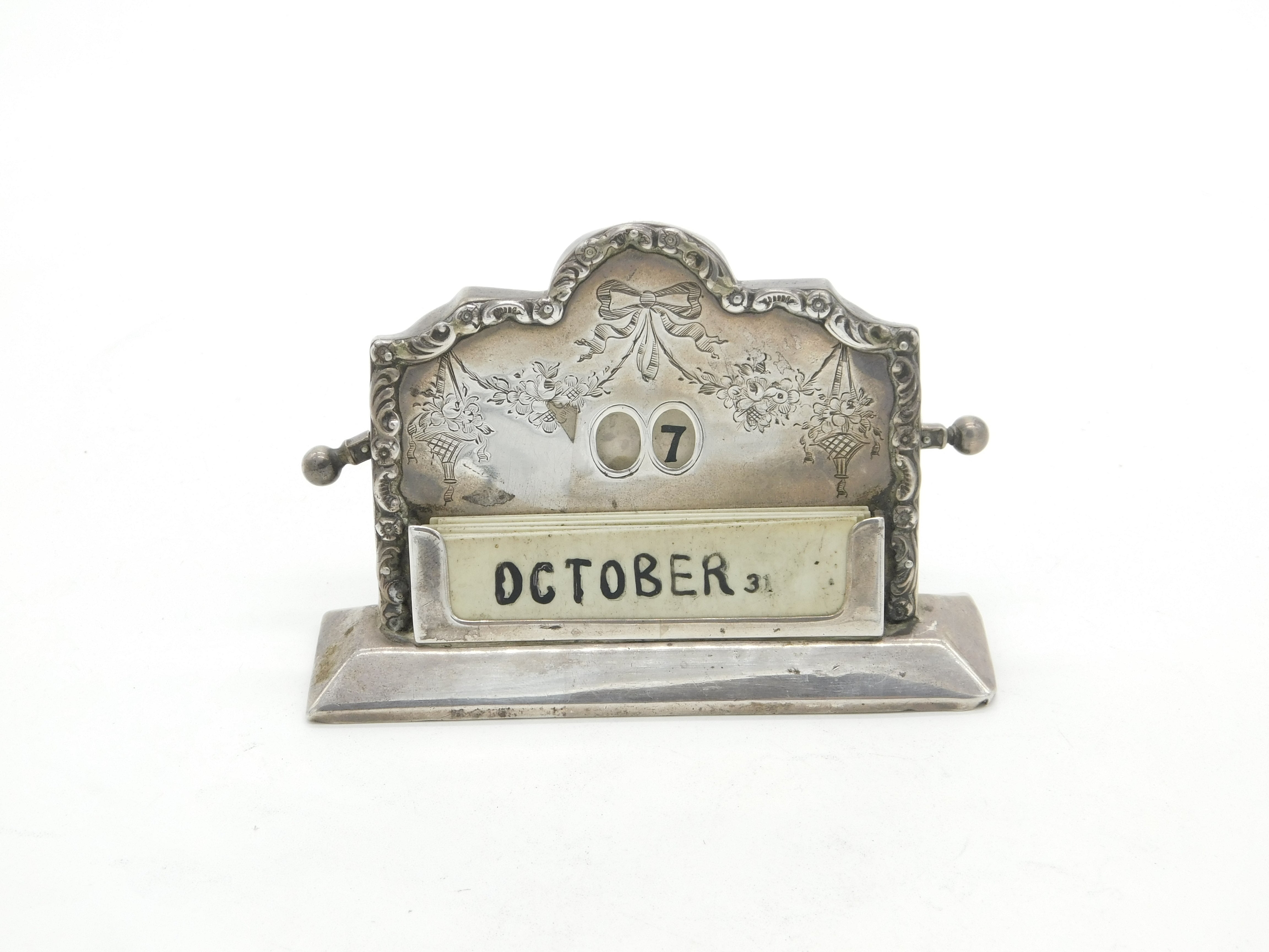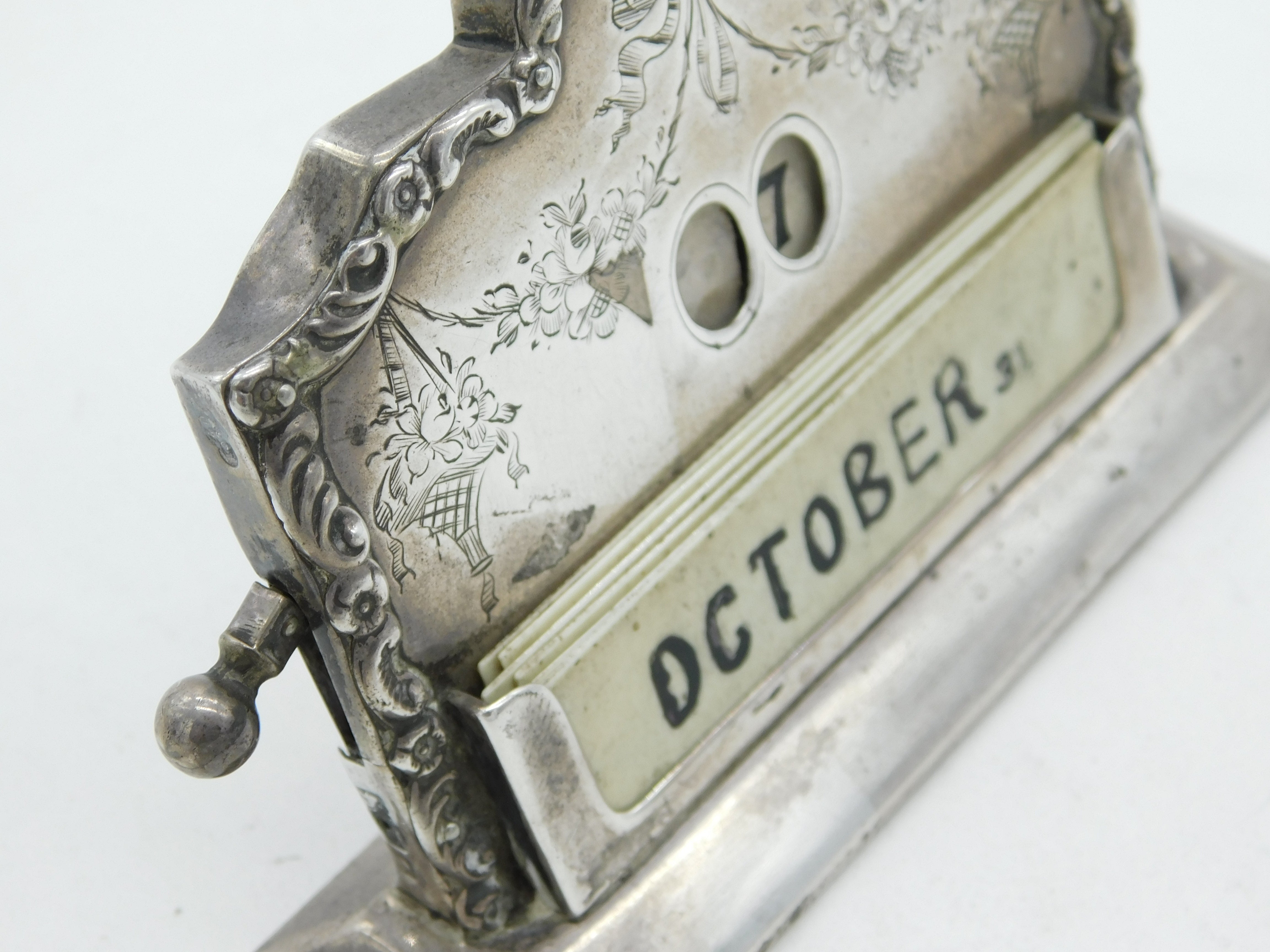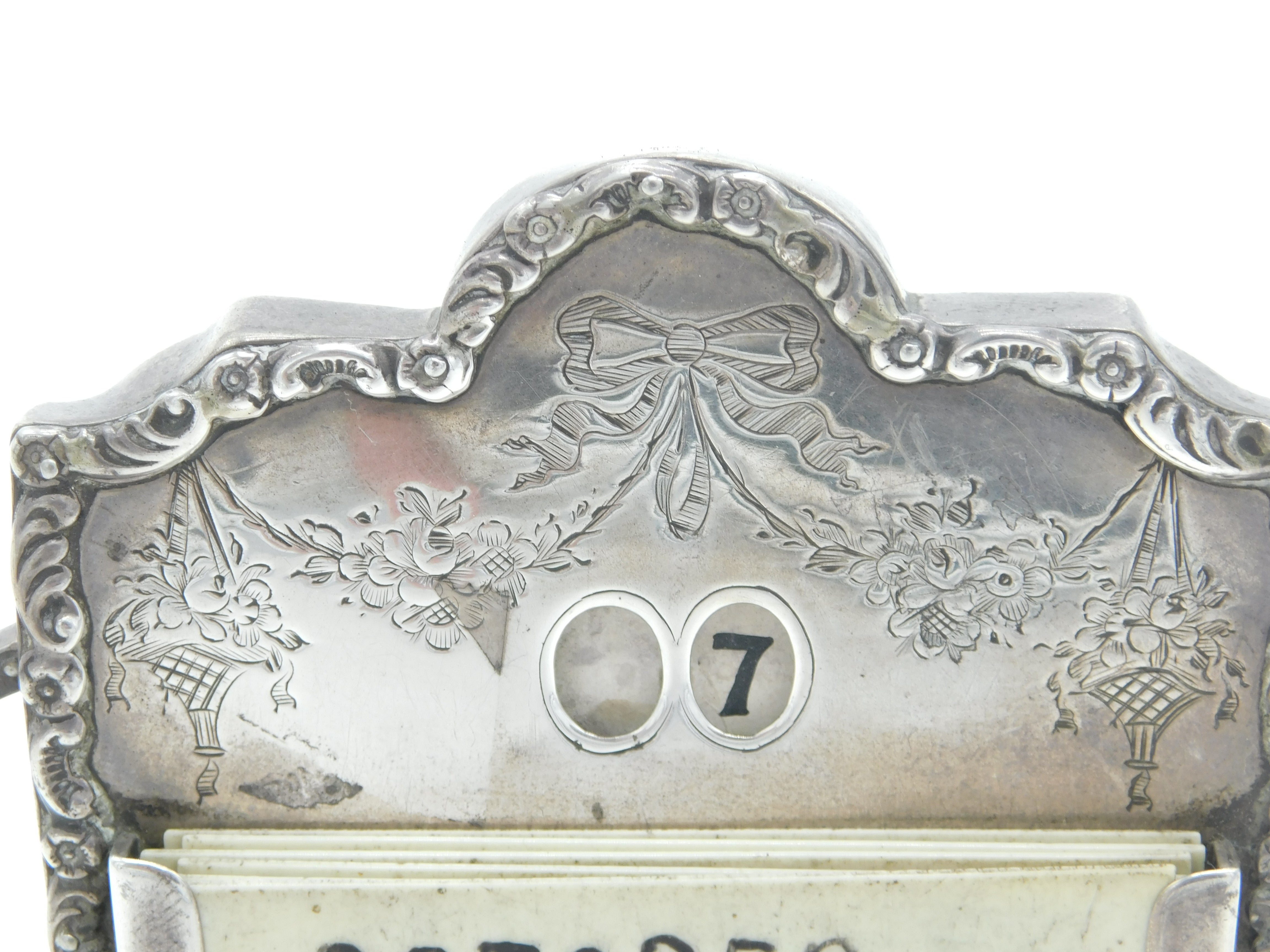 Victorian Sterling Silver Floral Perpetual Desk Calendar Working 1901 London