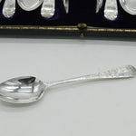 Victorian Sterling Silver Floral Teaspoon & Tongs Set Antique 1898 Sheffield