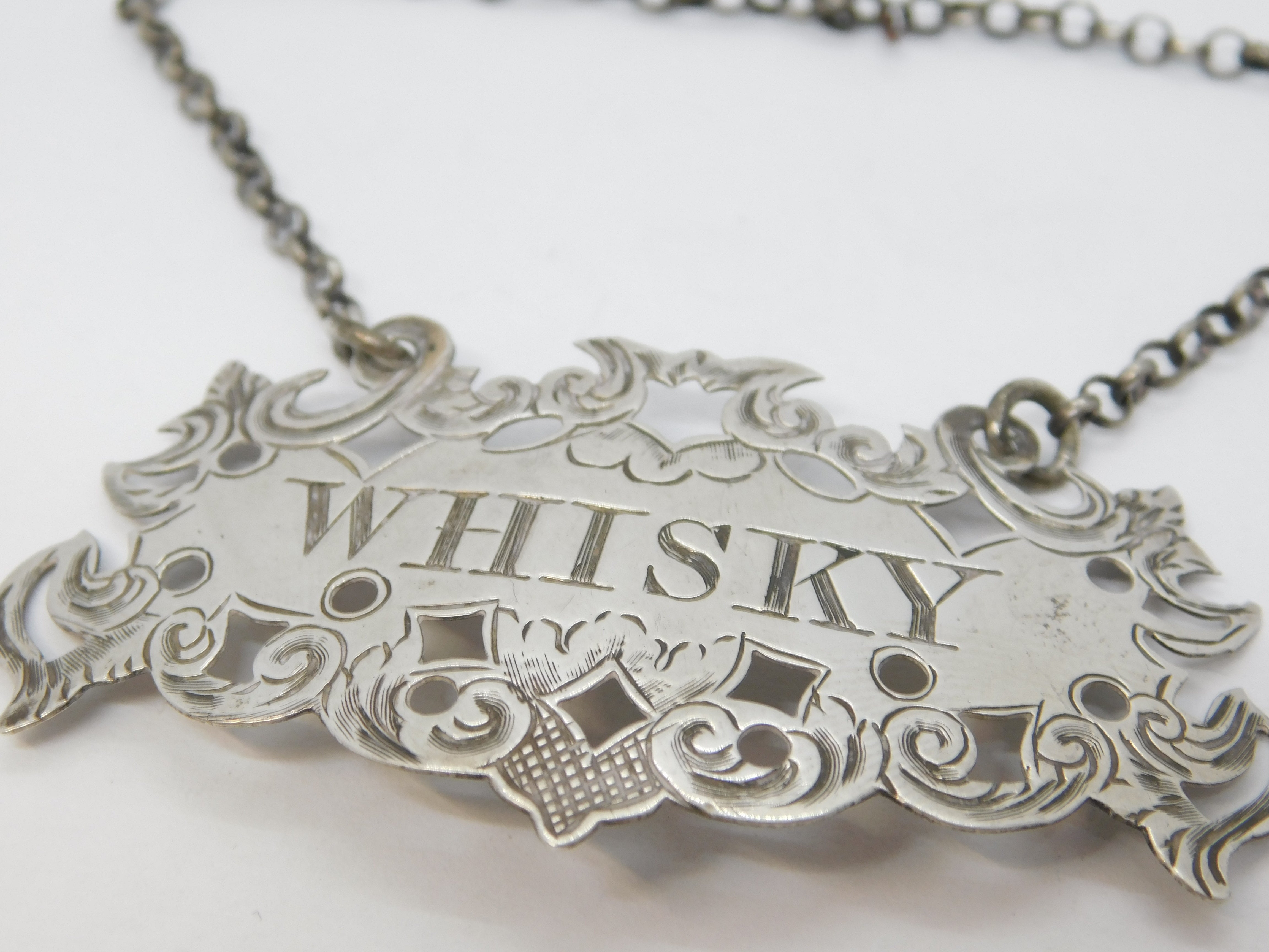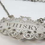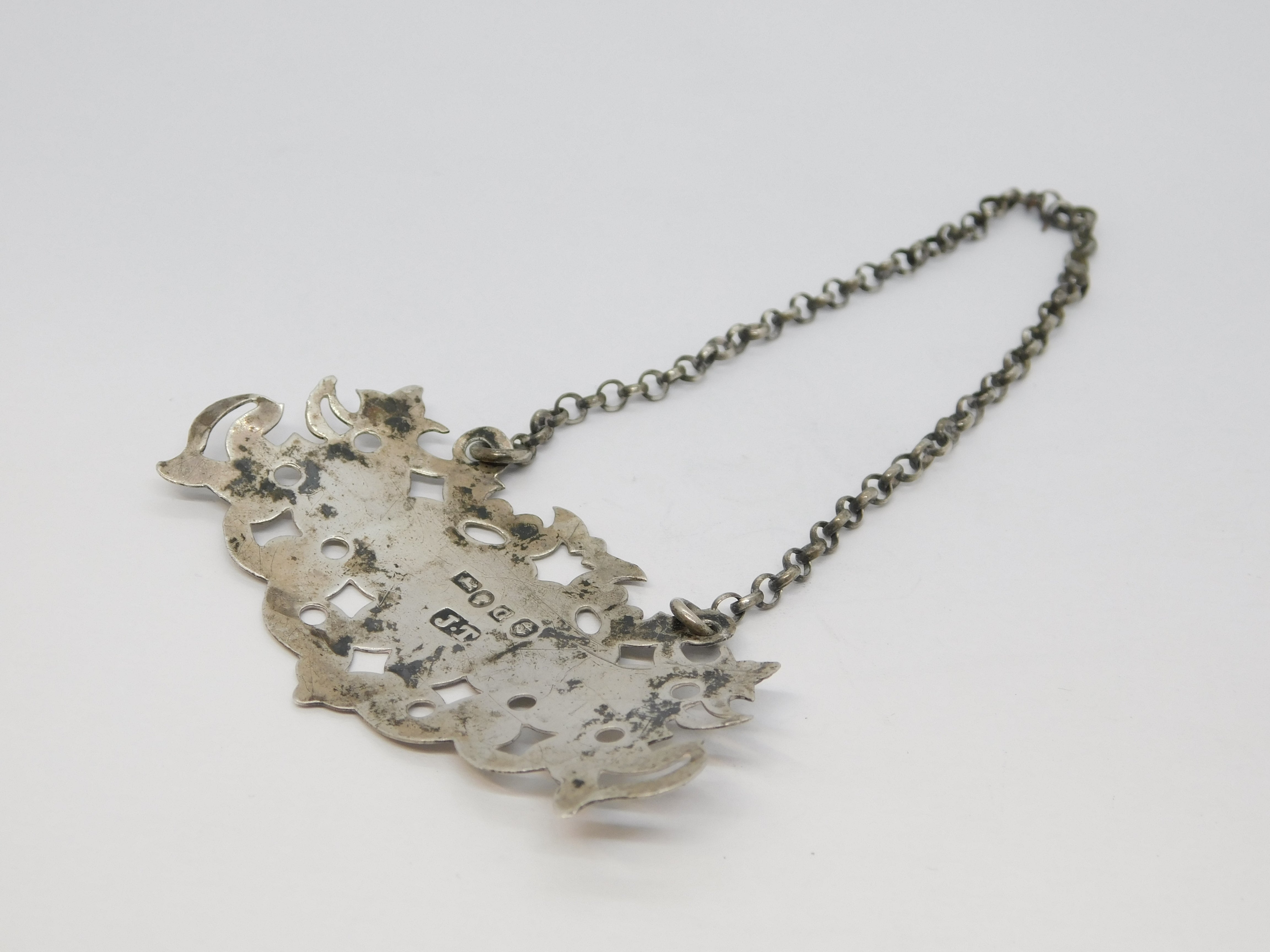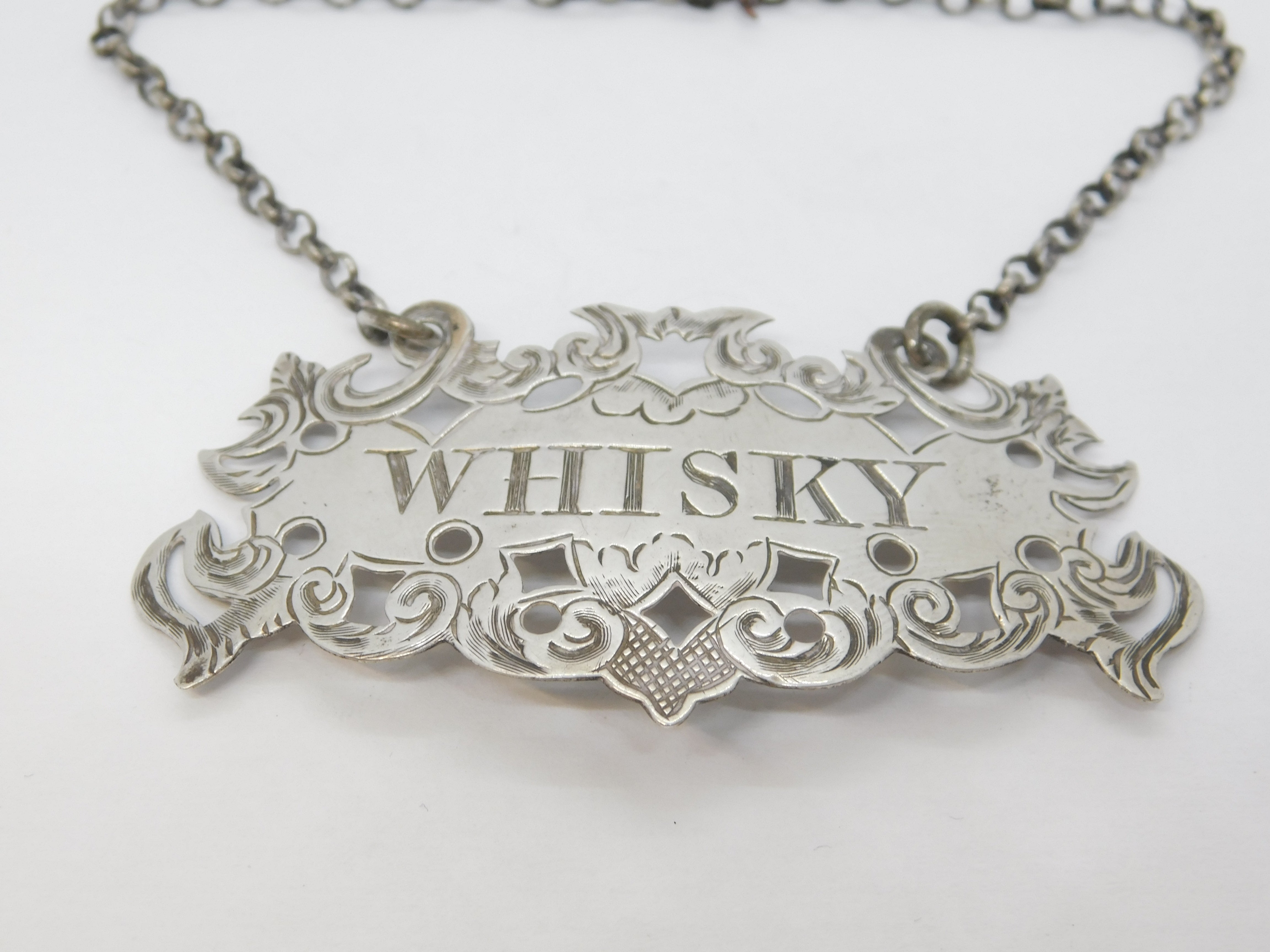 Victorian Sterling Silver Floral Whisky Decanter Label Antique 1855 Birmingham