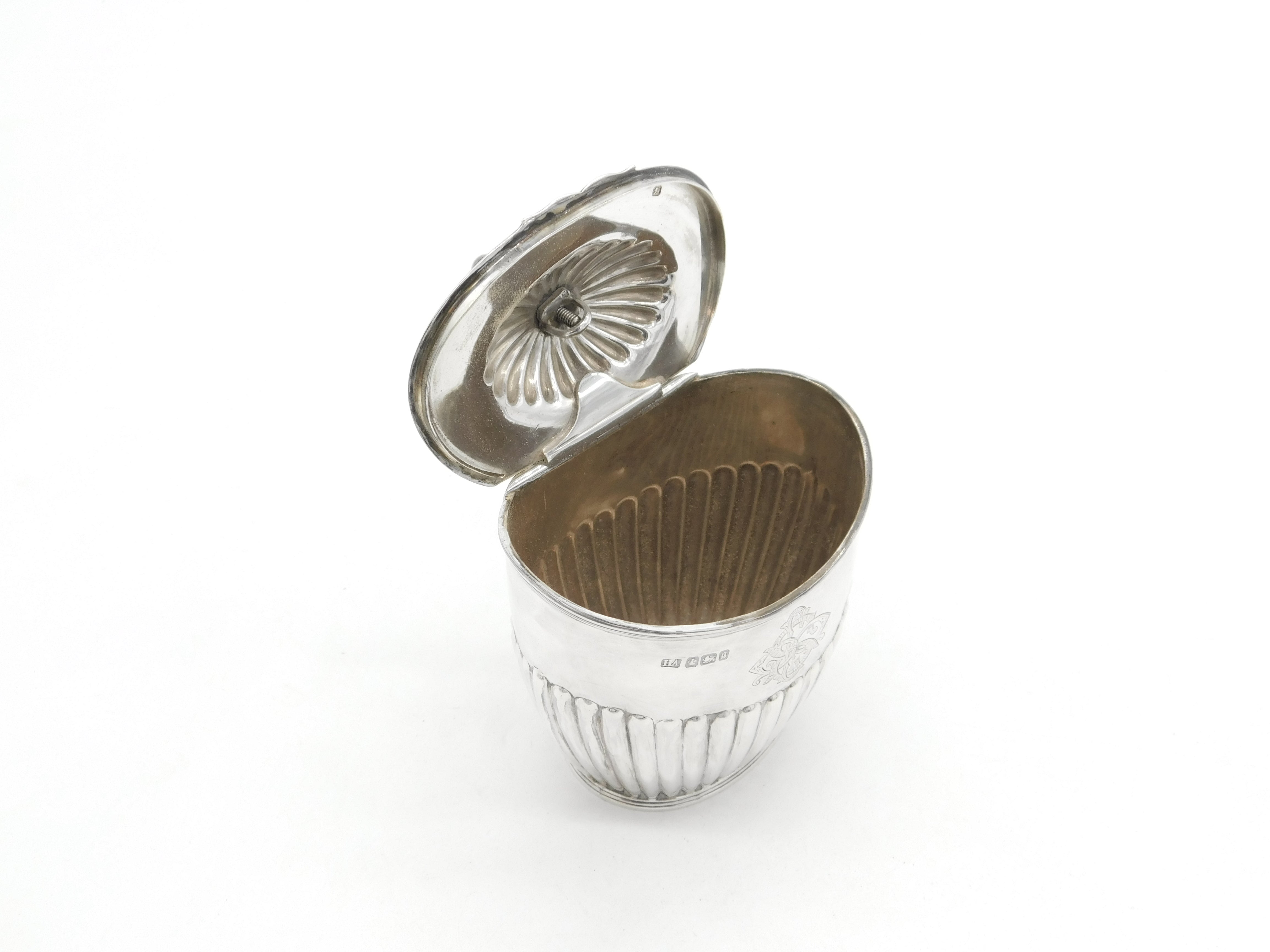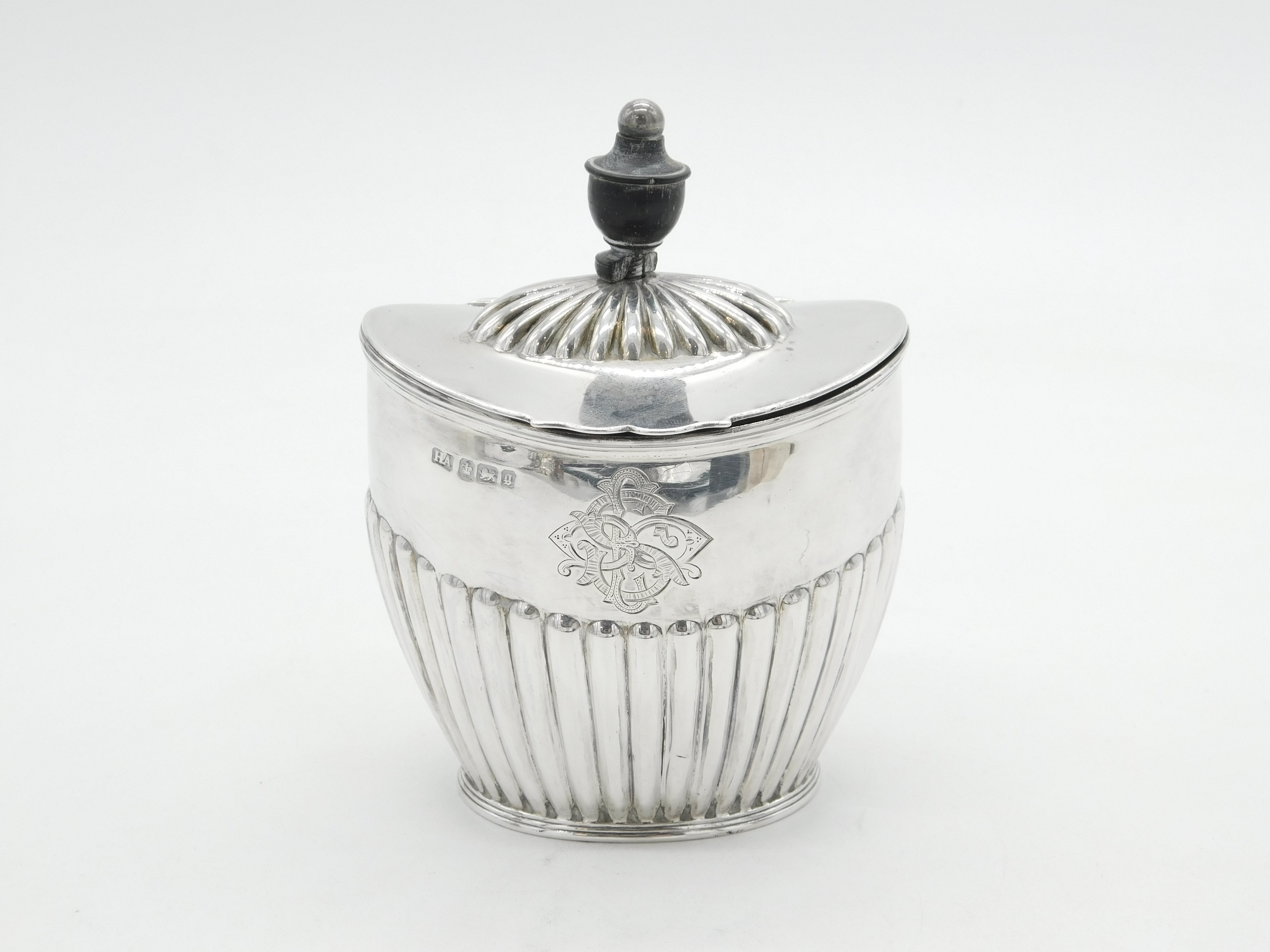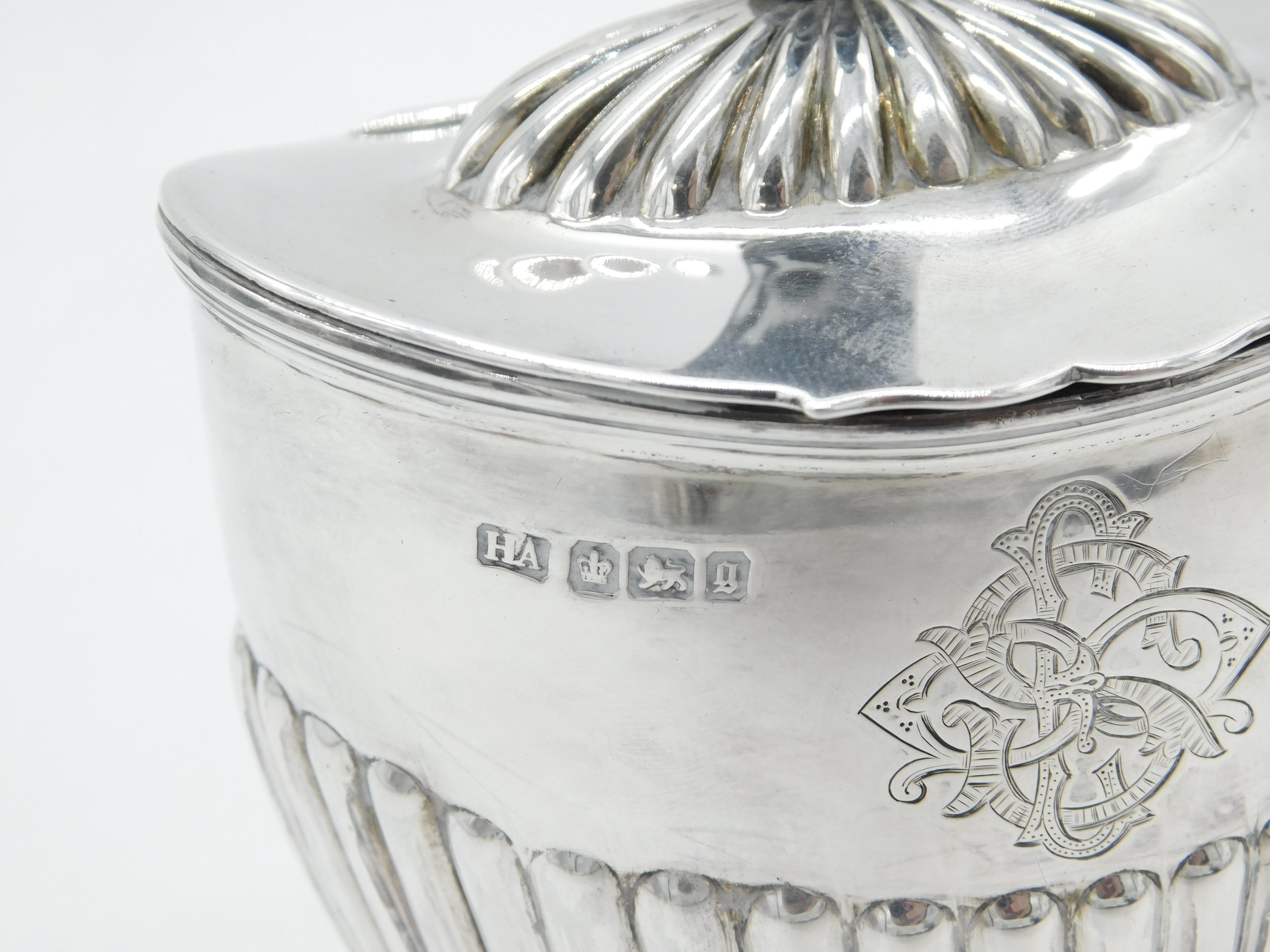 Victorian Sterling Silver Fluted Monogram Tea Caddy Antique 1899 Sheffield