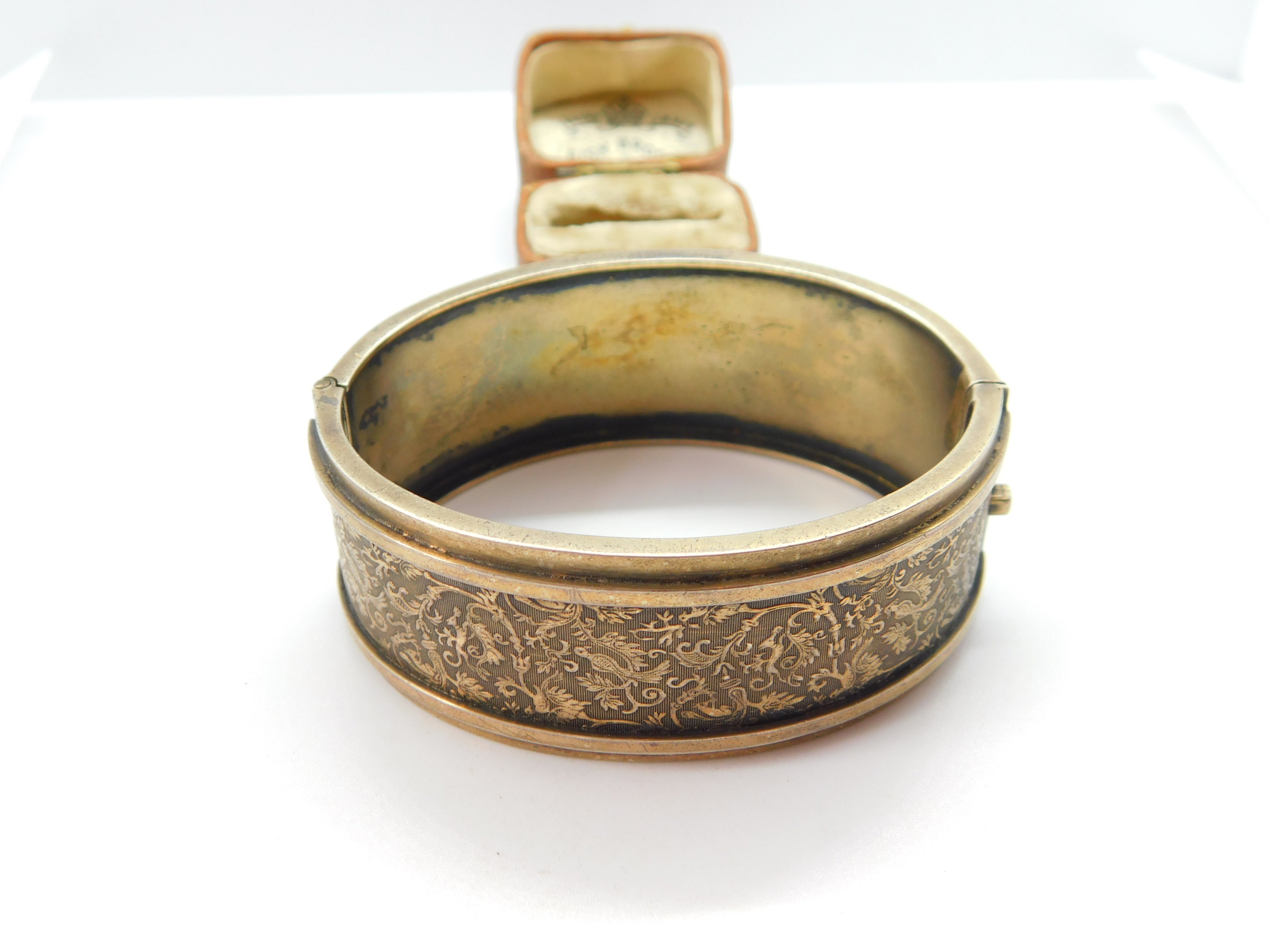 Details: A fantastic and wonderfully designed antique Victorian sterling silver gilt aesthetic movement floral pattern cuff bangle bracelet with bird detailing hallmarked to the interior, possibly scandinavian c1880. This is a wonderful item that would make a perfect gift or addition to any collection. The BOX pictured is for PRESENTATION ONLY and is NOT included in the listings but used to frame the pictures unless specifically stated otherwise.