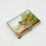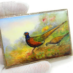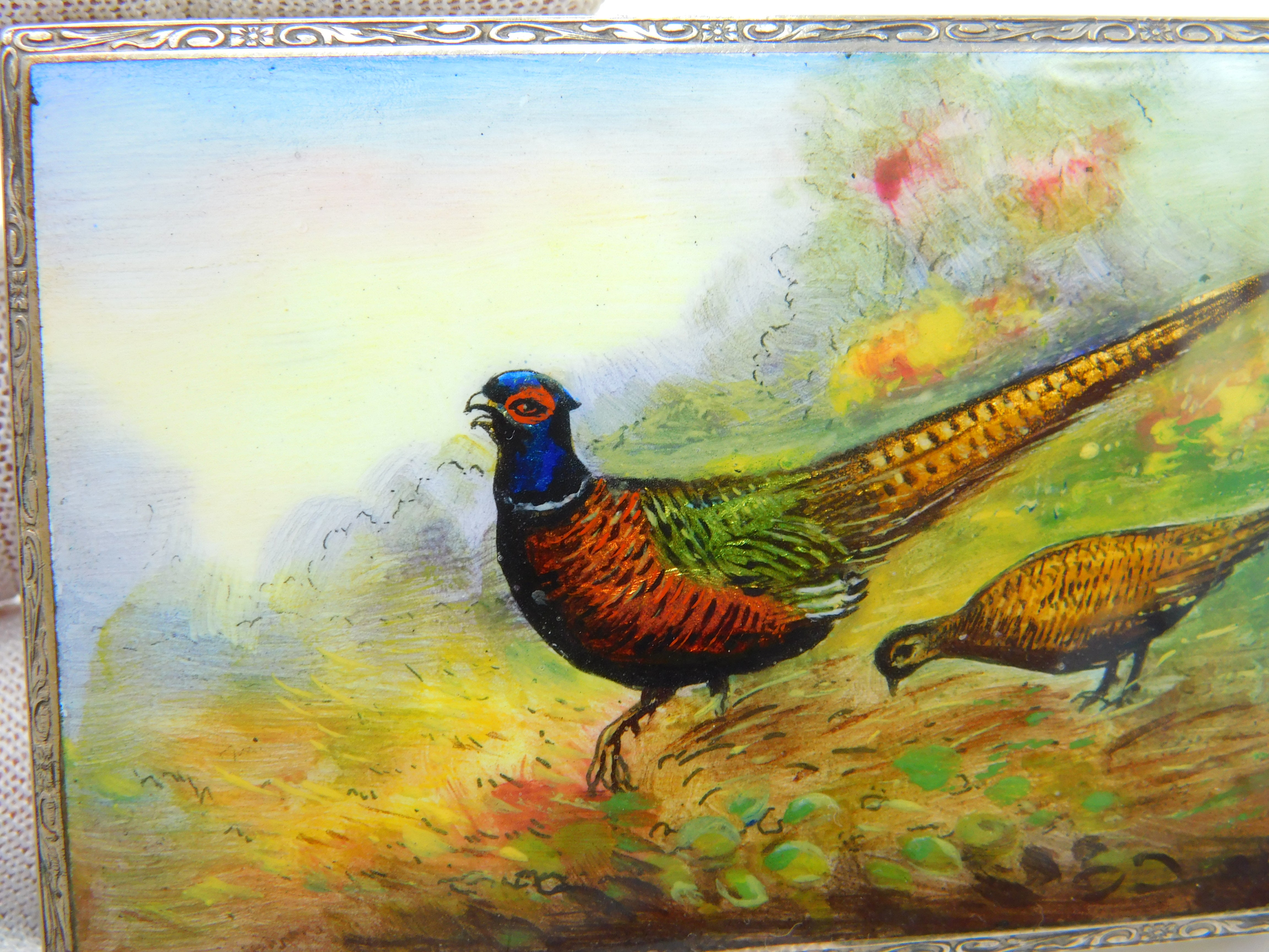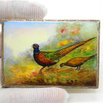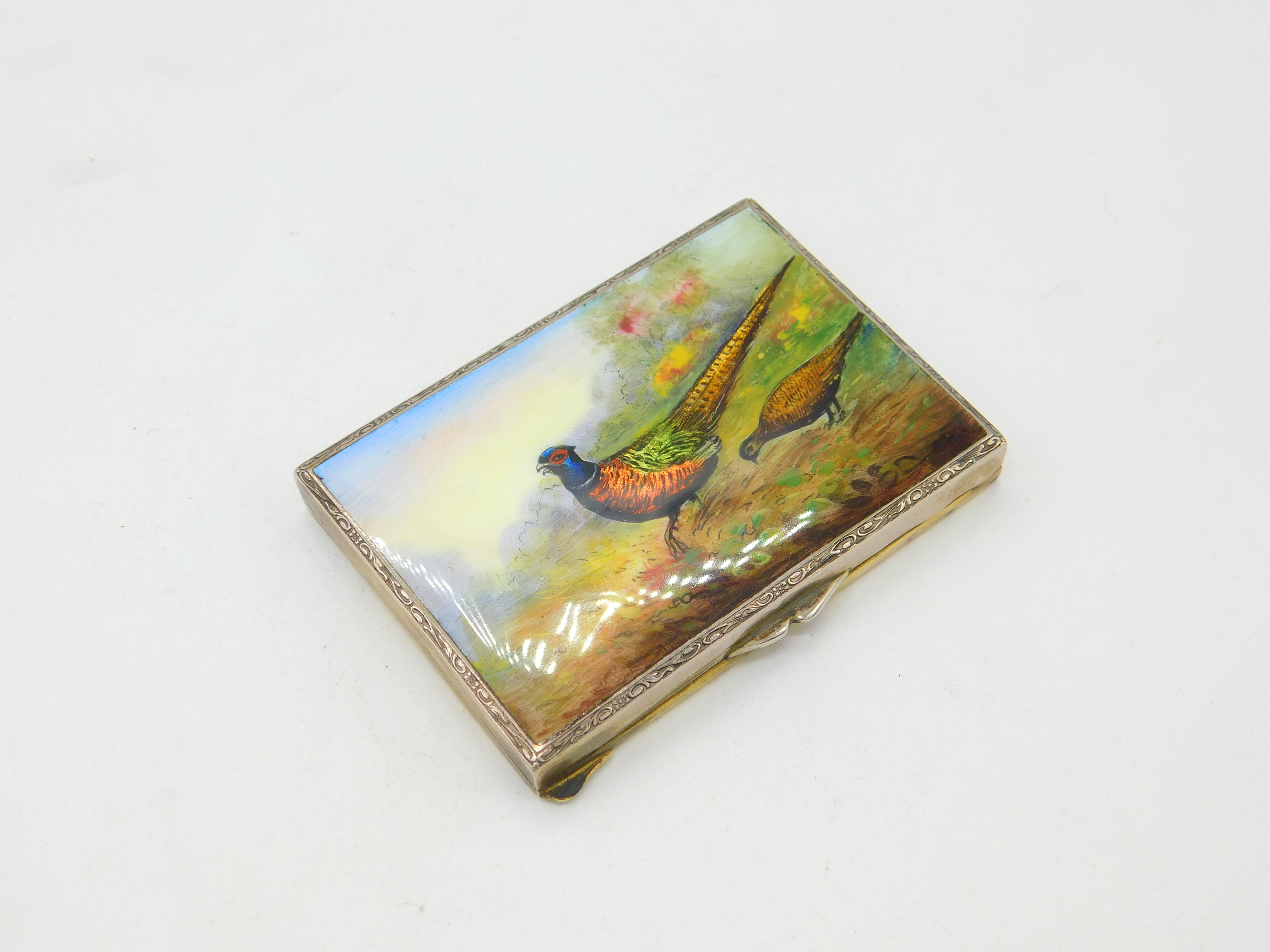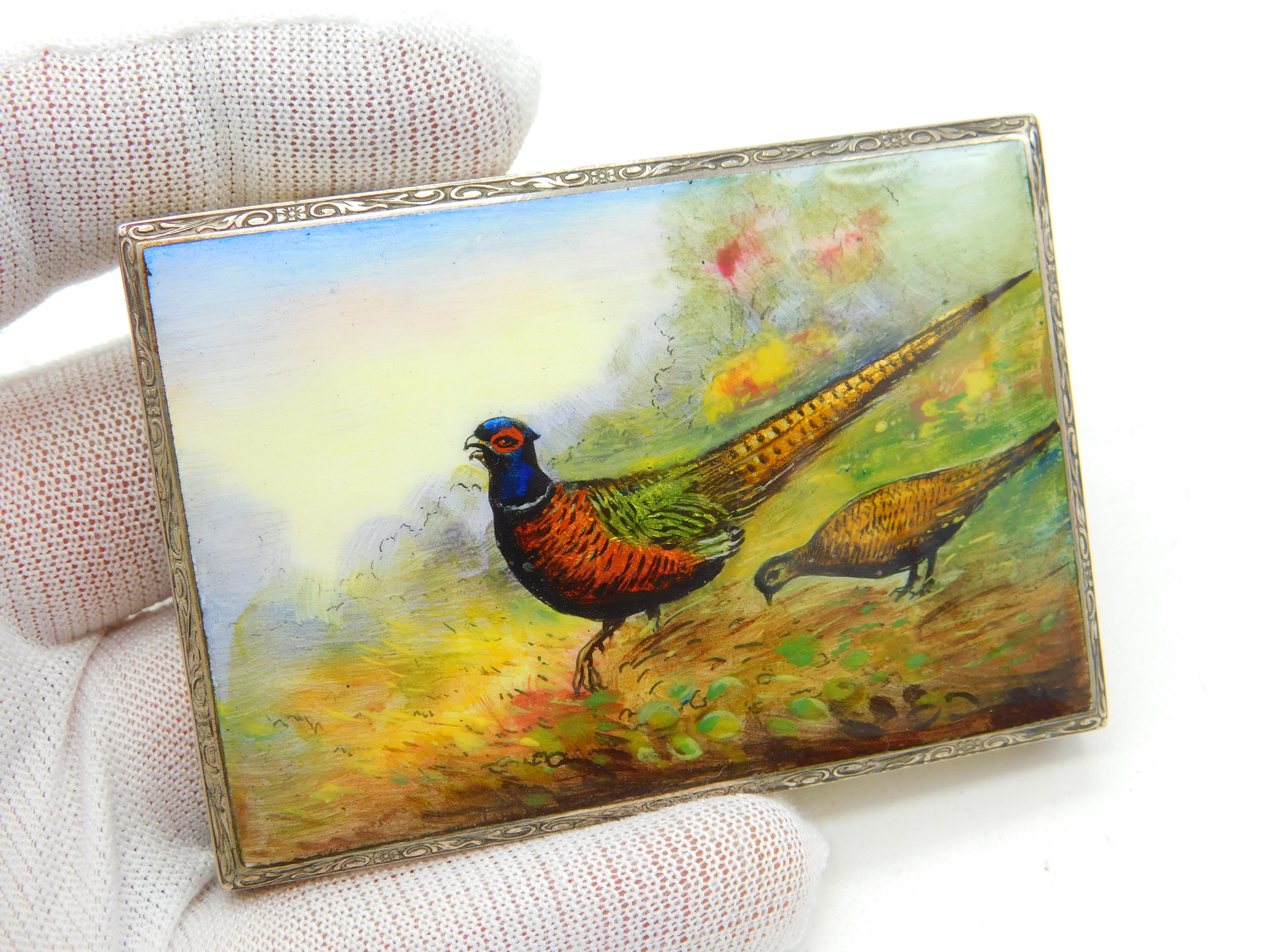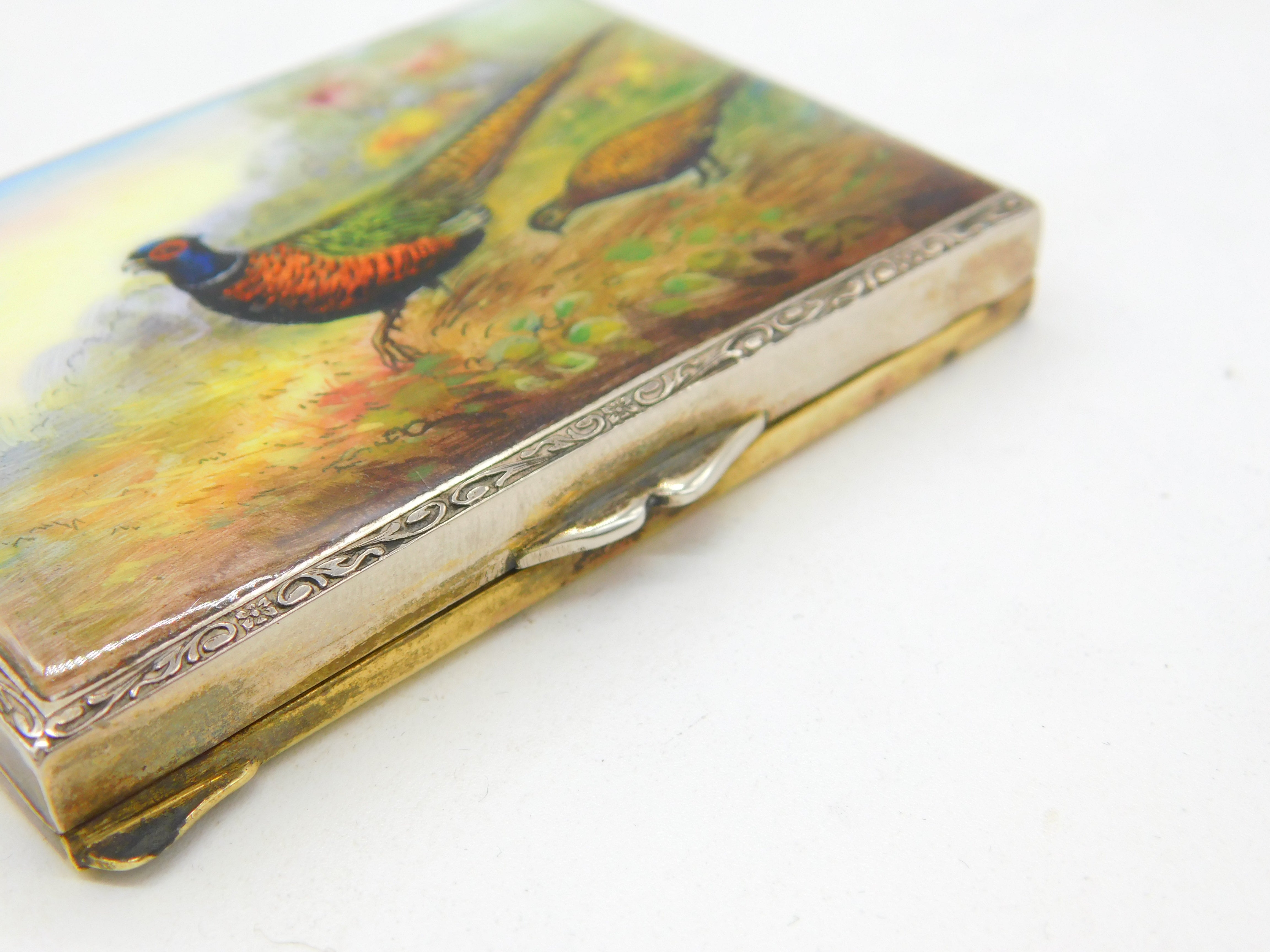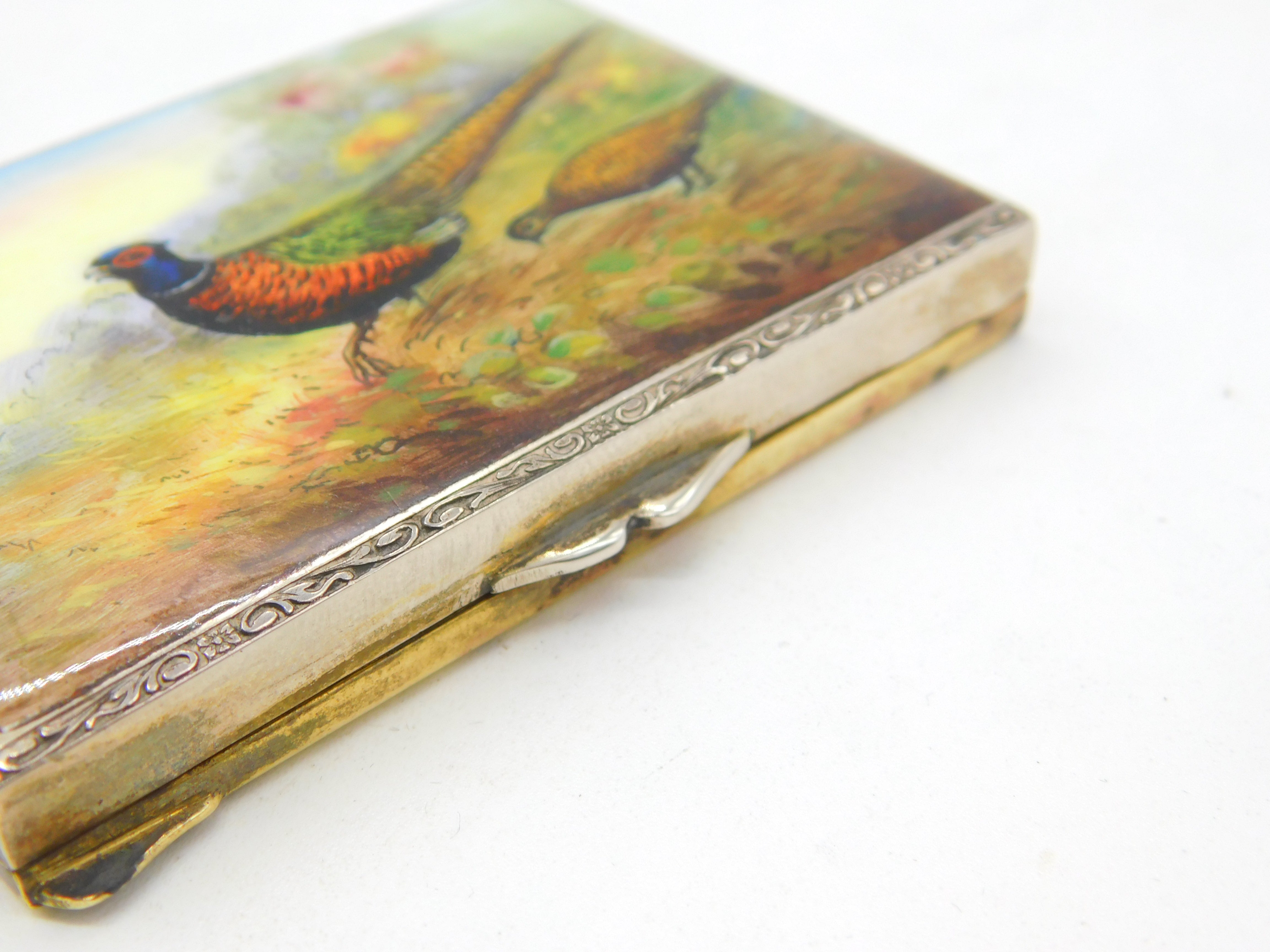 Victorian Sterling Silver Gilt Colourful Enamel Pheasant Scene Mirror Compact