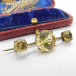 Victorian Sterling Silver Gilt & Faceted Citrine Bar Brooch Antique c1890
