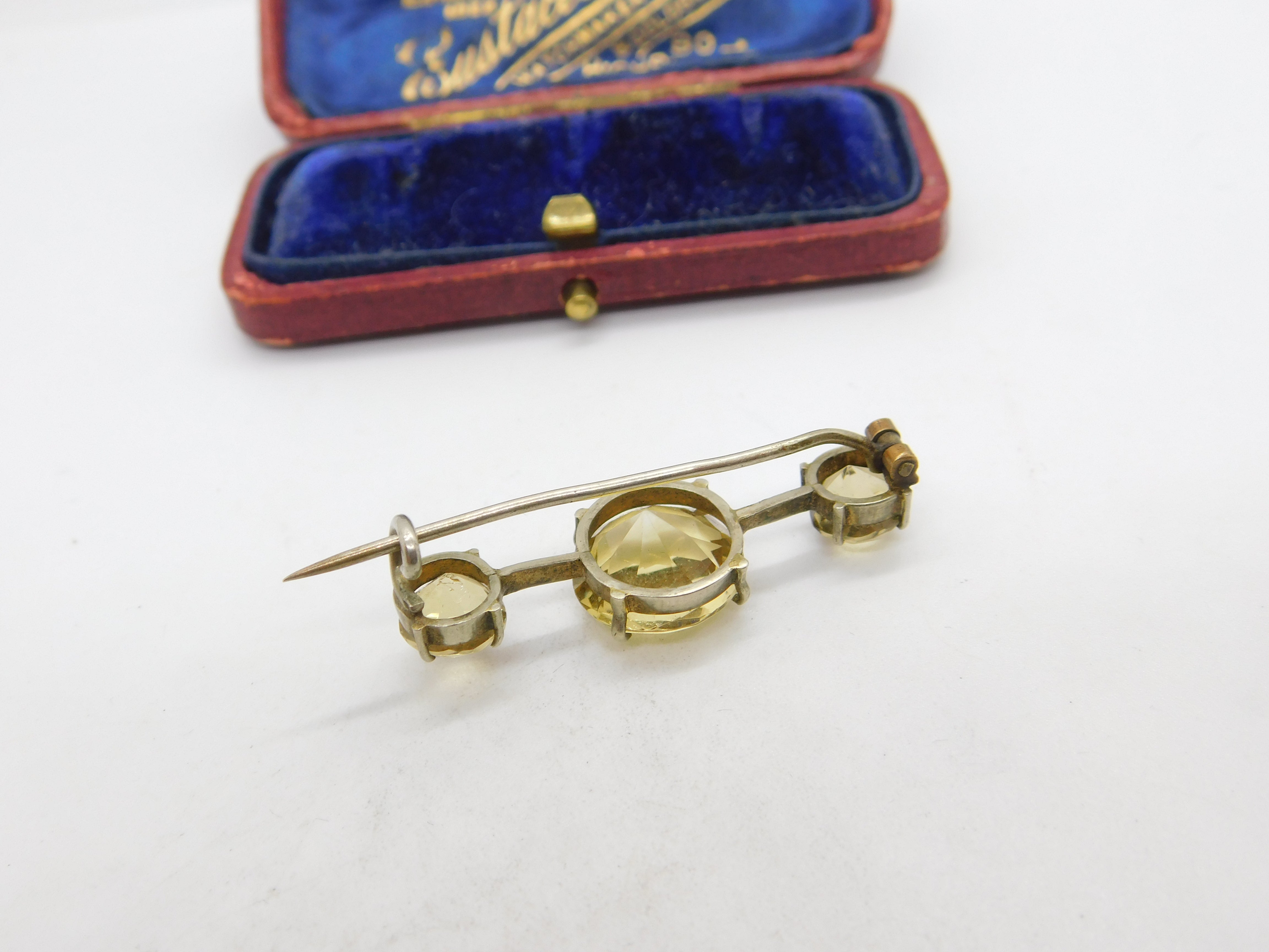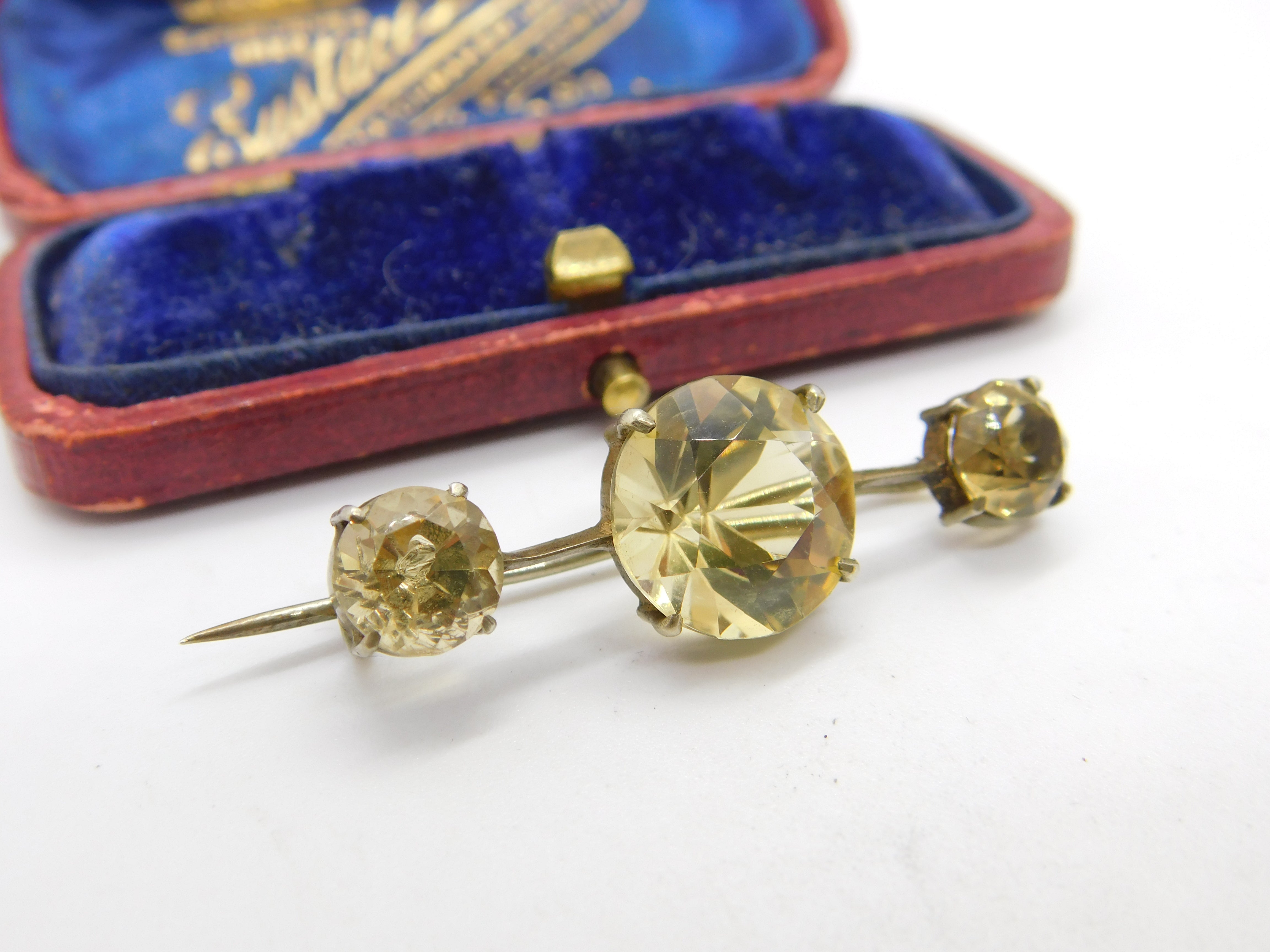 Details: A fantastic and wonderfully designed antique Victorian sterling silver gilt and faceted citrine bar brooch c1890, the silver has been tested. This is a wonderful item that would make a perfect gift or addition to any collection. The BOX pictured is for PRESENTATION ONLY and is NOT included in the listings but used to frame the pictures unless specifically stated otherwise.
