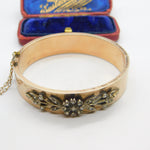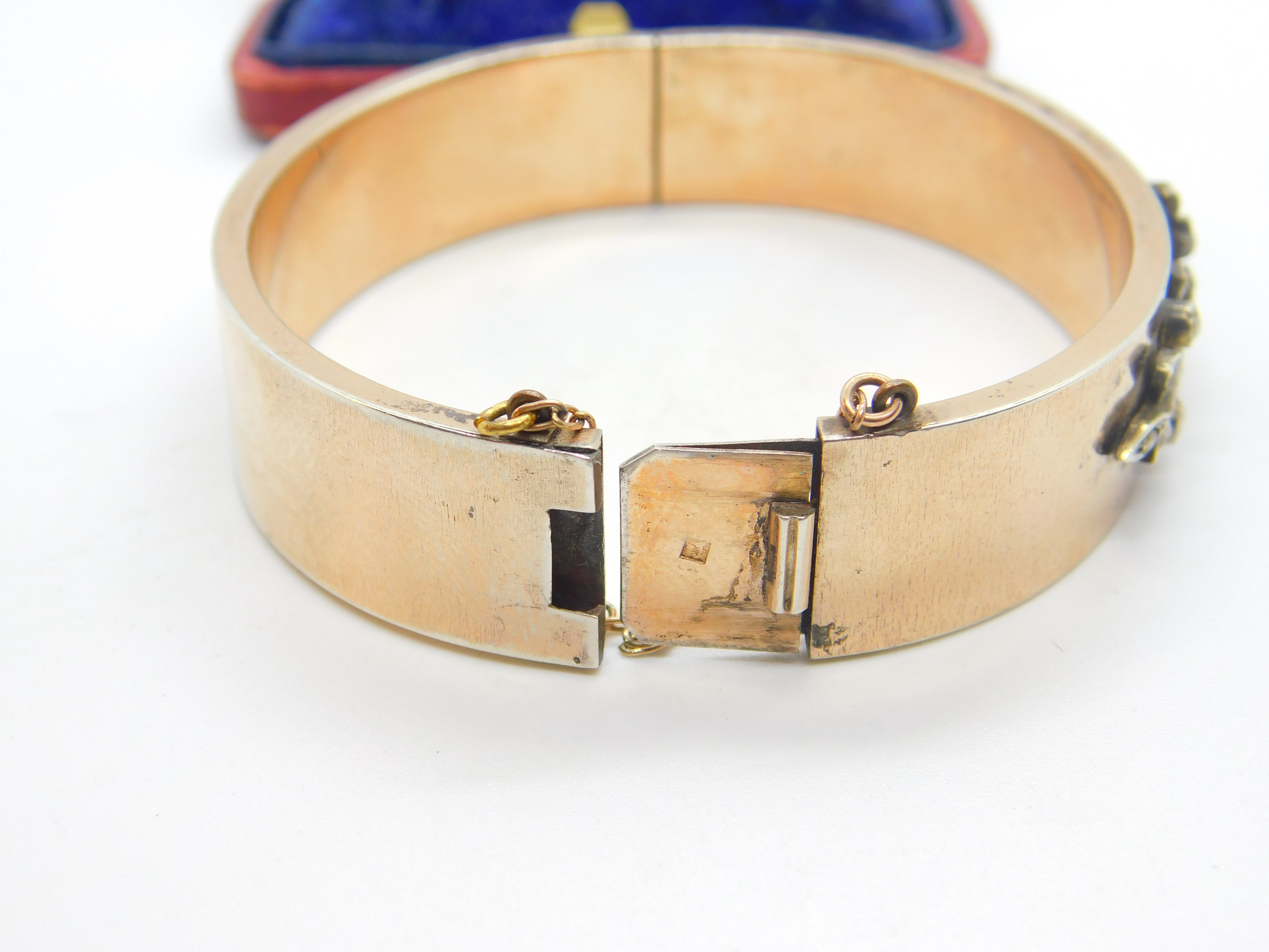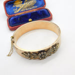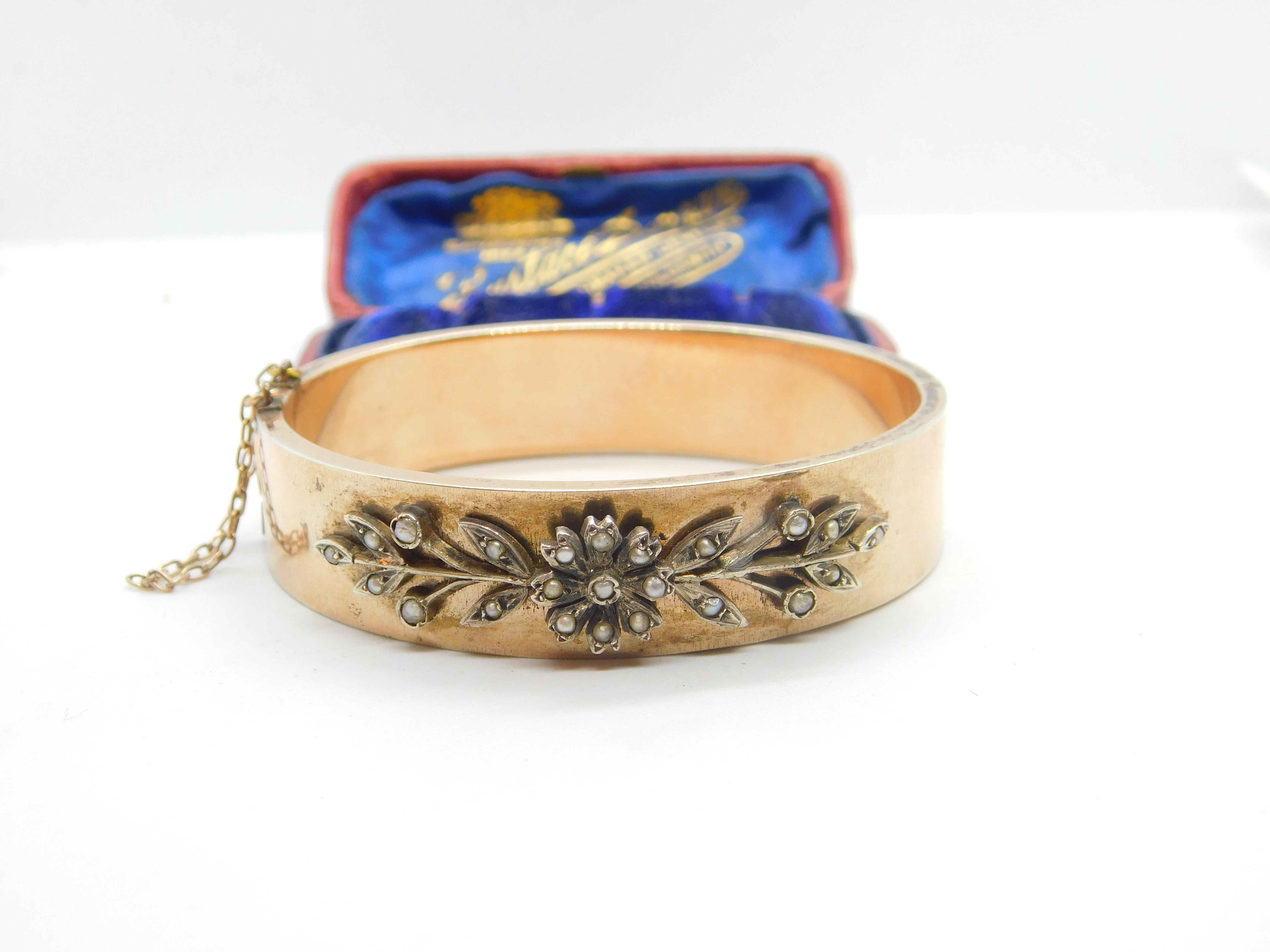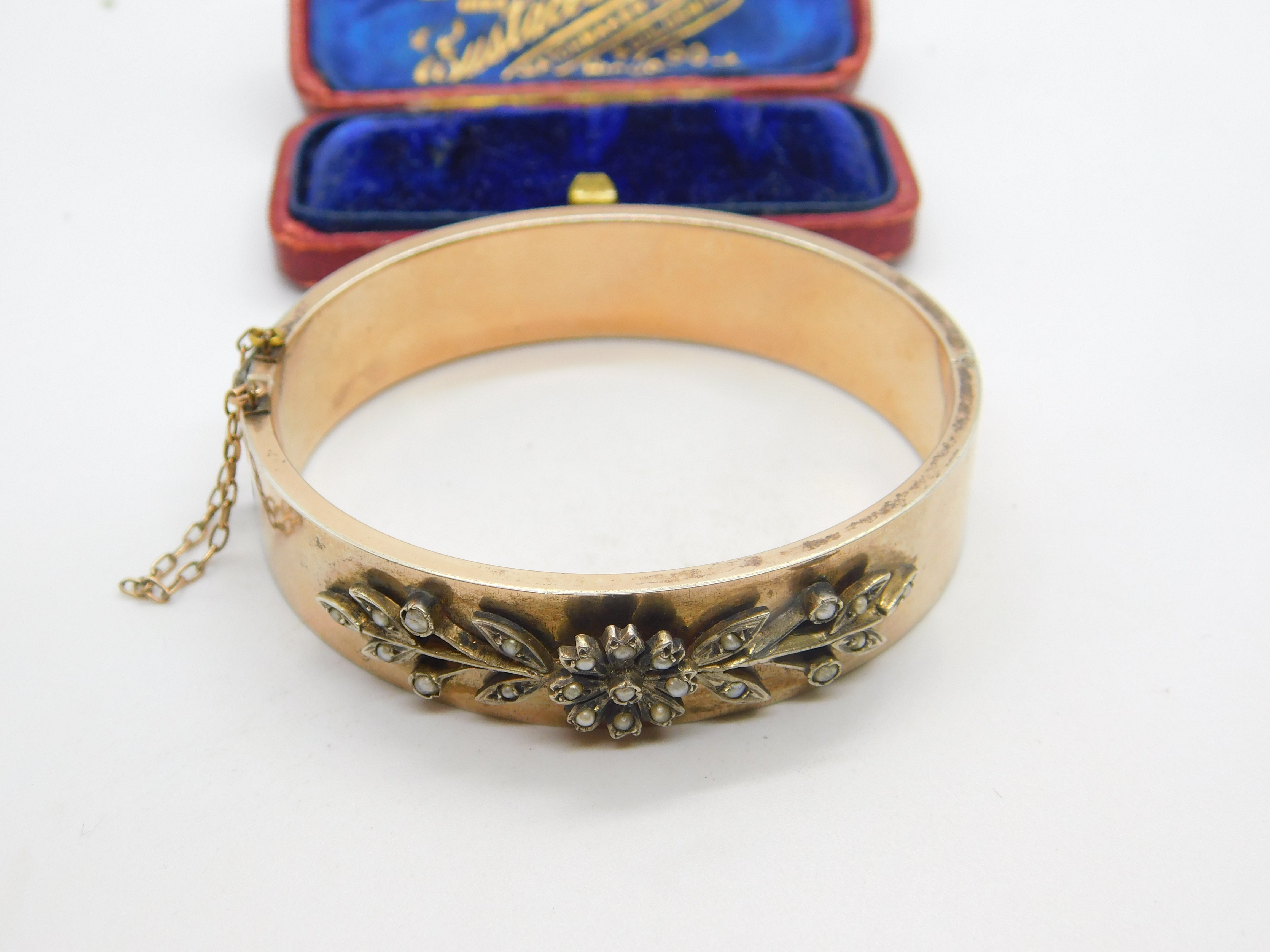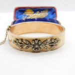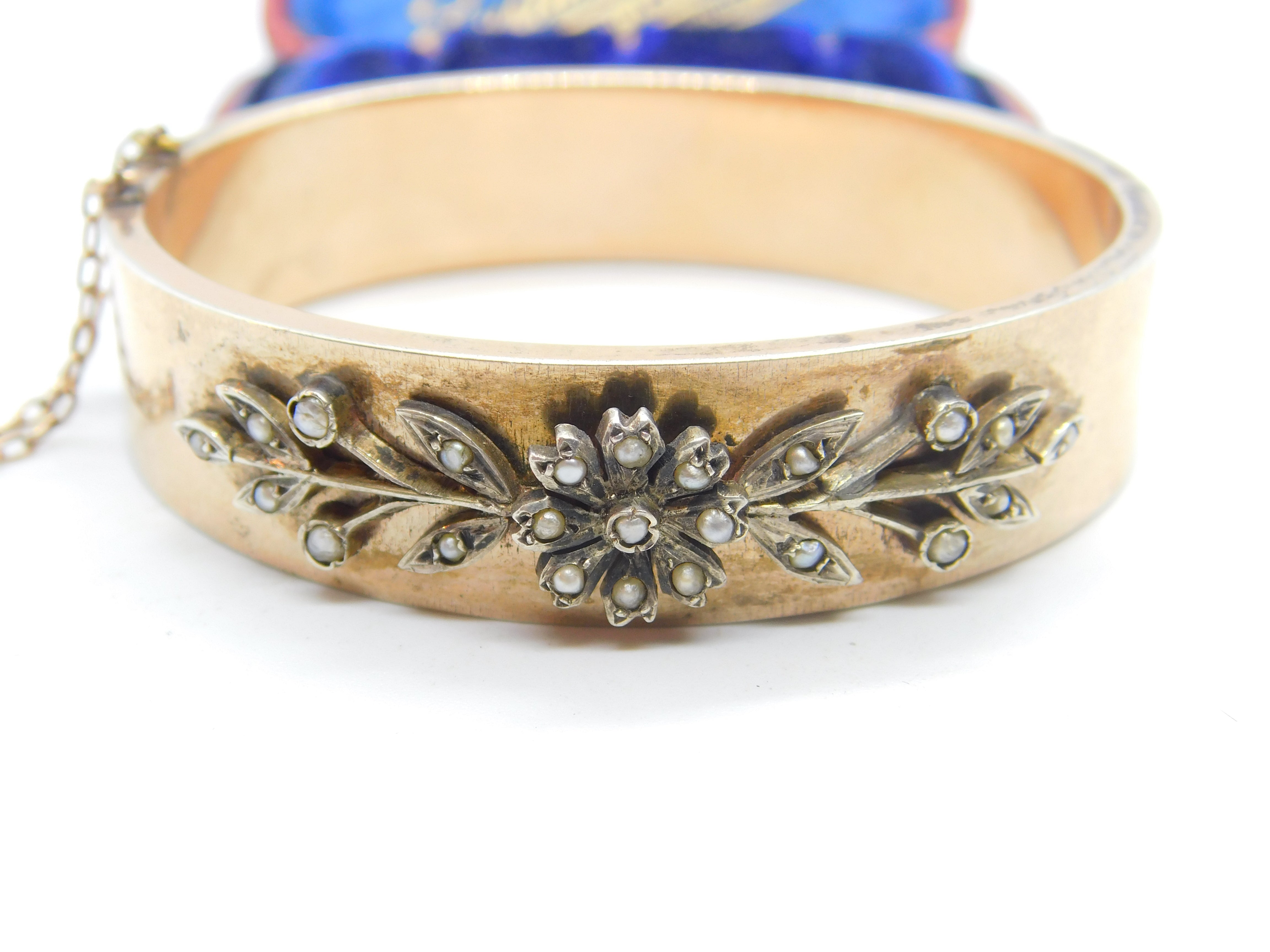 Victorian Sterling Silver Gilt & Floral Seed Pearl Set Bangle Bracelet c1860 AF