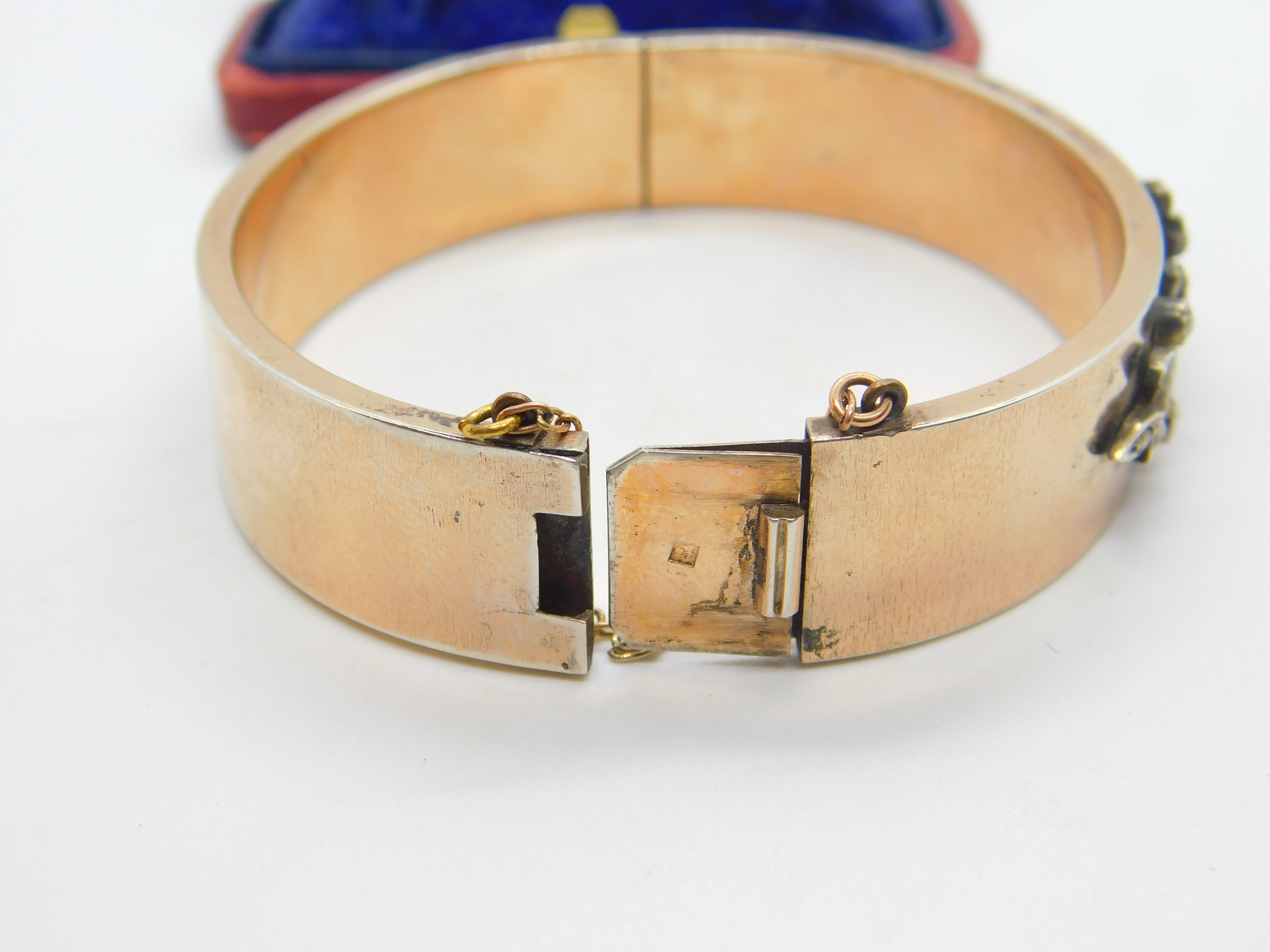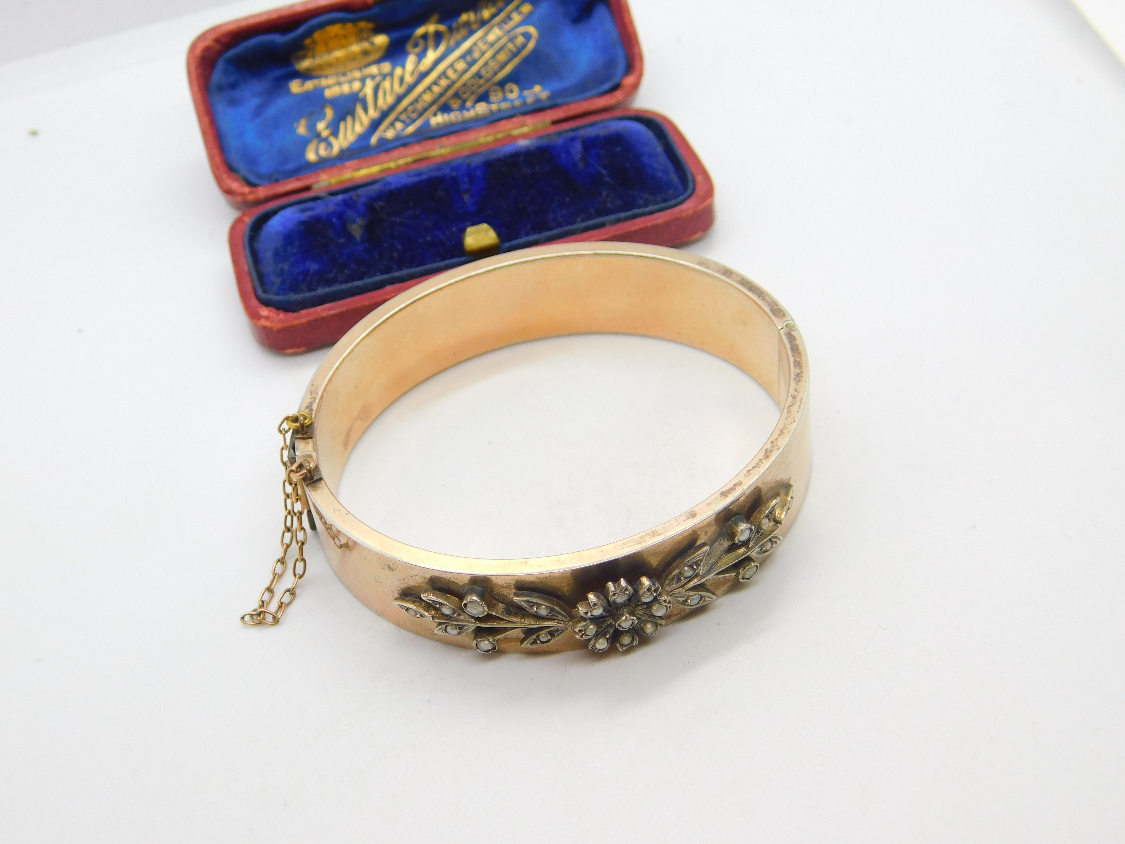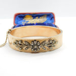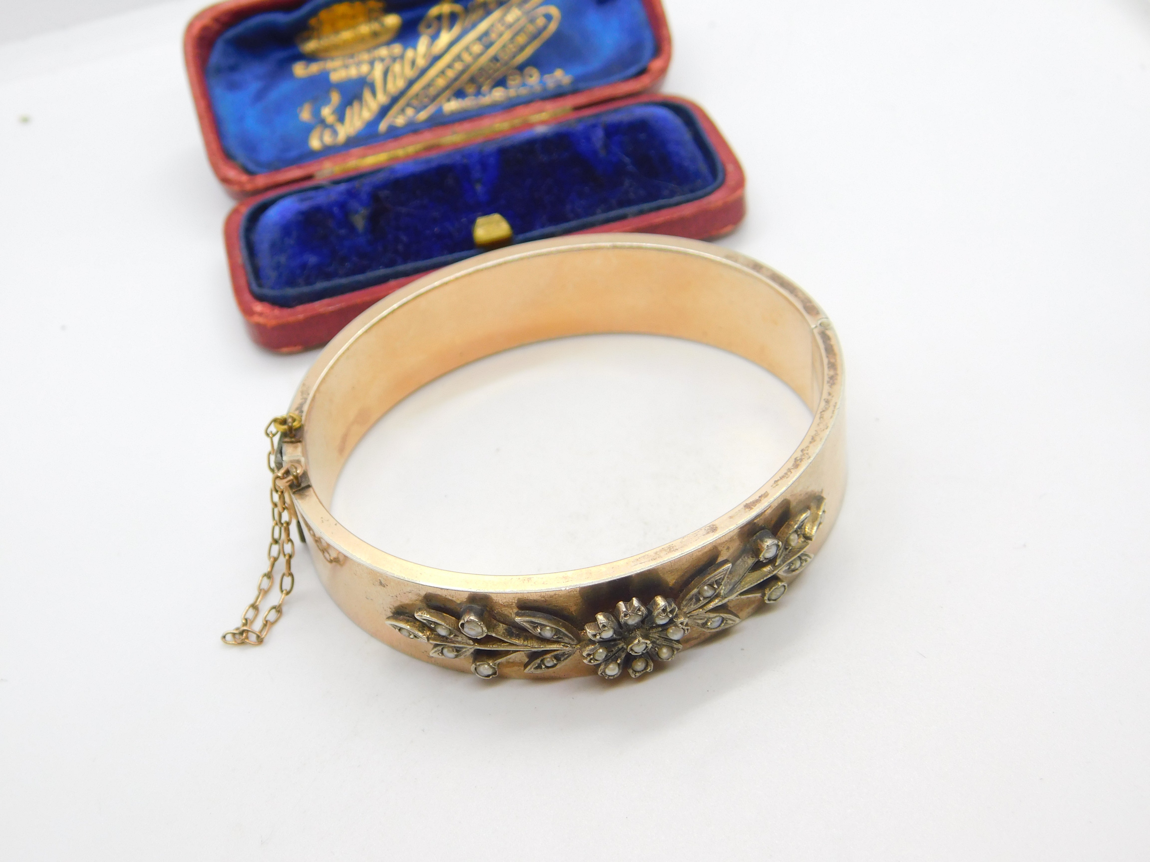 Details: A fantastic and wonderfully designed antique Victorian sterling silver rose gold gilt floral pattern cuff bangle set with seed pearls hallmarked to the clasp c1860. The item has been XRF tested - the clasp is a little loose and has a small split. This is a wonderful item that would make a perfect gift or addition to any collection. The BOX pictured is for PRESENTATION ONLY and is NOT included in the listings but used to frame the pictures unless specifically stated otherwise.