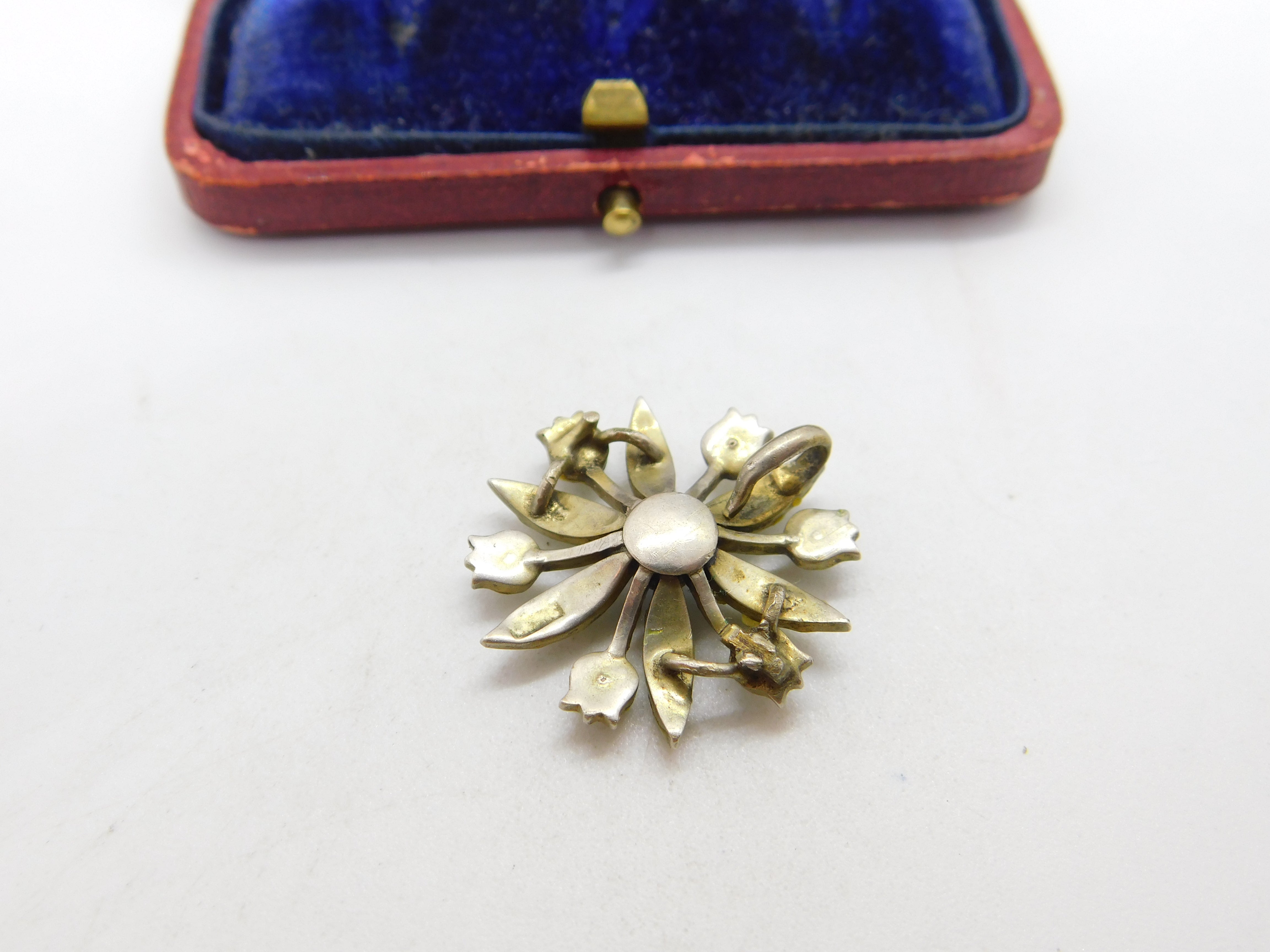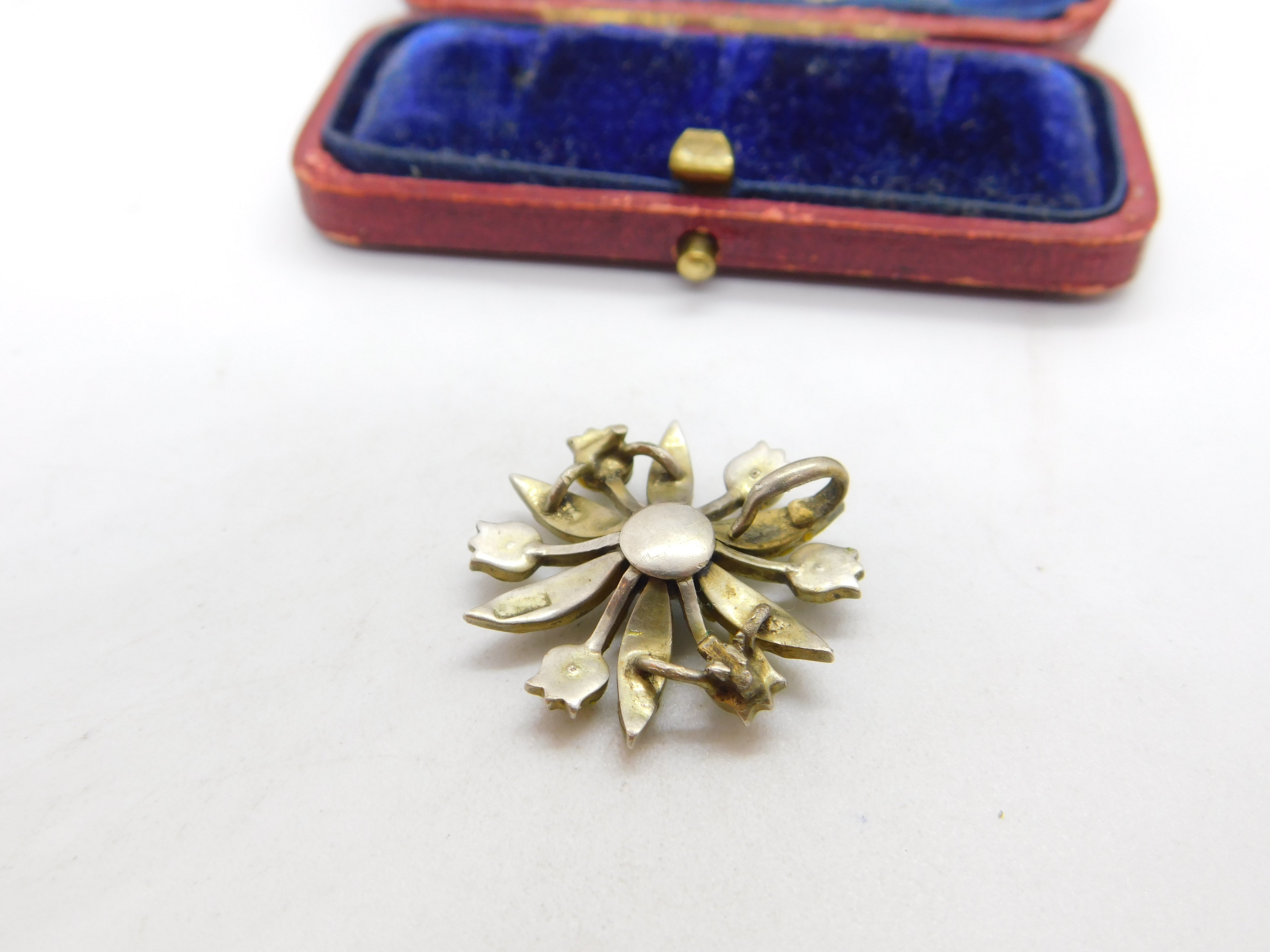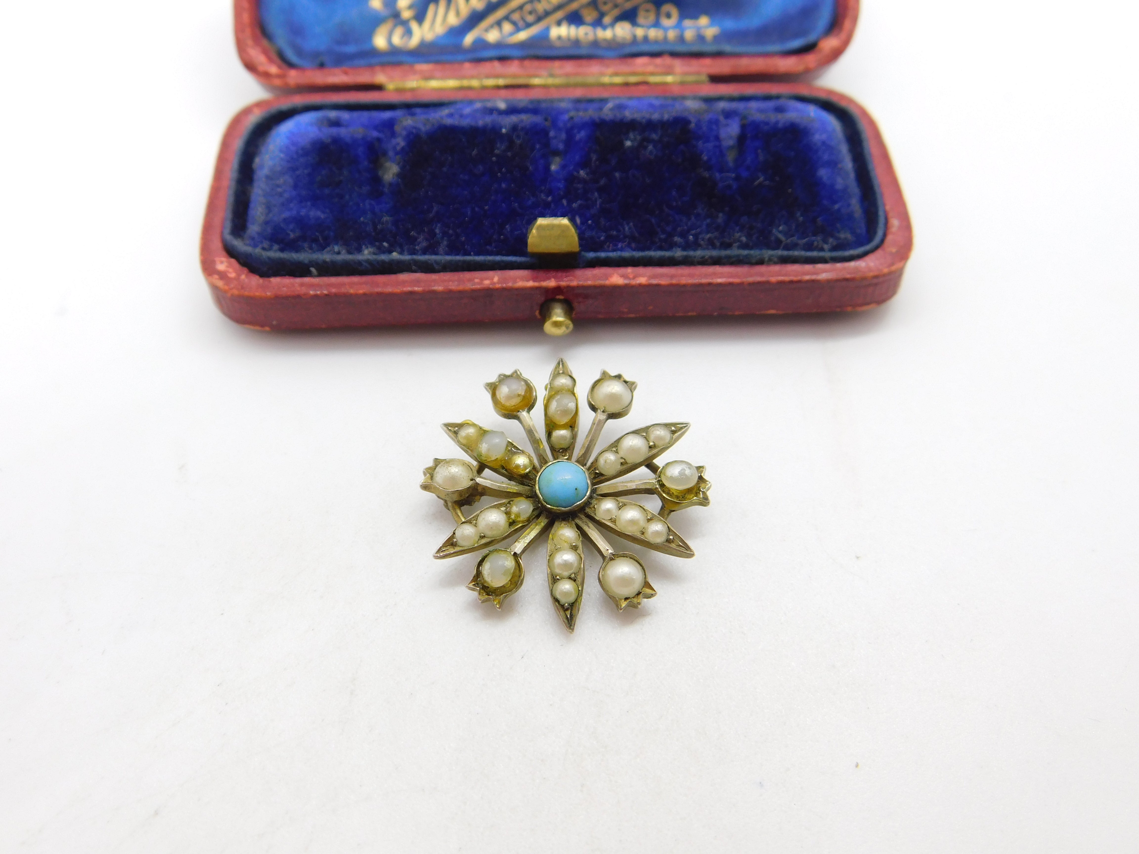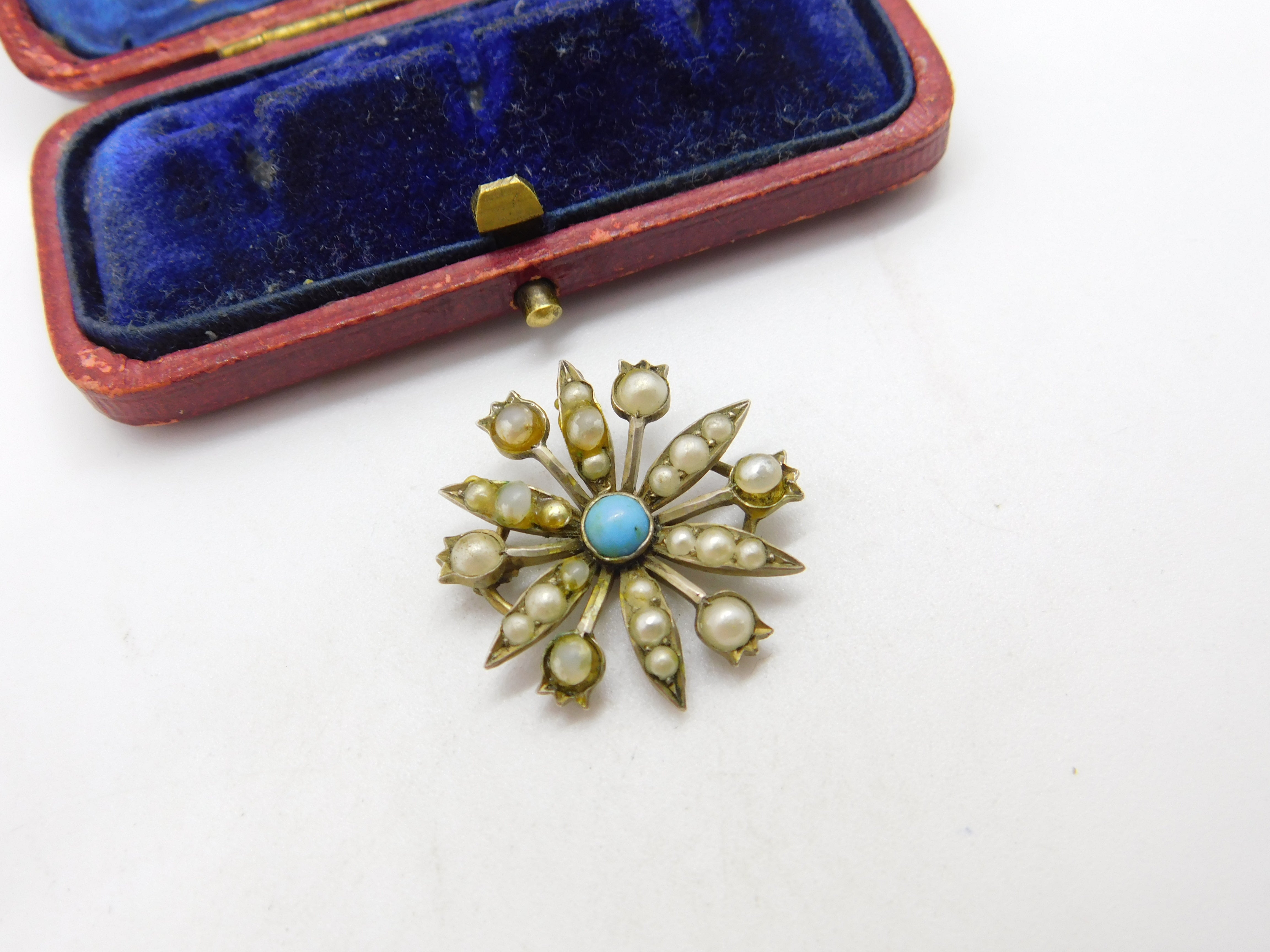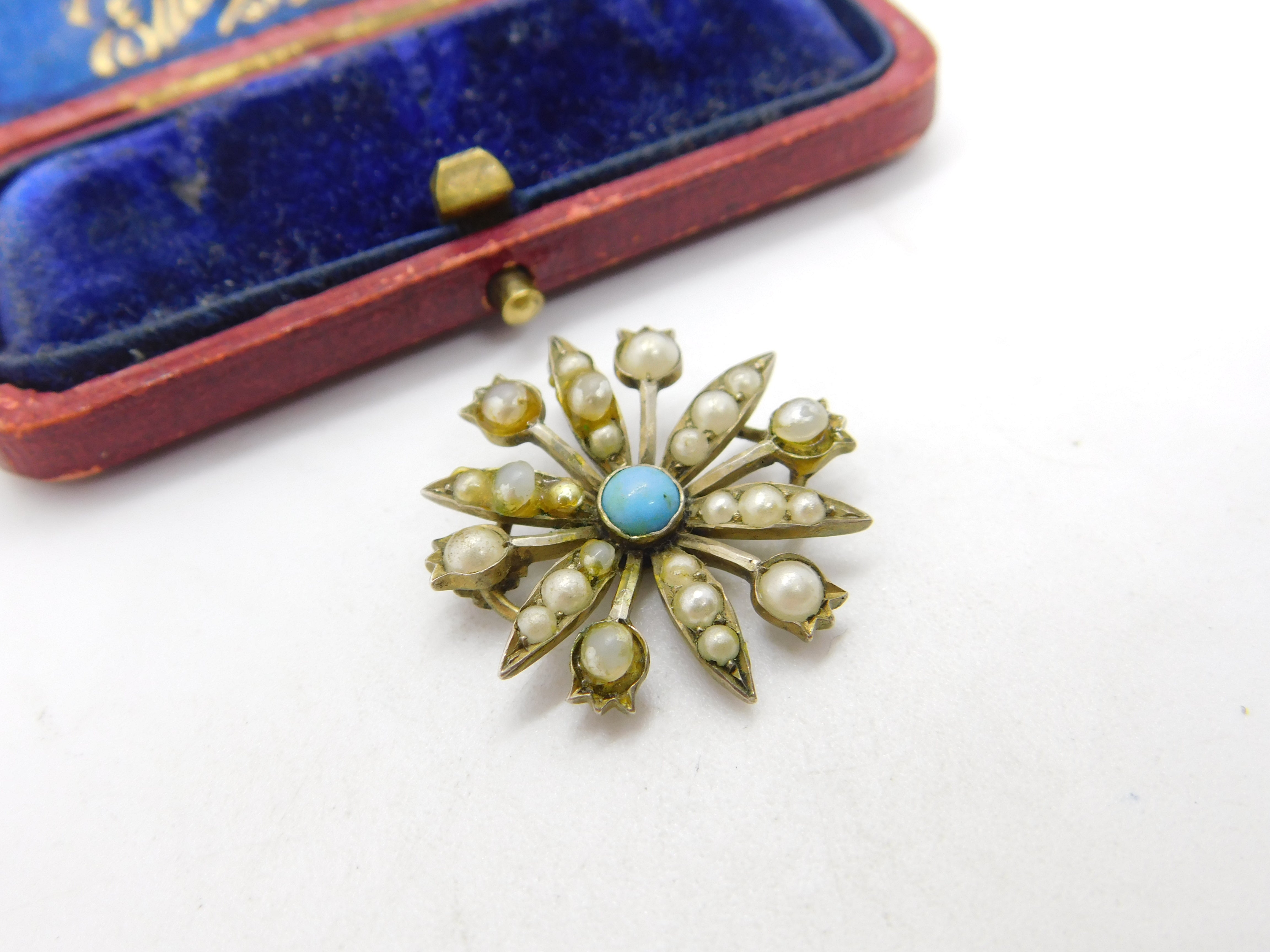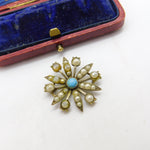 Victorian Sterling Silver Gilt, Seed Pearl & Turquoise Floral Drop Pendant c1890