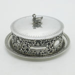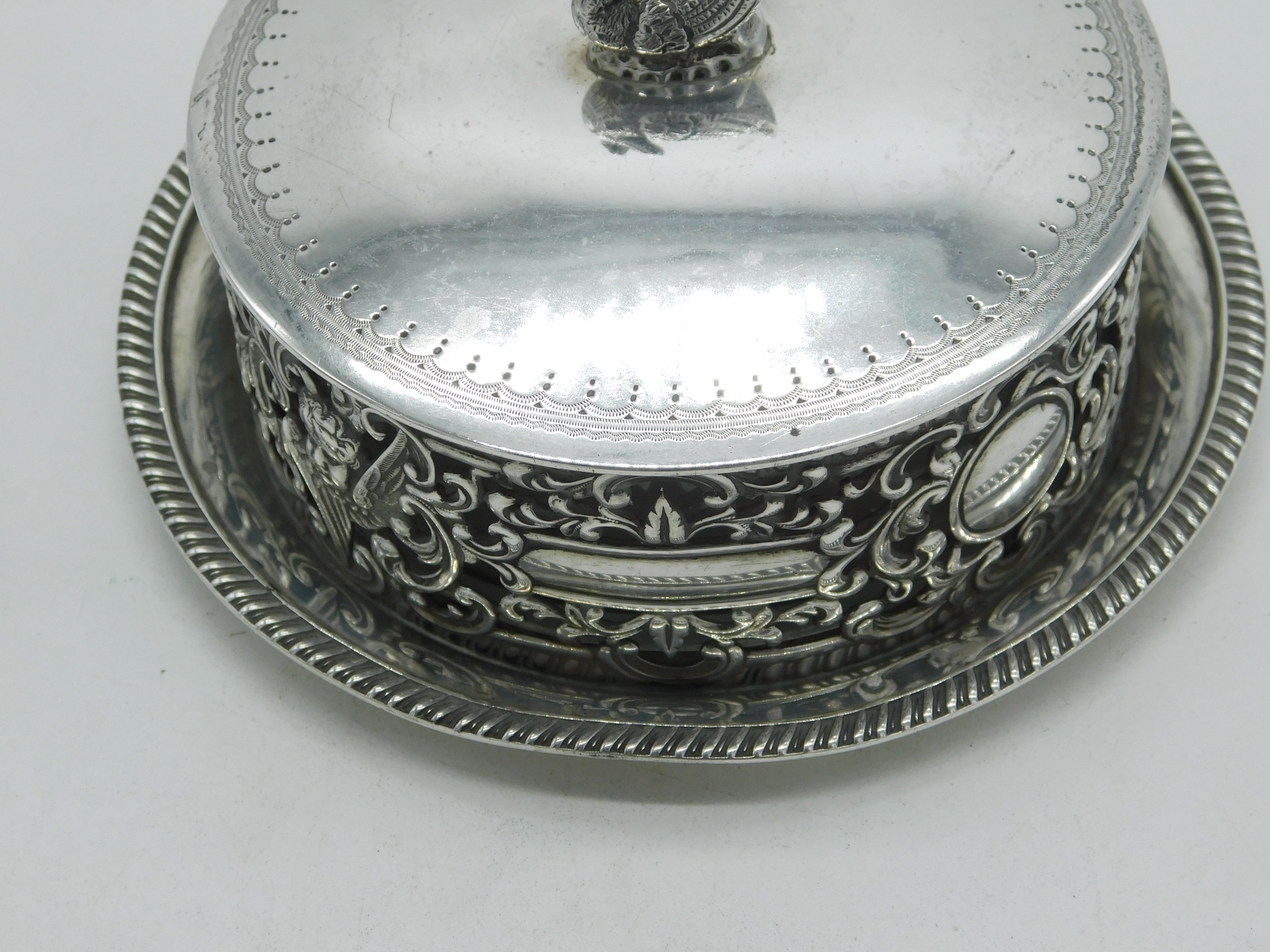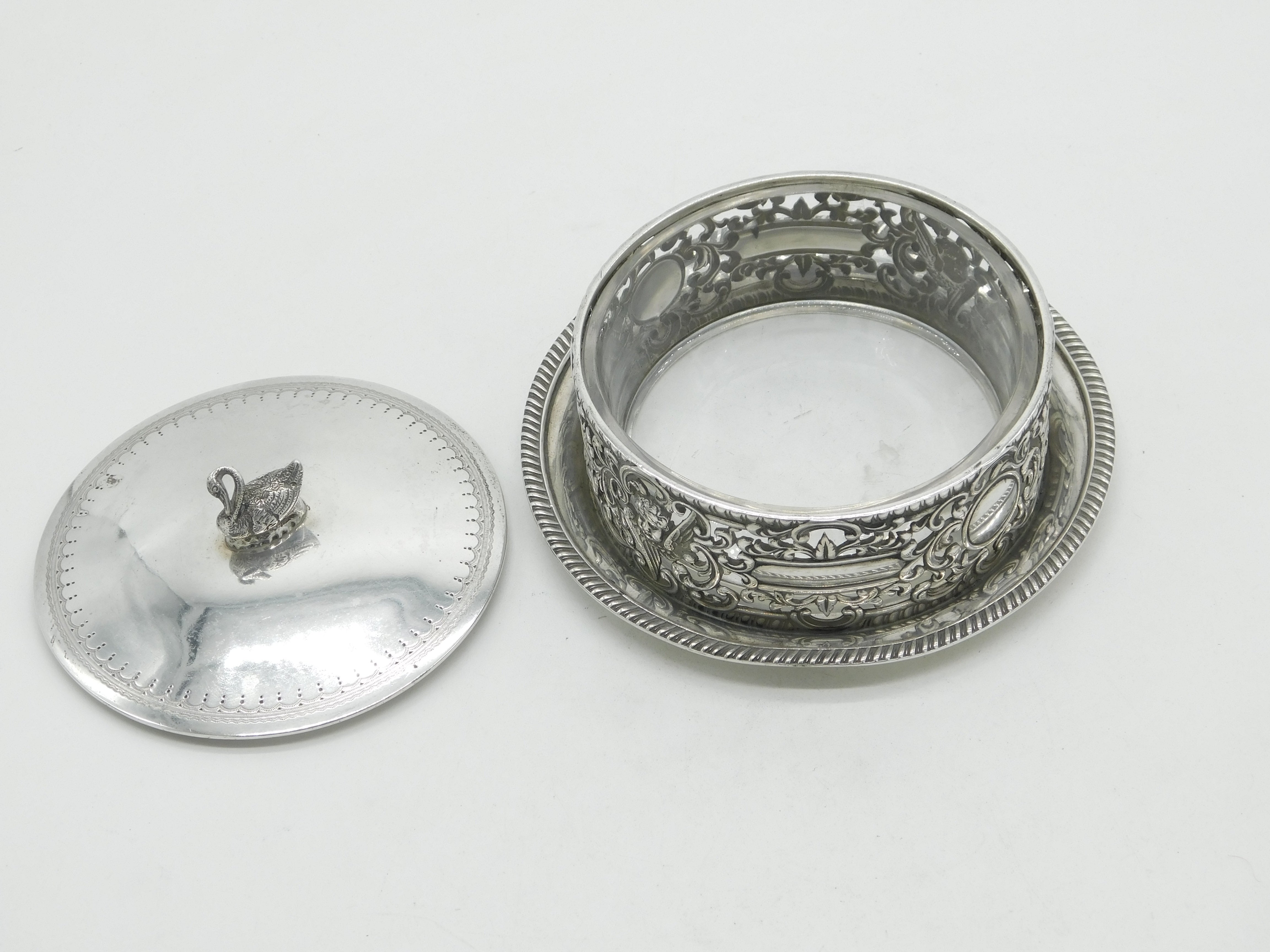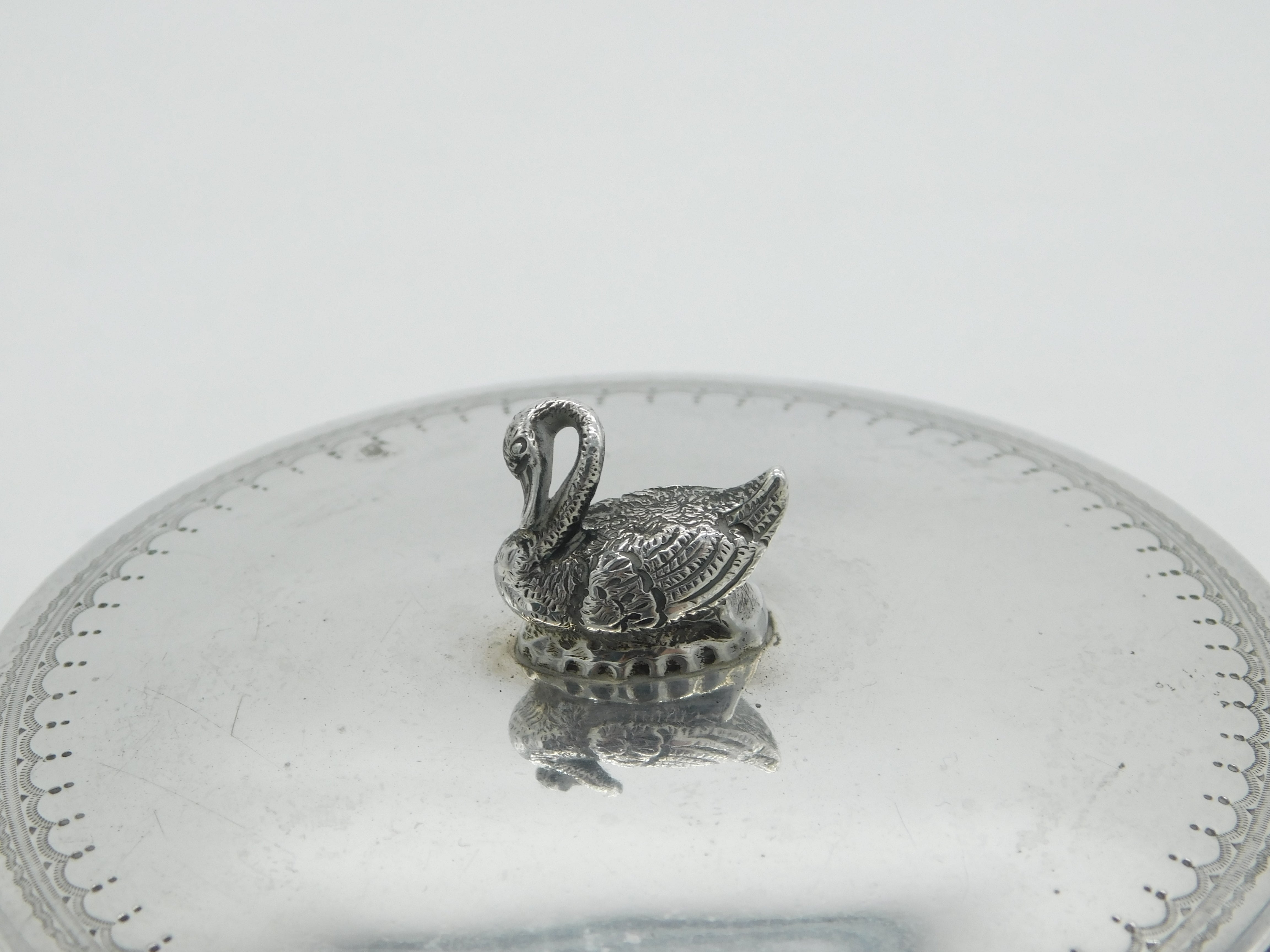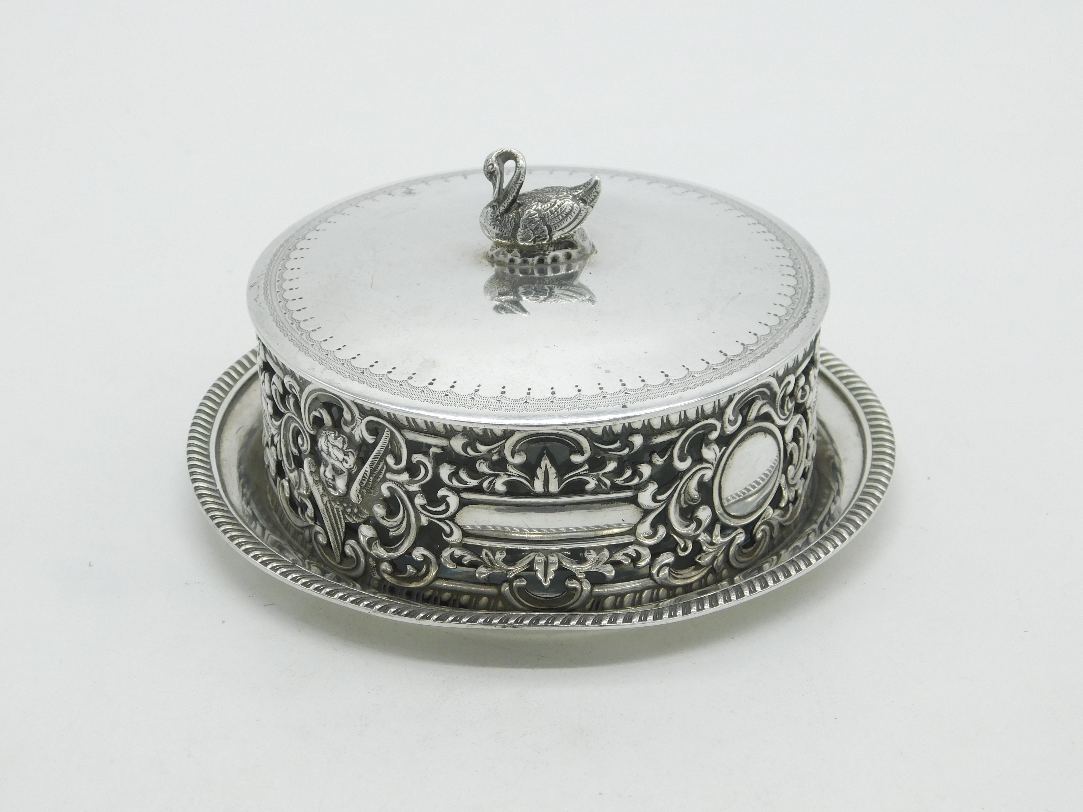 Victorian Sterling Silver & Glass Swan Finial Butter Dish 1894 London Antique