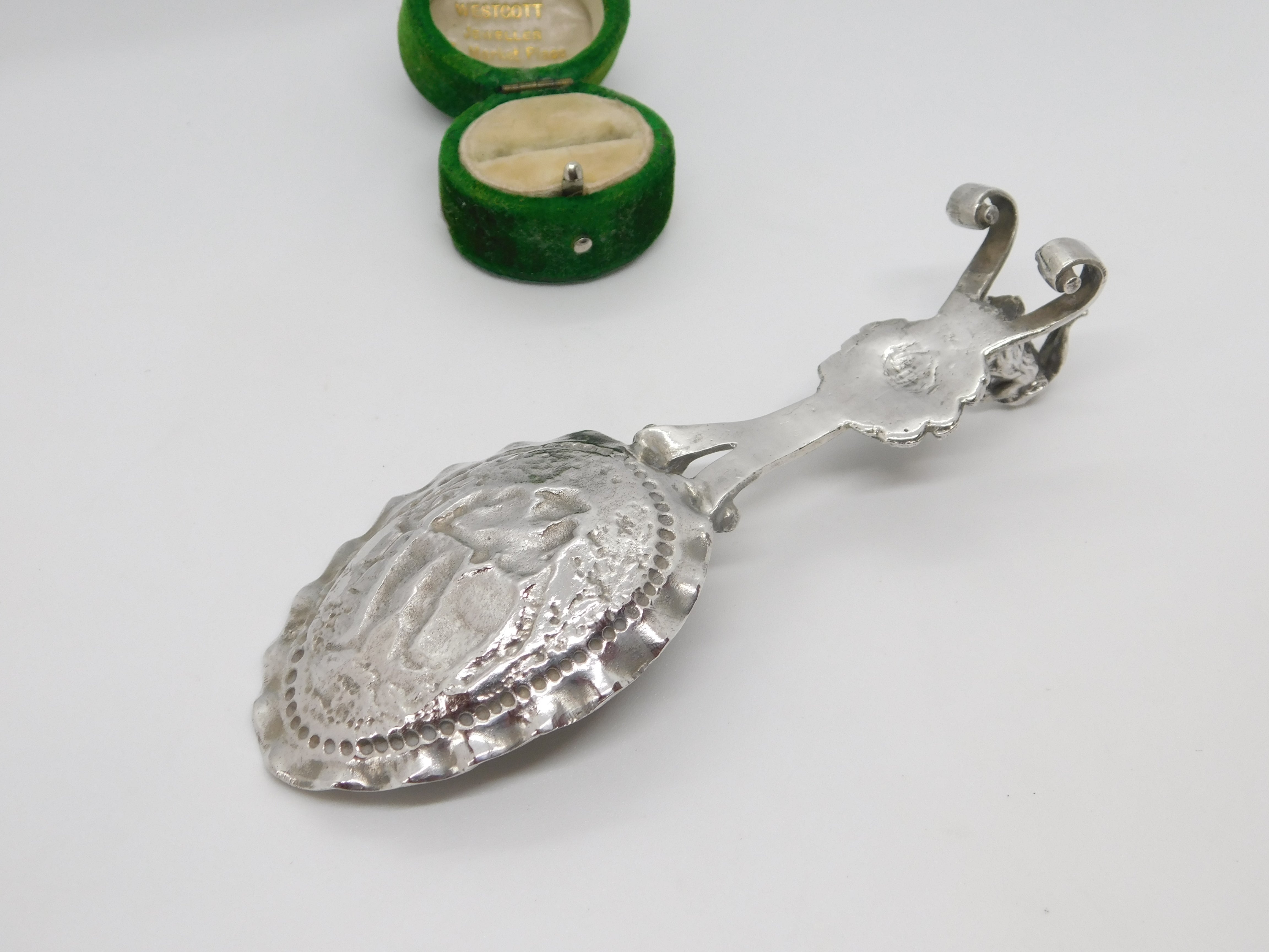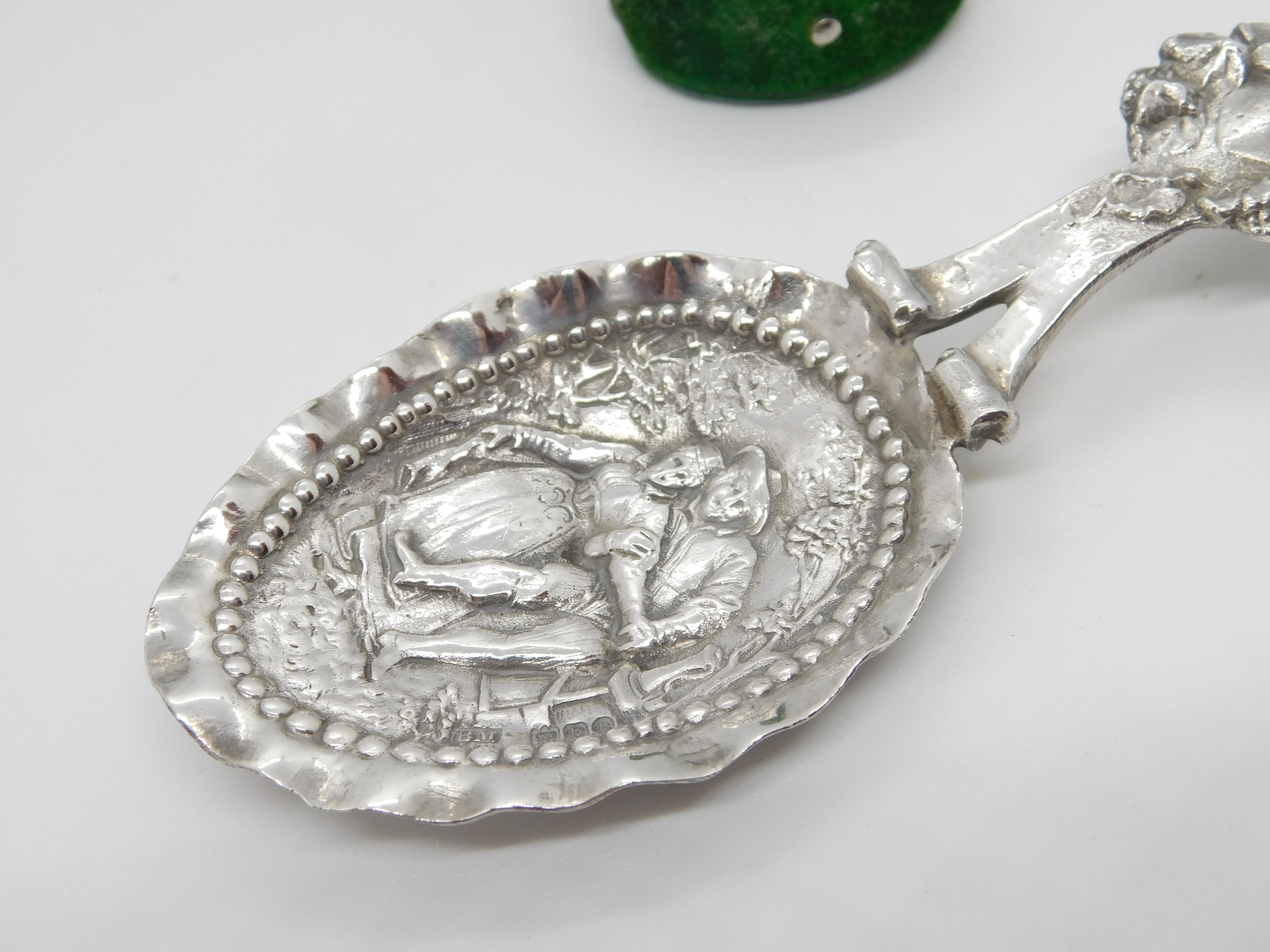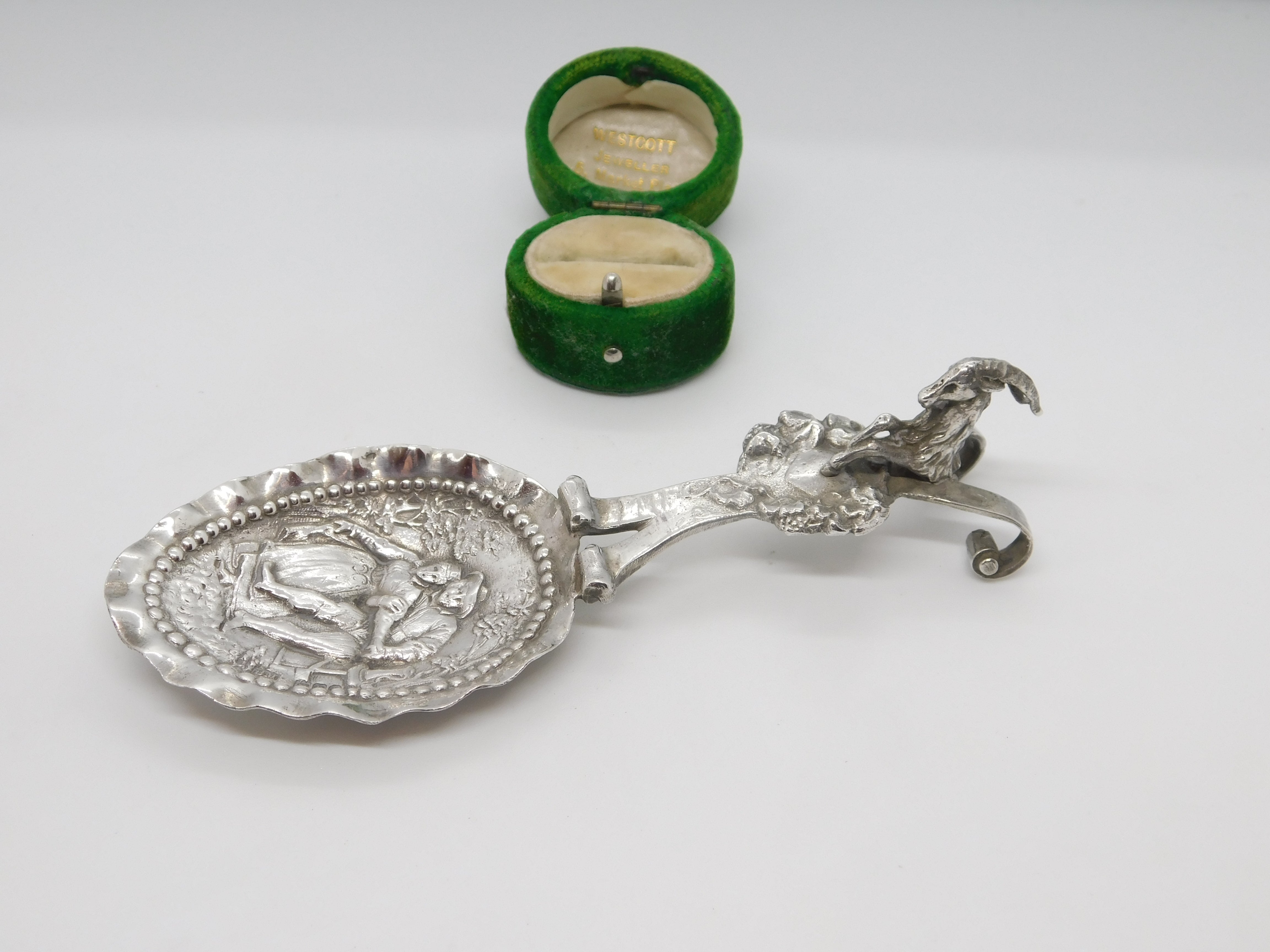 Details: A fantastic and wonderfully designed antique Victorian sterling silver goat and country scene tea caddy or sugar spoon hallmarked London 1901 by Berthold Muller. This is a wonderful item that would make a perfect gift or addition to any collection. The BOX pictured is for PRESENTATION ONLY and is NOT included in the listings but used to frame the pictures unless specifically stated otherwise.