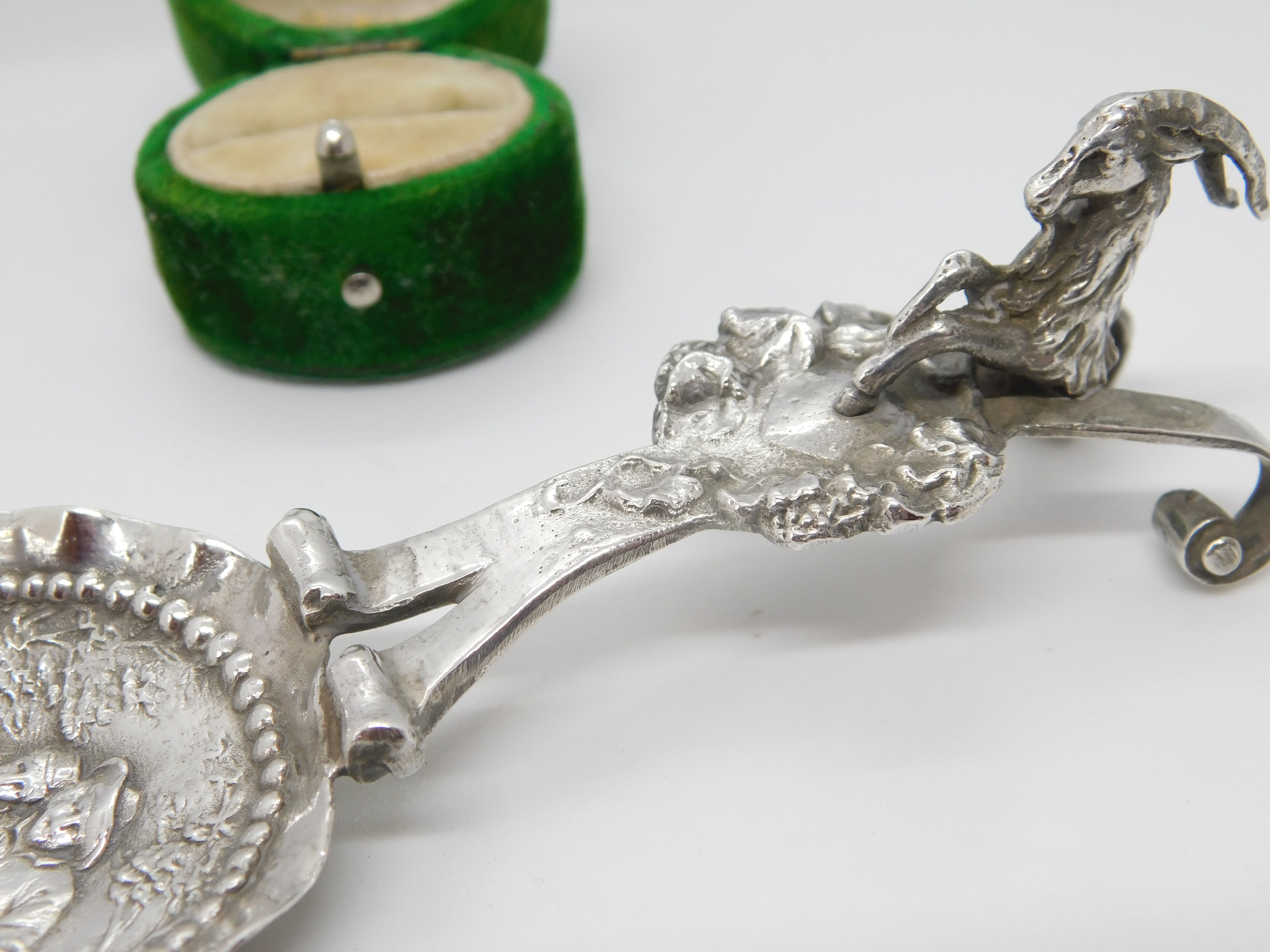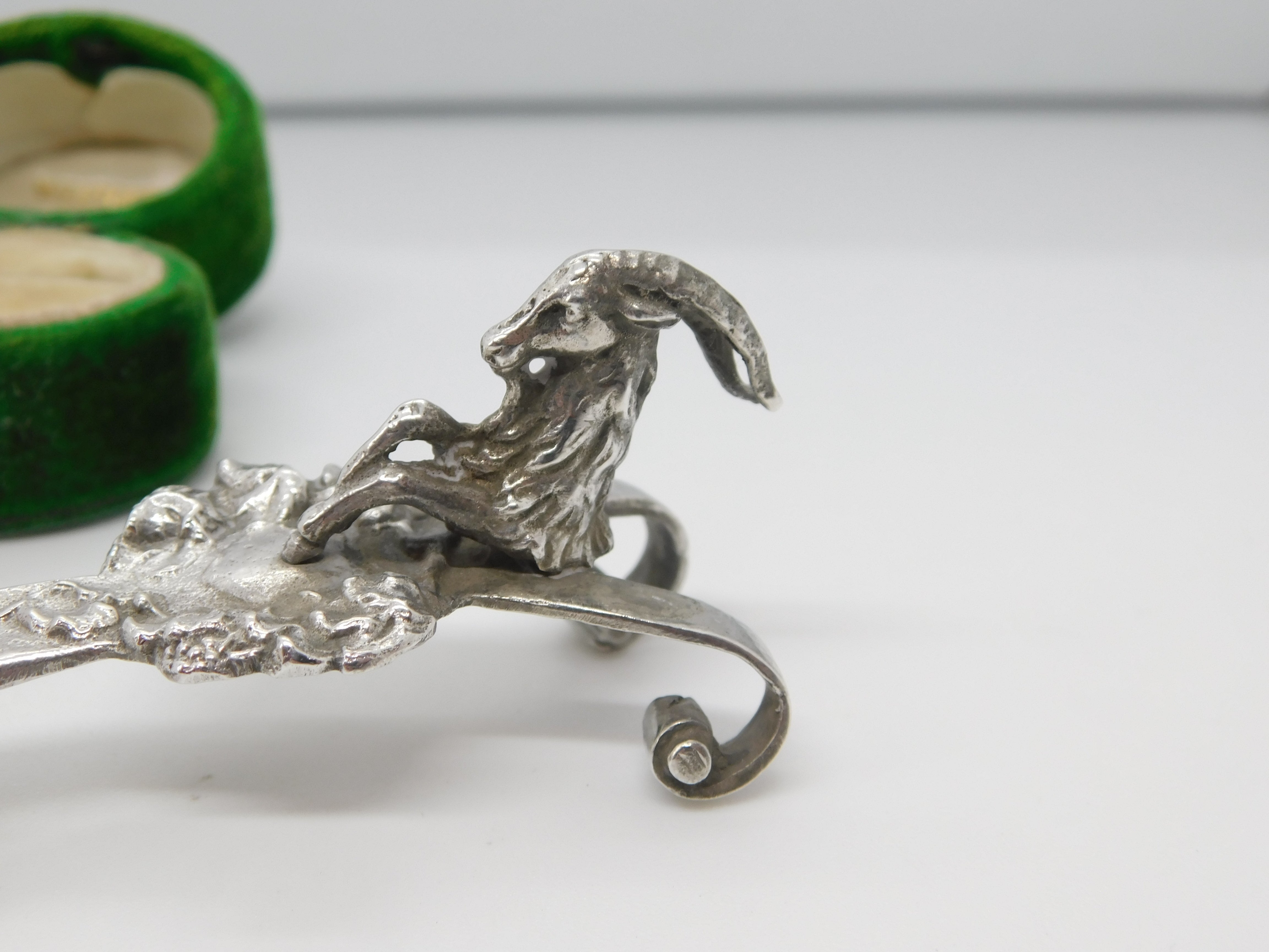 Victorian Sterling Silver Goat & Country Scene Tea Caddy Spoon 1901 Antique