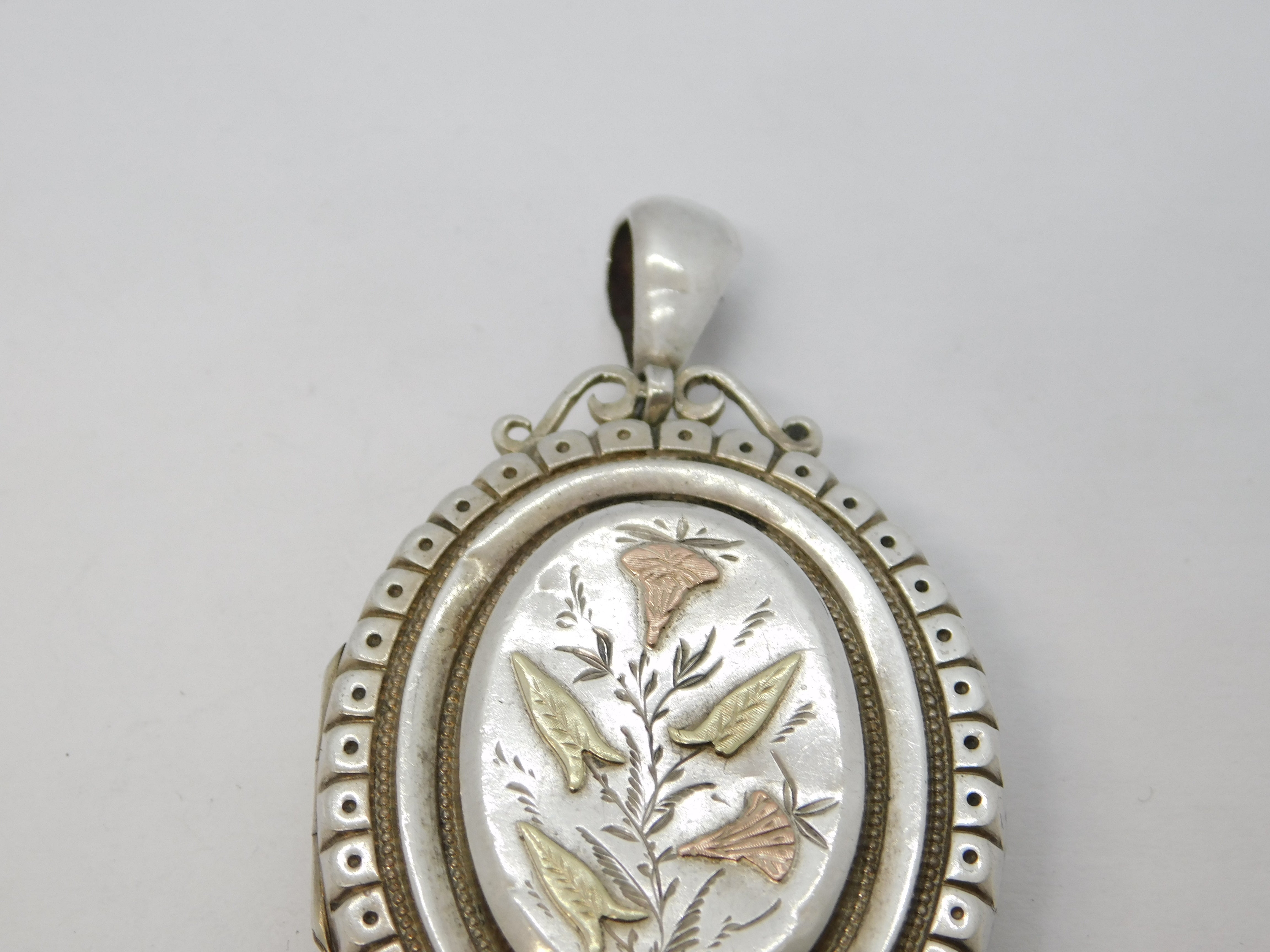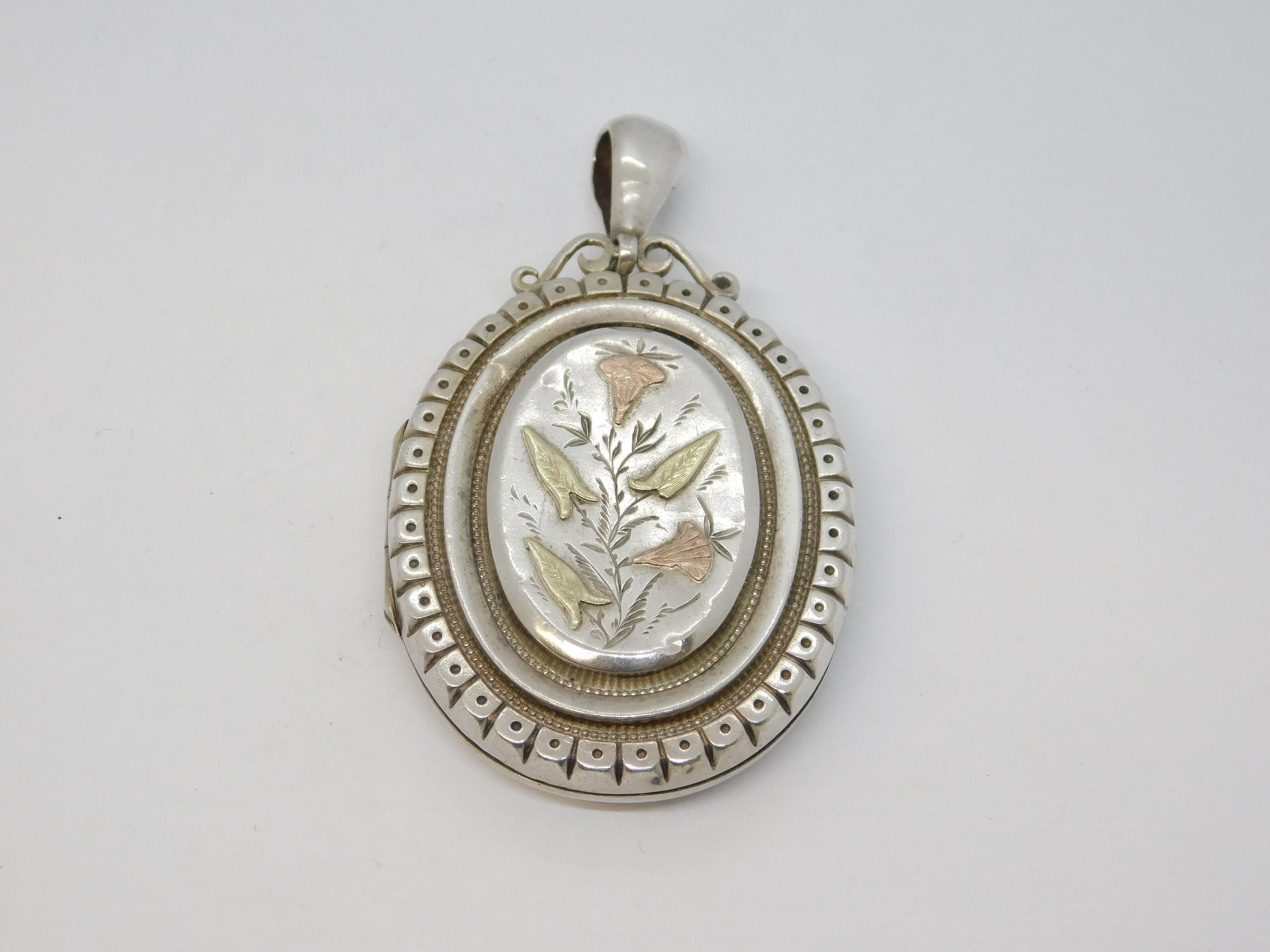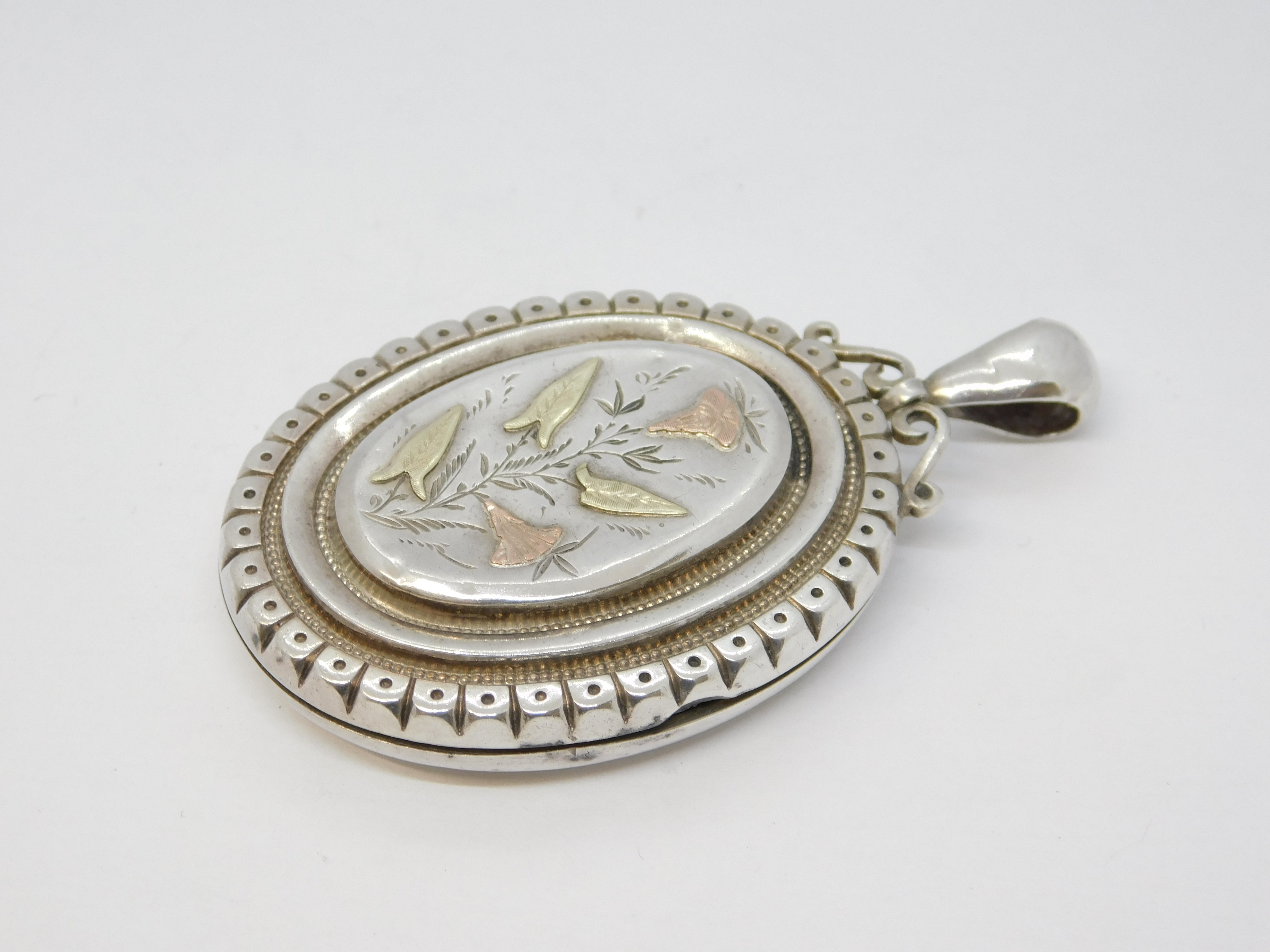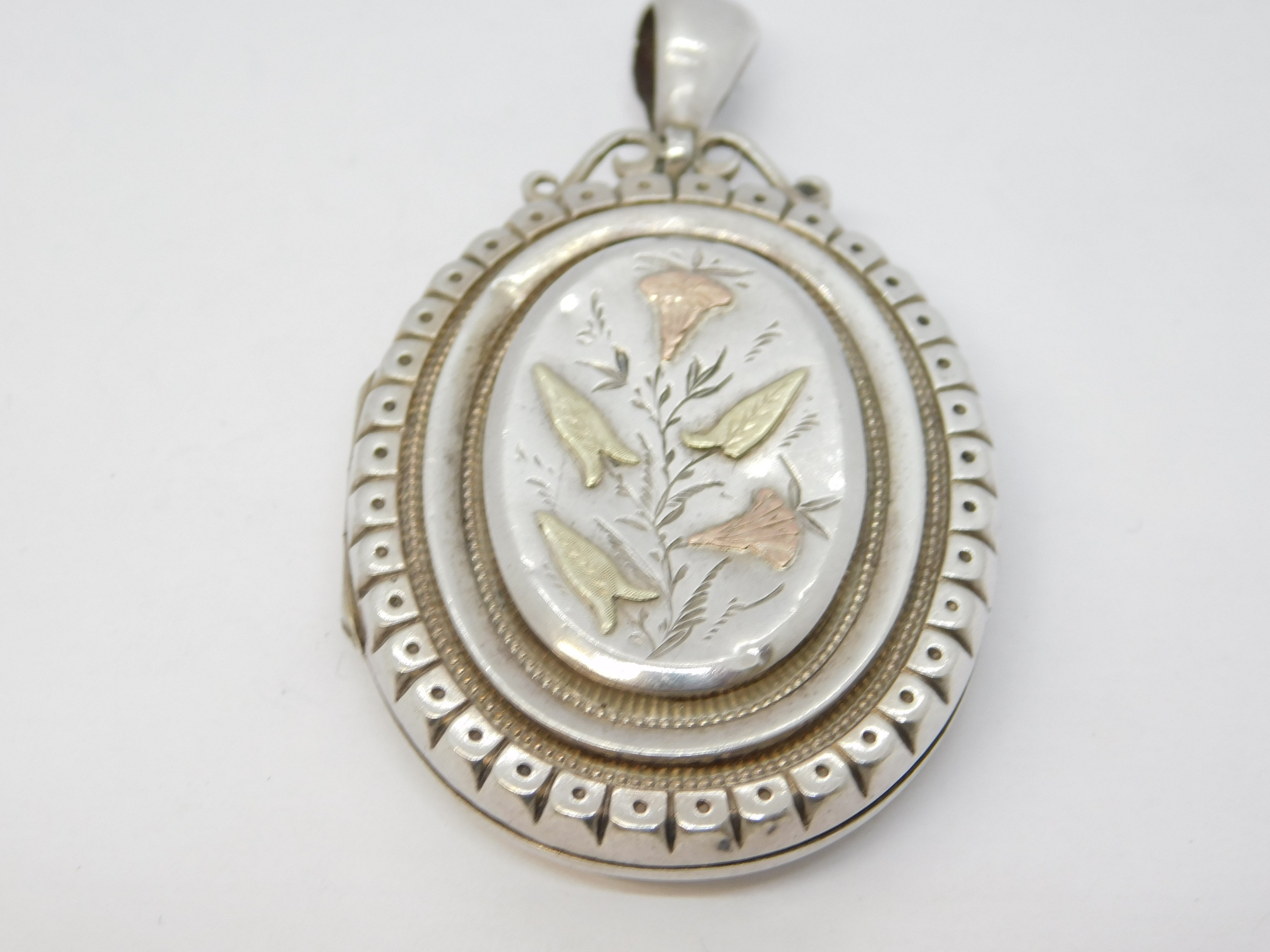 Victorian Sterling Silver & Gold Aesthetic Floral Sweetheart Locket Antique 1880