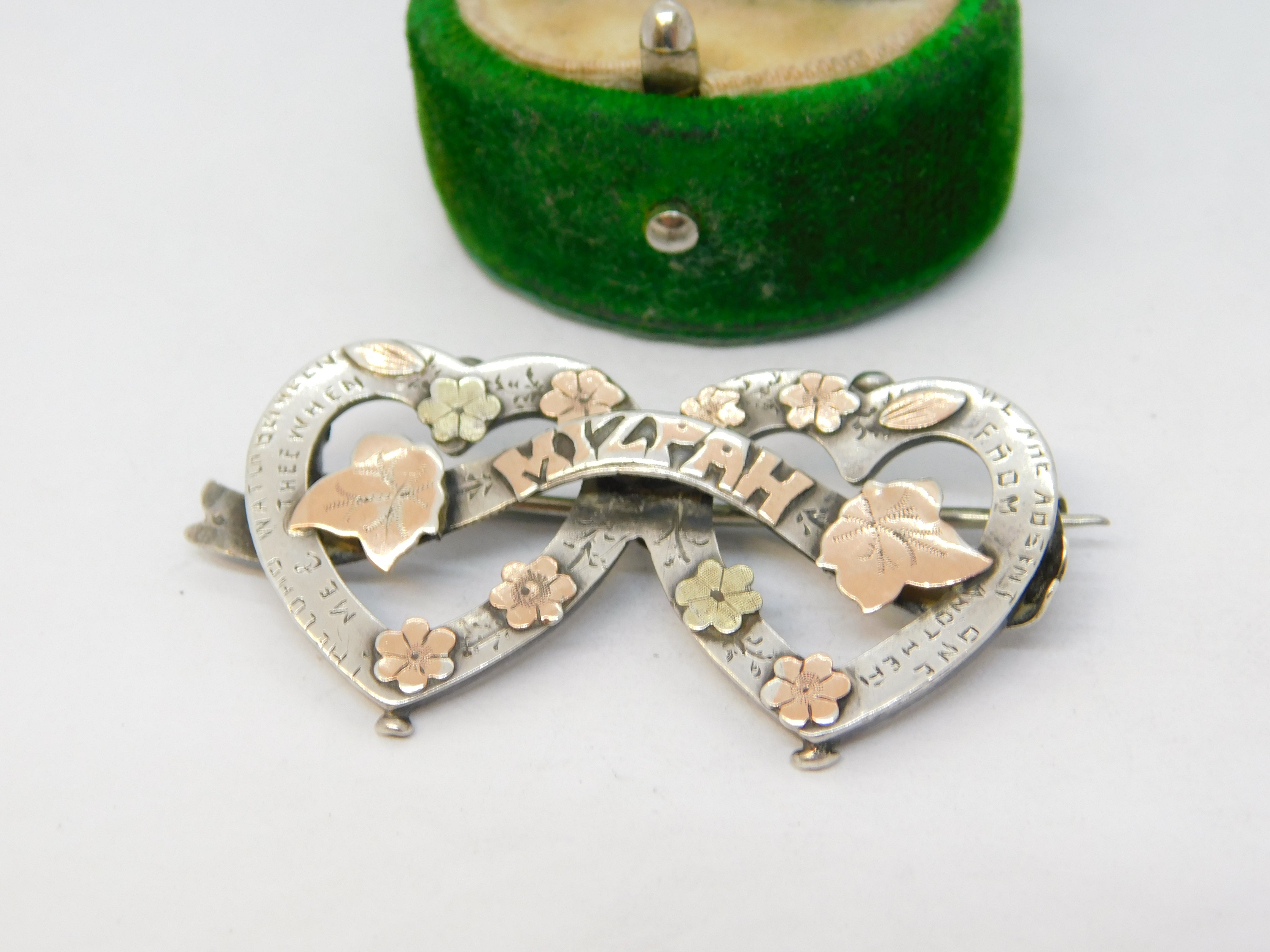 Victorian Sterling Silver & Gold Mizpah Sweetheart Brooch Antique 1898 Birmingham