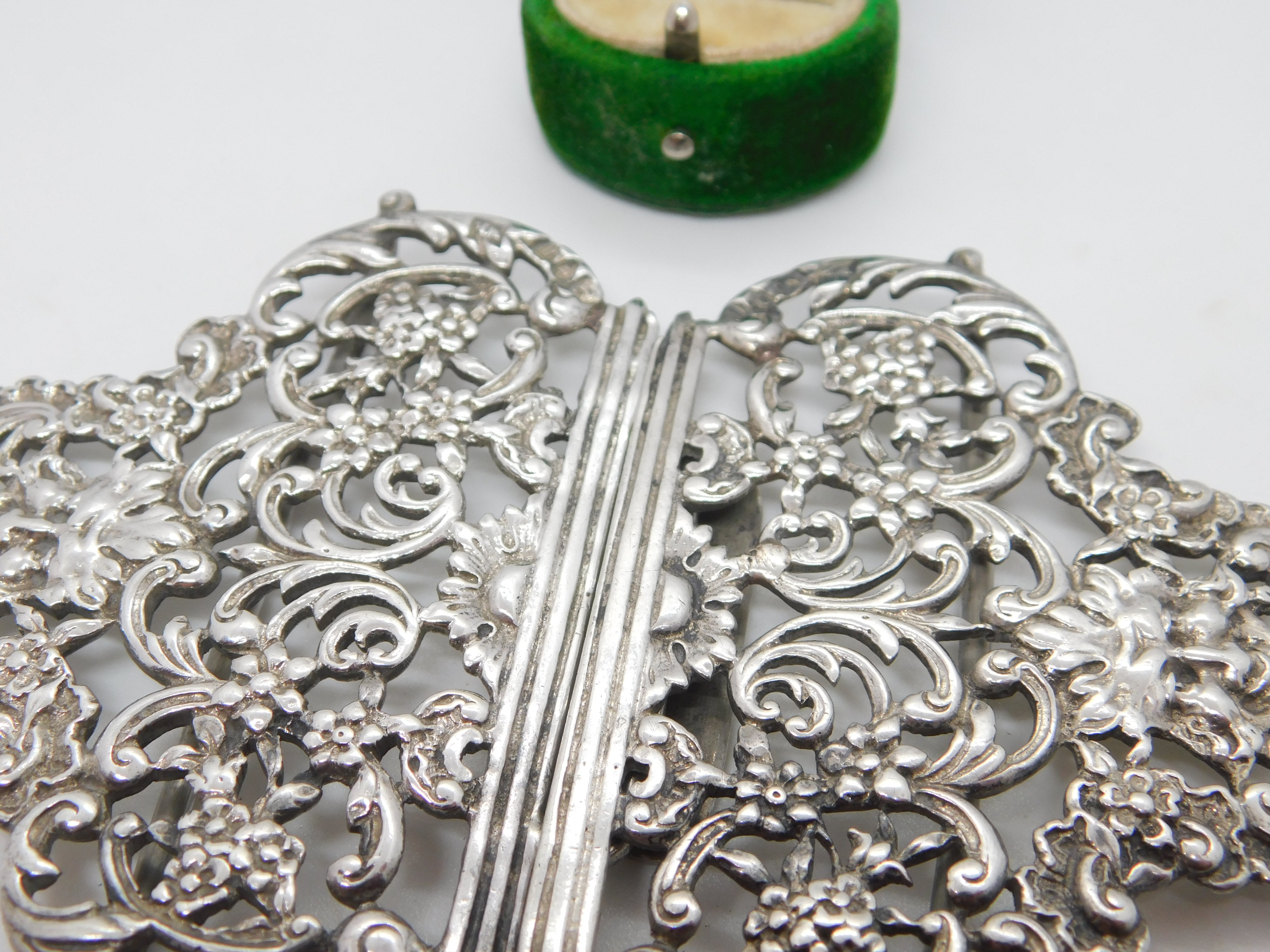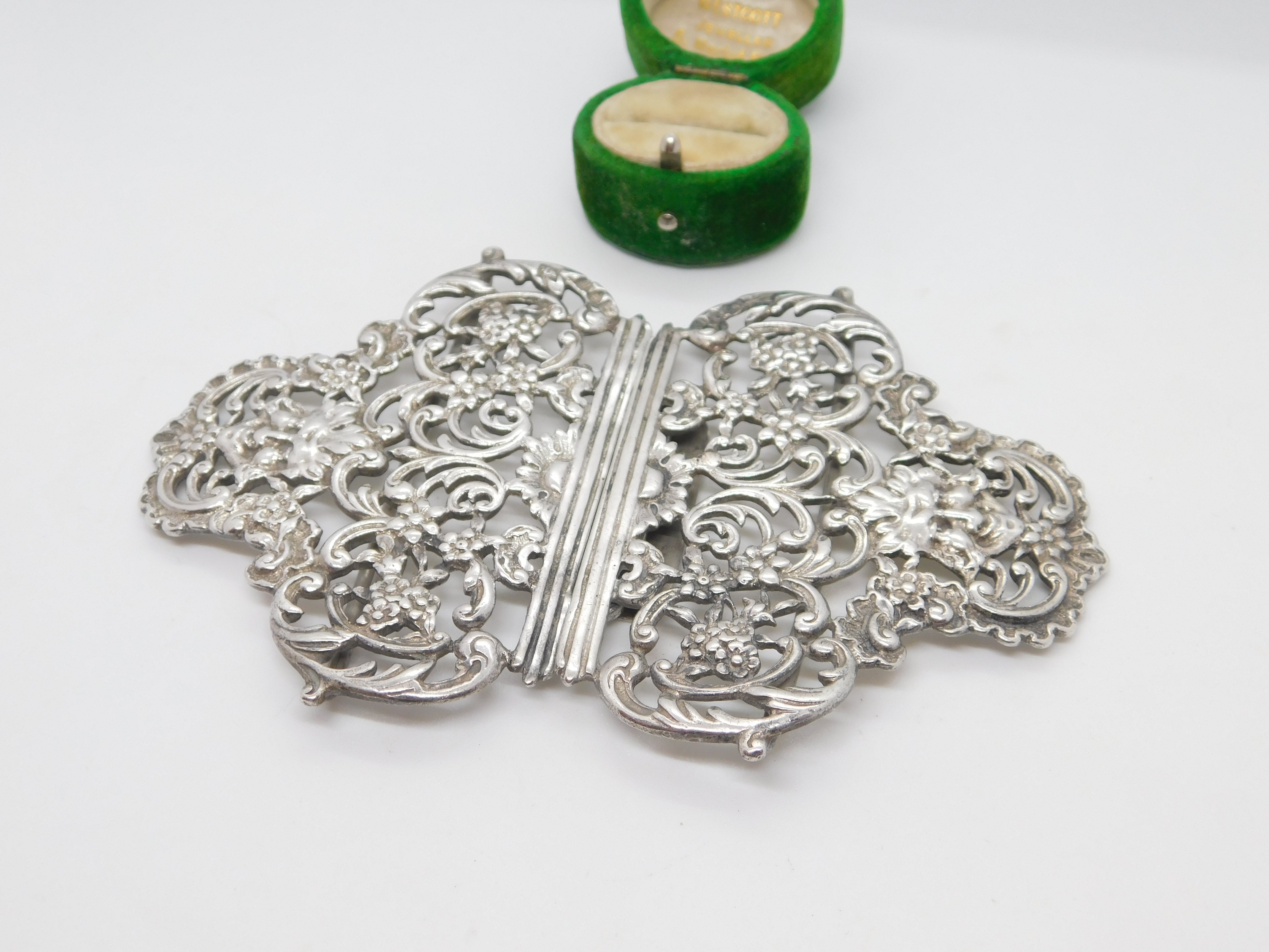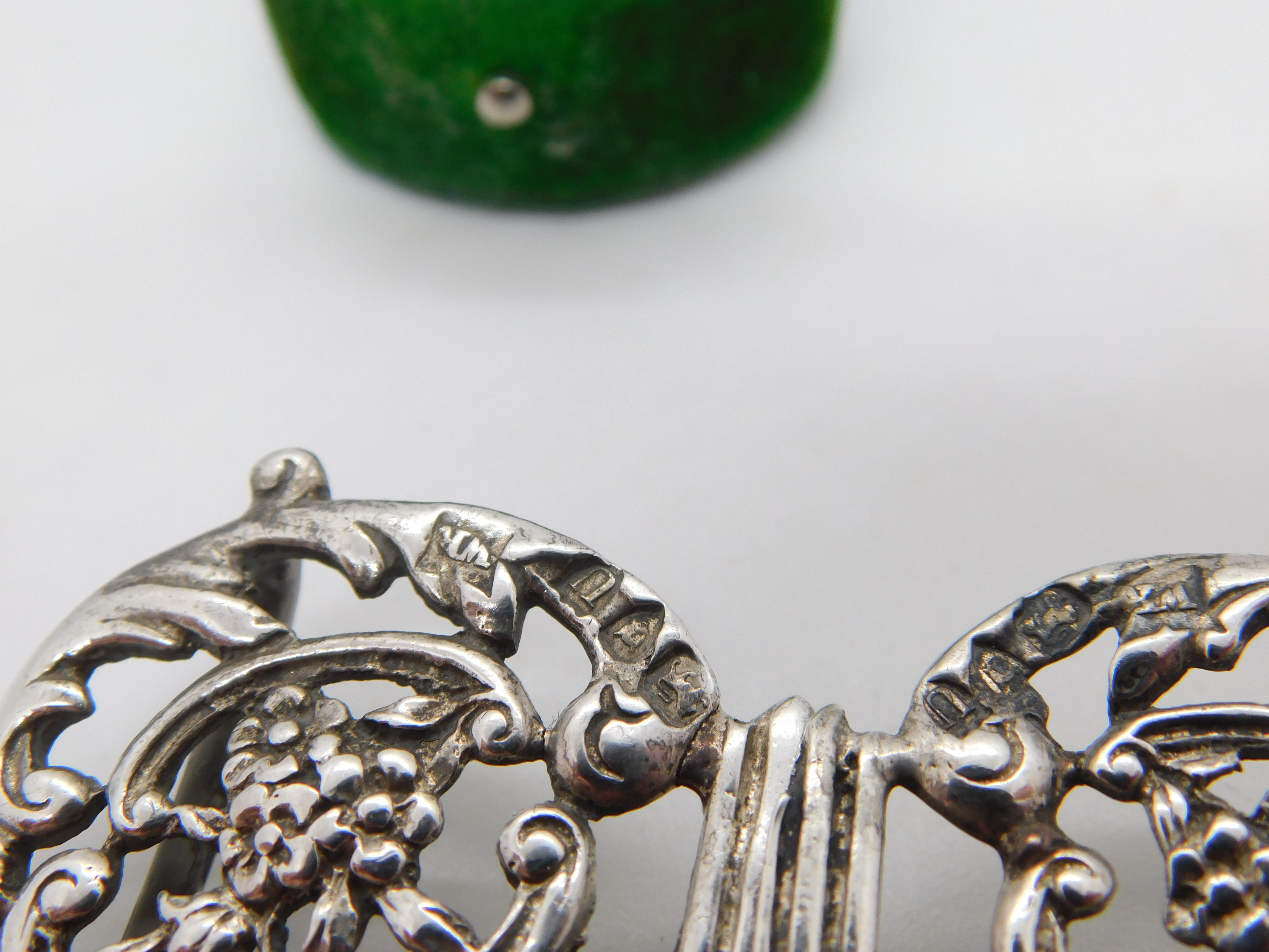 Victorian Sterling Silver Green Man Floral Pattern Nurses Buckle Antique 1894