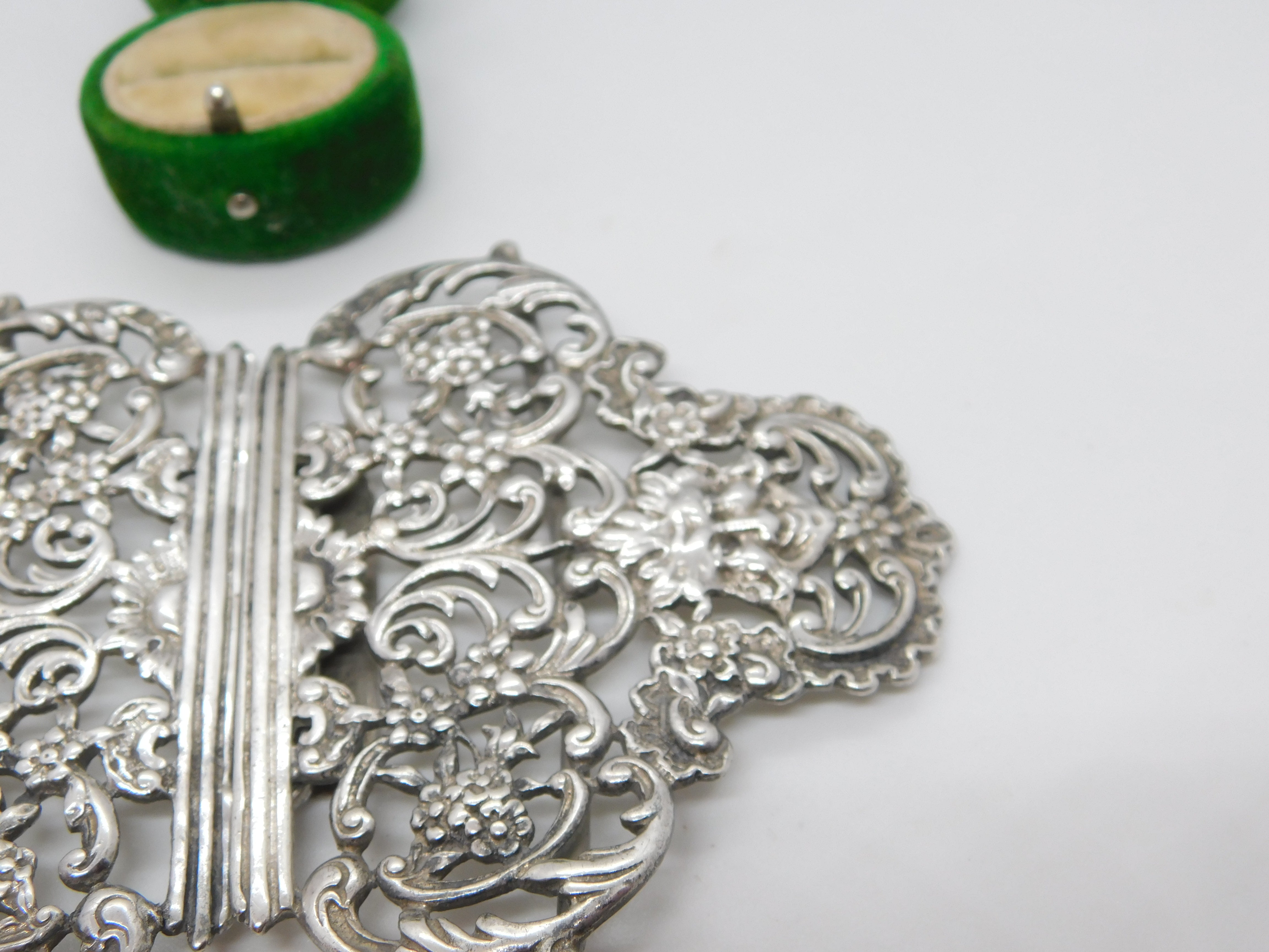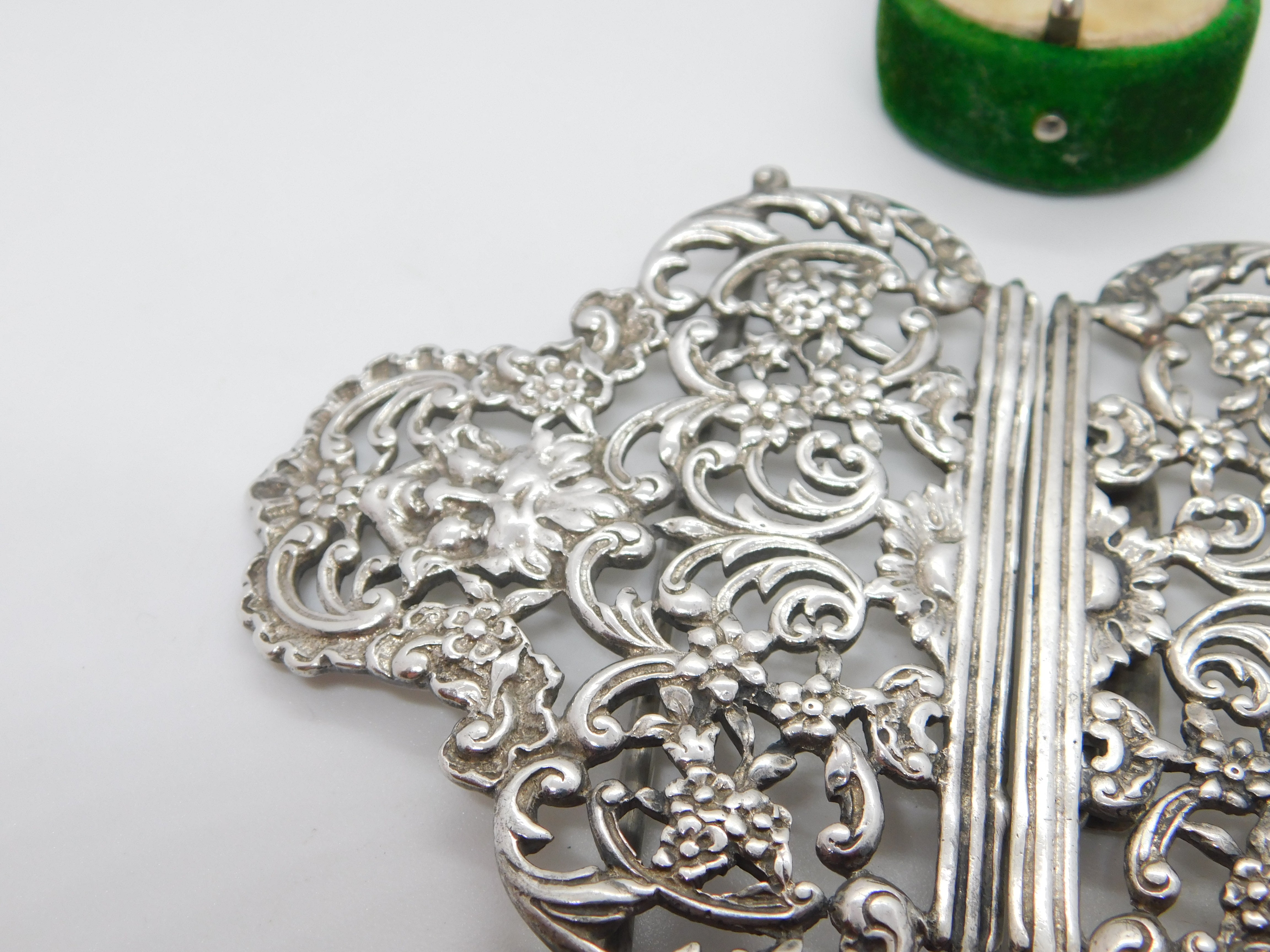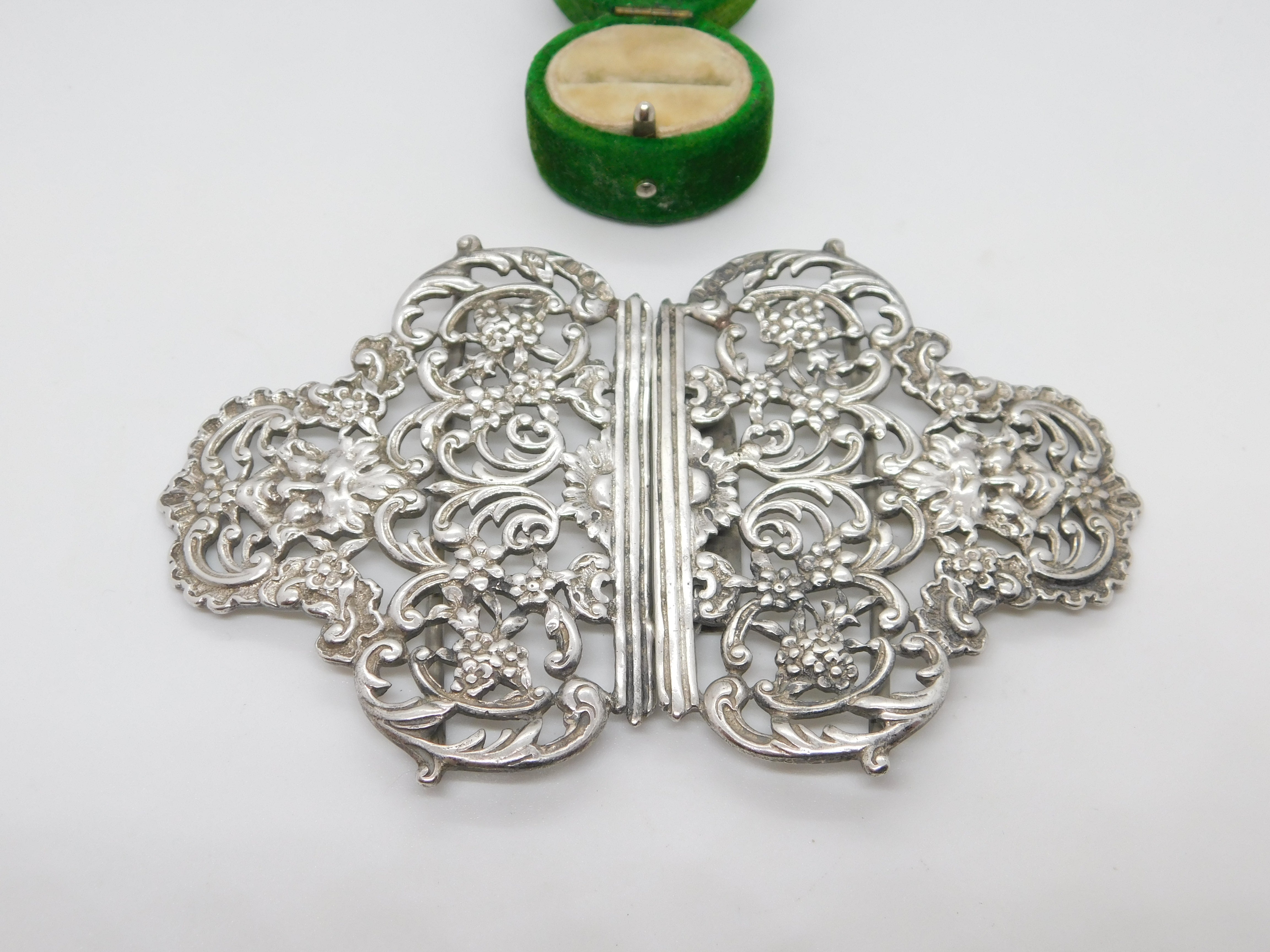 Victorian Sterling Silver Green Man Floral Pattern Nurses Buckle Antique 1894