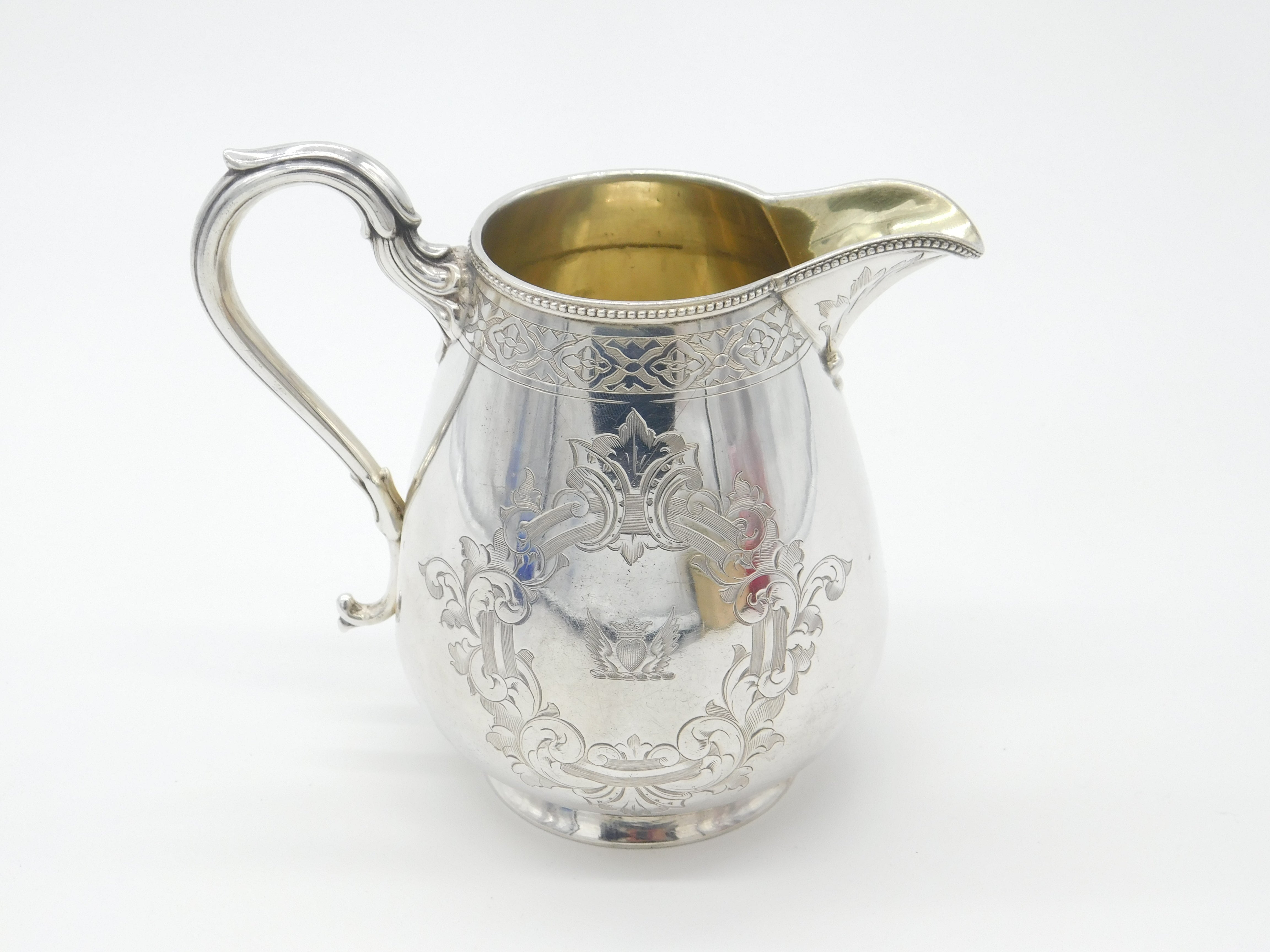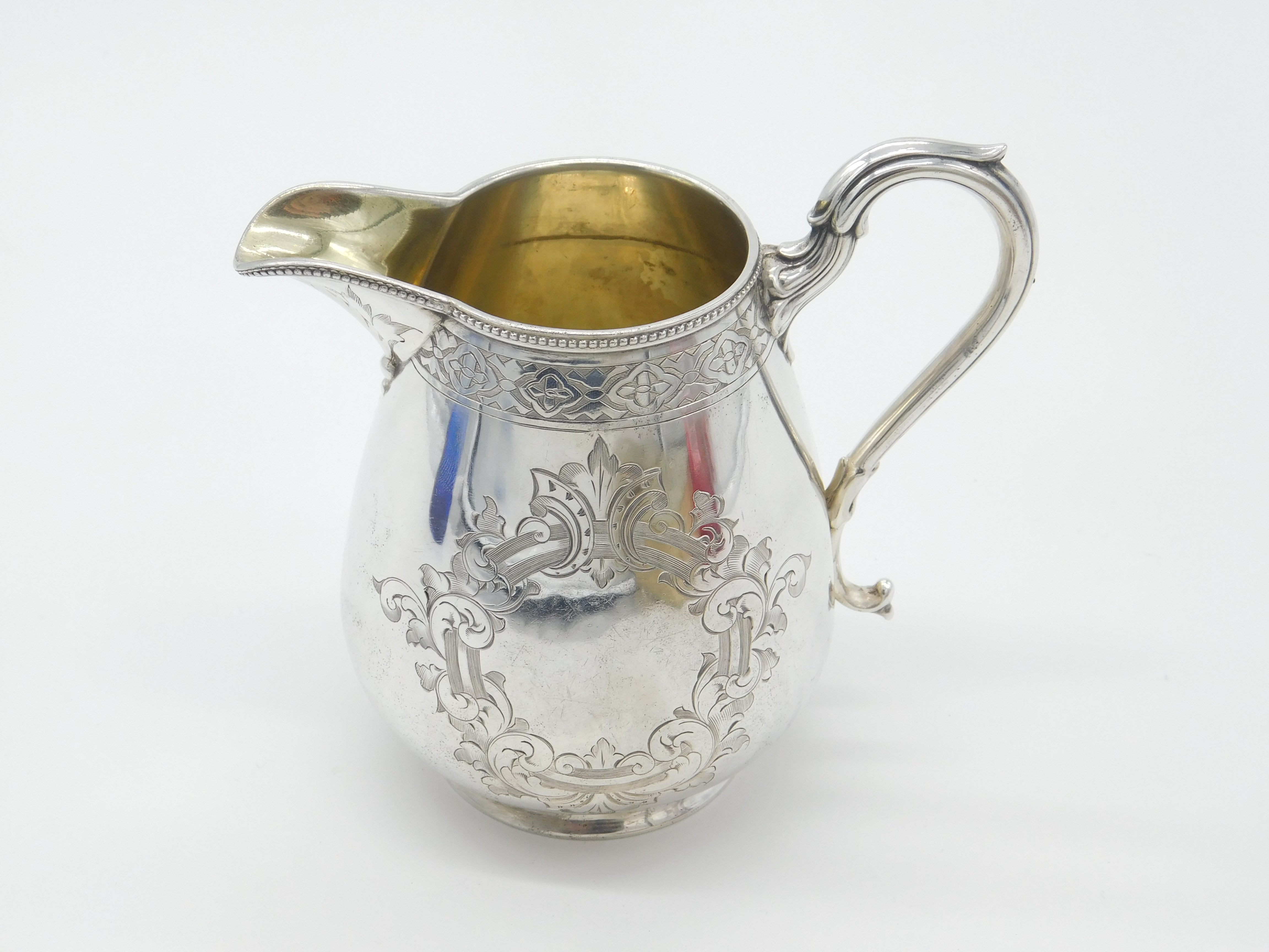 Victorian Sterling Silver Heart Crested Jug Antique 1865 Sheffield Art Nouveau