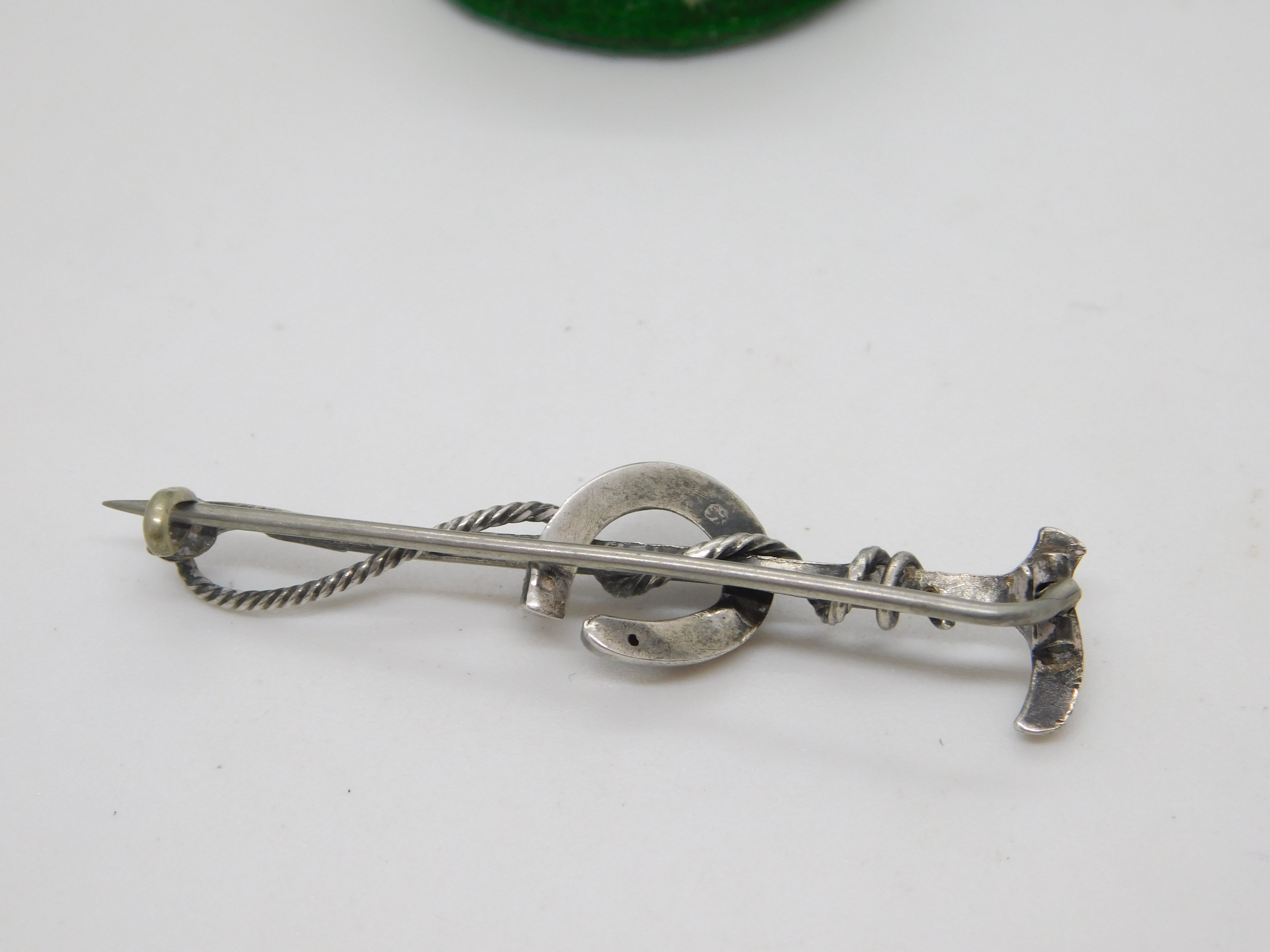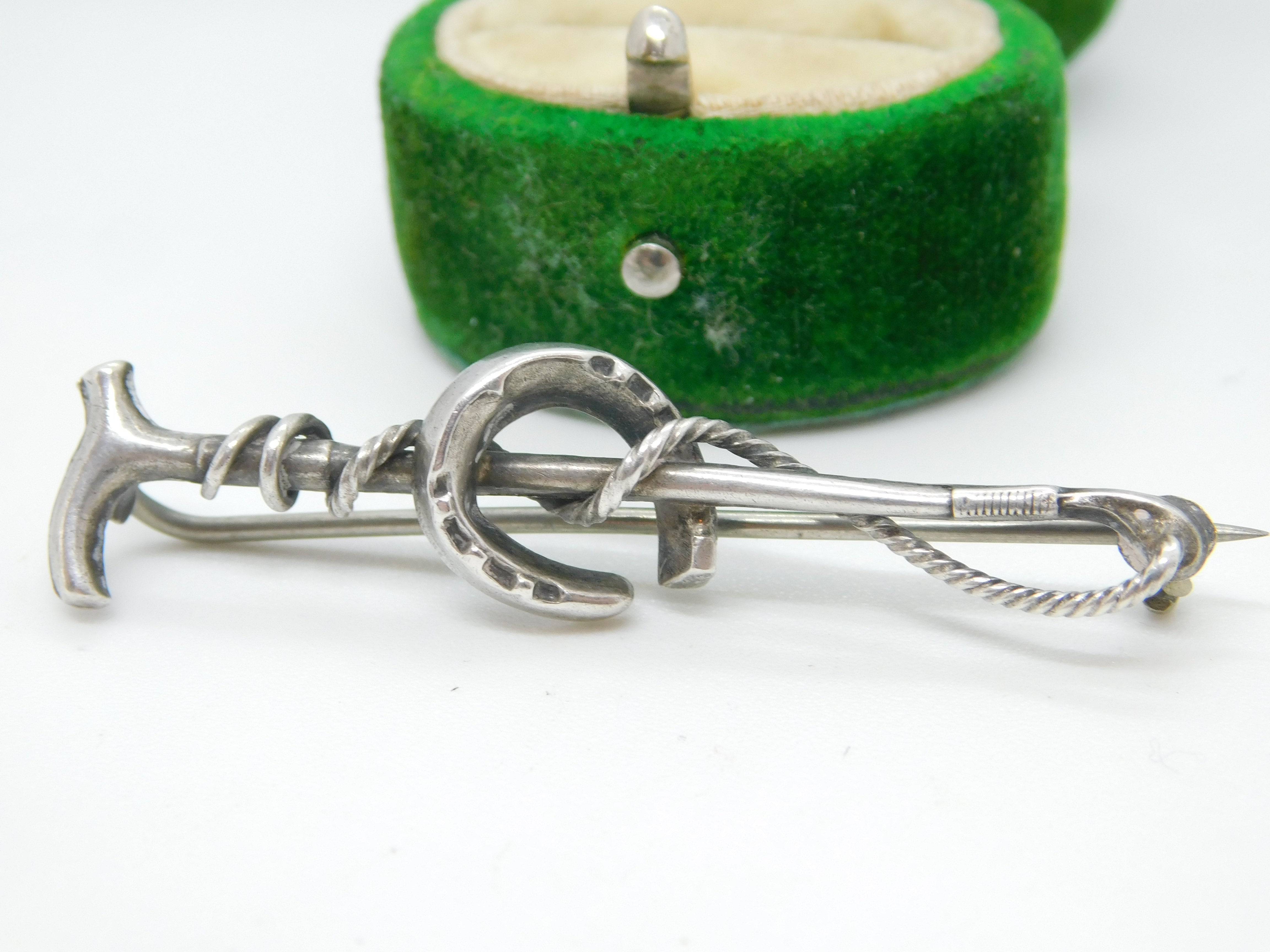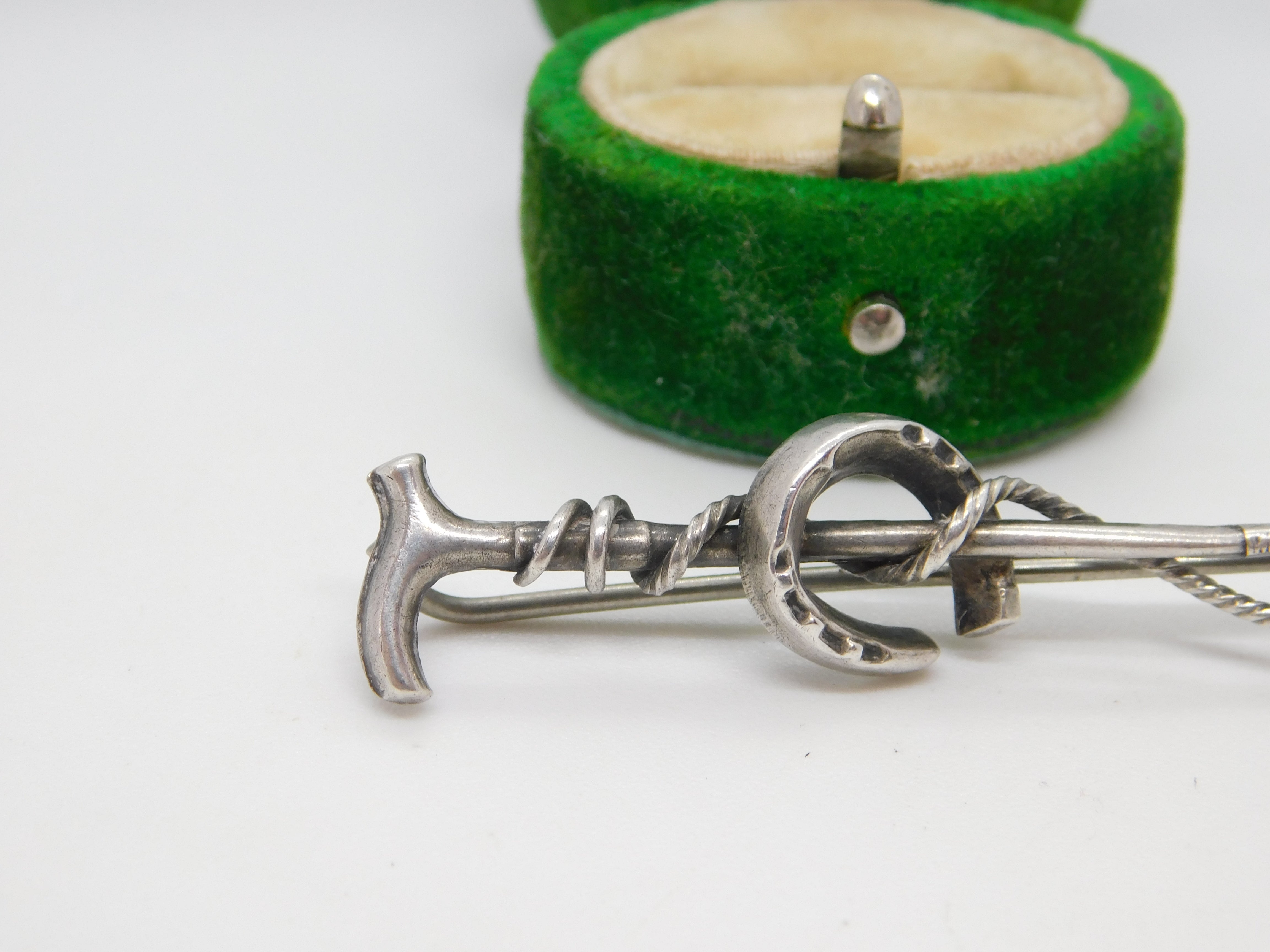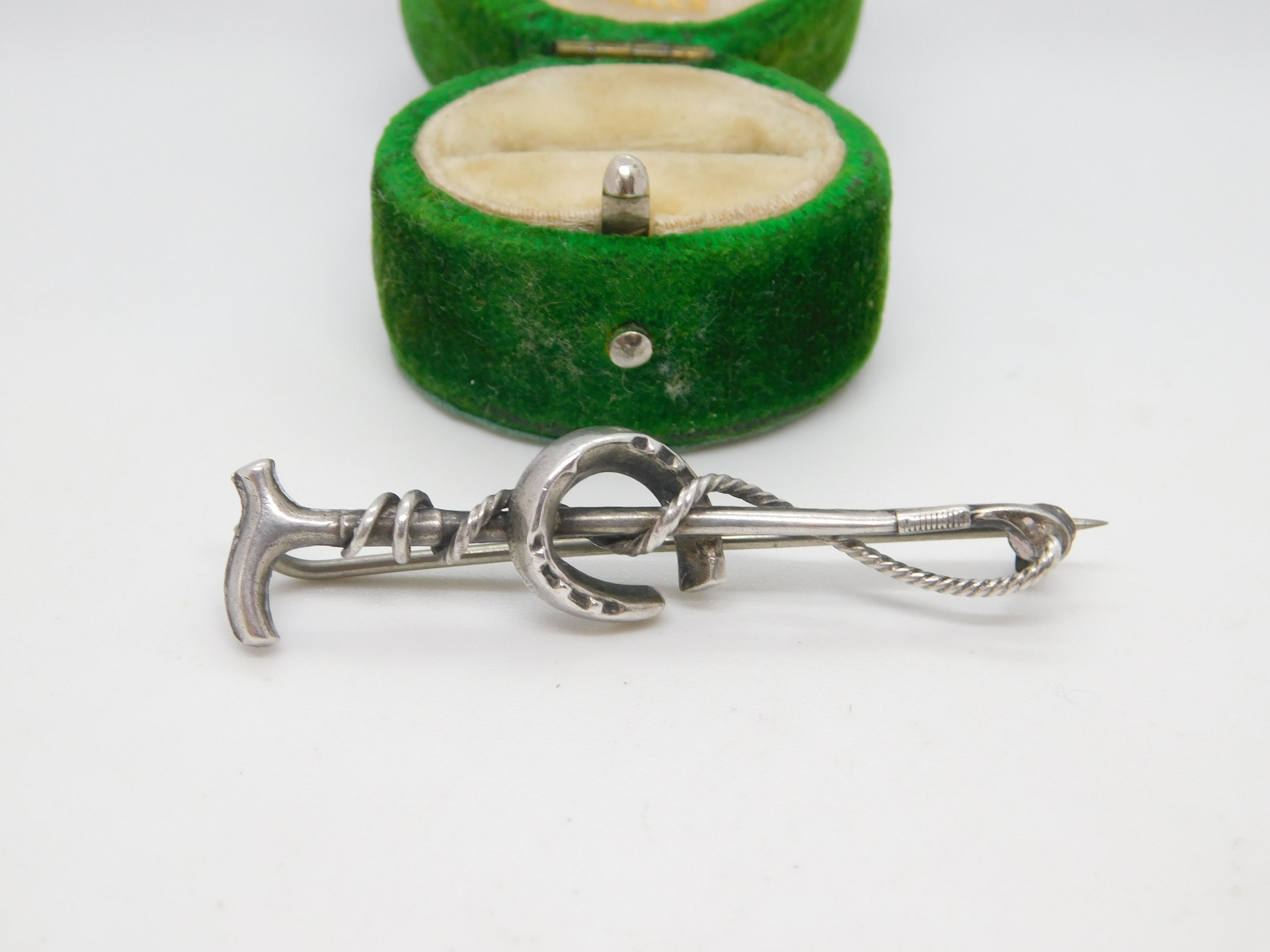 Victorian Sterling Silver Hunting Crop Horseshoe Stock Pin Brooch Antique c1890