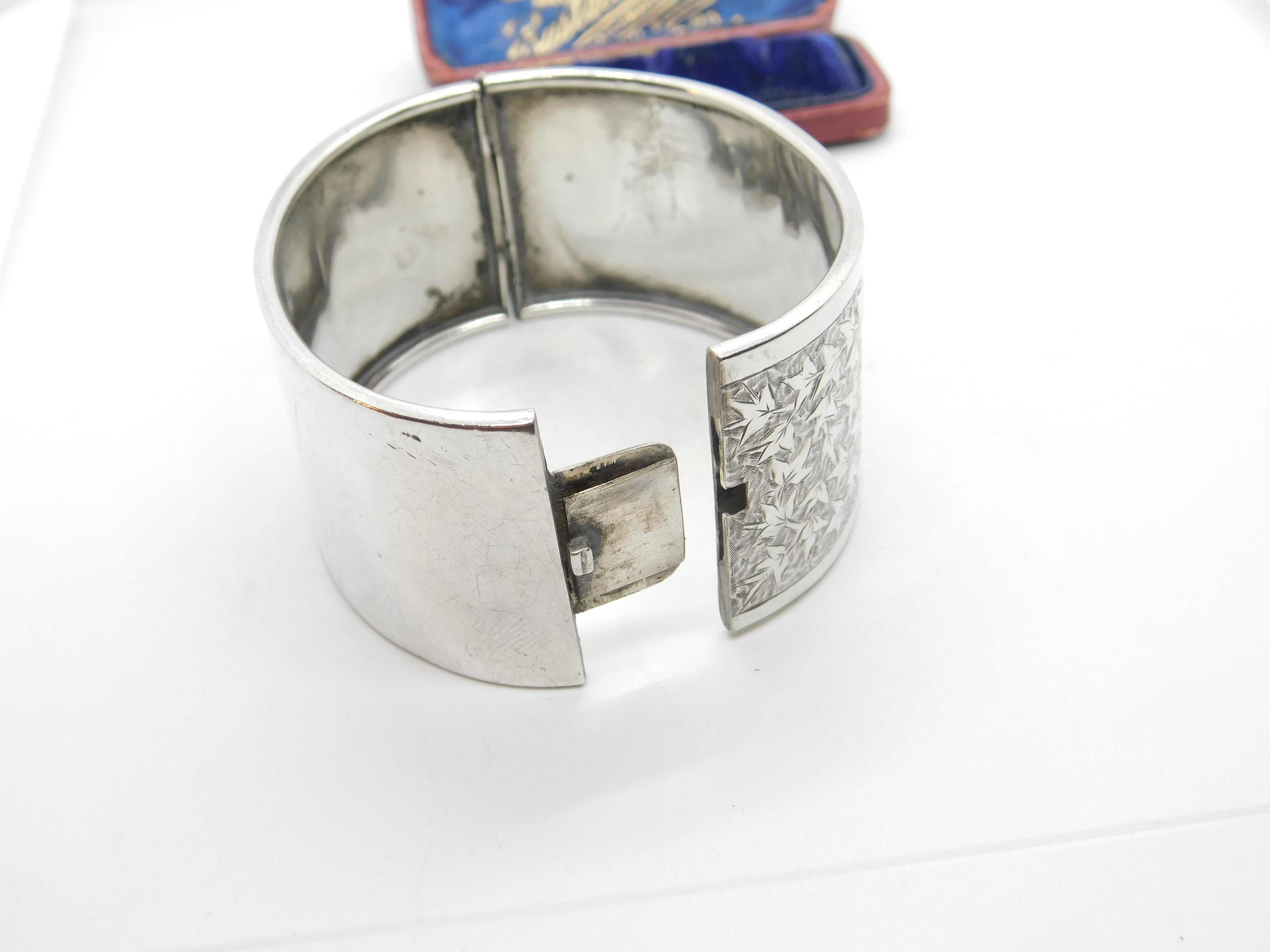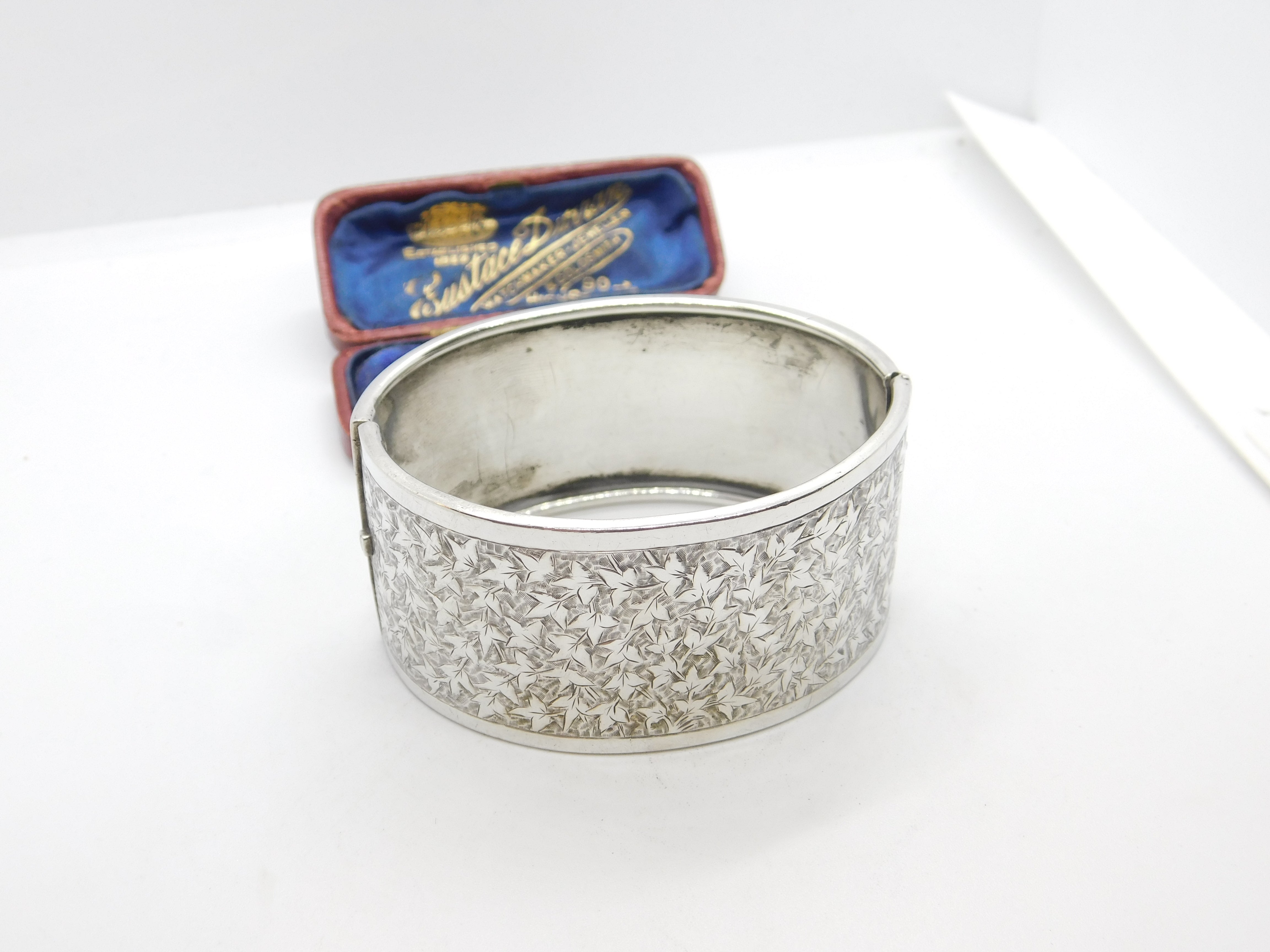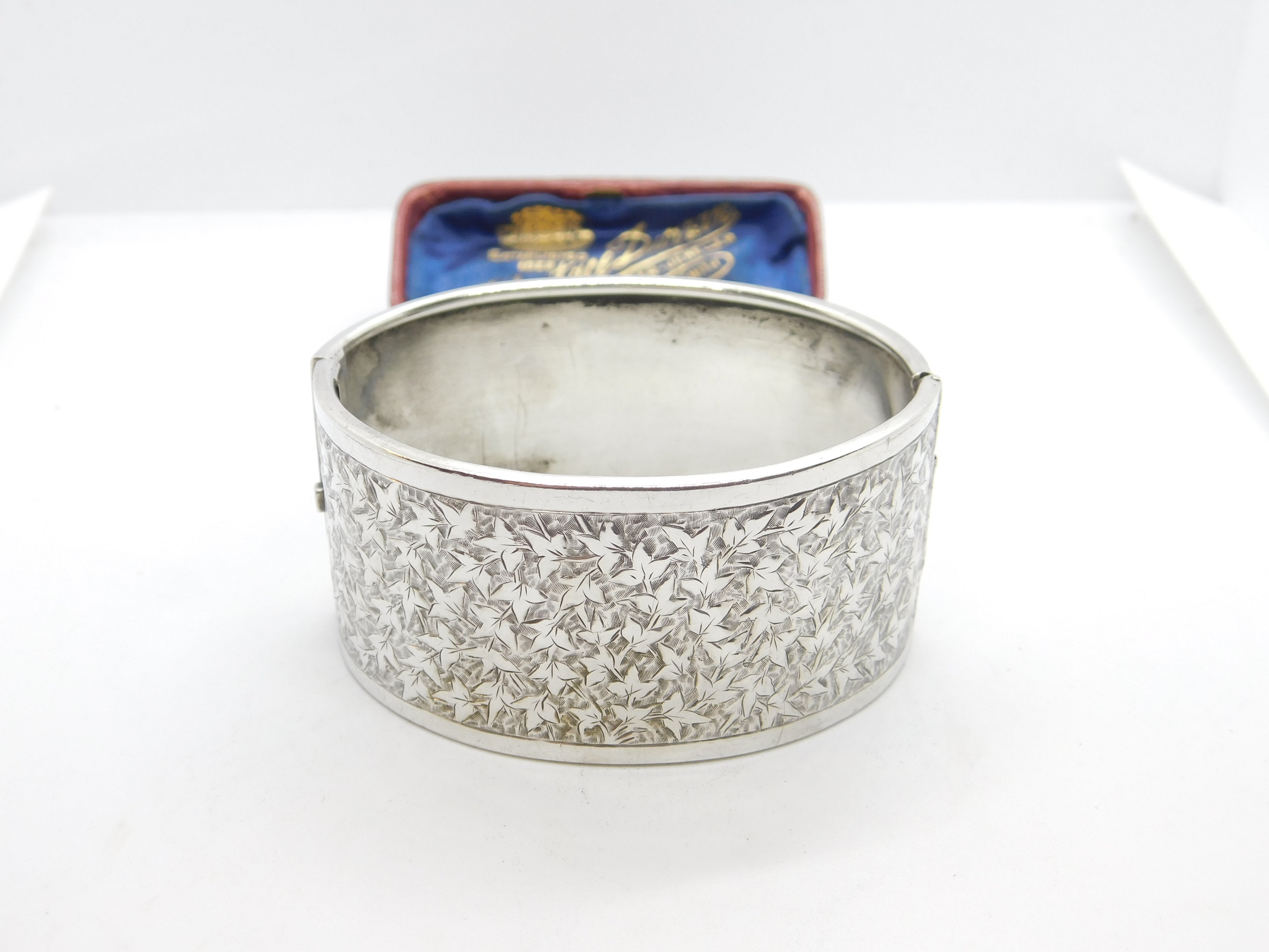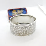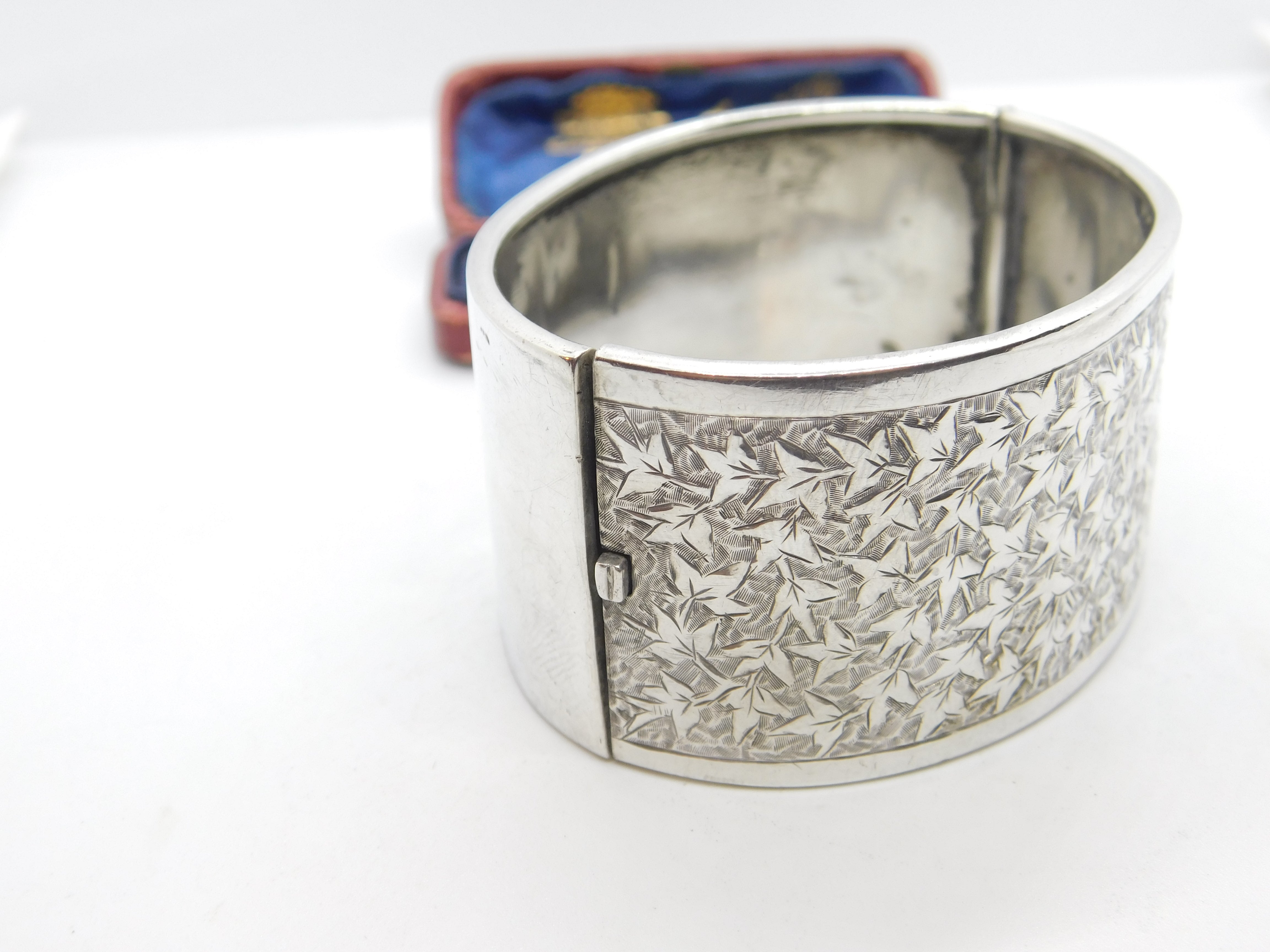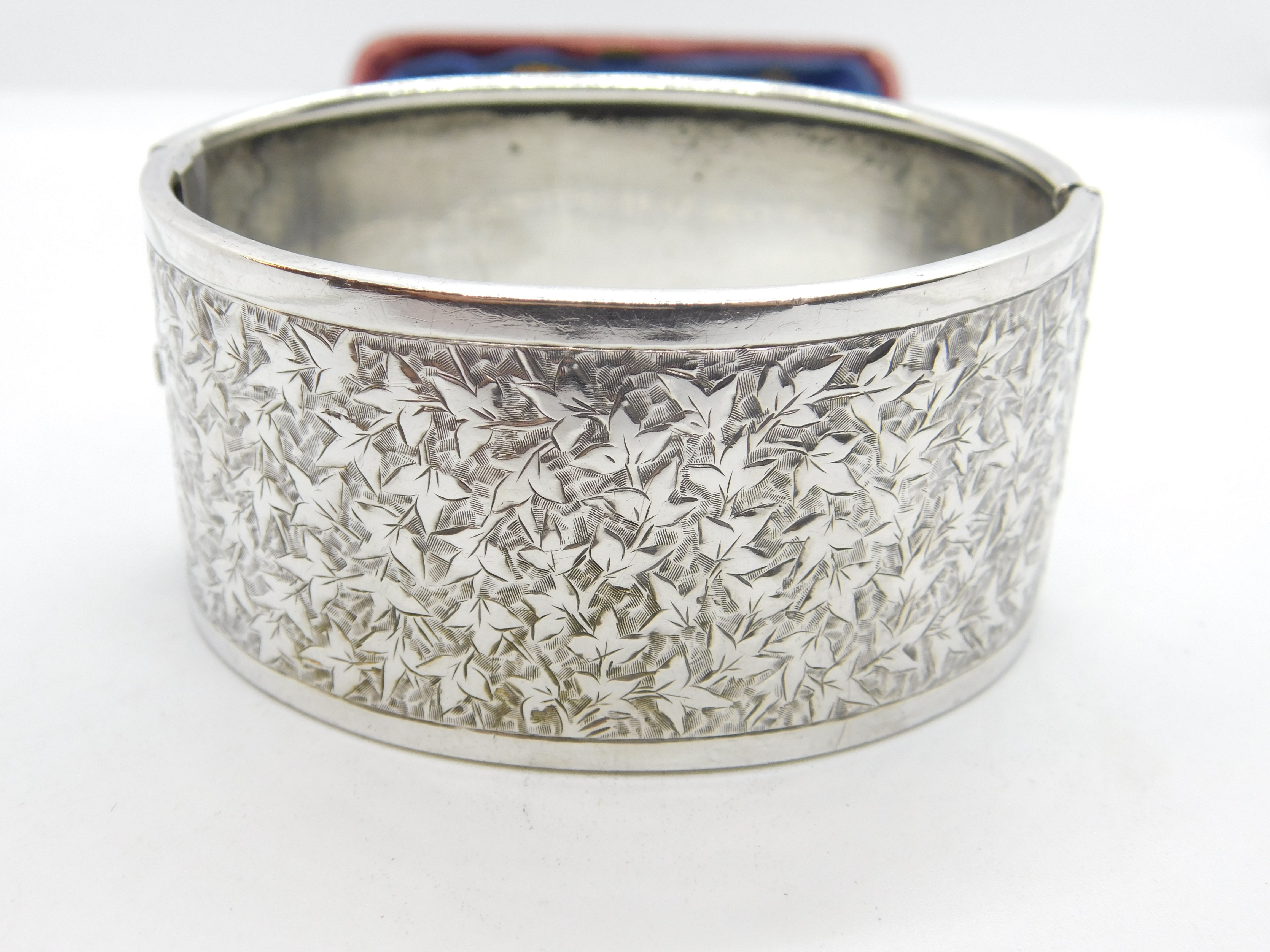 Details: A fantastic and wonderfully designed antique Victorian sterling silver large cuff bangle with charming ivy leaf patterns throughout c1880 - the silver has been tested. This is a wonderful item that would make a perfect gift or addition to any collection. The BOX pictured is for PRESENTATION ONLY and is NOT included in the listings but used to frame the pictures unless specifically stated otherwise.