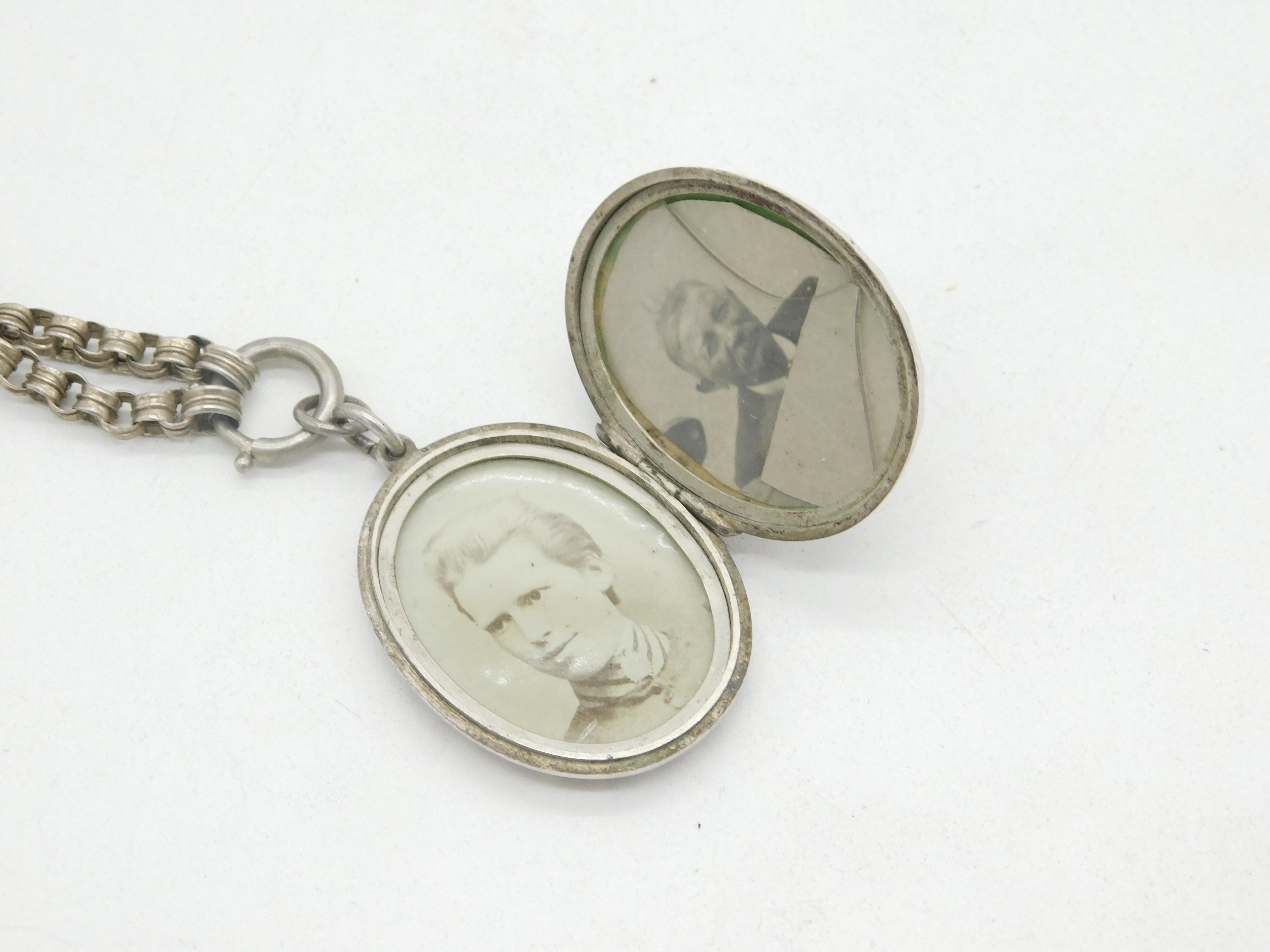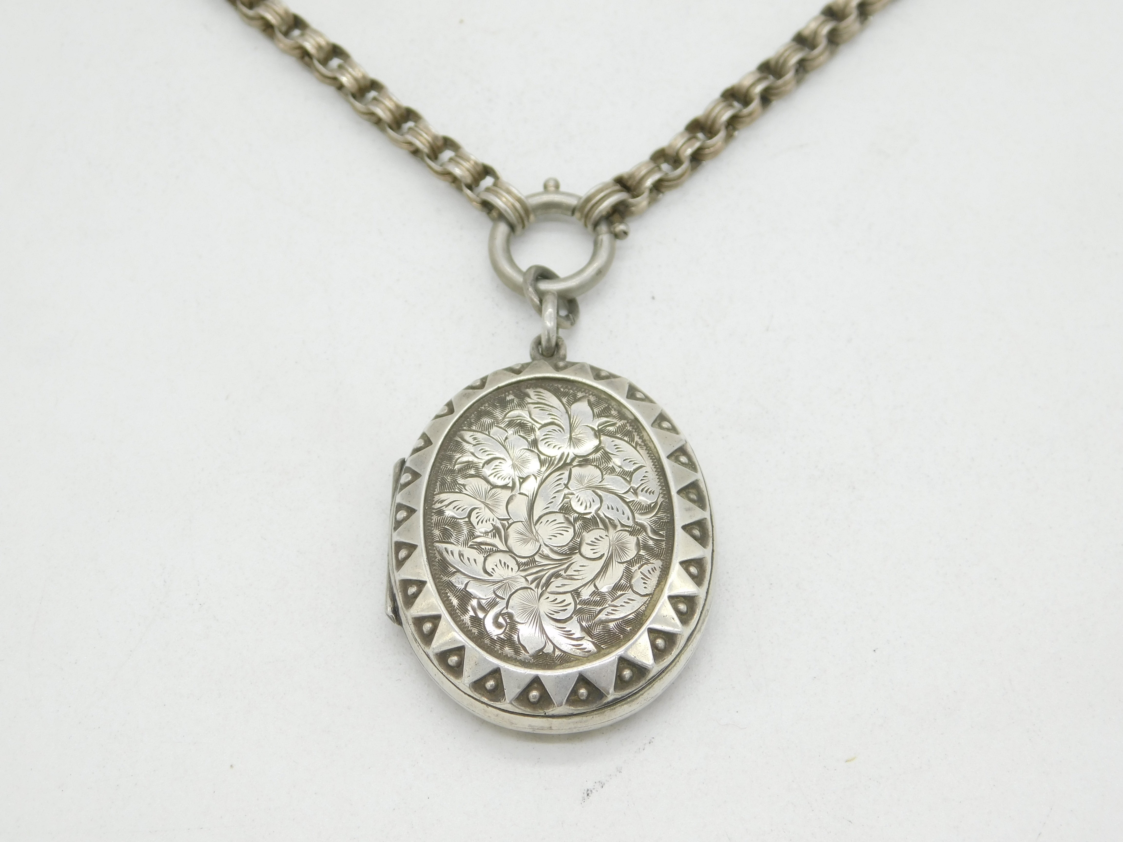 Victorian Sterling Silver Ivy Leaf Pattern Locket Necklace Antique c1880