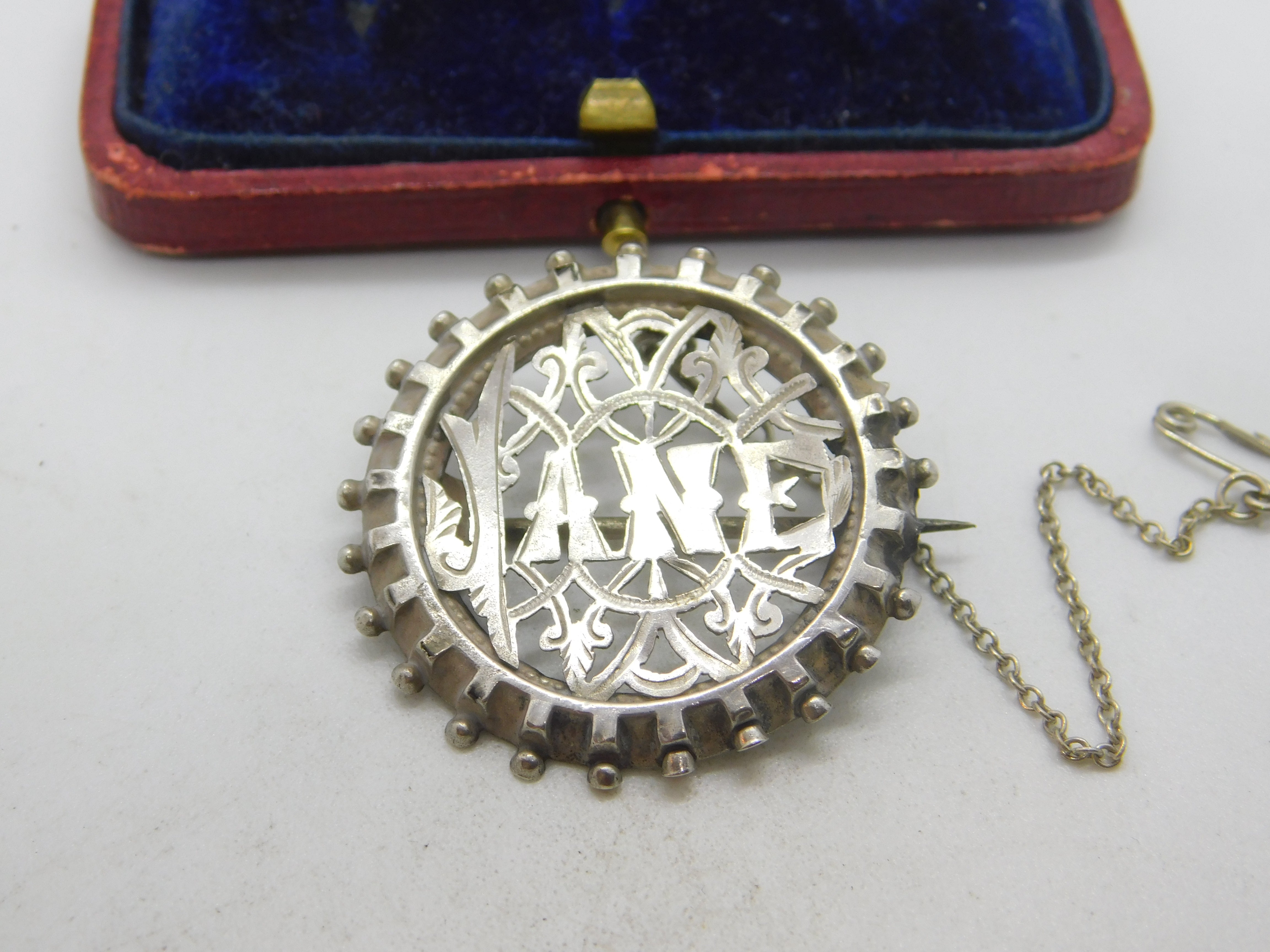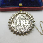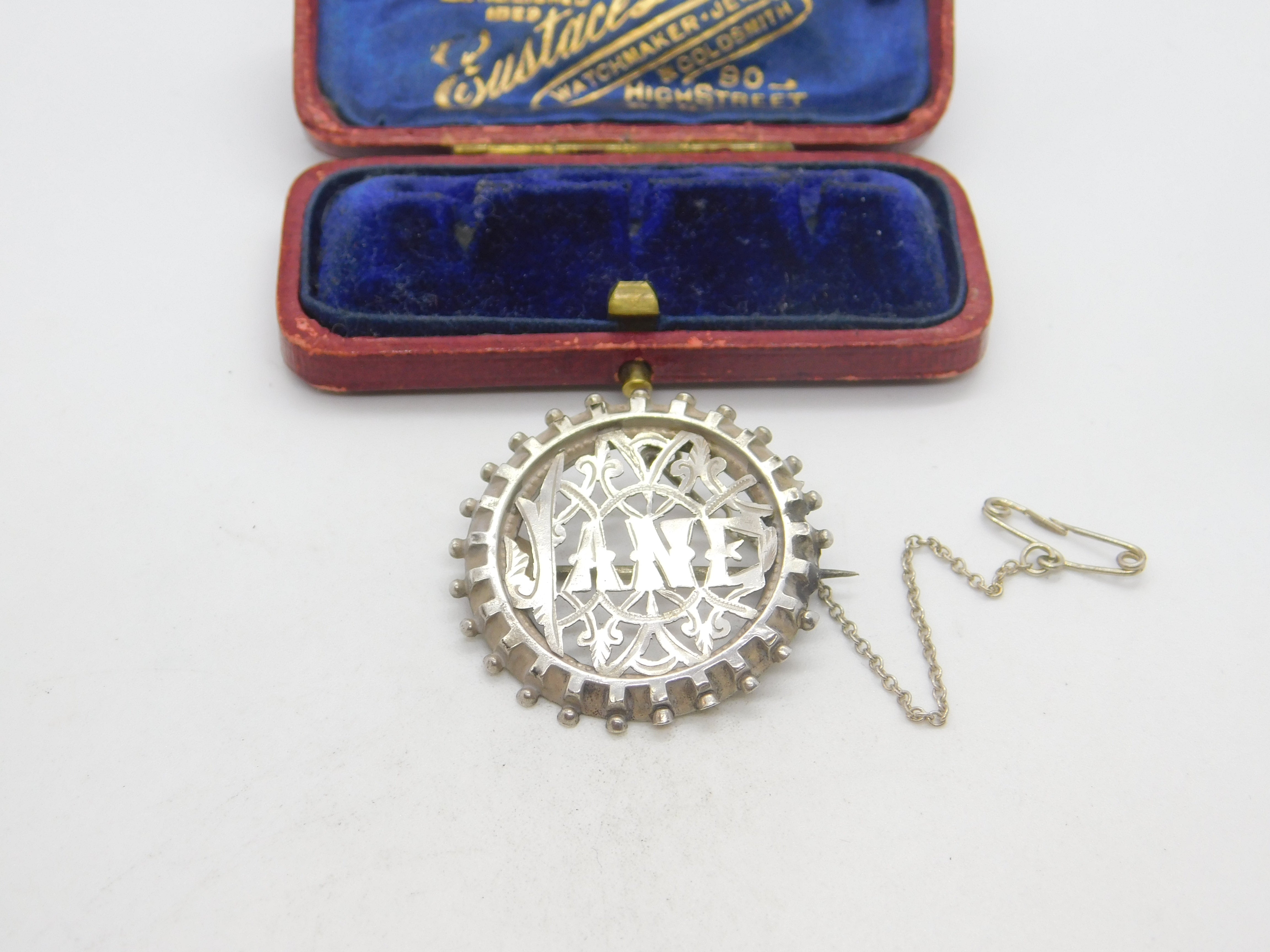 Victorian Sterling Silver 'Jane' Name Christening Brooch 1883 Birmingham