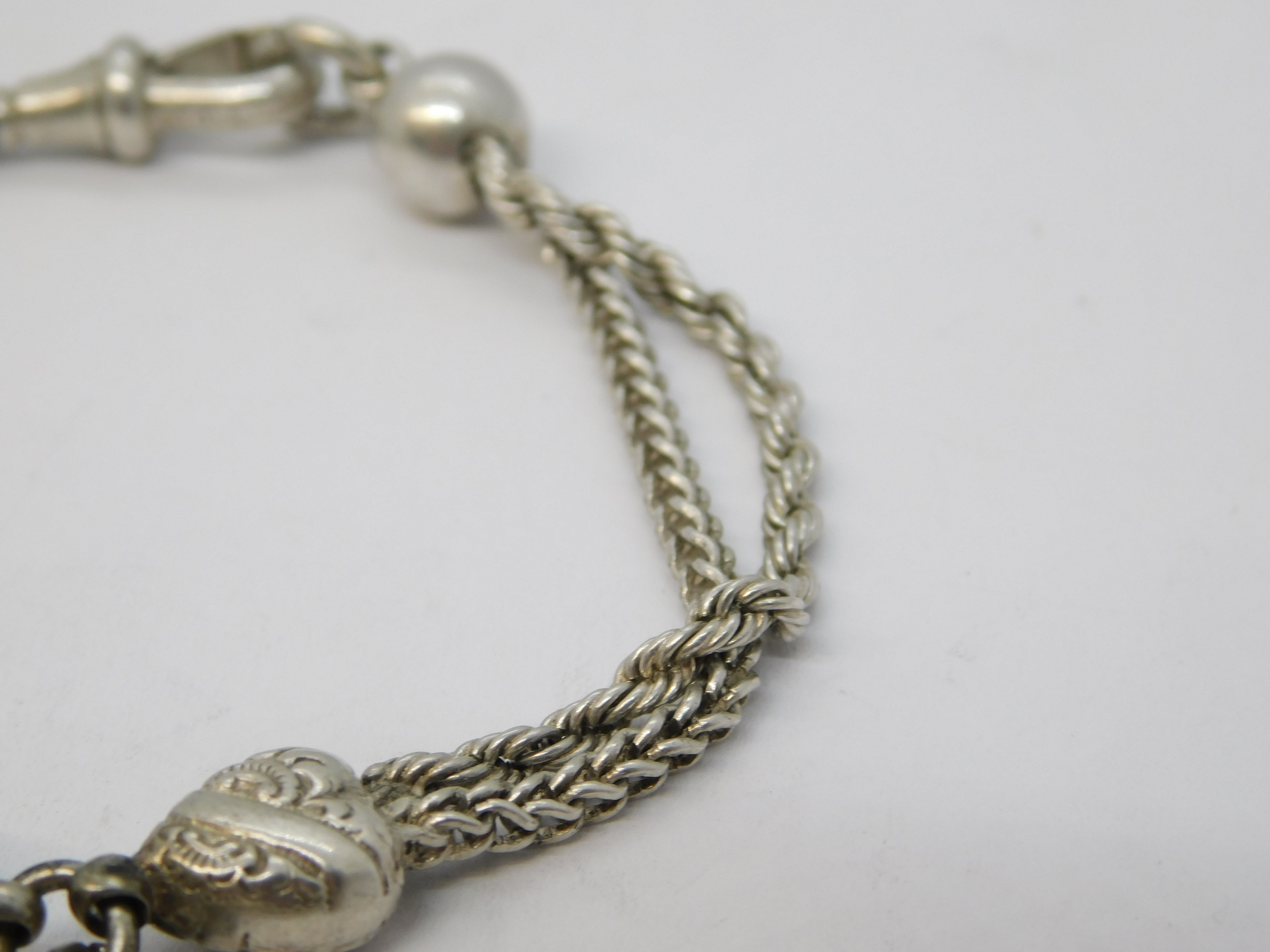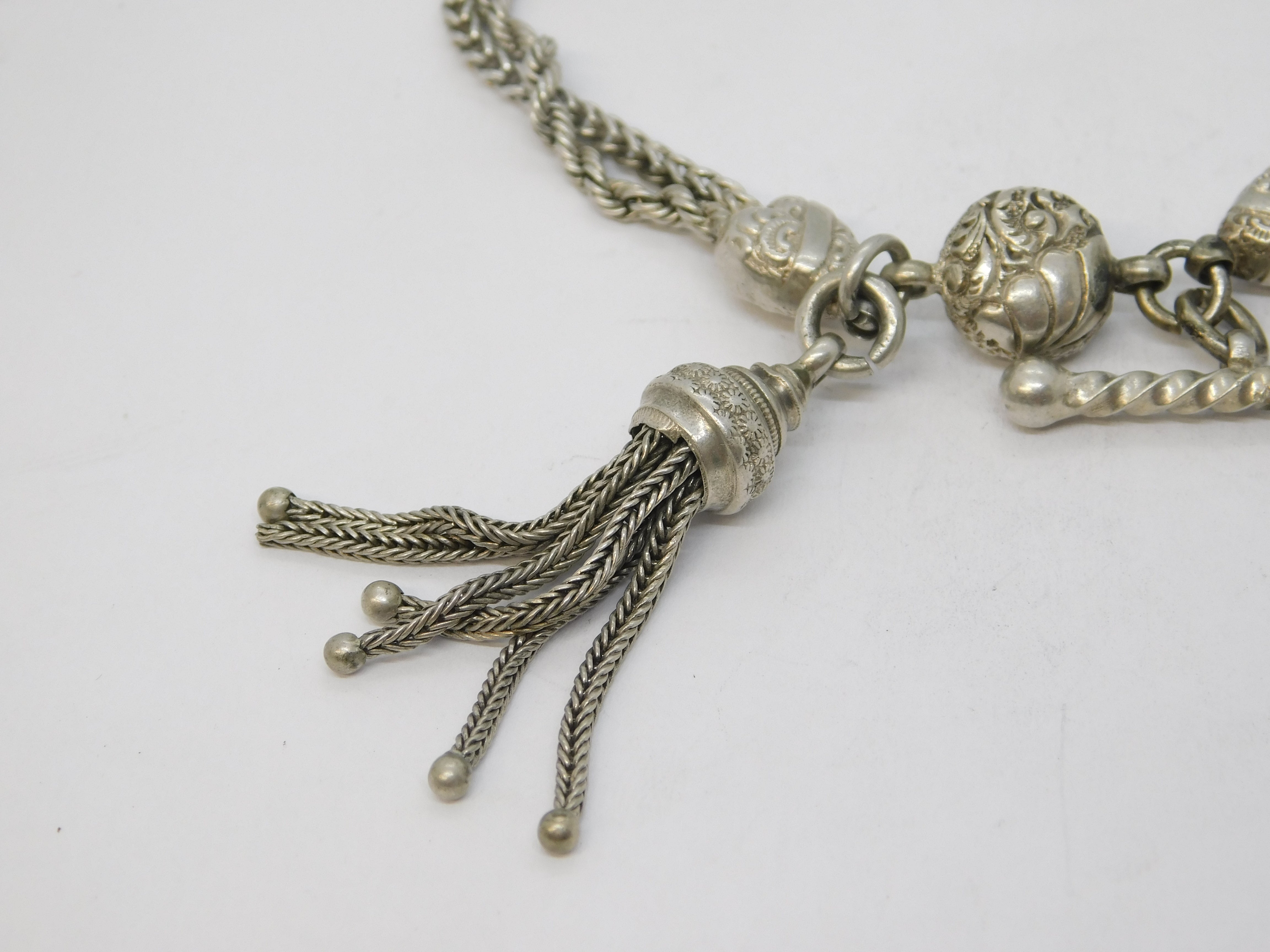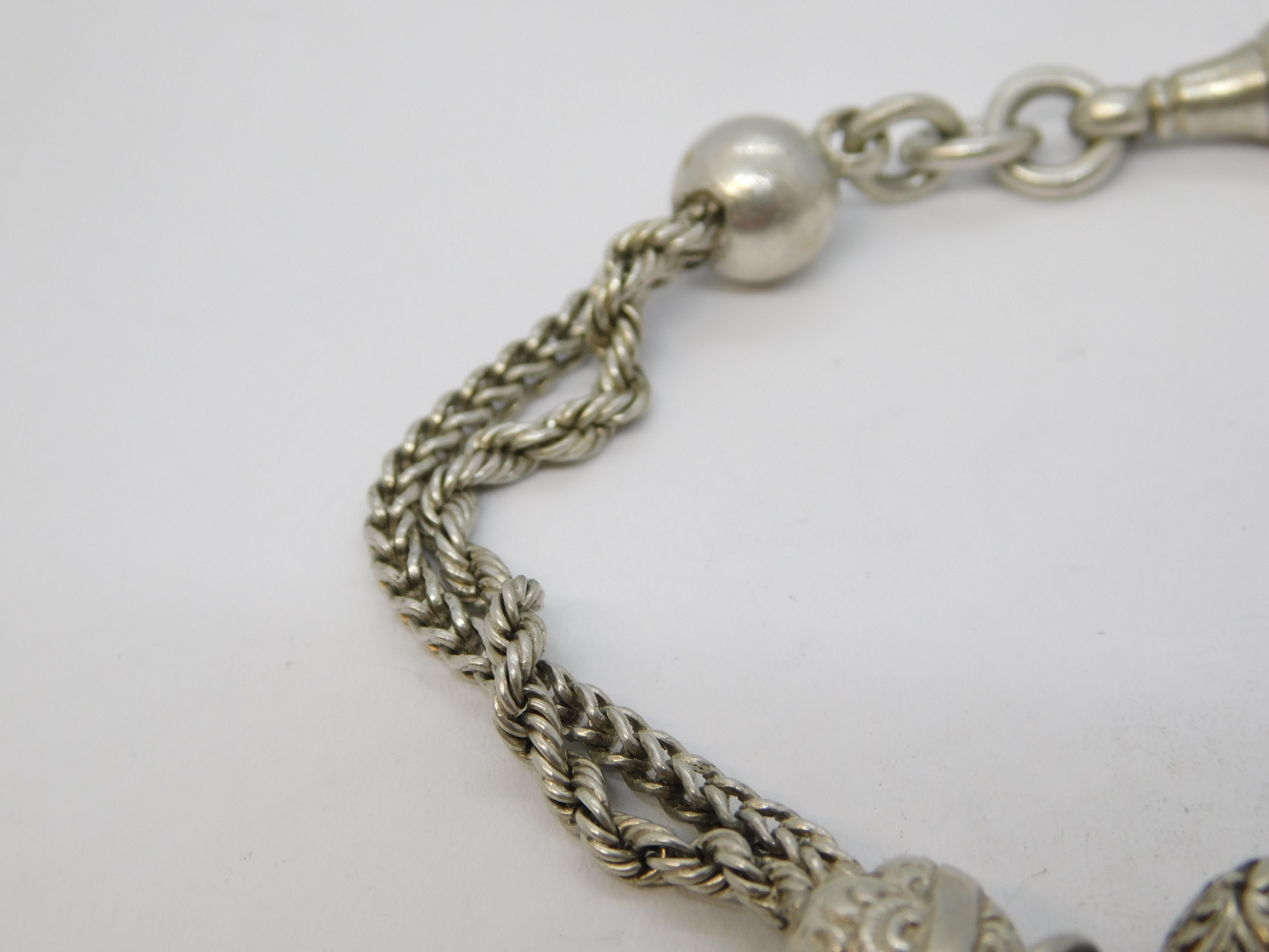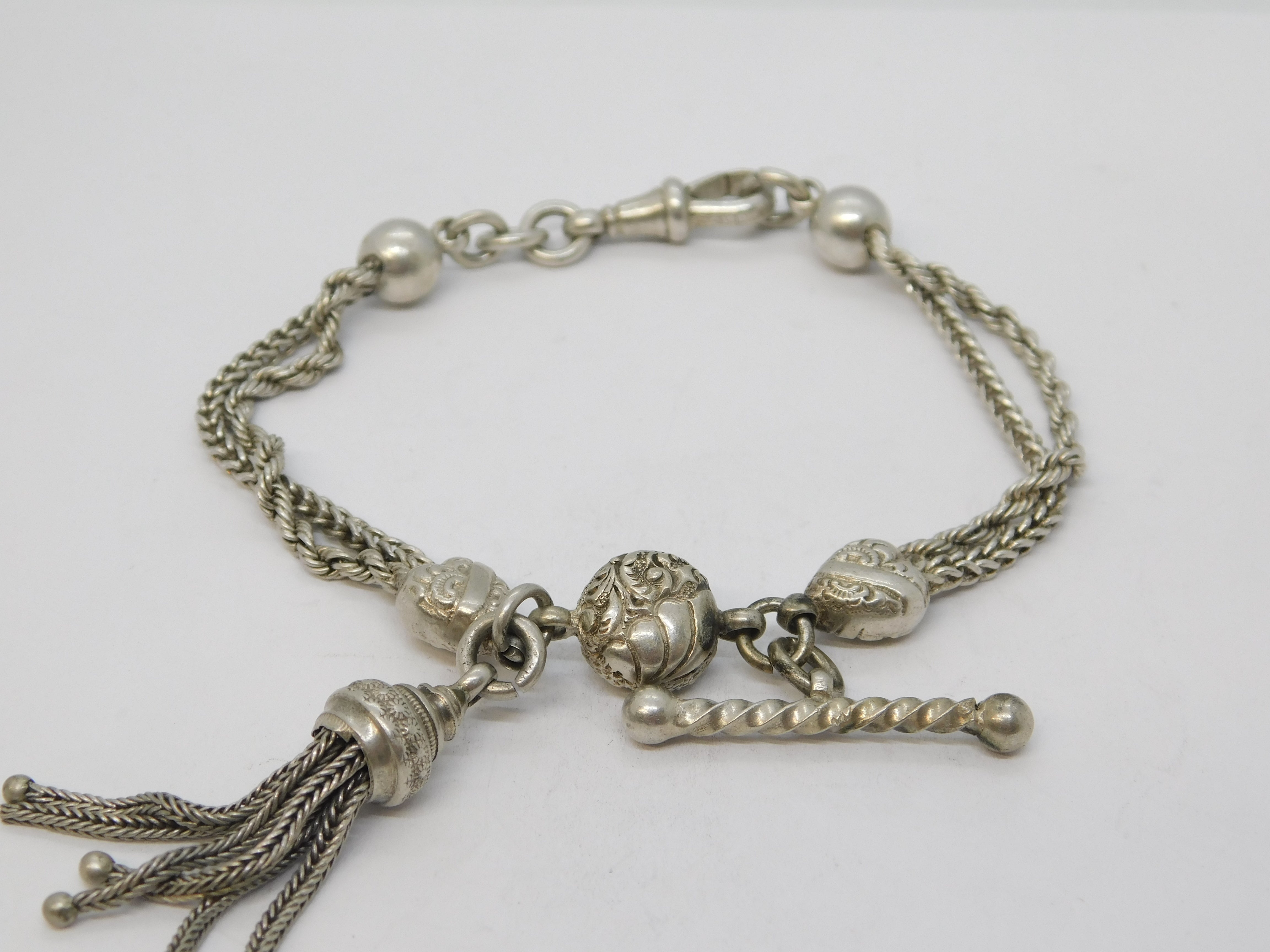 Victorian Sterling Silver Ladies Albertina Bracelet & Tassel Fob Antique c1860