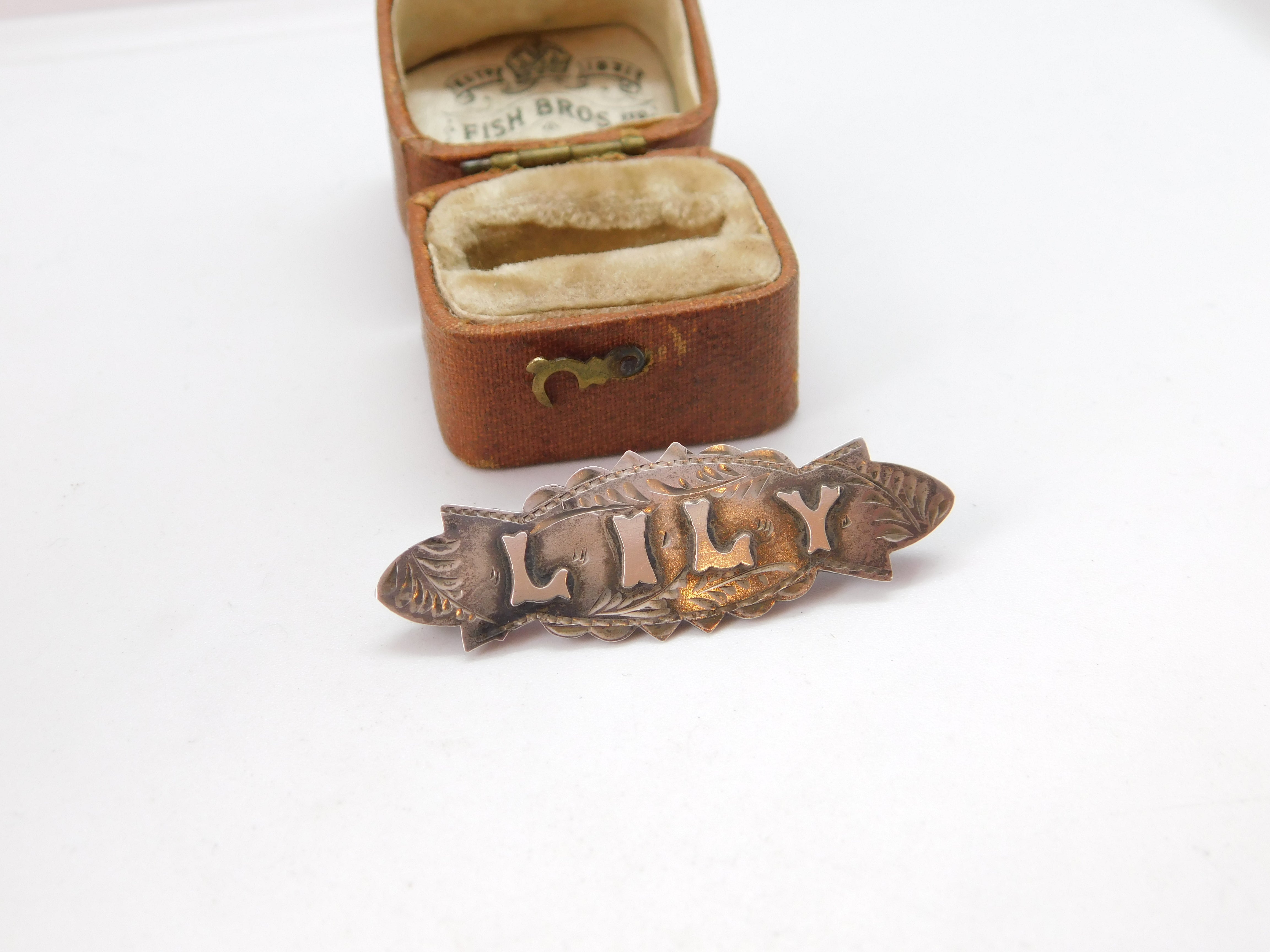 Victorian Sterling Silver 'Lily' Name Sweetheart Brooch 1888 Antique Birmingham