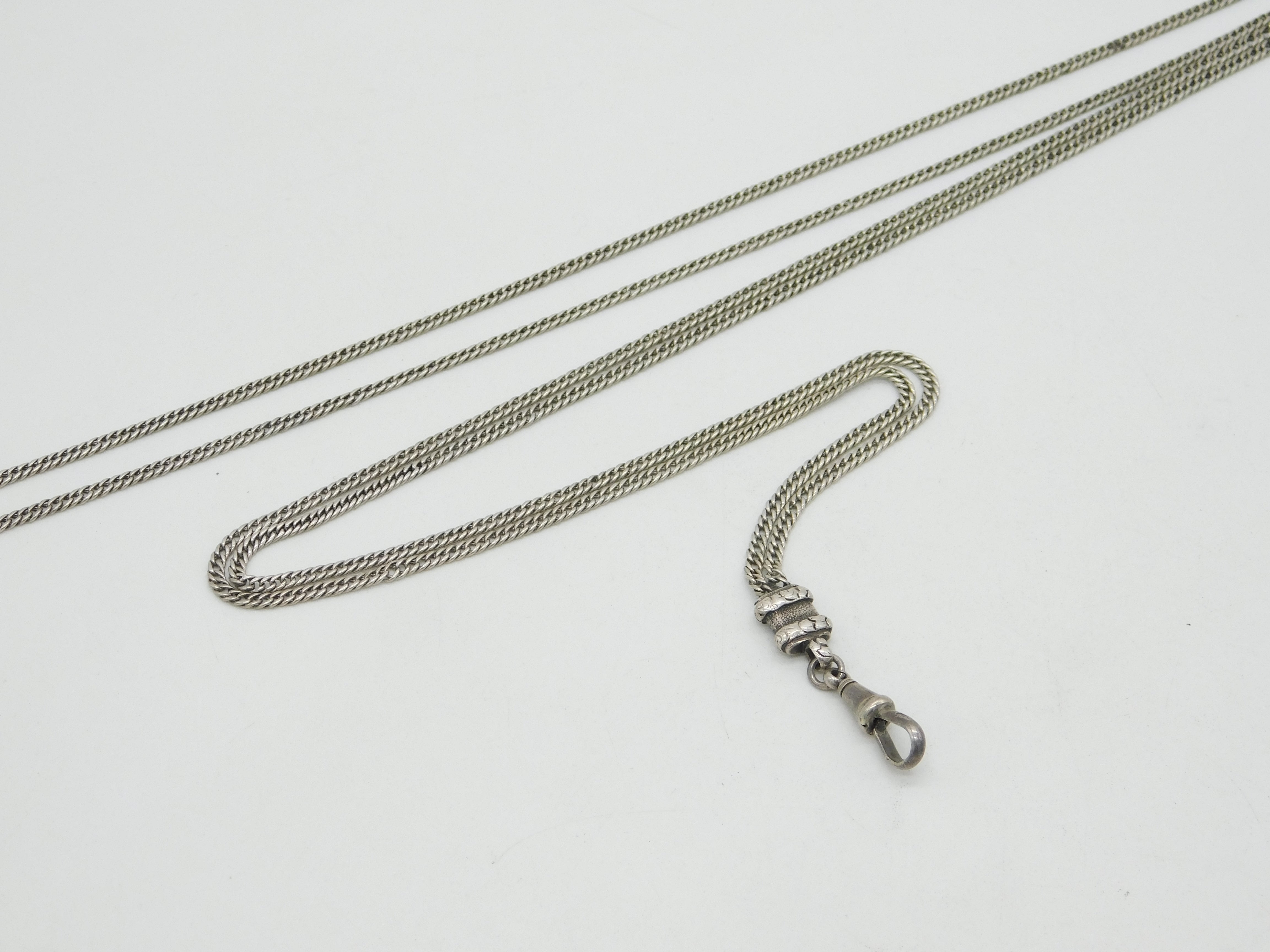Victorian Sterling Silver Long Guard Muff Chain Antique c1860 132cm Length