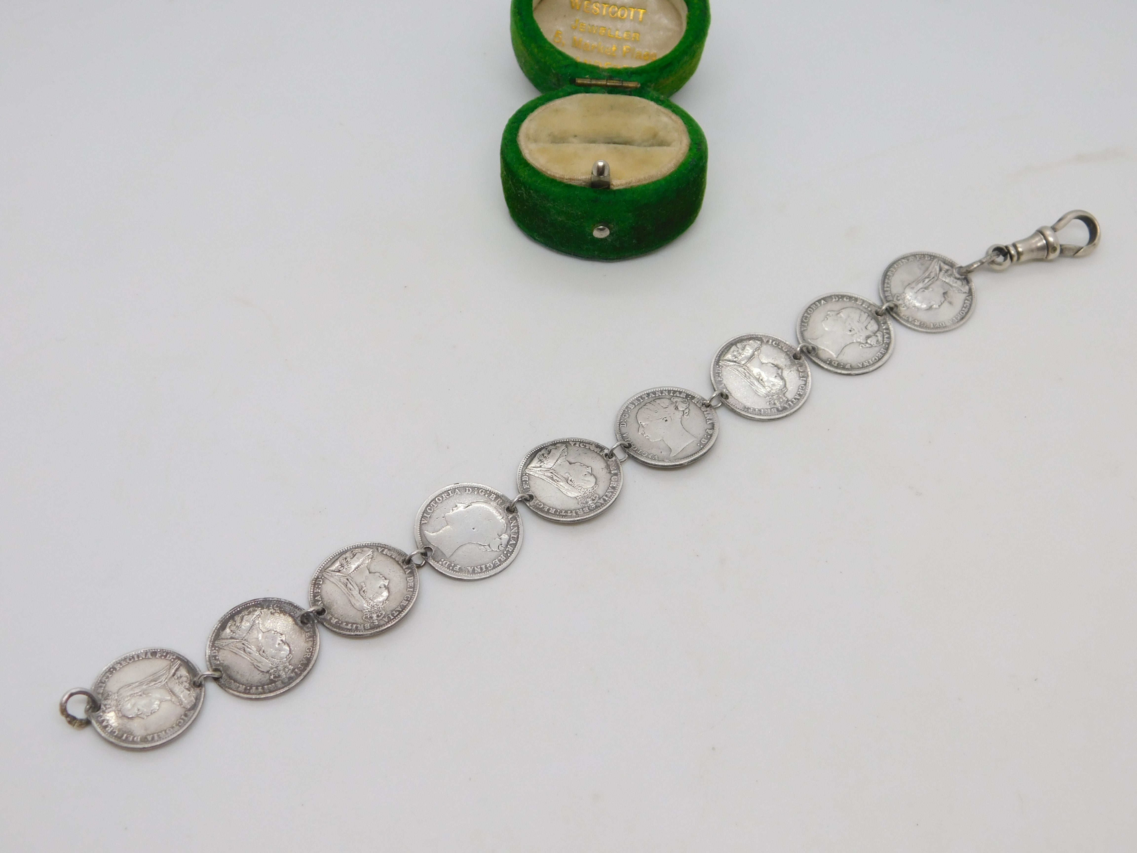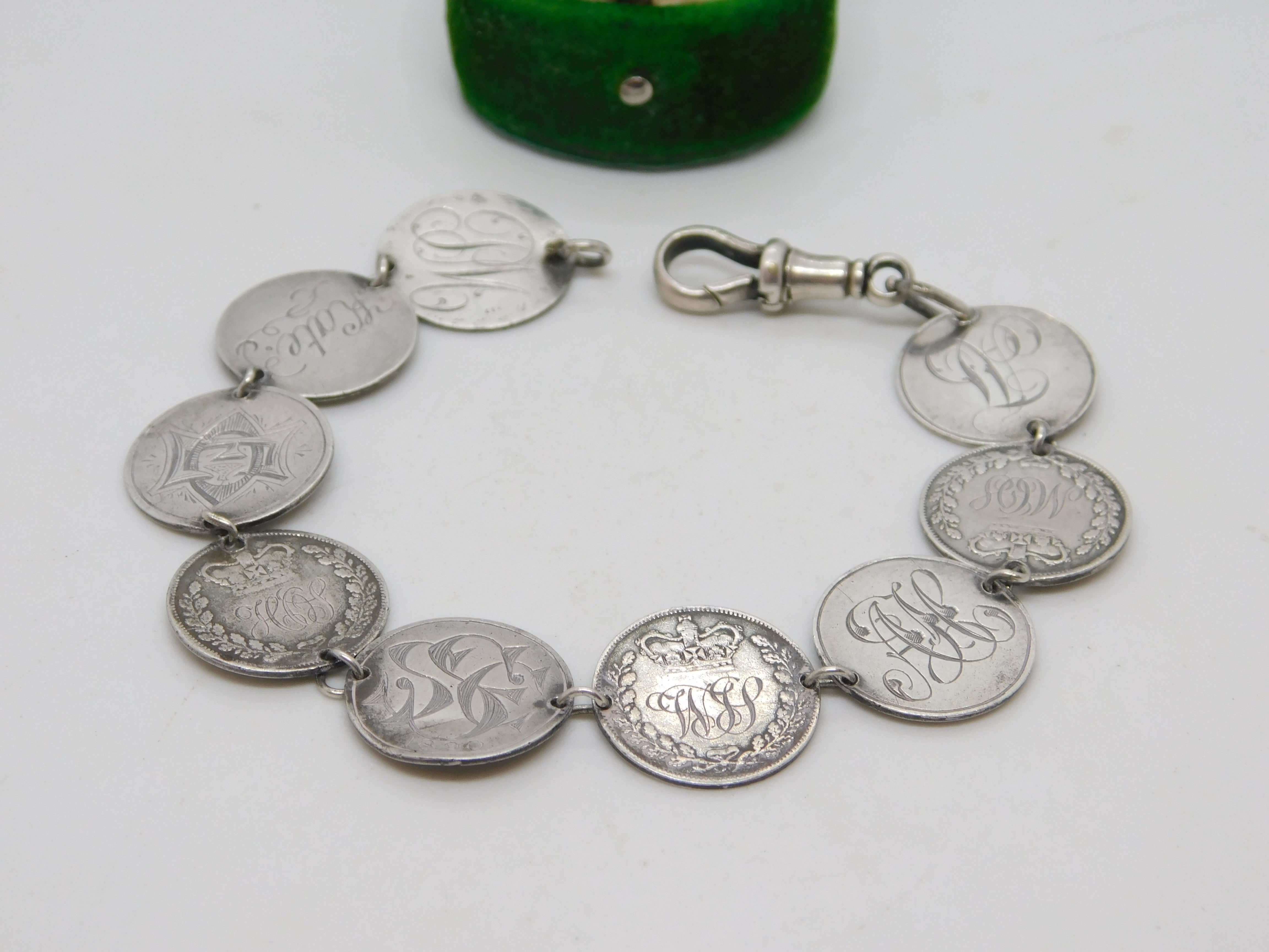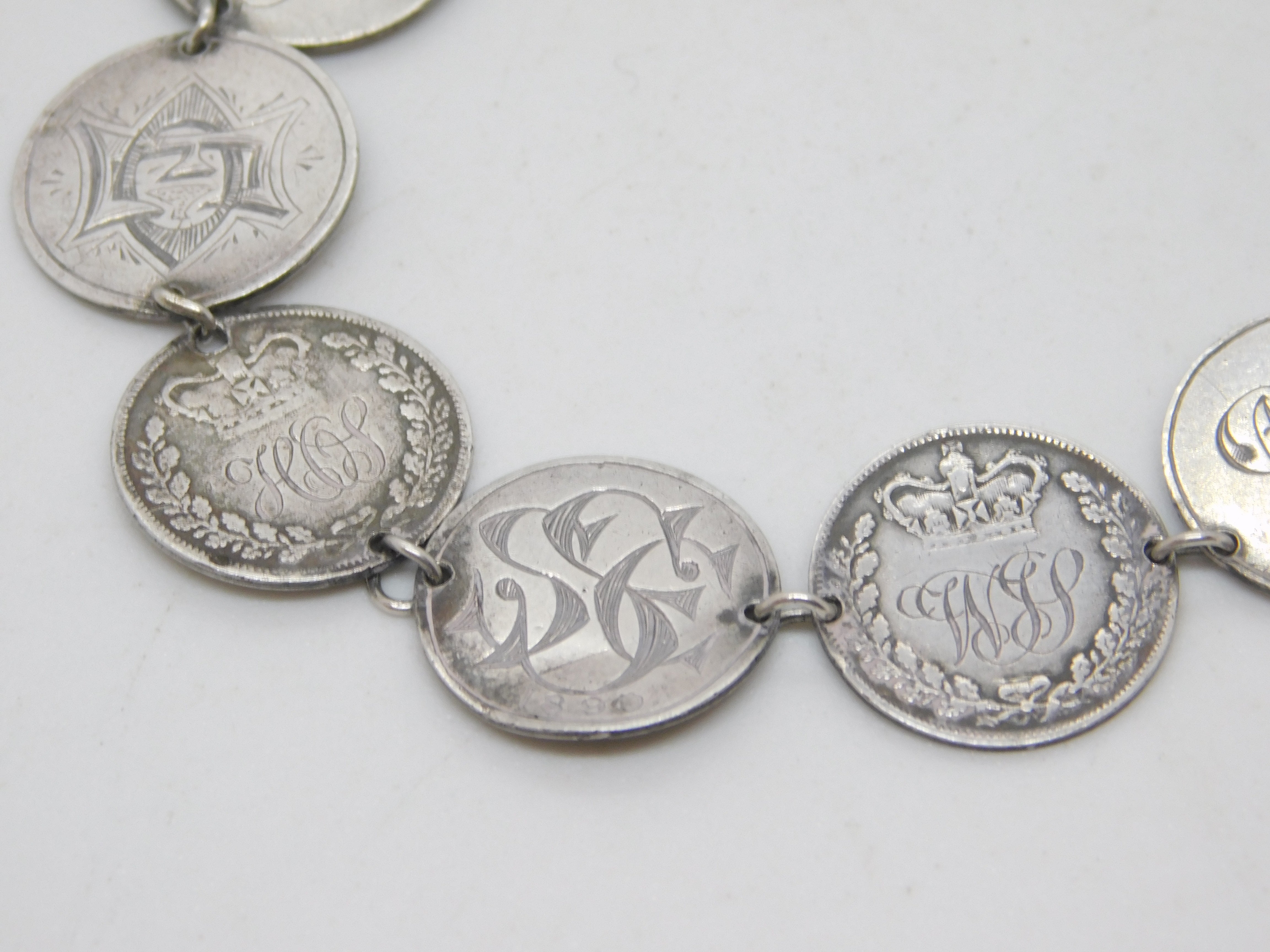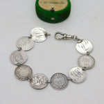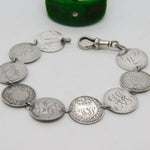 Victorian Sterling Silver Love Token Threepence Coin Bracelet Antique c1890