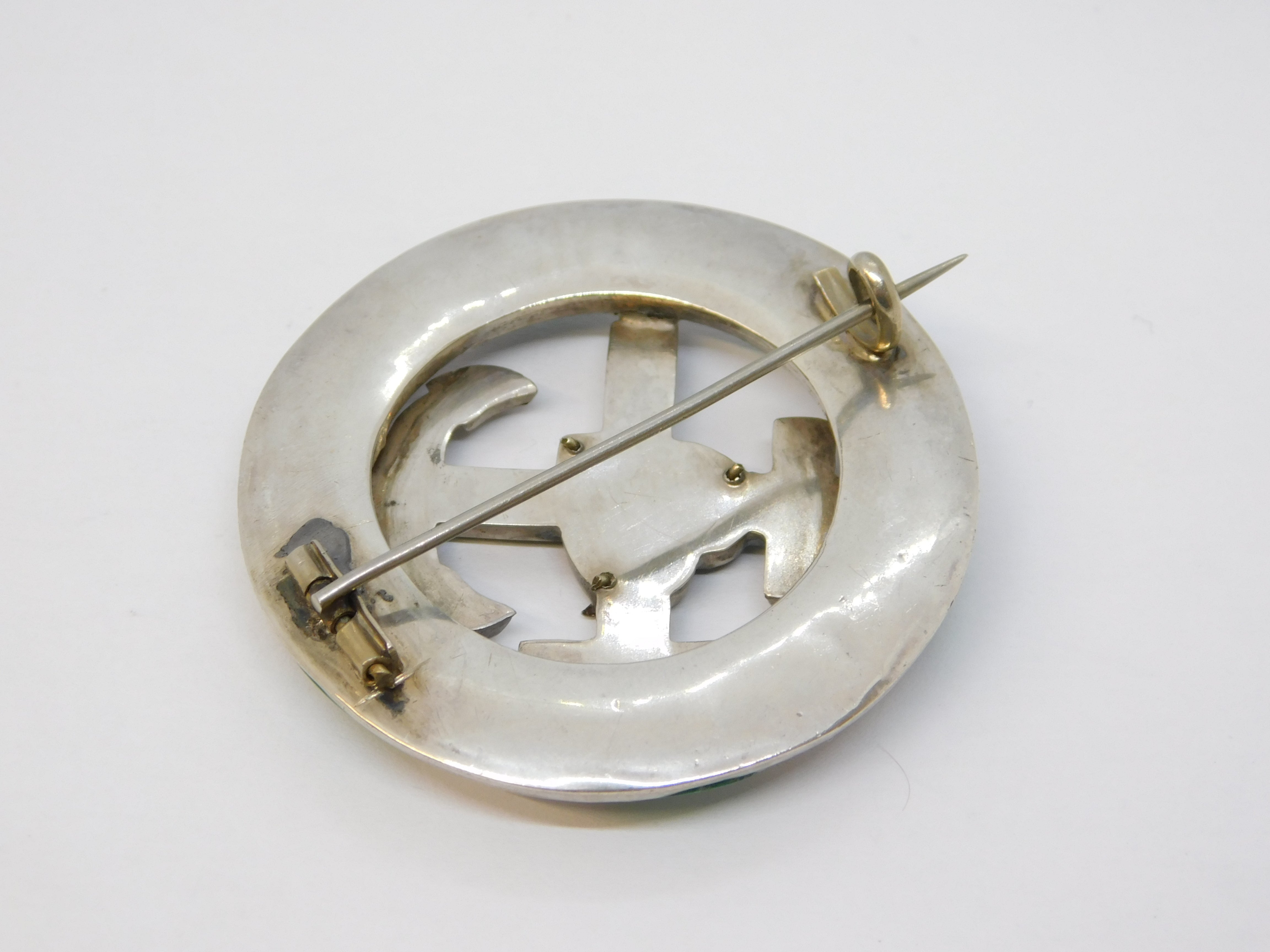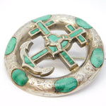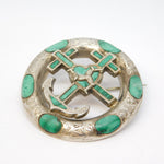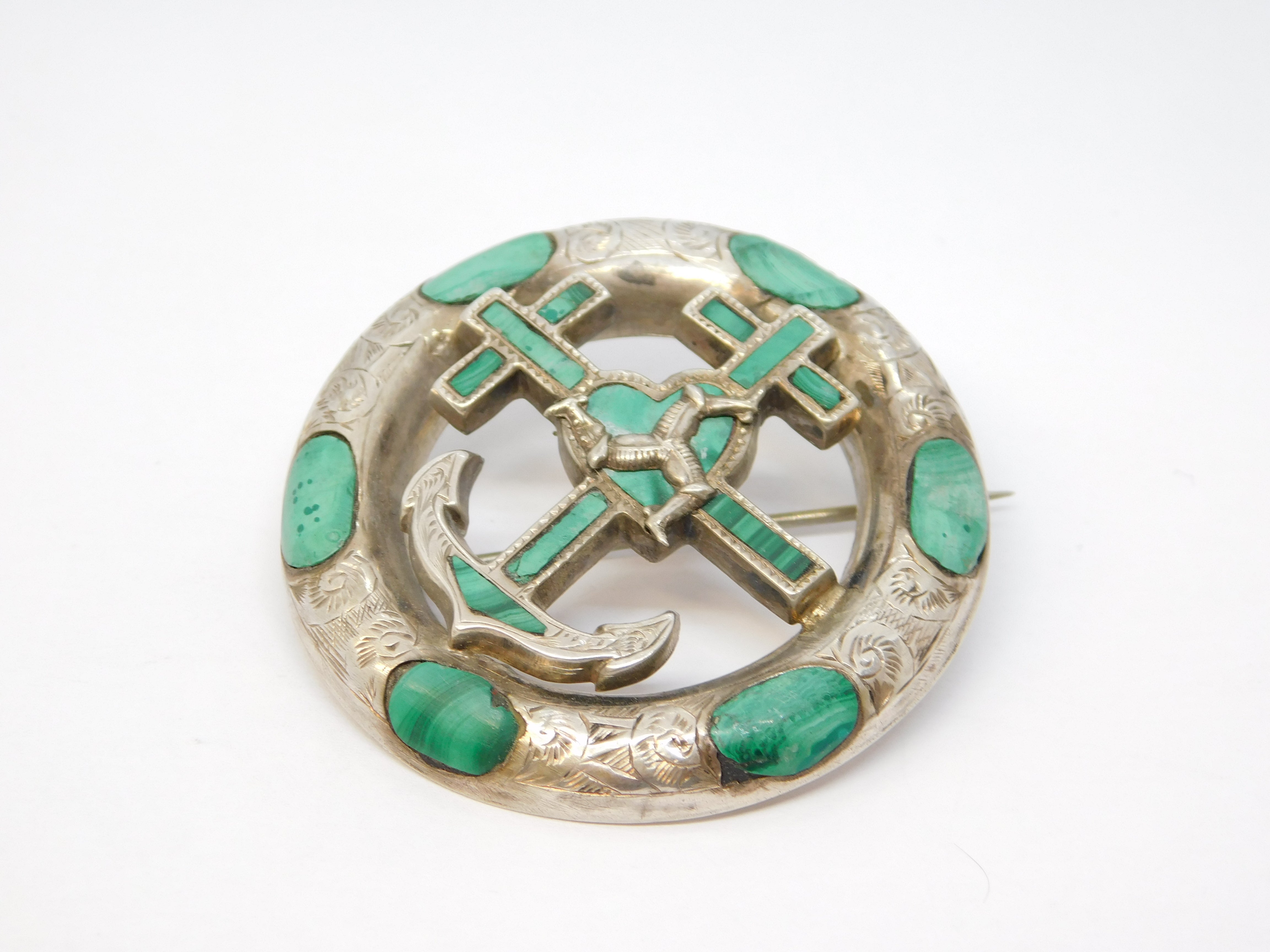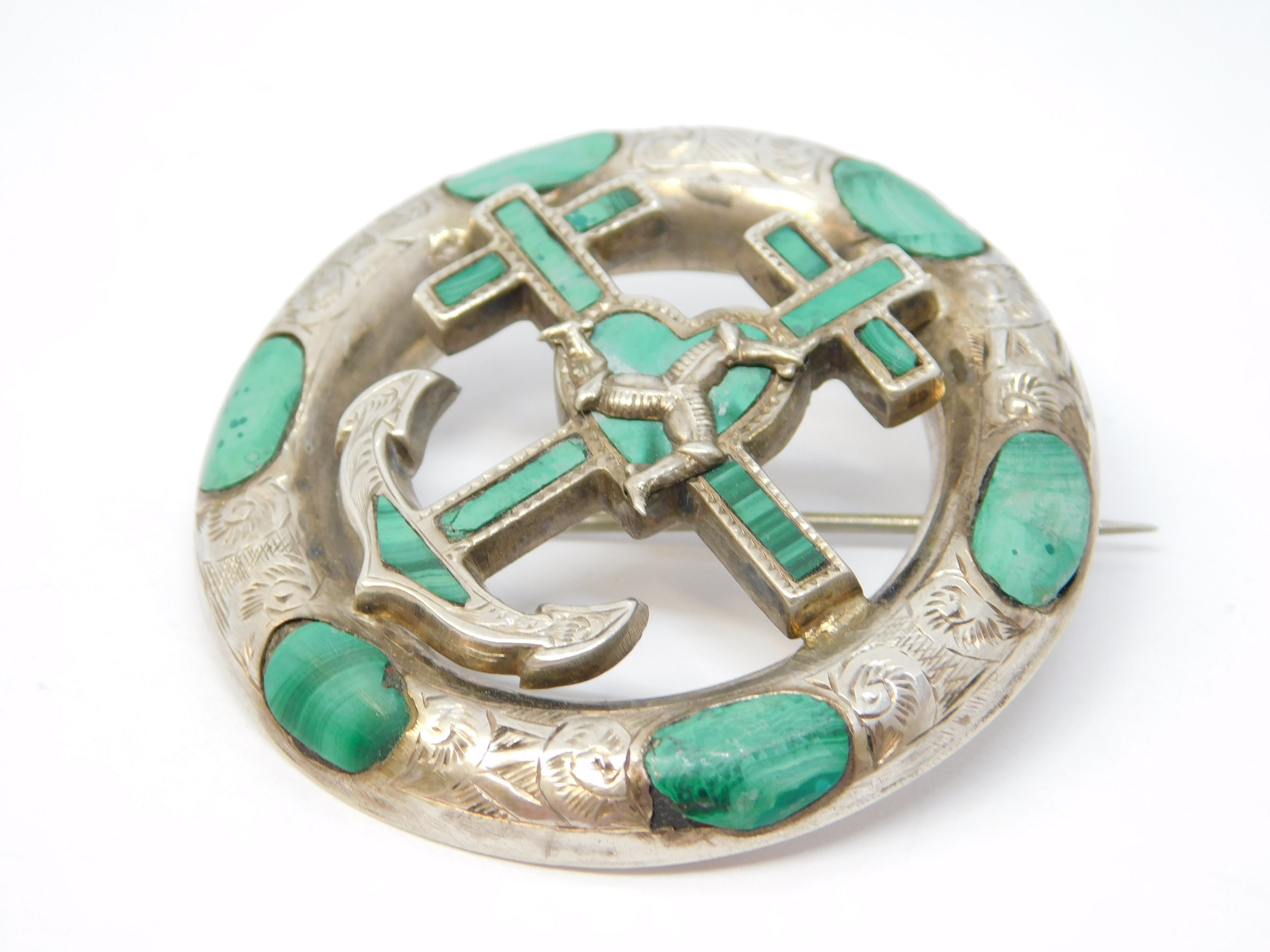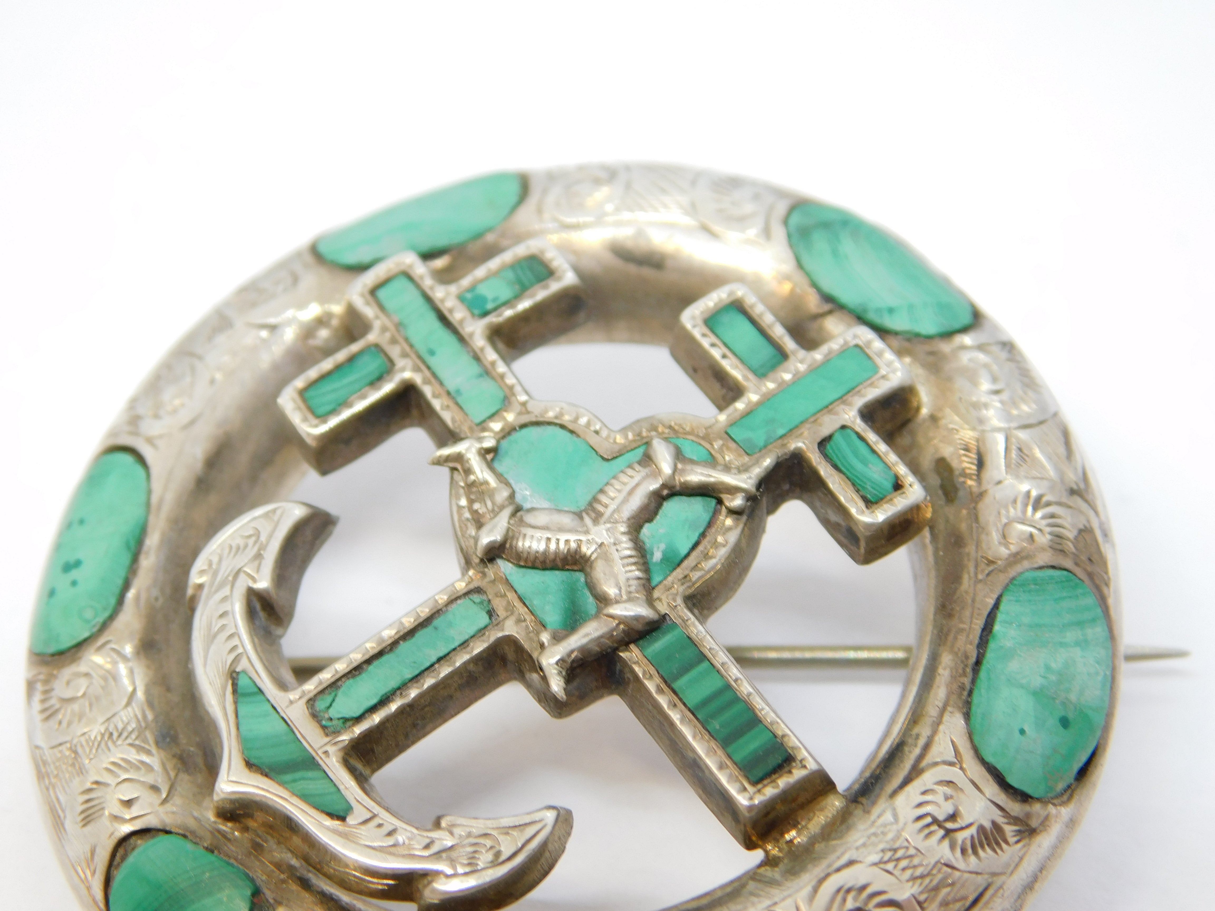 Victorian Sterling Silver Malachite Set Isle of Man Sweetheart Kilt Brooch c1860