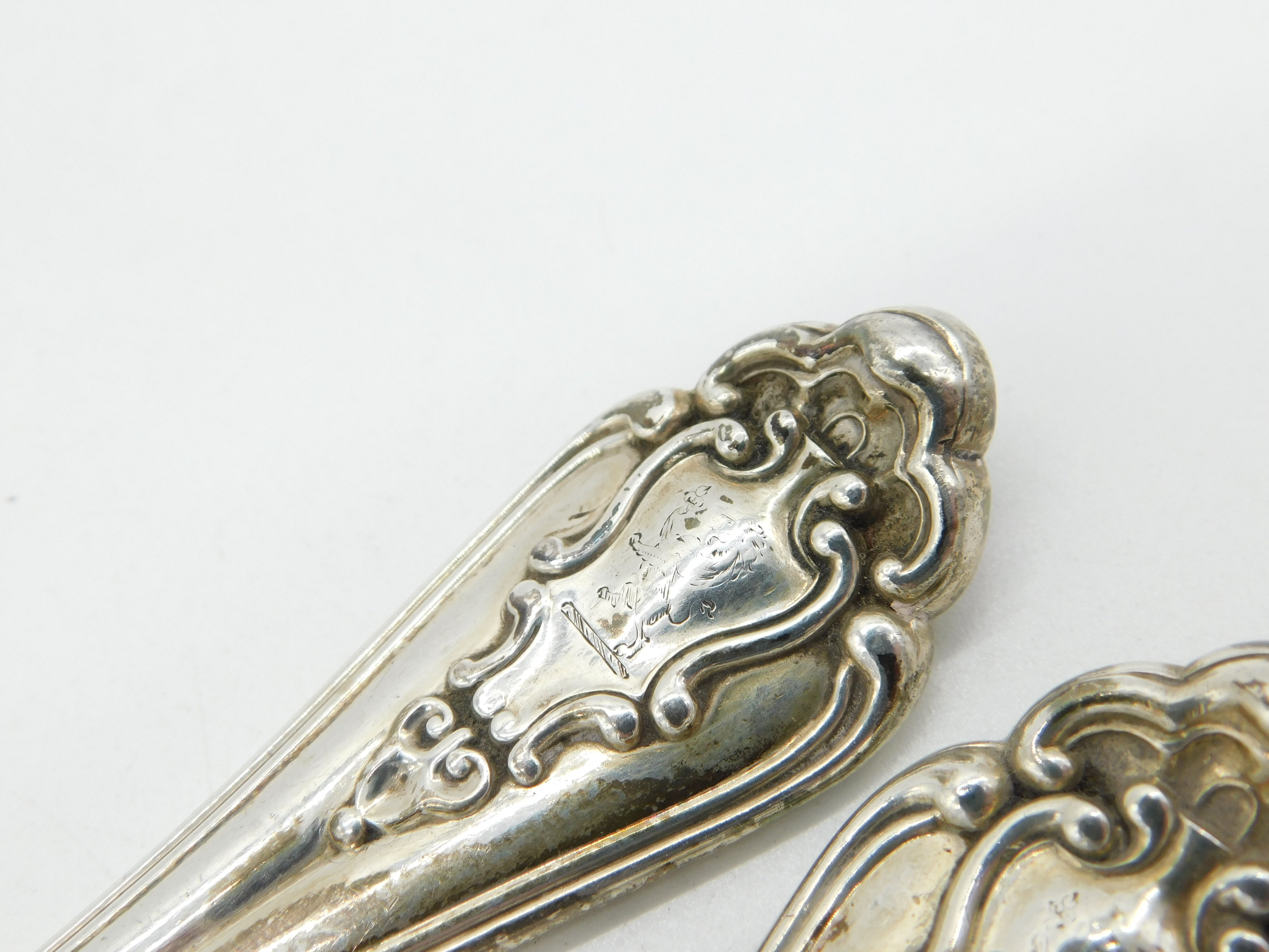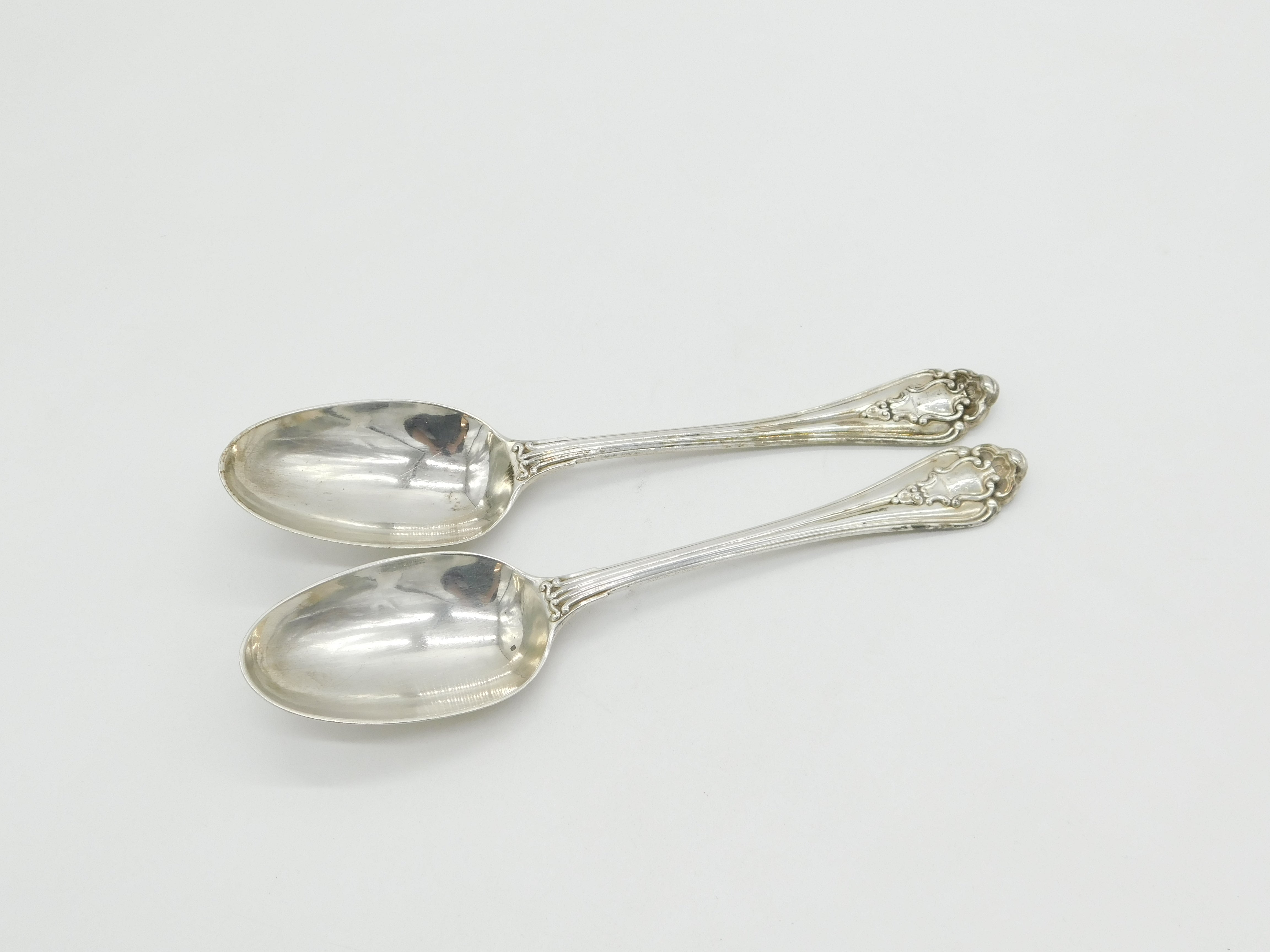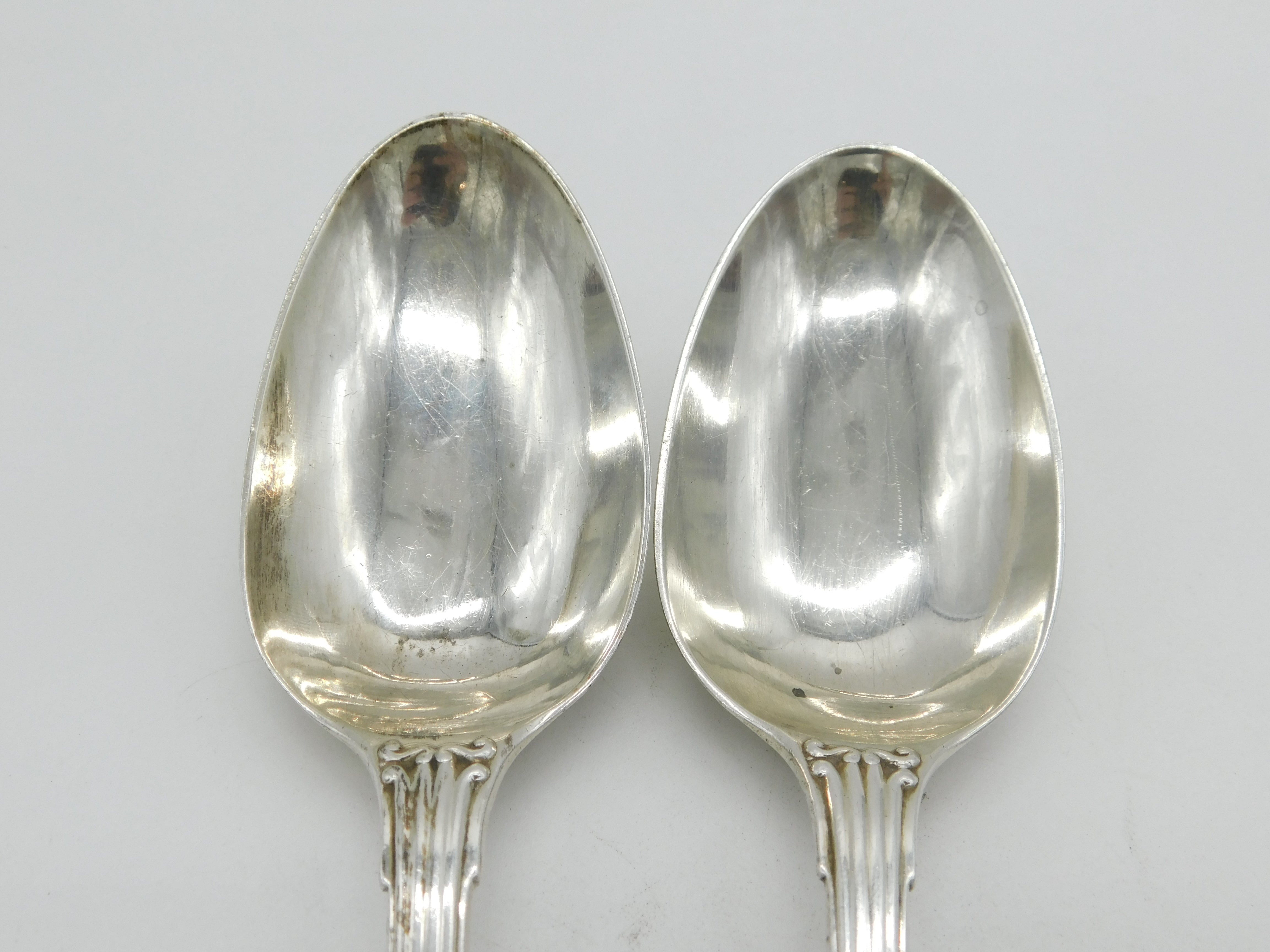 Victorian Sterling Silver Marlborough Pattern Serving Spoon Pair Antique 1841