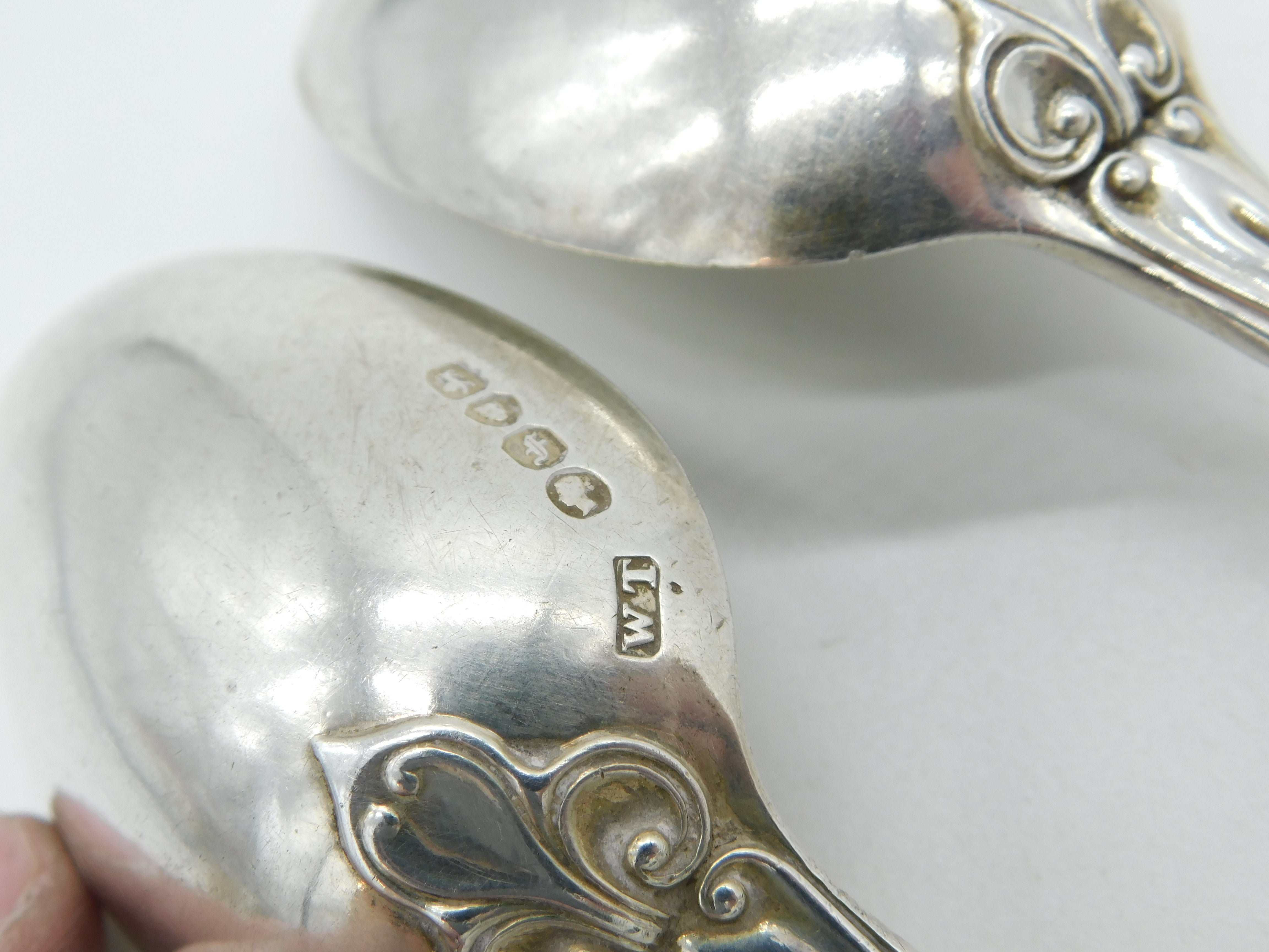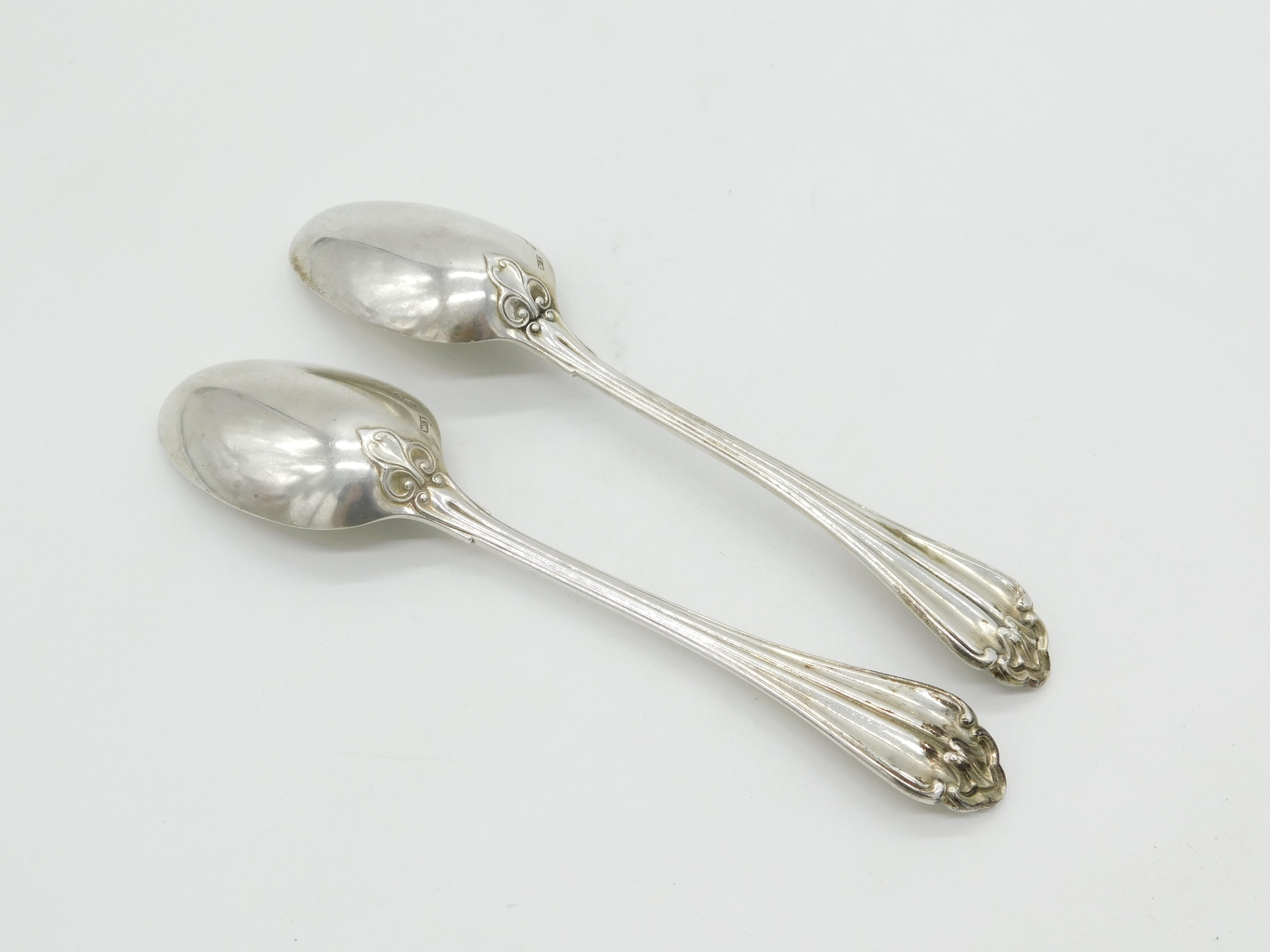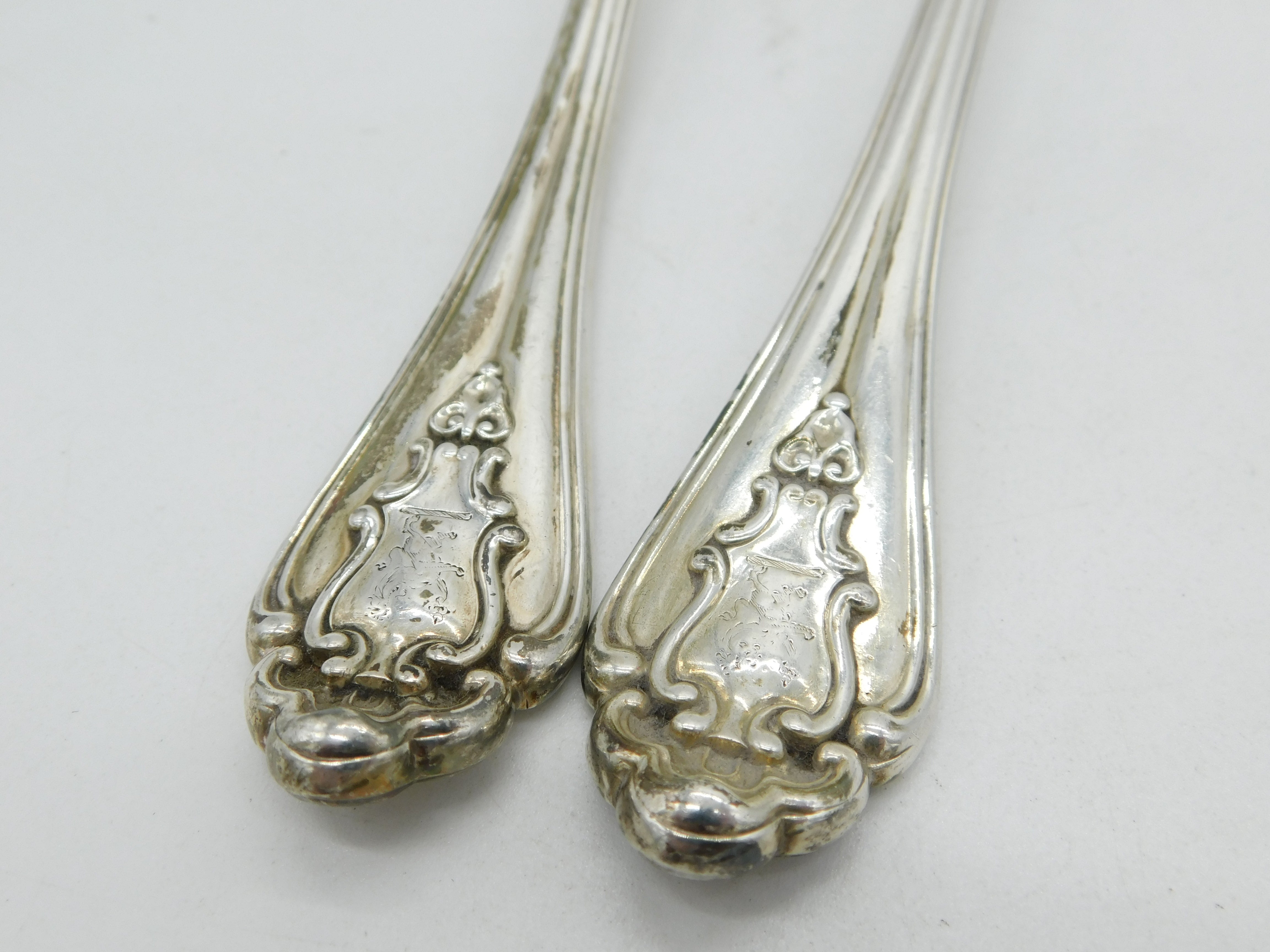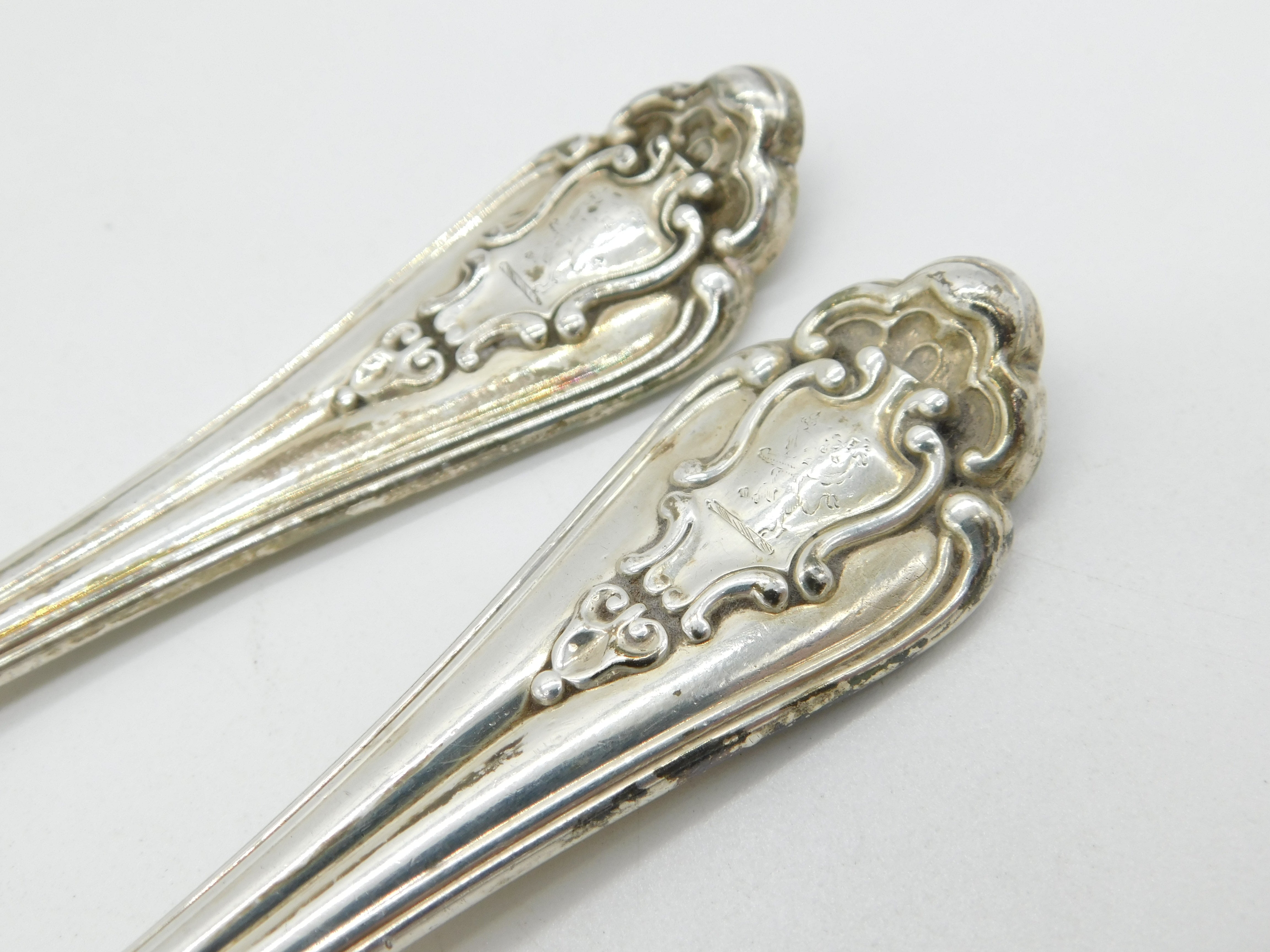 Victorian Sterling Silver Marlborough Pattern Serving Spoon Pair Antique 1841