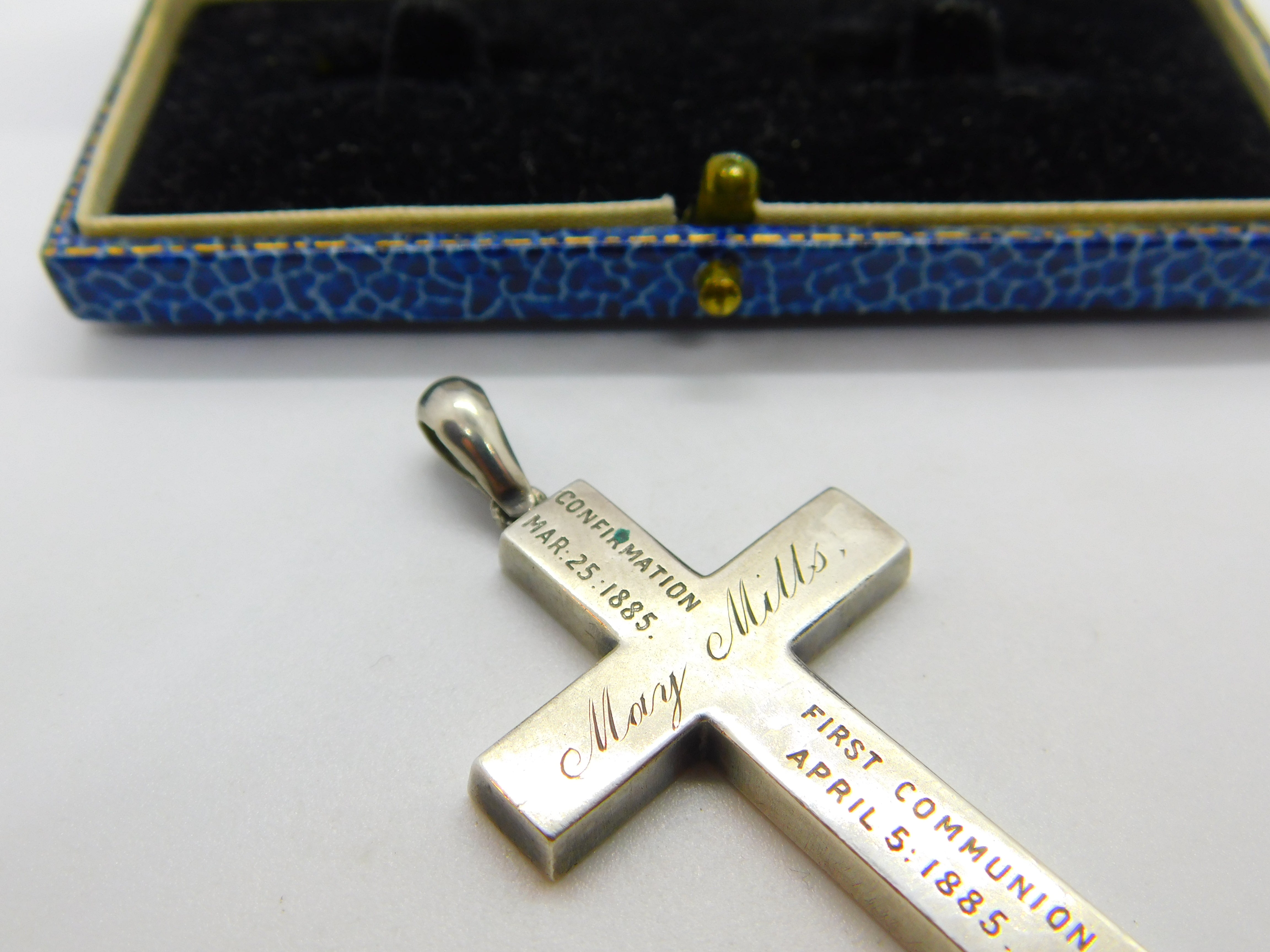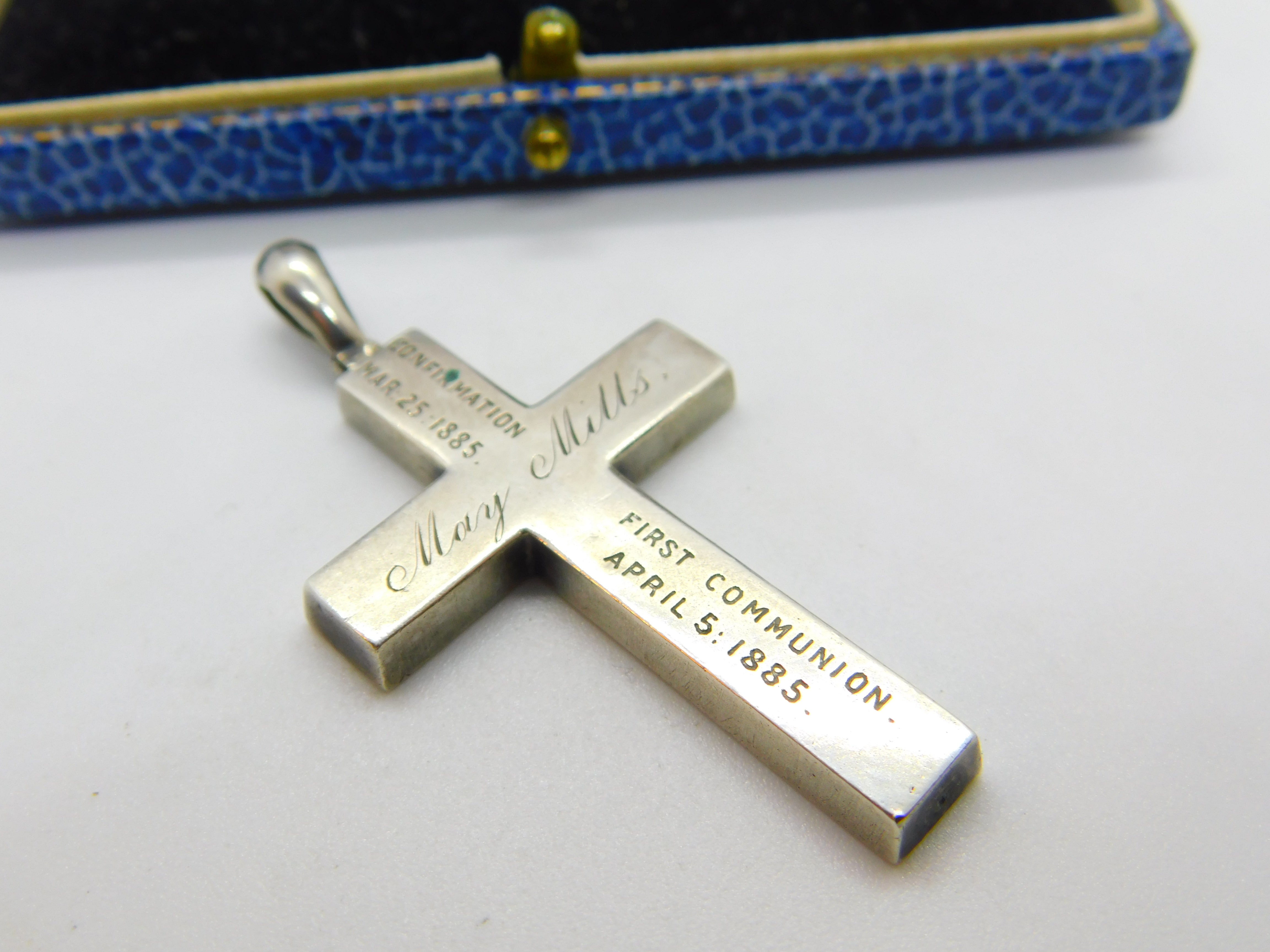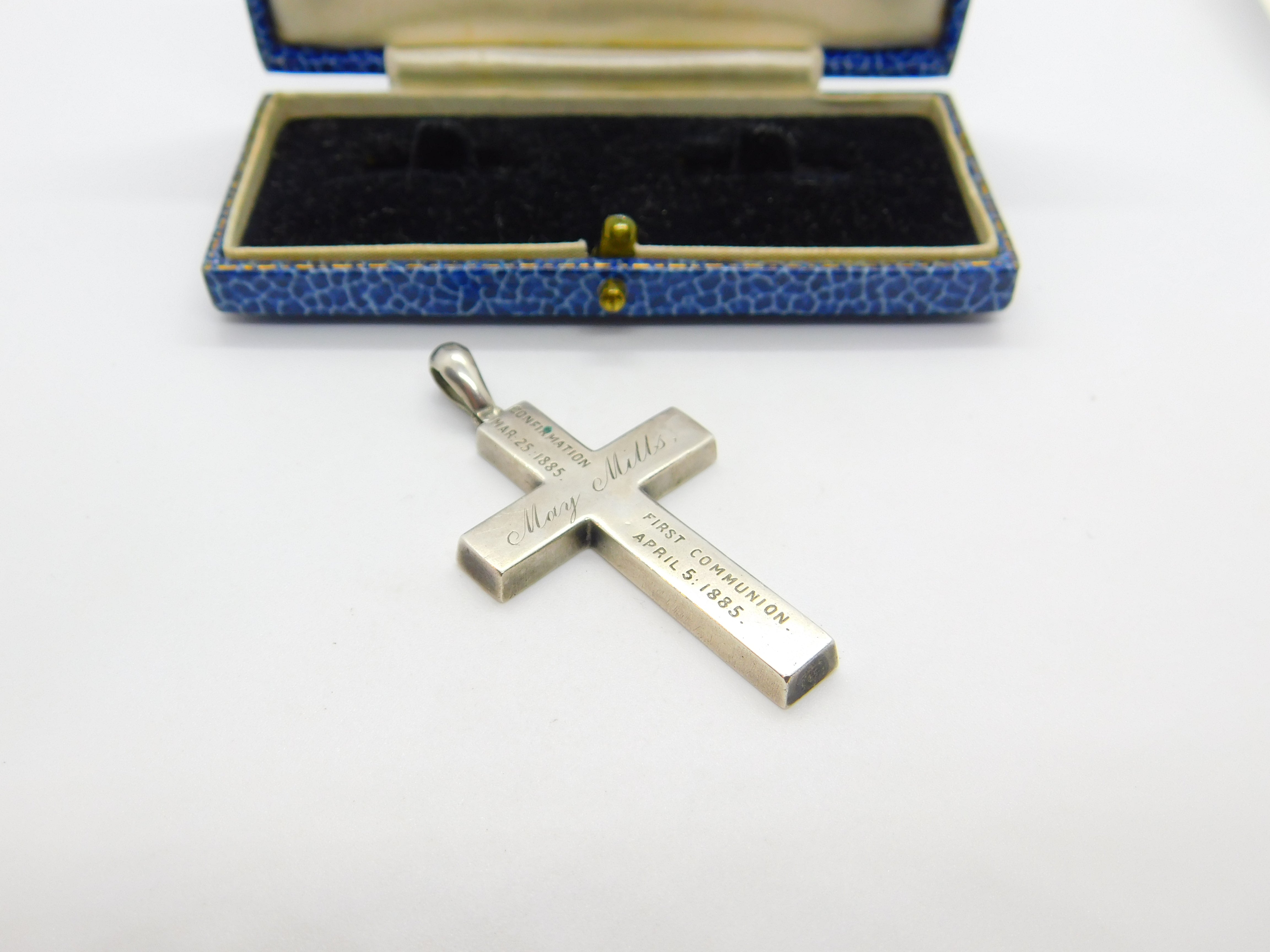 Victorian Sterling Silver 'May Mills' First Communion & Confirmation Cross Pendant Antique 1885