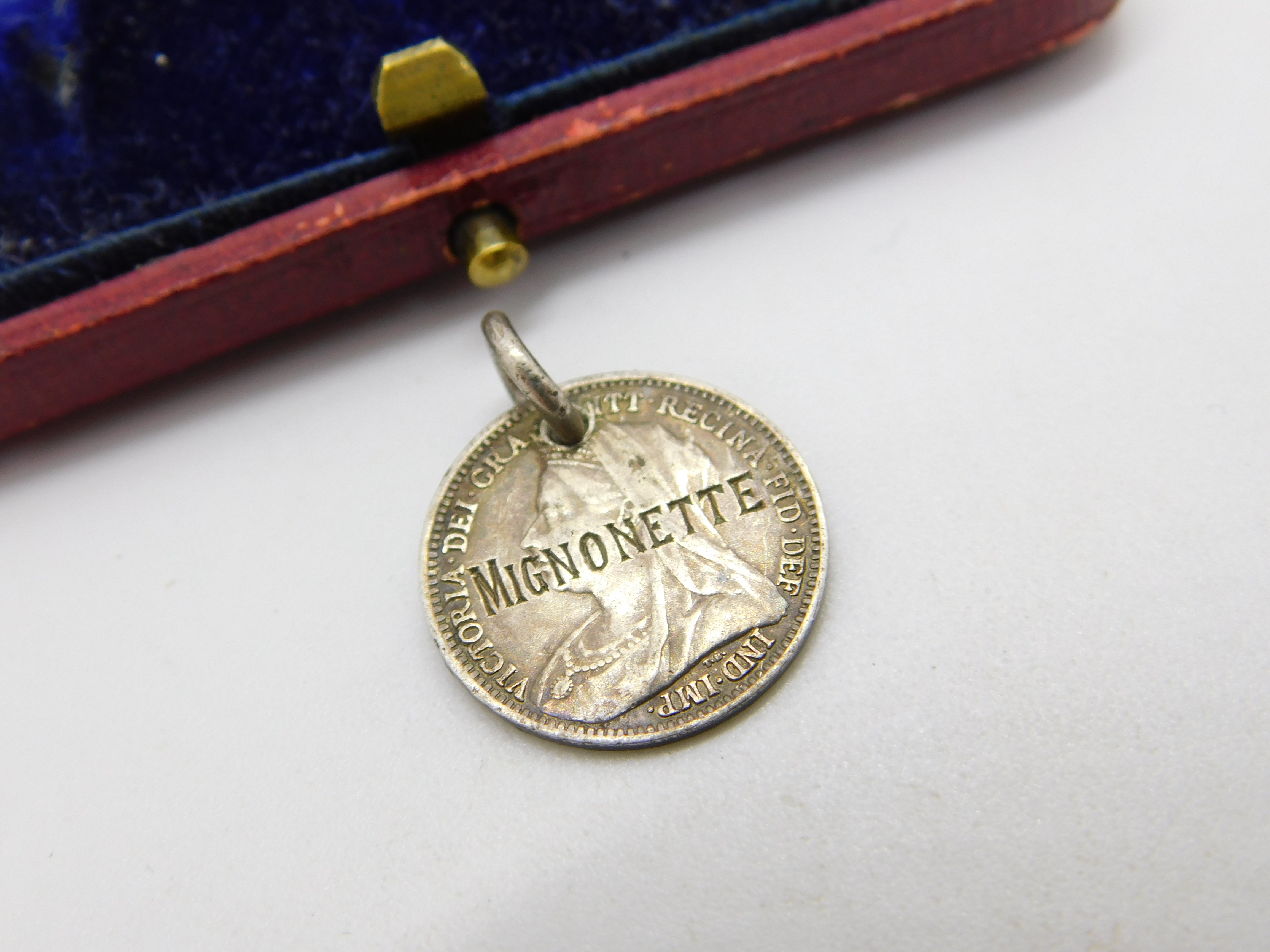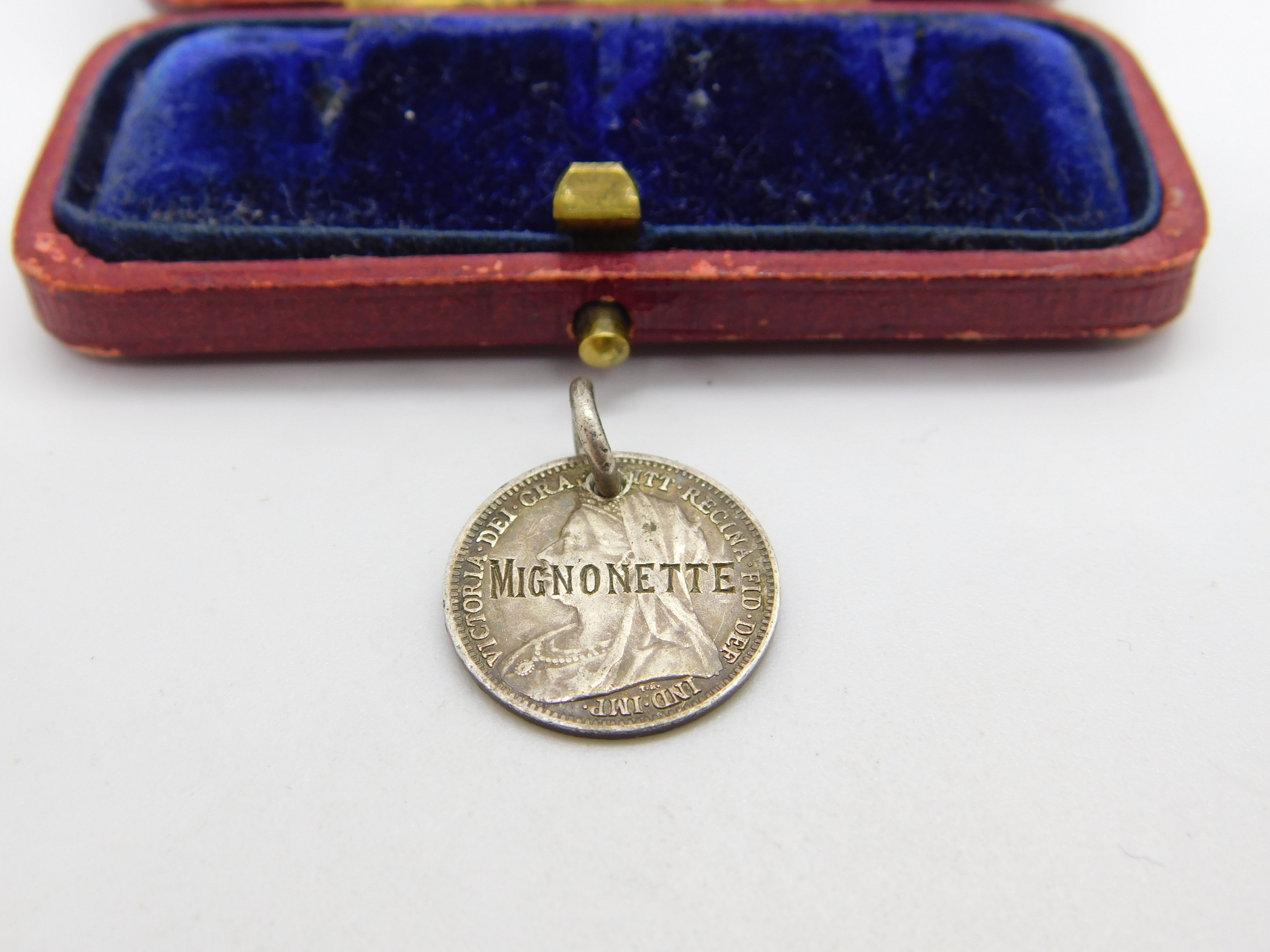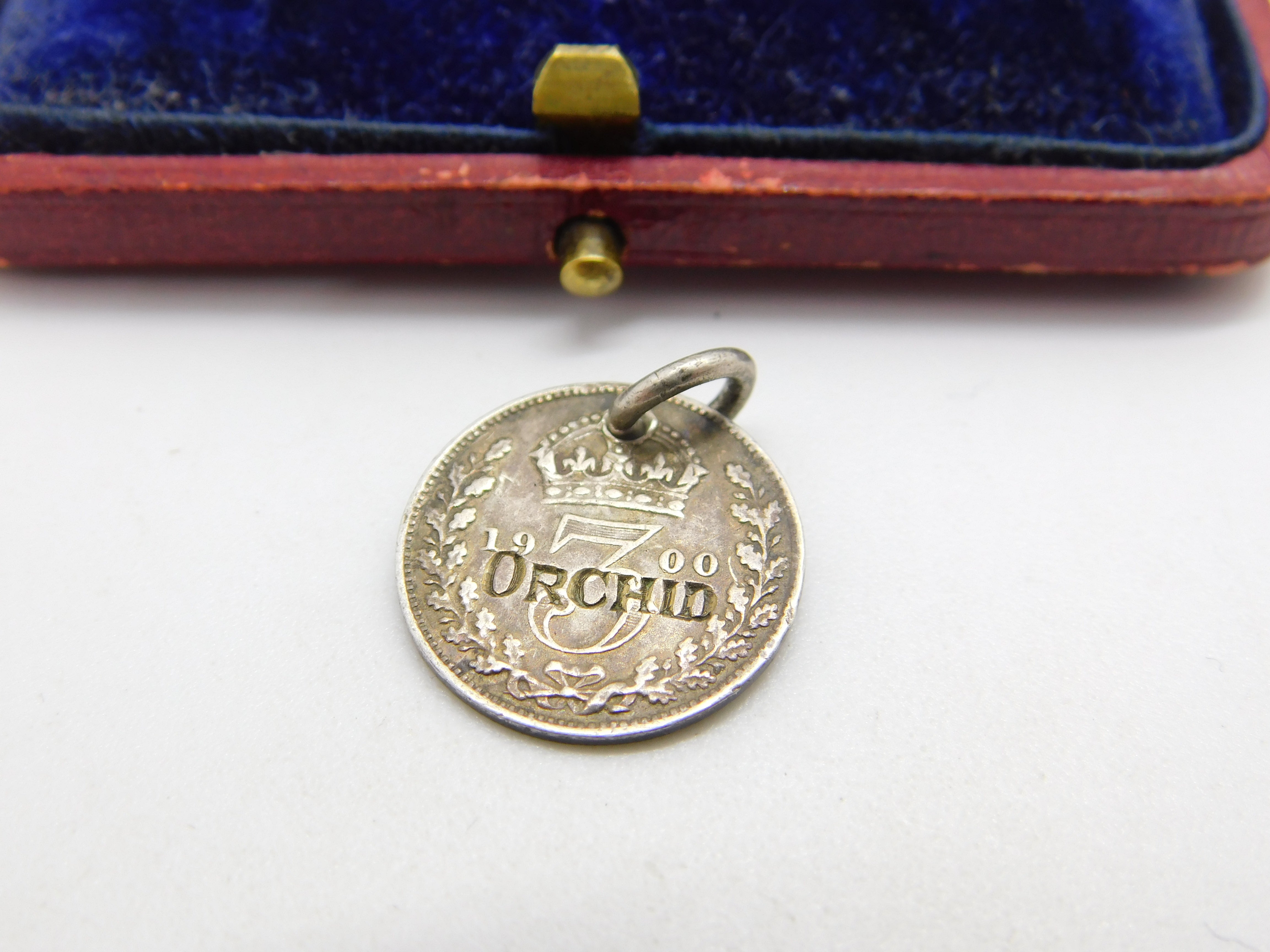 Details: A fantastic and wonderfully designed antique Victorian sterling silver Mignonette Orchid threepence love token coin charm dated 1900. This is a wonderful item that would make a perfect gift or addition to any collection. The BOX pictured is for PRESENTATION ONLY and is NOT included in the listings but used to frame the pictures unless specifically stated otherwise.