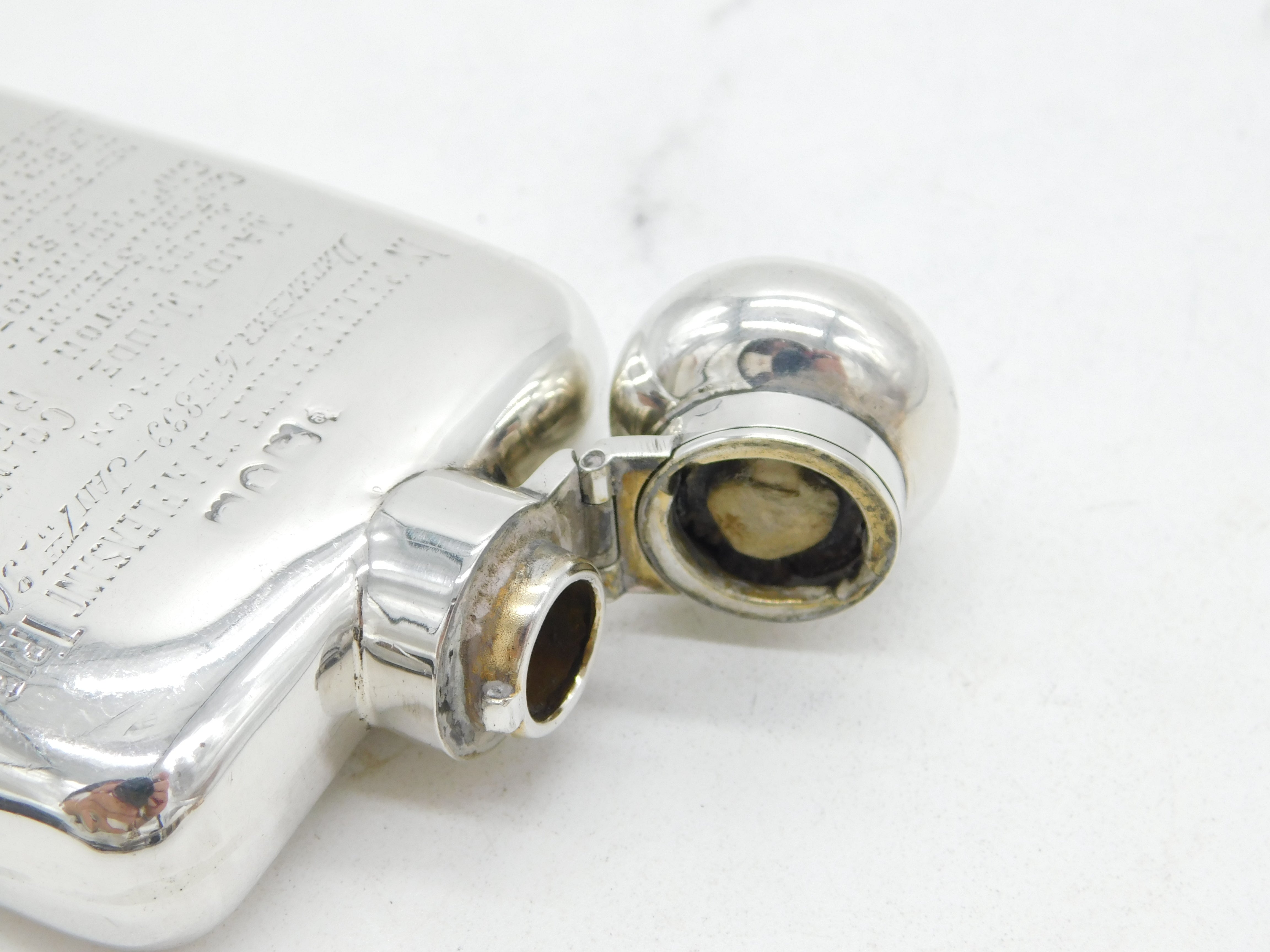 Victorian Sterling Silver Military Interest Hip Flask Antique 1898 London