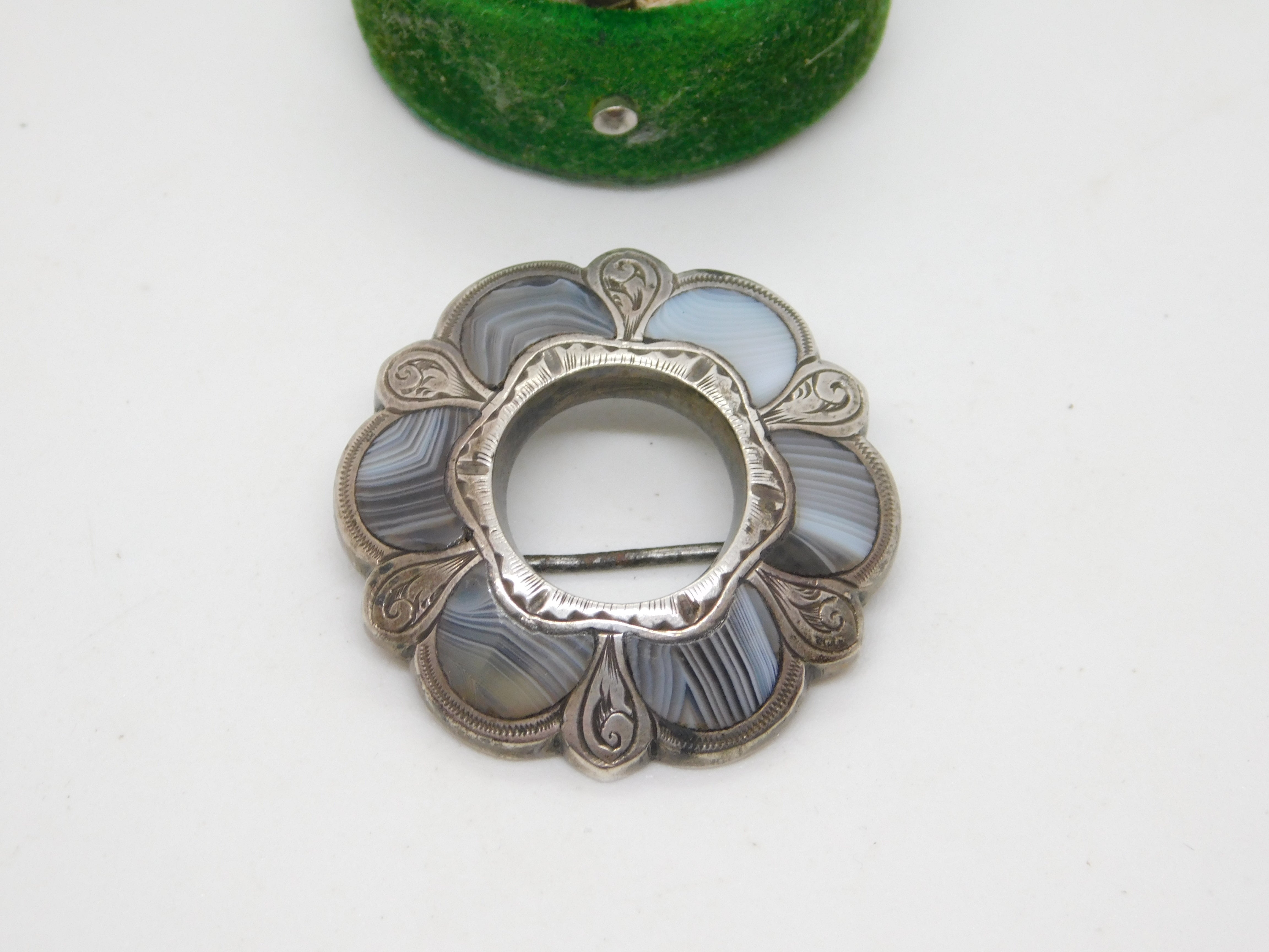 Victorian Sterling Silver Montrose Agate Floral Kilt Brooch Antique c1860
